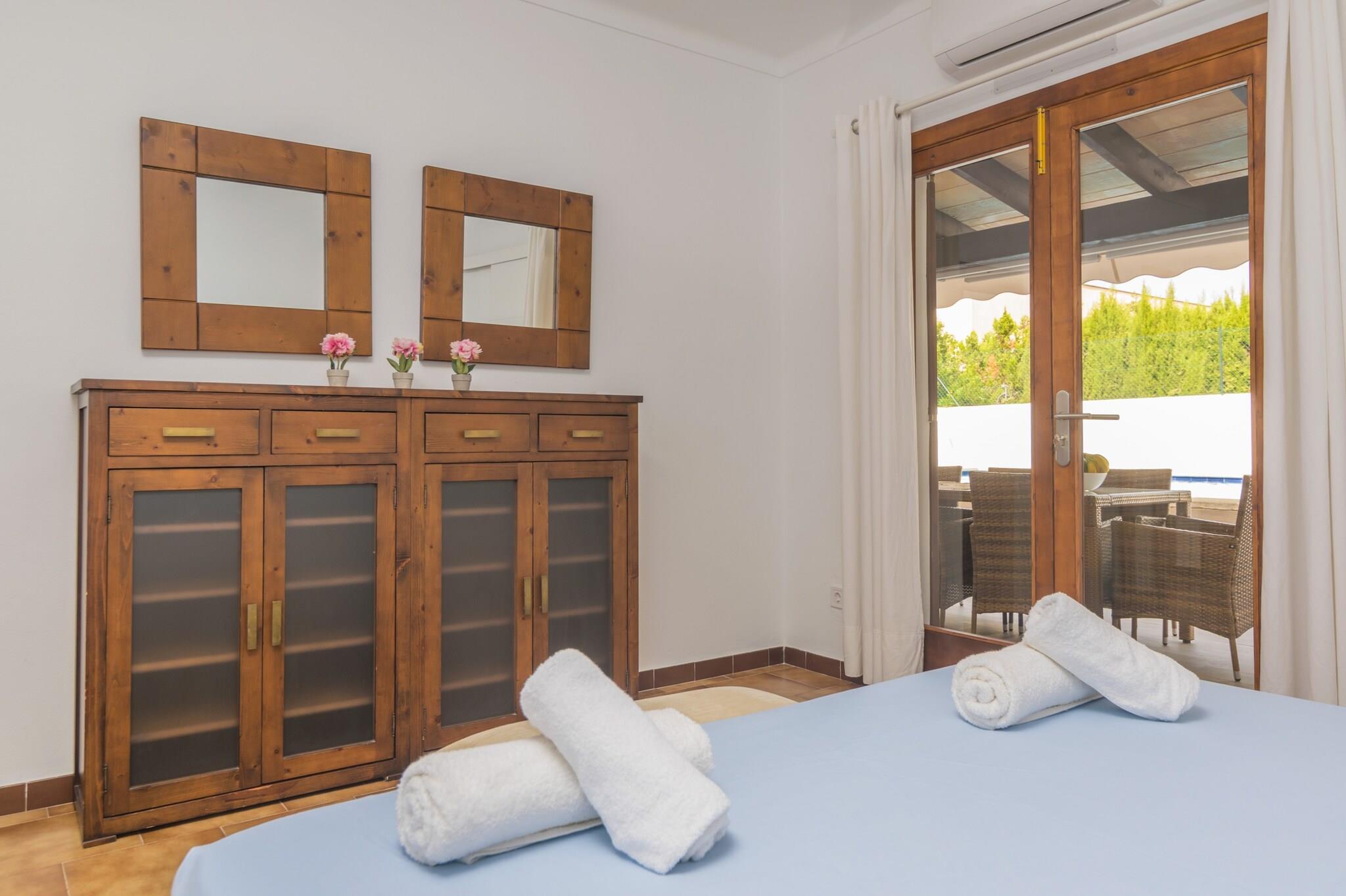 Dette fantastiske kysthus ligger kun en kort gåtur fra stranden og tilbyder ideelle udendørs rum. Den store private saltvandspool (10x5m, 1-2,2m dybde) er omgivet af 8 liggestole, og der er en møbleret veranda perfekt til grillmad. Foran giver et græsplæneområde og en rummelig terrasse en afslappende atmosfære. Indenfor har huset en stor stue/spisestue med aircondition, satellit-tv og en pejs. Køkkenet er udstyret med induktionskomfur og spisebord. Vaskerummet omfatter vaskemaskine, strygejern og strygebræt. Huset har fire soveværelser med aircondition: to med enkeltsenge og garderobeskabe, et med dobbeltseng og eget badeværelse (inklusive bruser og barneseng/høj stol), og et med køjeseng. Alle værelser har loftsventilator, og der er to ekstra badeværelser med bruser. Ejendommen er beliggende i Sa Coma, kun 600 meter fra stranden og tæt på barer, restauranter, supermarkeder og meget mere. Son Servera-golfbanen ligger 9,6 km derfra. Aircondition kører i stue-spisestuen fra kl. 14.00 til 19.00 og i soveværelserne fra kl. 22.00 til 07.00. Gæster under 25 år accepteres kun, hvis de rejser som en familie. Paskopier er påkrævet for booking. Kæledyr er ikke tilladt, og arrangementer er forbudt. Udvendig parkering er tilgængelig for 2 biler. Afstande: Strand: 600 m (Sa Coma) Lufthavn: 69,3 km (Son Sant Joan) Golf: 9,6 km (Son Servera) By: 0 km (Sa Coma) Hospital: 18,7 km (Manacor) Turistlicens: ETV/7653. En obligatorisk Ecotasa gælder. Depositum betales ved ankomst. Som reaktion på Coronavirus (COVID-19) er yderligere sikkerheds- og sanitære foranstaltninger i kraft på denne ejendom.