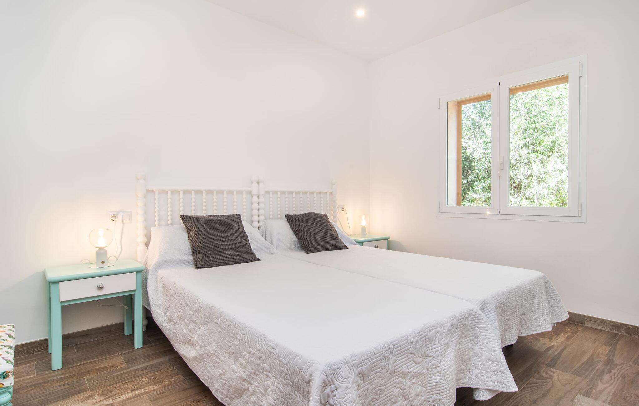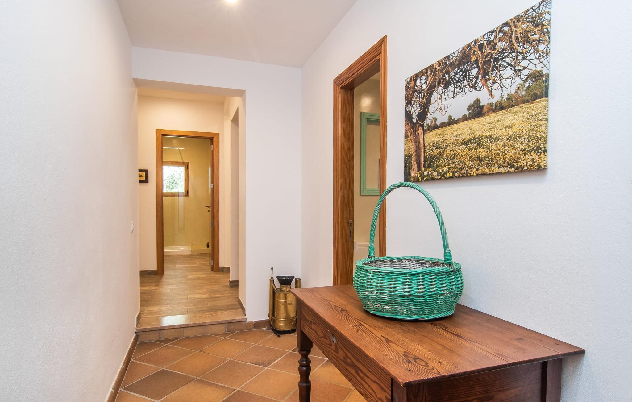 Stuehuset "Sa Costa Sur" kan rumme op til 3 gæster og tilbyder et privat og alsidigt udendørsområde på en generøs 10.000 m² stor grund. Huset har åbne og overdækkede møblerede terrasseområder, perfekt til socialt samvær og afslapning. Ældre træer, herunder frugttræer, skaber en beskyttet havestemning. En lavvandet pool inviterer jer til at slappe af på varme dage, suppleret med liggestole til solbadning. En kulgrill er tilgængelig til aftengrill. Interiøret imponerer med en rustik og hyggelig atmosfære, med alle opholdsrum bekvemt placeret i ét plan. Gæsterne har adgang til en rustik opholds- og spisestue samt et rummeligt, fuldt udstyret køkken, hvor der kan tilberedes måltider til flere personer. Et mindre spisebord er også tilgængeligt til hyggelige kaffepauser eller snacks. Det rummelige soveværelse kan komfortabelt rumme 3 gæster, og efter anmodning kan der oprettes et ekstra soveværelse for mere privatliv. Tre bruserum øger boligkomforten og sikrer et behageligt ophold for alle gæster. Stuehuset "Sa Costa Sur" er ideelt beliggende mellem Campos og Felanitx, hvor der er markeder, restauranter og caféer. Strandene i syd som Es Trenc, Platja de Sa Rápita og Ses Covetes er let tilgængelige og tilbyder blandt andet mulighed for vandsport og bådture. Valgfri brug af klimaanlæg er inkluderet i prisen, når det bruges hensigtsmæssigt. I det sjældne tilfælde, at grænsen overskrides, skal der lægges penge i enheden.