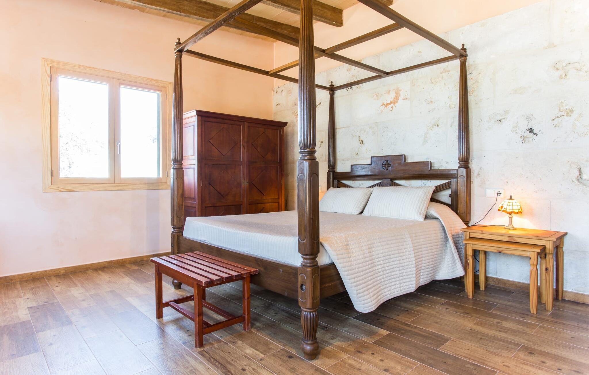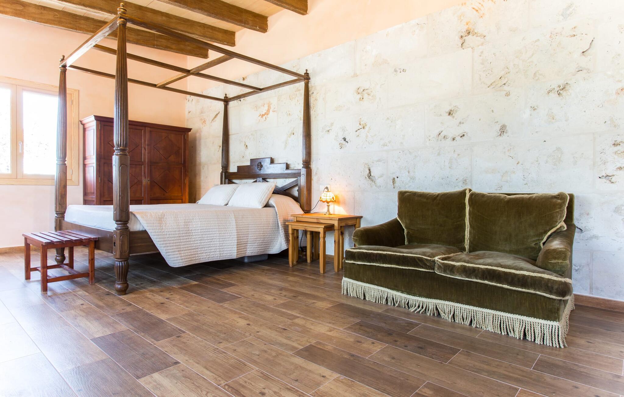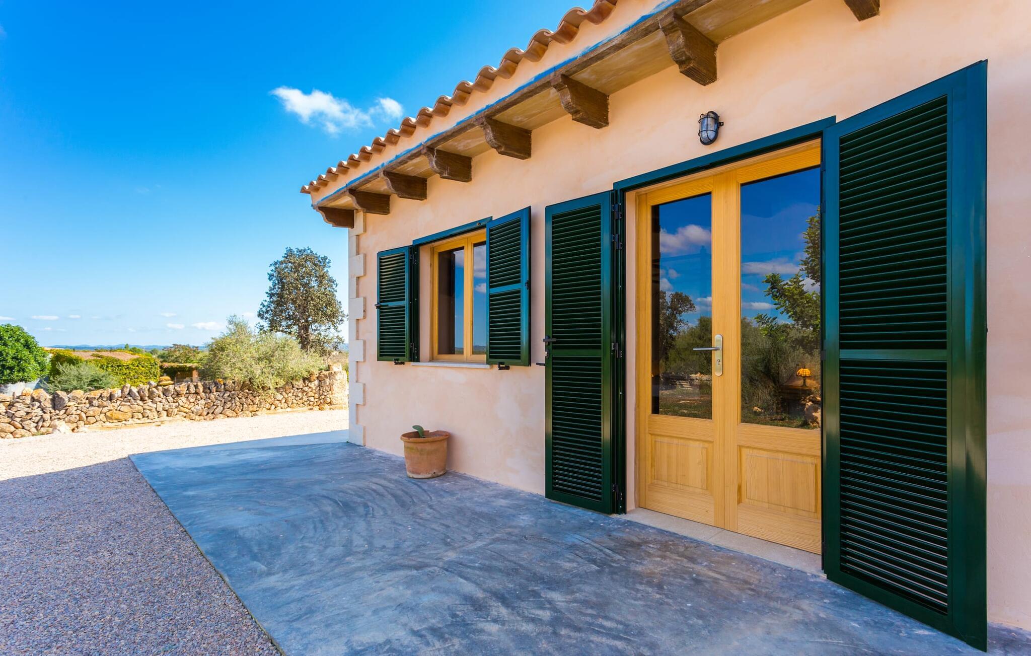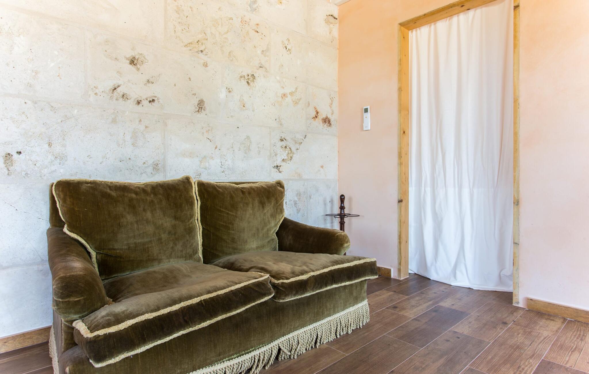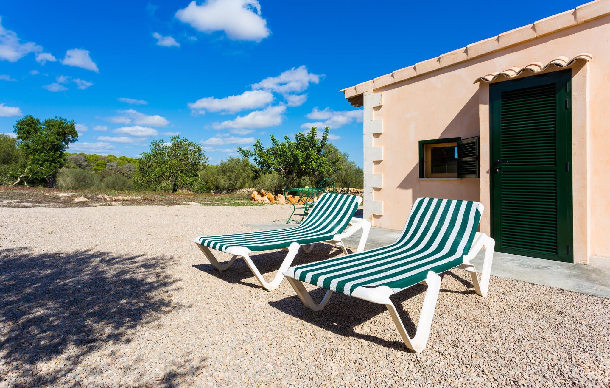 "Sa Cova Ibiza" er et charmerende feriehus i en 100 år gammel villa, smukt renoveret for at respektere traditionen og de landlige omgivelser. Beliggende i idyllisk natur har ejendommen sin egen frugthave og venlige høns, der går frit omkring. Den fælles pool er tilgængelig for gæster på naboejendommene "Sa Cova Cabrea", "Sa Cova Mallorca", "Sa Cova Formentera" og "Sa Cova Tagomago" og giver mulighed for at møde andre feriegæster. Om aftenen er udekøkkenet meget praktisk til at tilberede en lækker grill. Feriehusets rustikke charme er tydelig i naturstensvægge, træbjælker og bløde jordfarver, mens lyset skinner ind gennem de mange vinduespartier. Det smarte soveværelse har en himmelseng og et hyggeligt opholdsområde med tv og sofa. Det tilhørende badeværelse har brusekabine i glas med naturskøn udsigt. Villaens fællesarealer danner de perfekte rammer for socialt samvær, men de rolige omgivelser sikrer, at I nemt kan nyde dette perfekte tilflugtssted. Et smukt lille stykke grønt i en rolig beliggenhed beskriver dette feriehus perfekt. Byen Campos ligger kun 8,7 km væk, og der vil I finde mange butikker til jeres daglige behov. Et ugentligt marked finder sted hver torsdag og lørdag. På cirka 20 minutter i bil kan I nå fantastiske sandstrande som Platja de Sa Rapita og Ses Covetes. Det utrolige hvide sand i Es Trenc er kun omkring 21 km væk, stranden er sat på baggrund af fyrretræer og bølgende klitter og er velegnet til børn takket være dens blide hældning i vandet.