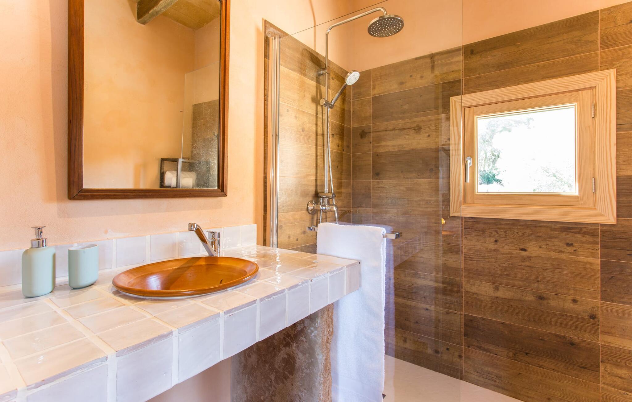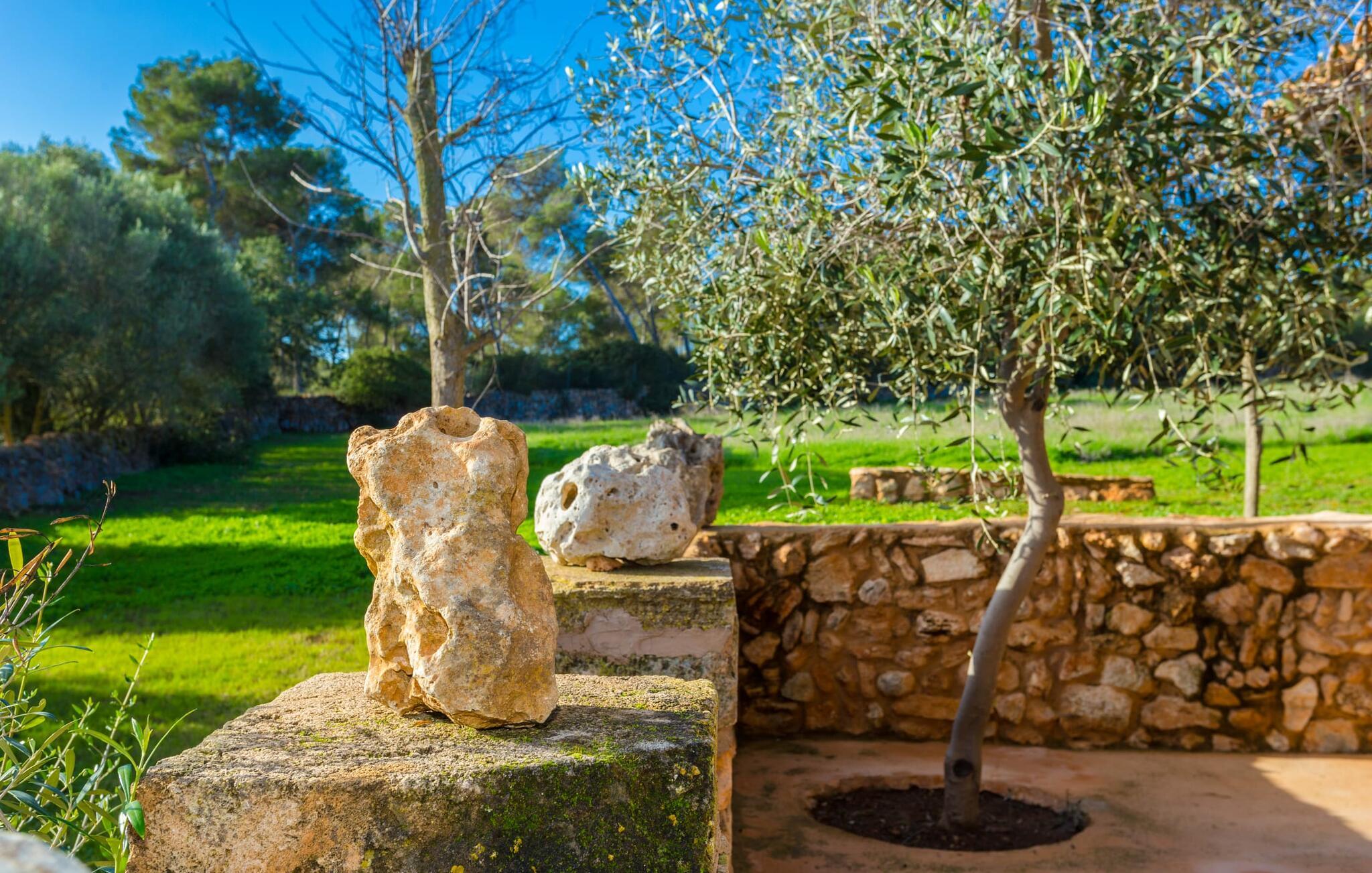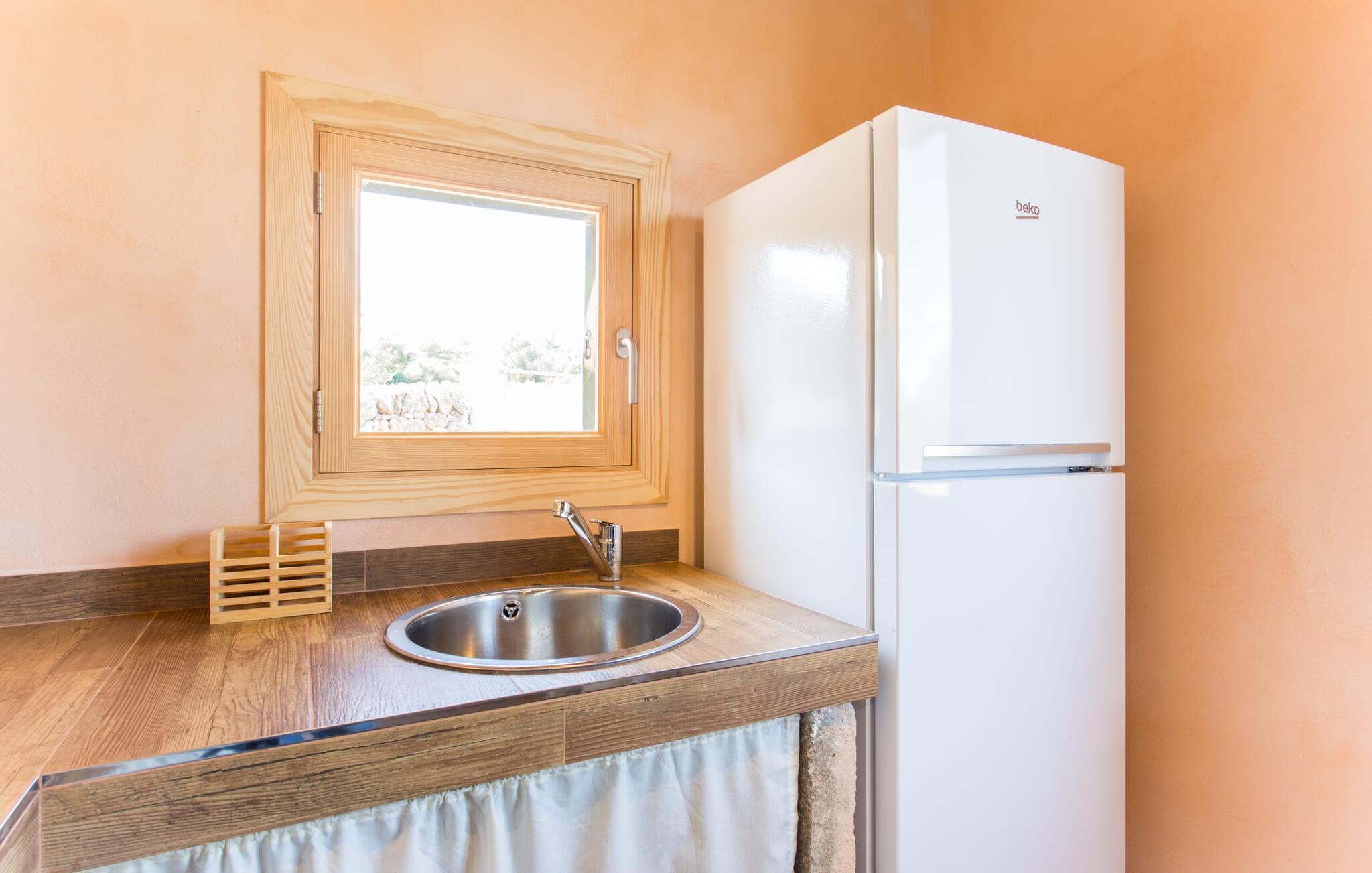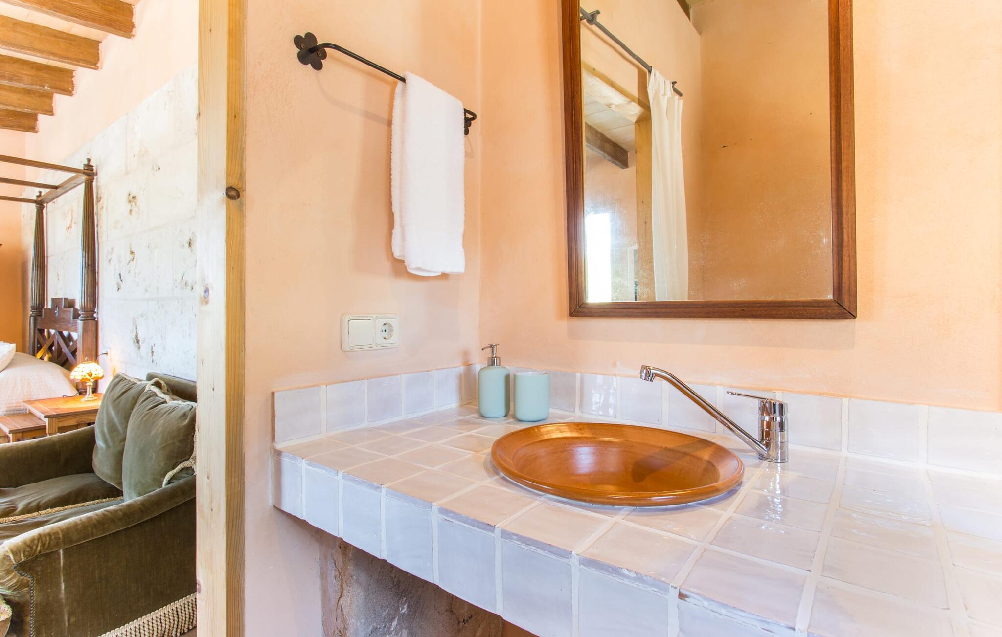 "Sa Cova Ibiza" er et charmerende feriehus i en 100 år gammel villa, smukt renoveret for at respektere traditionen og de landlige omgivelser. Beliggende i idyllisk natur har ejendommen sin egen frugthave og venlige høns, der går frit omkring. Den fælles pool er tilgængelig for gæster på naboejendommene "Sa Cova Cabrea", "Sa Cova Mallorca", "Sa Cova Formentera" og "Sa Cova Tagomago" og giver mulighed for at møde andre feriegæster. Om aftenen er udekøkkenet meget praktisk til at tilberede en lækker grill. Feriehusets rustikke charme er tydelig i naturstensvægge, træbjælker og bløde jordfarver, mens lyset skinner ind gennem de mange vinduespartier. Det smarte soveværelse har en himmelseng og et hyggeligt opholdsområde med tv og sofa. Det tilhørende badeværelse har brusekabine i glas med naturskøn udsigt. Villaens fællesarealer danner de perfekte rammer for socialt samvær, men de rolige omgivelser sikrer, at I nemt kan nyde dette perfekte tilflugtssted. Et smukt lille stykke grønt i en rolig beliggenhed beskriver dette feriehus perfekt. Byen Campos ligger kun 8,7 km væk, og der vil I finde mange butikker til jeres daglige behov. Et ugentligt marked finder sted hver torsdag og lørdag. På cirka 20 minutter i bil kan I nå fantastiske sandstrande som Platja de Sa Rapita og Ses Covetes. Det utrolige hvide sand i Es Trenc er kun omkring 21 km væk, stranden er sat på baggrund af fyrretræer og bølgende klitter og er velegnet til børn takket være dens blide hældning i vandet.