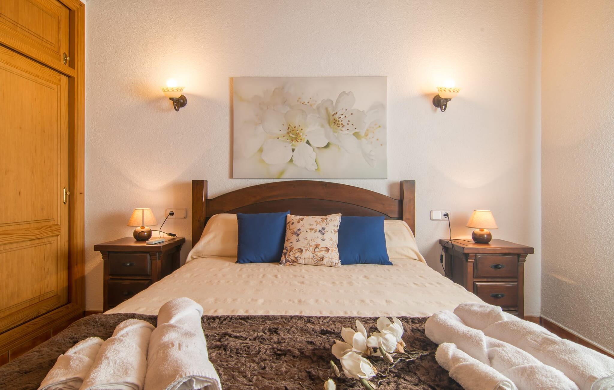Oplev den fortryllende villa "Sa Creu de s'Auma", et fortryllende tilflugtssted omgivet af eksotiske planter og en klar blå himmel. Denne dejlige ejendom inviterer jer til at slappe af, startende med en grussti, der fører til jeres private poolterrasse. Nyd en afslappet svømmetur eller slentre barfodet ned ad den solbeskinnede bakke forbi en luftig pergola, før I synker ned i en farverig hængekøje eller slapper af på luksuriøse liggestole ved poolen. Den overdækkede terrasse er perfekt til udendørs spisning, og en grill venter på jer med friske markedsdelikatesser. Familier vil sætte pris på det dedikerede legeområde for børn, mens sportsentusiaster kan spille bordtennis. Indvendigt har villaen store vinduespartier, der fylder rummet med øens funklende lys, der fremhæver det lyse interiør. En stenbuegang forbinder det hyggelige opholds- og spiseområde med en pejs og et hyggeligt køkken med moderne faciliteter som en mikrobølgeovn og opvaskemaskine. Med to badeværelser og soveværelser designet til komfort - det ene med to enkeltsenge og det andet med generøse dobbeltsenge - er denne villa en ideel tilflugtssted for familier, par og venner, der tilbyder en rolig atmosfære, der vil få jer til at føle jer hjemme. I udkanten af en landsby, kun otte minutter i bil fra centrum af Artà, inviterer denne smukke villa "Sa Creu de s'Auma" jer til et idyllisk skovklædt naturlandskab, ideelt til samtalevandringer. Talrige attraktive seværdigheder kan nemt nås med bil, især det nærliggende kystområde med sine vidunderlige naturlige sandstrande. Den lille kystby Cala Millor med sit smukke turkise vand ligger kun 15 minutters kørsel væk.