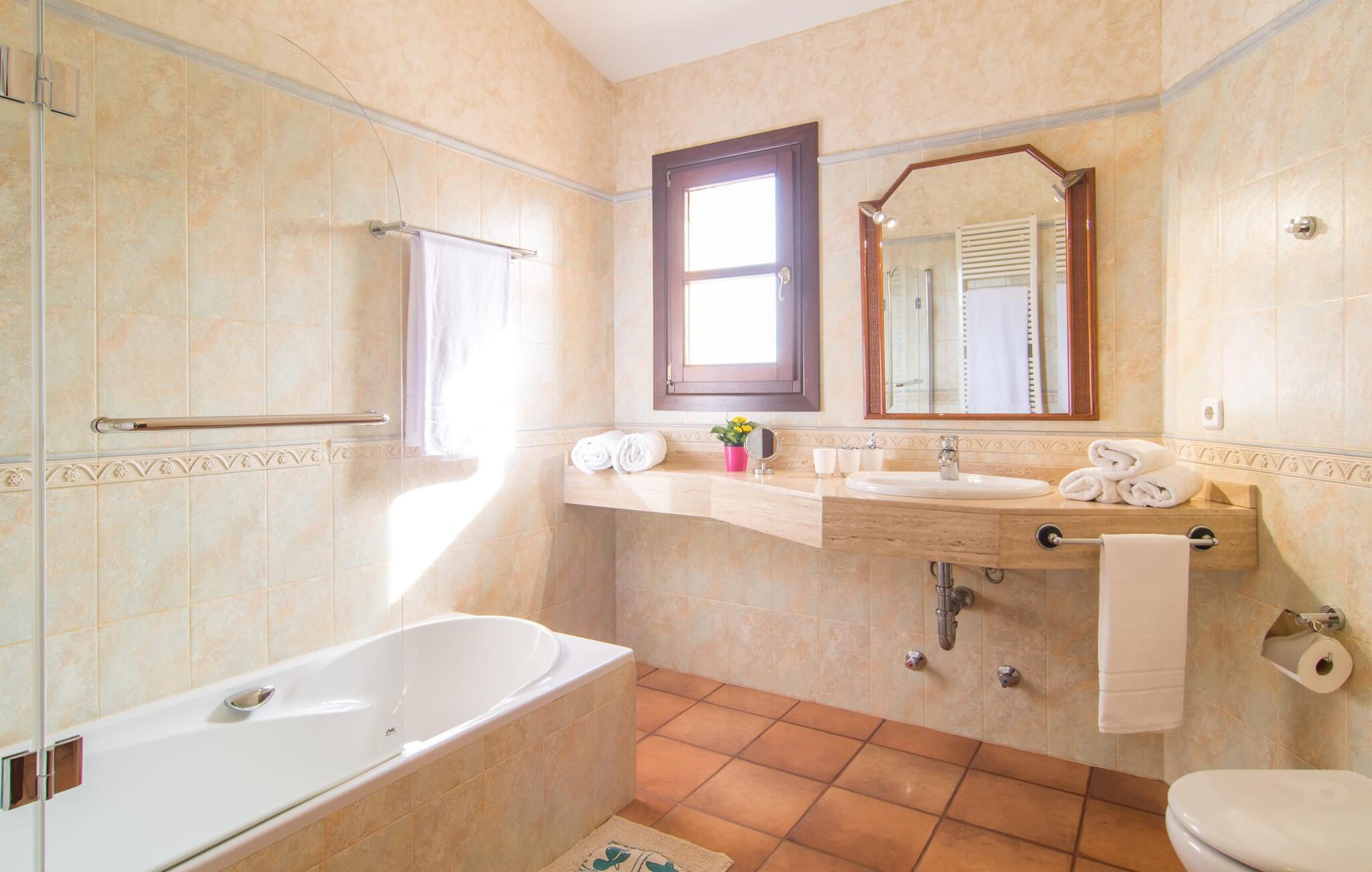 Bo på "Sa Creu Vella Ses Ancores", og I ved, at I har truffet det rigtige valg: Middelhavets landvilla på kanten af Capdepera golfbanen er perfekt for folk, der ønsker at tilbringe deres ferie omgivet af grønne områder og alligevel stille elsker det, butikker, caféer, havet og attraktive strande i nærheden. Parker jeres lejebil klar til at køre på grusparkeringspladsen foran den imponerende indgang. Tag et kig på billederne og glæd jer til det hyggelige loungehjørne på terrassen eller liggestolene ved poolen – det lange bord er allerede dækket til otte personer. Hvad med en forfriskende fadøl ved siden af den rygende grill eller en tur rundt i den 21.000 m² store ejendom med udsigt til himlen og de omkringliggende bjerge? I kan endda blive fristet til at gå op ad de let skrånende bakker bag landvillaen for at nyde udsigten til det funklende hav i det fjerne... Fra indgangspartiet går gæsterne direkte ind i den indbydende lounge med dens rustikke, hyggelige charme. I pejsestuen kan I bestemme, om I vil gøre jer godt tilpas foran det ekstra store fjernsyn eller bare se flammernes knitren. Også her finder I et langbord, perfekt til spisning indendørs, da mørke skyer danner sig over landvillaen. Når I åbner de tre dobbeltdøre til terrassen og haven, har I stadig følelsen af at spise udenfor. Det komfortable køkken, udstyret med de nyeste apparater og et fladskærms-tv, tilbyder den samme lyse atmosfære og inviterer jer til en hurtig morgenmad eller snack. I stueetagen er der også et gæsteværelse med to enkeltsenge og et moderne brusebad. På øverste etage er der tre dobbeltværelser med aircondition. Et privat badeværelse med en kombination af bruser/badekar og et walk-in-closet tilbyder en gruppe familiemedlemmer eller venner endnu mere komfort og privatliv. Altanen er derimod tilgængelig fra gangen, så alle kan nyde den solrige havudsigt. Oplev solrige tider mellem Artà og Capdepera: fra den rustikke, hyggelige finca "Sa Creu Vella Ses Ancores", beliggende nær en berømt golfbane. Nyd den fremragende beliggenhed tæt på to byer med shopping, caféer og restauranter samt strandene omkring det livlige Cala Ratjada. Fra Betlem kan I nå vandrestierne samt andre familievenlige strande og magiske sportsmuligheder for surfere i Alcúdia-bugten på cirka 30 minutter.