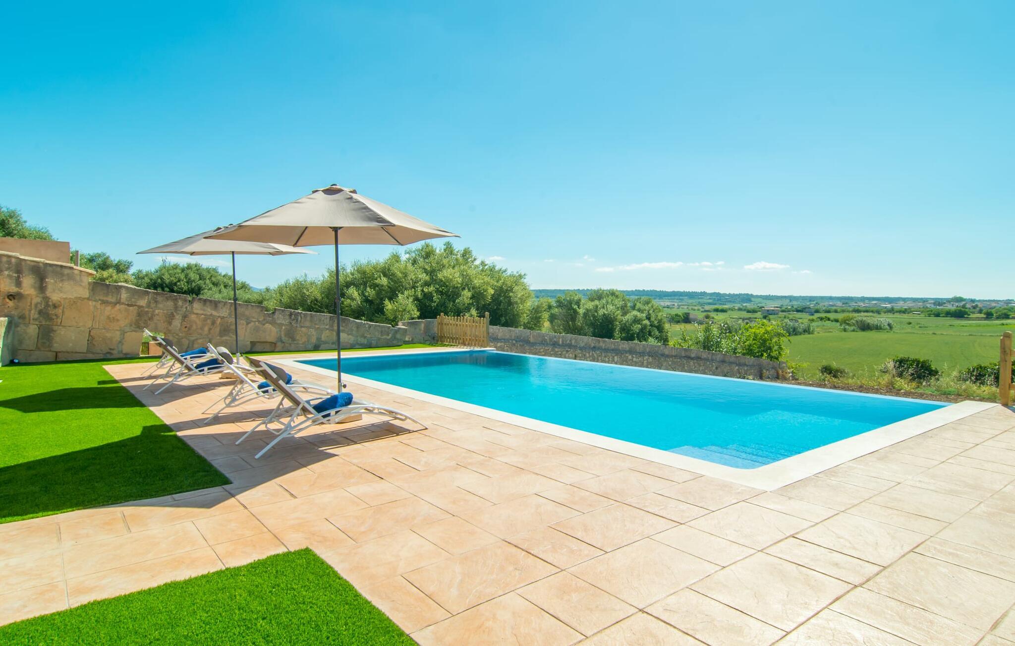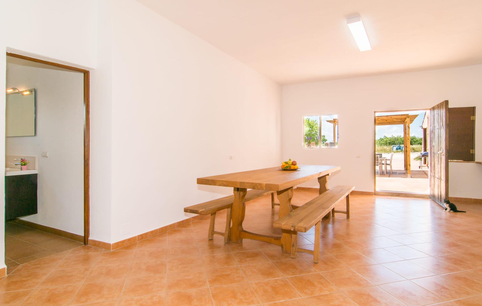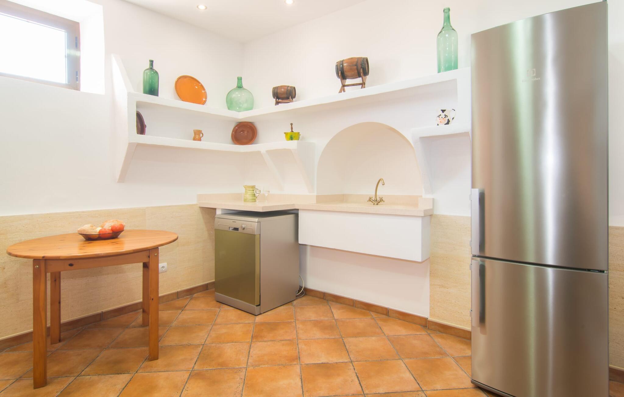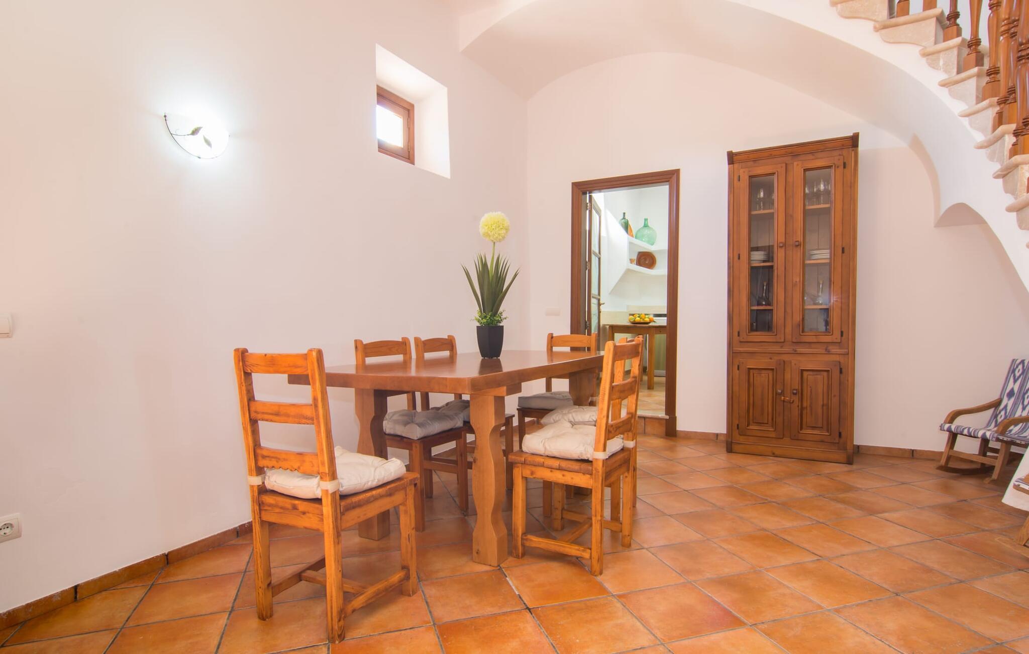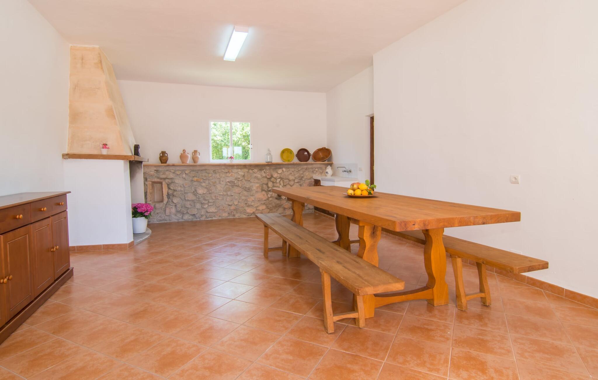 Som noget fra en billedbog hæver "Sa Font Authentic" sig over sletten i trekanten mellem Ariany, Petra og Sineu. Det byder på en betagende udsigt over det omkringliggende landskab - jeres ferie begynder i det øjeblik, I ankommer og får jeres første glimt af den fantastiske natur, der omgiver jer. Ejendommen er dejlig rummelig, men byder samtidig på idylliske områder lige ved siden af huset, der blot udstråler en følelse af hygge, så alle, der holder af meget plads omkring sig, bliver lige så tilfredse som dem, der elsker en hyggelig rede. atmosfære. Den 10 meter lange infinity-pool er den største udendørsattraktion. Bygget i 2017, er det dekoreret med blå mosaiksten og har en trappet indgang og en dyb ende. Mens I glider ubesværet hen over poolen, vil I også nyde en betagende udsigt, der normalt ikke er tilgængelig, når I svømmer. Lignende panoramaoplevelser kan nydes fra udendørsbruseren og på terrassearealerne på begge etager. Om I nyder udsigten fra liggestolen eller spisebordet, direkte under den mallorcanske sol eller under en markise - I bestemmer! Og der er også masser af pusterum indeni. Selvom I rejser med seks personer og yderligere to babyer, vil I finde plads nok til alle på den nederste etage, hvor I bor, som I ikke vil gå glip af, især på ferien. Stedets luftige indre charme er kendetegnet ved lyse vægge, terracotta gulvfliser og bevidst reserveret møblering og dekoration. Stue og spisestue er forbundet med en imponerende buegang og det fuldt udstyrede køkken med delvist frilagte murstenselementer skaber en behagelig kølig atmosfære, som kommer til udtryk i det luksuriøse køle/fryseskab. Brændeovnen giver sammen med nogle smukke ternepolstrede stole endnu en meget vellykket kontrast. Med så meget fred og ro omkring jer, vil I sove skønt i de to soveværelser med dobbeltsenge og soveværelset med to enkeltsenge. Der er plads nok til brusere mm i de to eksisterende badeværelser med dagslys, hvoraf det ene er bekvemt placeret i annekset ved poolen, hvor der også er en anden stor spiseplads, så når vejret er godt kan I slappe af her og nyd at feste indendørs og udendørs. Enhver, der holder ferie her, nyder fremragende forbindelser til den smukke mallorcanske by Petra, mens huset samtidig er omgivet af landskabets ro. Denne del af øen er stadig temmelig stille, med en del villaturisme og ugentlige markeder. For længere gåture gennem byen kan I tage til Manacor, omkring 15 km væk. Den historiske bymidte med sine mange små gader inviterer jer til at shoppe eller bare slappe af. Det lille samfund Sant Joan ligger mindre end 10 km væk og er hjemsted for den store gamle kirke Sant Joan Baptista, som har et storslået interiør. Flere sandstrande kan også hurtigt nås: den brede og ubebyggede naturstrand Son Serra de Marina ligger cirka 25 minutter nordøst, og i øst og sydøst er der flere smukke små bugter, de såkaldte Calas de Mallorca. Den vidunderligt luftige villa "Sa Font Authentic" er perfekt placeret og tilbyder en utrolig fjern udsigt. Udsigten strækker sig så langt som til Petra, kun 1,6 km væk, og de charmerende små gader og gyldenbrune stenhuse udgør en fremragende kulisse for jeres daglige ærinder. De smukke sandstrande i Alcúdia-bugten samt naturlige strande længere mod øst, herunder Cala Varques, kan nemt nås med lejebil.