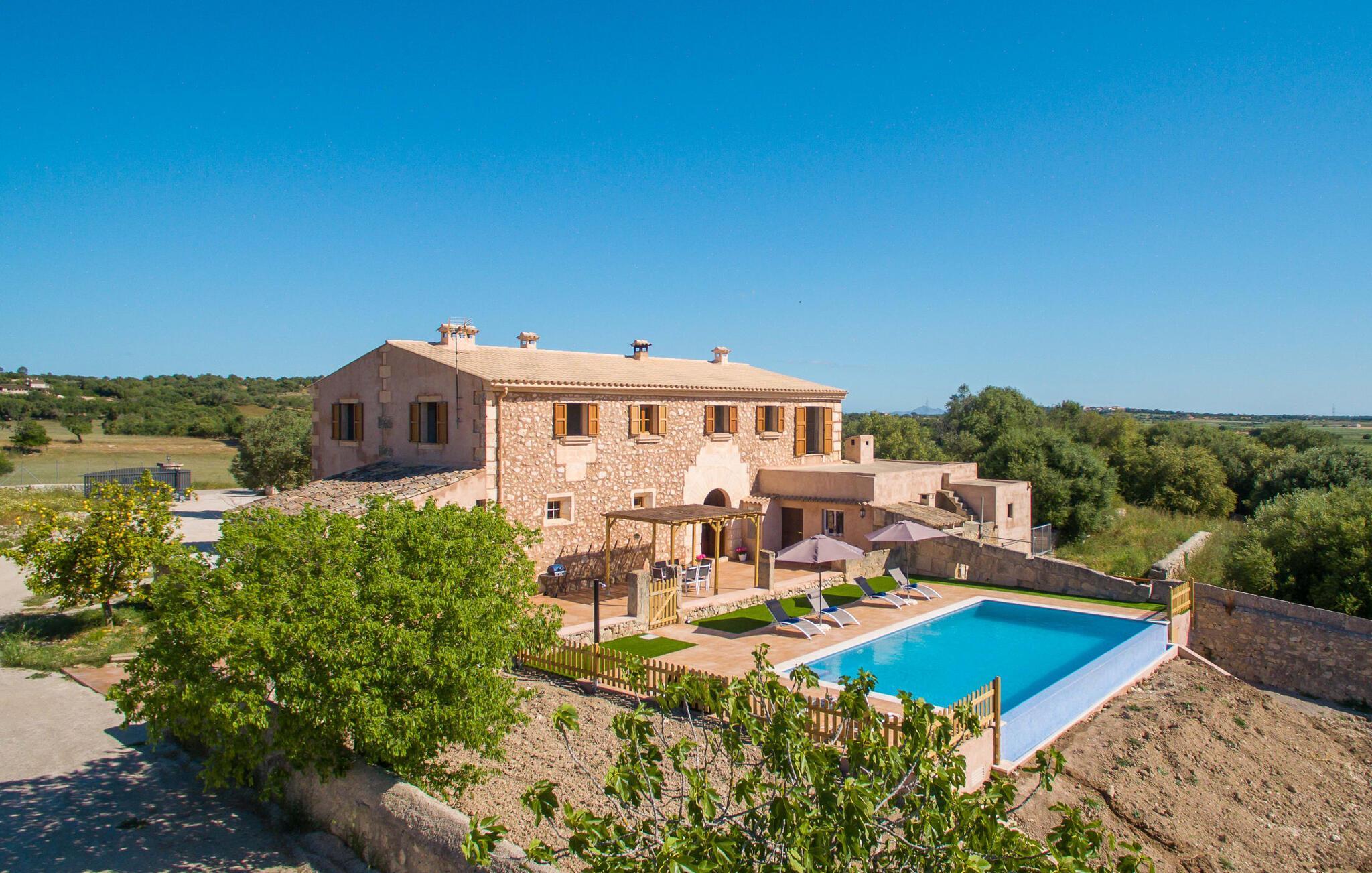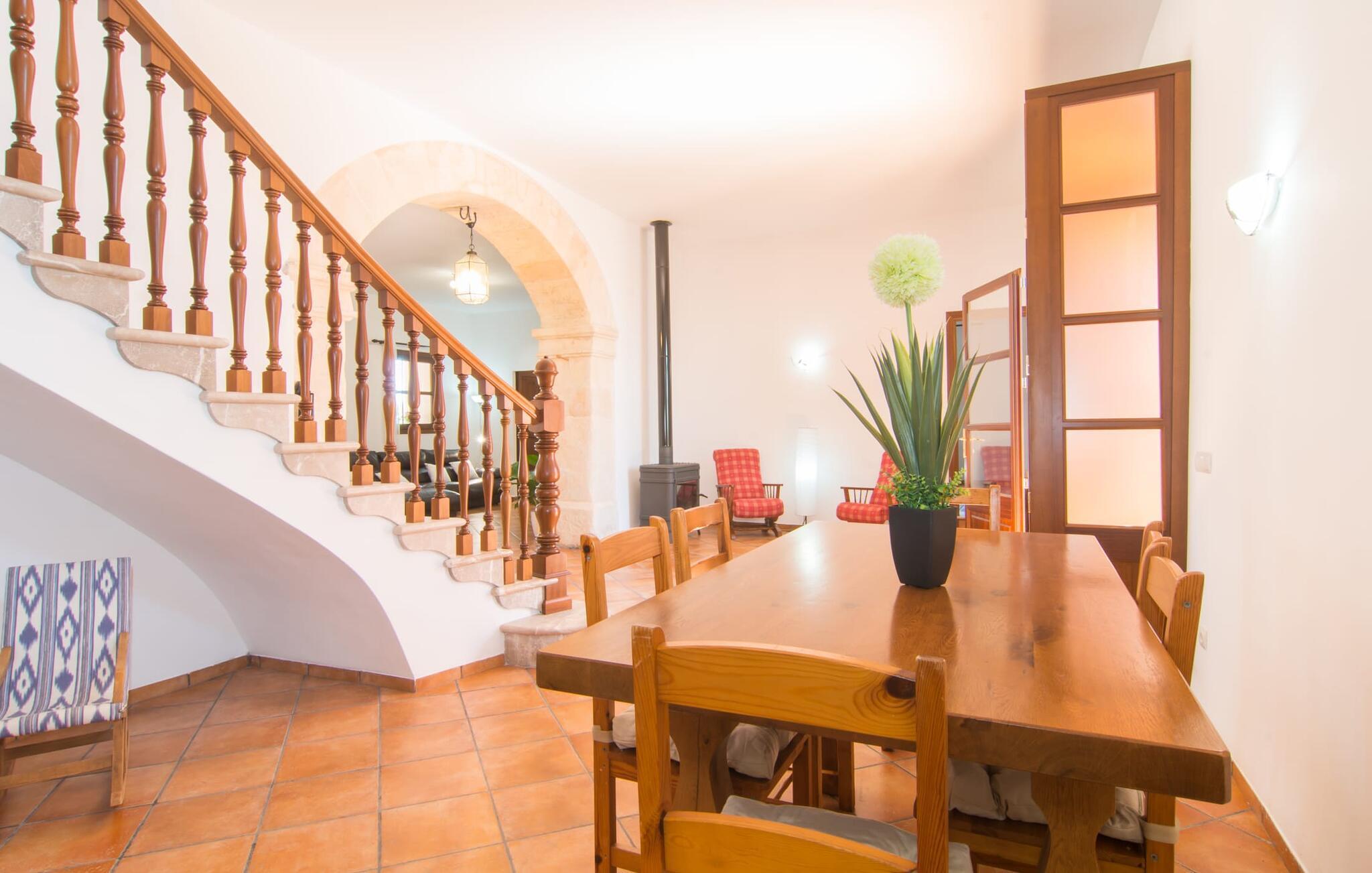 Som noget fra en billedbog hæver "Sa Font Authentic" sig over sletten i trekanten mellem Ariany, Petra og Sineu. Det byder på en betagende udsigt over det omkringliggende landskab - din ferie begynder i det øjeblik, du ankommer og får dit første glimt af den fantastiske natur, der omgiver dig. Ejendommen er dejlig rummelig, men byder samtidig på idylliske områder lige ved siden af huset, der blot udstråler en følelse af hygge, så alle, der holder af meget plads omkring sig, bliver lige så tilfredse som dem, der elsker en hyggelig rede. atmosfære. Den 10 meter lange infinity-pool er den største udendørsattraktion. Bygget i 2017, er det dekoreret med blå mosaiksten og har en trappet indgang og en dyb ende. Mens du glider ubesværet hen over poolen, vil du også nyde en betagende udsigt, der normalt ikke er tilgængelig, når du svømmer. Lignende panoramaoplevelser kan nydes fra udendørsbruseren og på terrassearealerne på begge etager. Om du nyder udsigten fra liggestolen eller spisebordet, direkte under den mallorcanske sol eller under en markise - du bestemmer! Dette er et Fincallorca feriehus. Og der er også masser af pusterum indeni. Selvom du rejser med seks personer og yderligere to babyer, vil du finde plads nok til alle på den nederste etage, hvor du bor, som du ikke vil gå glip af, især på ferien. Stedets luftige indre charme er kendetegnet ved lyse vægge, terracotta gulvfliser og bevidst reserveret møblering og dekoration. Stue og spisestue er forbundet med en imponerende buegang og det fuldt udstyrede køkken med delvist frilagte murstenselementer skaber en behagelig kølig atmosfære, som kommer til udtryk i det luksuriøse køle/fryseskab. Brændeovnen giver sammen med nogle smukke ternepolstrede stole endnu en meget vellykket kontrast. Med så meget fred og ro omkring dig, vil du sove skønt i de to soveværelser med dobbeltsenge og soveværelset med to enkeltsenge. Der er plads nok til brusere mm i de to eksisterende badeværelser med dagslys, hvoraf det ene er bekvemt placeret i annekset ved poolen, hvor der også er en anden stor spiseplads, så når vejret er godt kan I slappe af her og nyd at feste indendørs og udendørs. Enhver, der holder ferie her, nyder fremragende forbindelser til den smukke mallorcanske by Petra, mens huset samtidig er omgivet af landskabets ro. Denne del af øen er stadig temmelig stille, med en del villaturisme og ugentlige markeder. For længere gåture gennem byen kan du tage til Manacor, omkring 15 km væk. Den historiske bymidte med sine mange små gader inviterer dig til at shoppe eller bare slappe af. Det lille samfund Sant Joan ligger mindre end 10 km væk og er hjemsted for den store gamle kirke Sant Joan Baptista, som har et storslået interiør. Flere sandstrande kan også hurtigt nås: den brede og ubebyggede naturstrand Son Serra de Marina ligger cirka 25 minutter nordøst, og i øst og sydøst er der flere smukke små bugter, de såkaldte Calas de Mallorca. Den vidunderligt luftige villa "Sa Font Authentic" er perfekt placeret og tilbyder en utrolig fjern udsigt. Udsigten strækker sig så langt som til Petra, kun 1,6 km væk, og de charmerende små gader og gyldenbrune stenhuse udgør en fremragende kulisse for dine daglige ærinder. De smukke sandstrande i Alcúdia-bugten samt naturlige strande længere mod øst, såsom Cala Varques, kan nemt nås med lejebil.