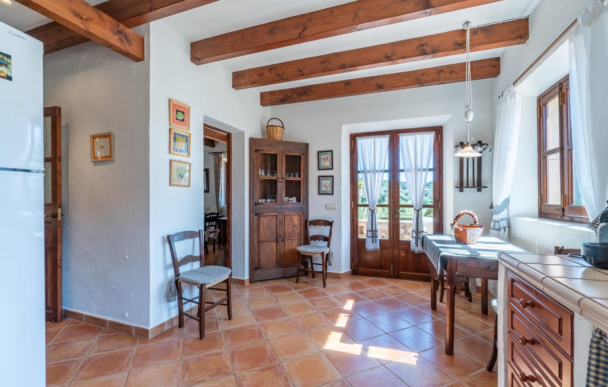 Med den smukke finca "Sa Font Calenta" kan I se frem til en ferie i en typisk mallorcansk ejendom. Det yndefulde stenbrudshus minder om Mallorcas historie og er idyllisk beliggende på landet, langt væk fra masseturismen. Så langt øjet rækker, grønt landskab, middelhavsdiversitet med citrus- og oliventræer, oleander og meget mere. Den smukt anlagte have smelter næsten problemfrit ind i det store landskab. Natursten terrasser foret med høje palmer inviterer jer til at blive hængende og er også ideelle til solbadning på de medfølgende liggestole eller i skyggen under den delvist overdækkede terrasse direkte ved huset. Den udendørs spiseplads giver jer mulighed for at nyde jeres morgenkaffe i vidunderlig privatliv. Ved grillen kan I dog bruge de friske produkter, der tilbydes på det ugentlige marked i Artà omkring Plaça Conqueridor efter mallorcanske opskrifter. Naturglade familier hygger sig ikke kun i haven, men også ved bordtennisbordet, som ligger lidt væk fra huset. I kan også opleve familievenlighed inde i det indbydende sommerhus. Mallorcansk gæstfrihed og jordnær komfort venter jer her. Solen skinner gennem trægittervinduerne ind i det autentiske gæstehus, hvor naturmaterialer som træ og terracotta-fliser hersker. Antikke dekorative genstande fuldender den rustikke atmosfære. En hyggelig stue med pejs og tilhørende spiseplads giver en behagelig følelse af velvære for hele familien på alle tider af året. Bag spisepladsen ligger det hyggelige spisekøkken med murstensskabe og den tekniske komfort, der kræves til selvforplejning. Køkkenet har naturligvis direkte udgang til den udendørs terrasse. I den anden del af det charmerende landsted er der to soveværelser (med to enkeltsenge eller en fransk dobbeltseng) og brusebadeværelset. Kort sagt: den rustikke landfinca "Sa Font Calenta" er et ideelt rejsemål for naturelskende familier. Vi ser frem til jeres besøg! Den rustikke naturstensfinca "Sa Font Calenta" er indlejret i Middelhavets overdådighed på Mallorca og en paradisisk have. Den familievenlige indkvartering ligger omkring 7 minutters kørsel fra Artà. På grund af dens nærhed til landevejen, som kun lejlighedsvis er hørbar, kan landsbyen nås hurtigt. Den smukke middelalderby byder på kultur, et livligt ugentligt marked om tirsdagen samt andre shoppingmuligheder og gode restauranter. Smukke sandstrande som Cala Mesquida, Canyamel eller Cala Ratjada kan nås på kun 16 minutter i bil.