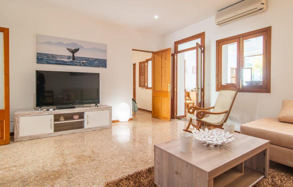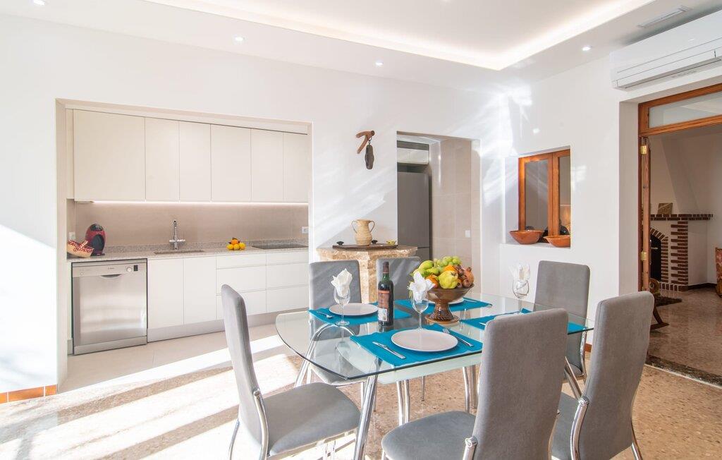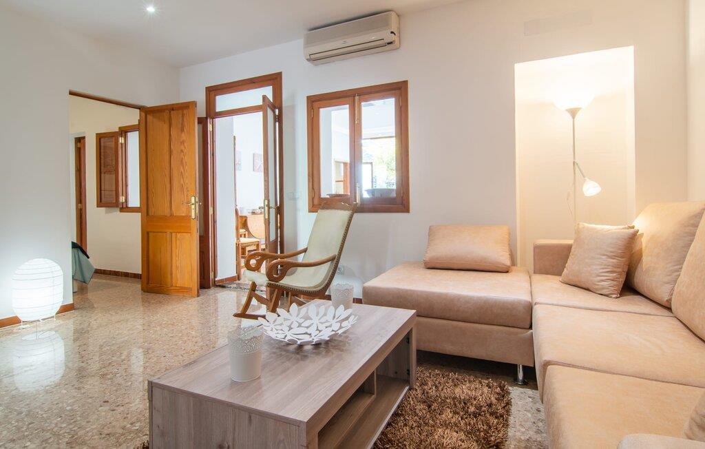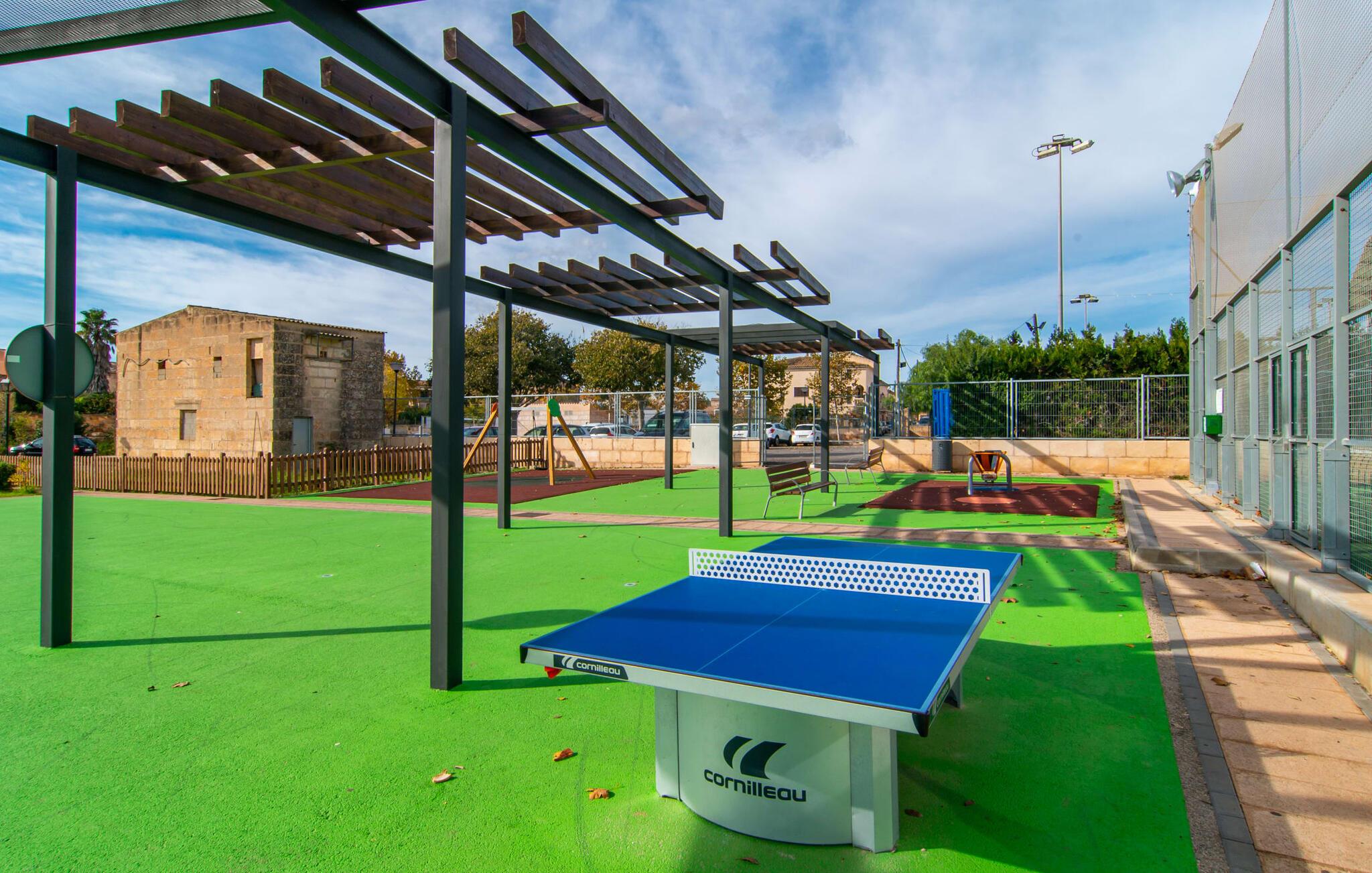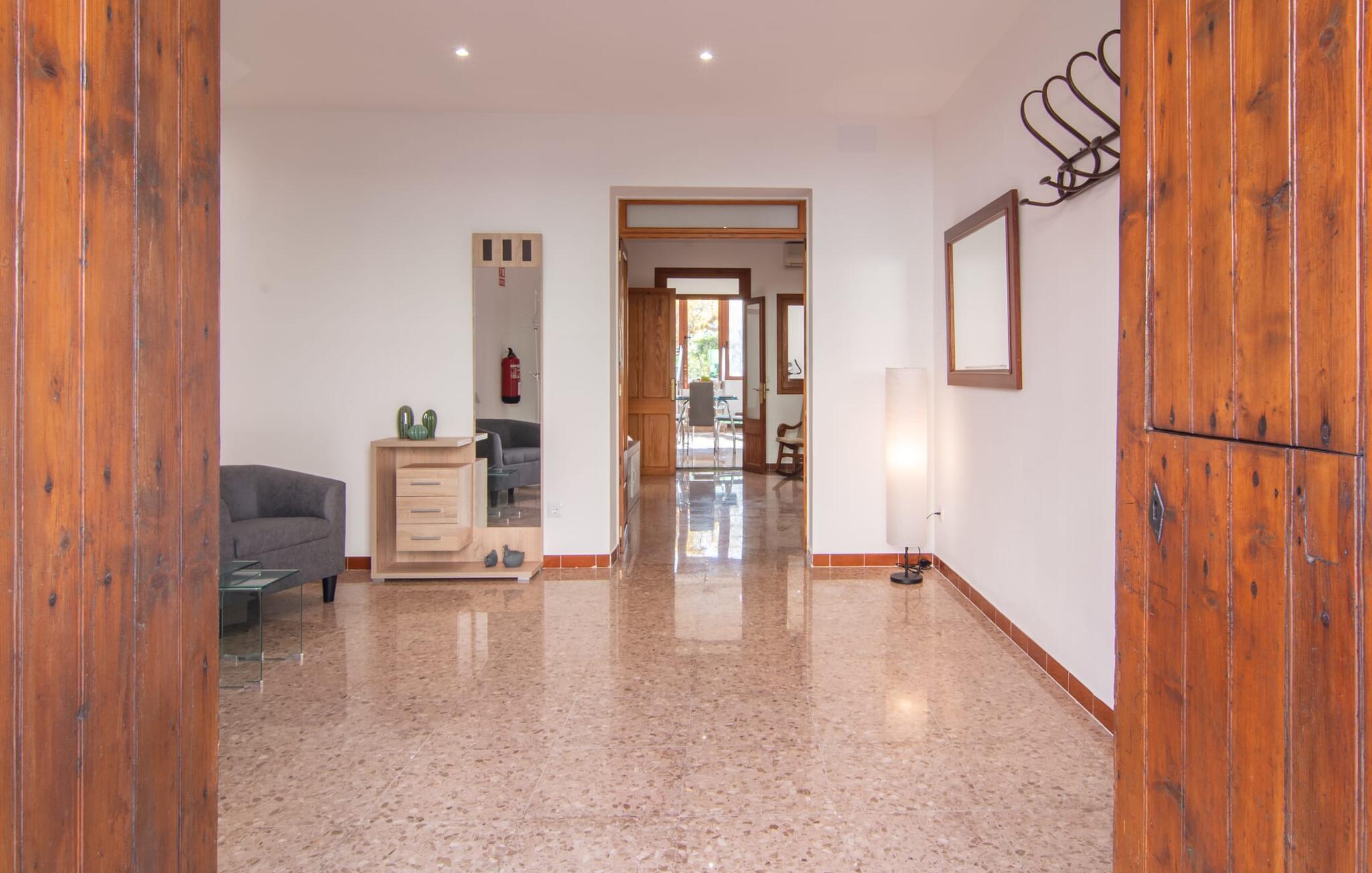 Rækkehuset "Sa Llimonera" ligger midt i den rolige landsby Son Carrió og byder på forfriskning og afslapning - og ikke kun på grund af sit navn, som betyder "citrontræ": Den lille hyggelige terrasse i den bagerste gårdhave sikrer en behageligt ophold med en smuk udsigt statelige, skyggefulde træ. Her kan I nyde den afsondrede fred og ro om morgenen og forberede jer til en begivenhedsrig dag med et glas friskpresset juice. Hvis I rejser med børn, er den nærliggende legeplads med bordtennisbord en anden attraktion i dette hus. Interiøret i det lille hus imponerer med sin klare, lyse rumindretning: Det fremragende udstyrede køkken og den tilstødende spisestue med et indendørs springvand som en rustik, dekorativ tilføjelse fungerer som centrum for jeres kulinariske opdagelsesrejser. Det moderne glasbord giver plads nok til alle gæster. Og hvis I har besøgende i villaen, er der masser af ekstra stole til rådighed. De lyse farver og det smarte lyskoncept skaber en ryddig stemning, som også kan mærkes i stuen med en behagelig sofa og fladskærms-tv. Selvom pejsen ikke kan bruges i øjeblikket, bidrager den alligevel til boligens hyggefaktor. Ud over et badeværelse, der er tilgængeligt for alle, har et af de tre soveværelser den særlige luksus ved sit eget badeværelse. To af værelserne er hver udstyret med to enkeltsenge, mens det tredje lidt mindre værelse tilbyder den rejsende en god nats søvn. I et andet rum lige ved indgangen til huset finder I et klædeskab og to lænestole, så huset giver plads nok til at trække sig tilbage, selv når det er fuldt besat. Den østlige del af Mallorca er en særlig fryd for øjet: Stort set uudviklet kan I skue ud i det fjerne, mens den perfekte strandoplevelse altid kun er et stenkast væk takket være de varierede kystsektioner. Uanset om I tager til Costa de los Pinos, 12 km væk, for at nyde en dag på stranden ved siden af fyrretræer, fordybe jer i Portocristos maritime flair eller besøge en af de rustikke taverner i Son Severa - der er utallige muligheder i denne særligt attraktive region. Turistinfrastrukturen er særligt veludviklet i Cala Ratjada og Cala Millor. Her kan I forvente en række aften- og nataktiviteter, der er uden sidestykke. Den nyromanske kirke Sant Miquel i jeres feriested Son Carrió er også et besøg værd. Huset ligger direkte på en gade, der kan høres, men stedet er lille og roligt. Hvis I leder efter et insider-tip uden for alfarvej, kan I tage til bugten Cala Petita, 7 km væk. Fire berømte golfbaner, herunder Pula Golf Course, ligger blot et par minutters kørsel derfra. Rækkehuset "Sa Llimonera" introducerer jer til glæderne ved det mallorcanske landsbyliv: Son Carrió har kun 1.500 indbyggere. Portocristo er omgivet af uberørt natur, ideel til vandreture og ridning, kun 5,5 km væk. Her kan I slentre langs strandpromenaden eller prøve forskellige former for vandsport. Cala Millor, 7 km væk, er kendt for sit natteliv, mens romantikere vil få noget for pengene i kunstnerbyen Artà (17 km).