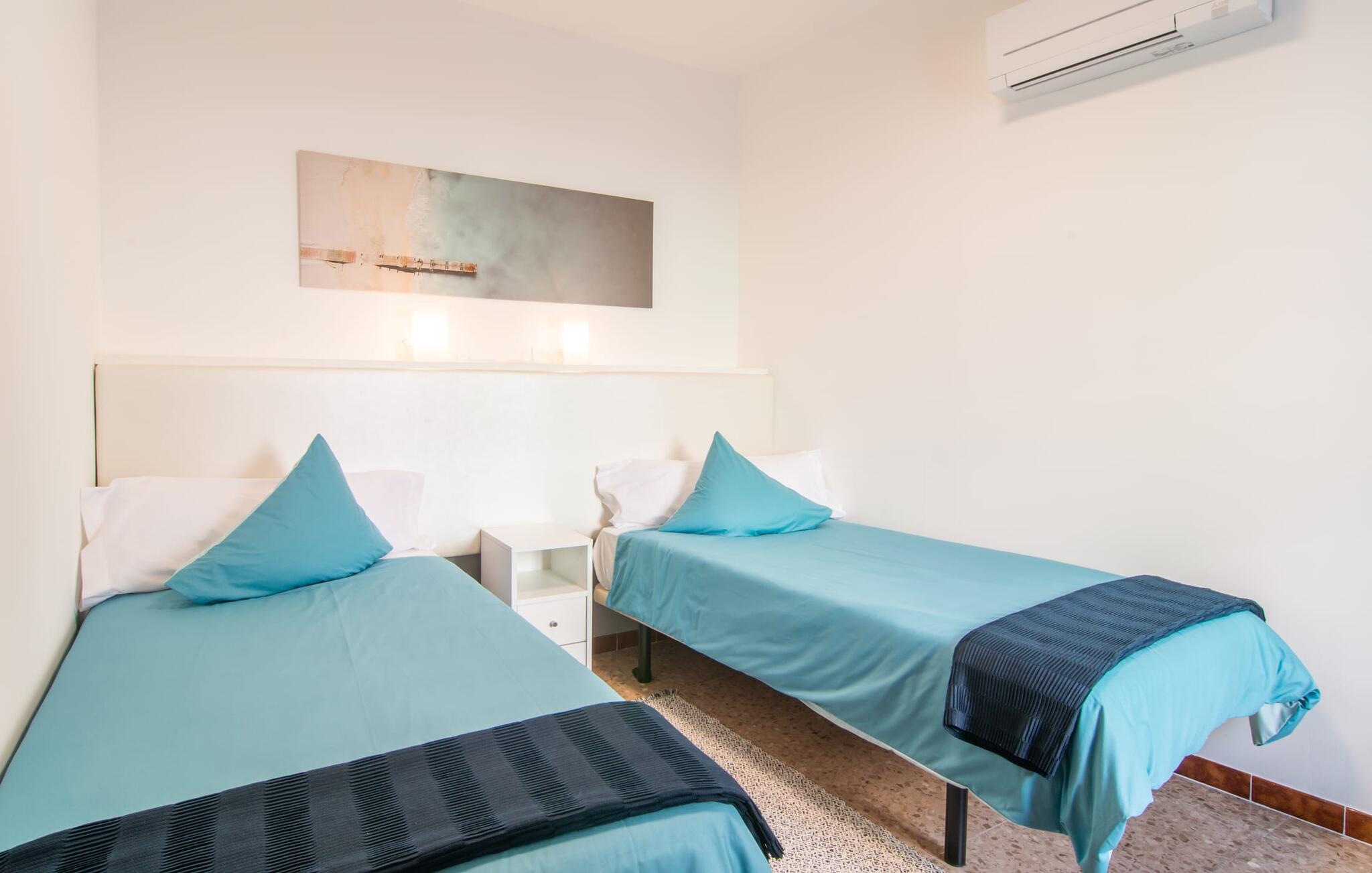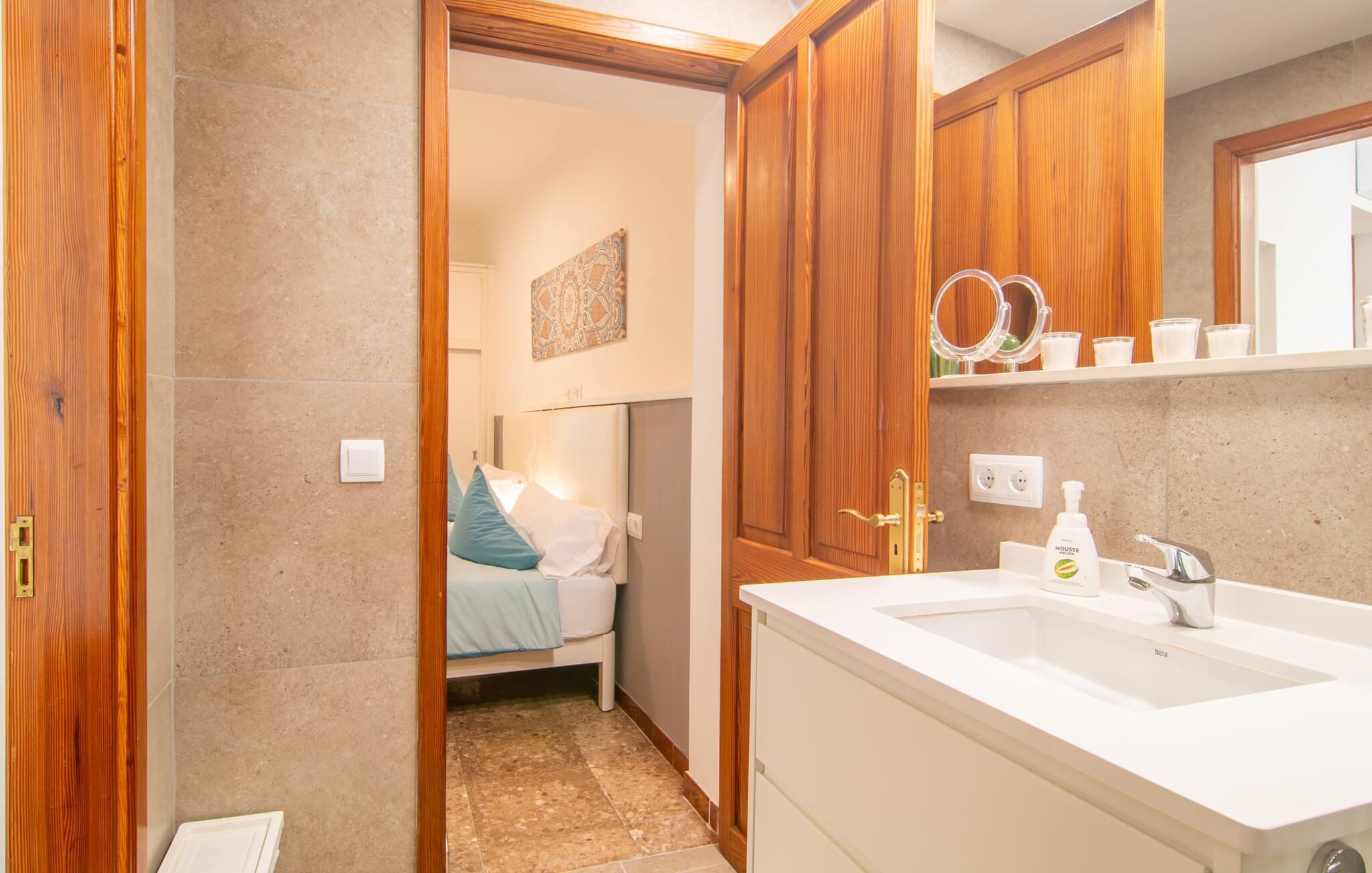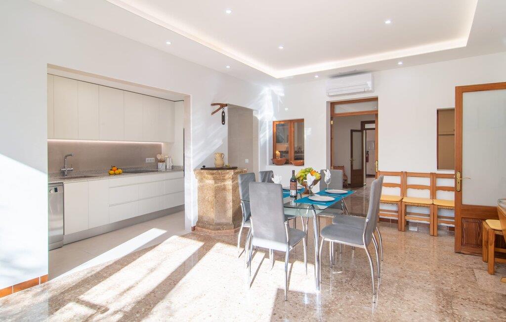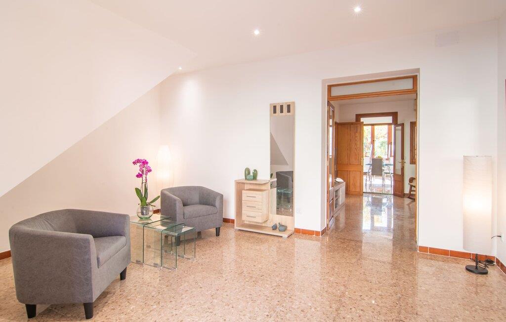 Rækkehuset "Sa Llimonera" ligger midt i den rolige landsby Son Carrió og byder på forfriskning og afslapning - og ikke kun på grund af sit navn, som betyder "citrontræ": Den lille hyggelige terrasse i den bagerste gårdhave sikrer en behageligt ophold med en smuk udsigt statelige, skyggefulde træ. Her kan I nyde den afsondrede fred og ro om morgenen og forberede jer til en begivenhedsrig dag med et glas friskpresset juice. Hvis I rejser med børn, er den nærliggende legeplads med bordtennisbord en anden attraktion i dette hus. Interiøret i det lille hus imponerer med sin klare, lyse rumindretning: Det fremragende udstyrede køkken og den tilstødende spisestue med et indendørs springvand som en rustik, dekorativ tilføjelse fungerer som centrum for jeres kulinariske opdagelsesrejser. Det moderne glasbord giver plads nok til alle gæster. Og hvis I har besøgende i villaen, er der masser af ekstra stole til rådighed. De lyse farver og det smarte lyskoncept skaber en ryddig stemning, som også kan mærkes i stuen med en behagelig sofa og fladskærms-tv. Selvom pejsen ikke kan bruges i øjeblikket, bidrager den alligevel til boligens hyggefaktor. Ud over et badeværelse, der er tilgængeligt for alle, har et af de tre soveværelser den særlige luksus ved sit eget badeværelse. To af værelserne er hver udstyret med to enkeltsenge, mens det tredje lidt mindre værelse tilbyder den rejsende en god nats søvn. I et andet rum lige ved indgangen til huset finder I et klædeskab og to lænestole, så huset giver plads nok til at trække sig tilbage, selv når det er fuldt besat. Den østlige del af Mallorca er en særlig fryd for øjet: Stort set uudviklet kan I skue ud i det fjerne, mens den perfekte strandoplevelse altid kun er et stenkast væk takket være de varierede kystsektioner. Uanset om I tager til Costa de los Pinos, 12 km væk, for at nyde en dag på stranden ved siden af fyrretræer, fordybe jer i Portocristos maritime flair eller besøge en af de rustikke taverner i Son Severa - der er utallige muligheder i denne særligt attraktive region. Turistinfrastrukturen er særligt veludviklet i Cala Ratjada og Cala Millor. Her kan I forvente en række aften- og nataktiviteter, der er uden sidestykke. Den nyromanske kirke Sant Miquel i jeres feriested Son Carrió er også et besøg værd. Huset ligger direkte på en gade, der kan høres, men stedet er lille og roligt. Hvis I leder efter et insider-tip uden for alfarvej, kan I tage til bugten Cala Petita, 7 km væk. Fire berømte golfbaner, herunder Pula Golf Course, ligger blot et par minutters kørsel derfra. Rækkehuset "Sa Llimonera" introducerer jer til glæderne ved det mallorcanske landsbyliv: Son Carrió har kun 1.500 indbyggere. Portocristo er omgivet af uberørt natur, ideel til vandreture og ridning, kun 5,5 km væk. Her kan I slentre langs strandpromenaden eller prøve forskellige former for vandsport. Cala Millor, 7 km væk, er kendt for sit natteliv, mens romantikere vil få noget for pengene i kunstnerbyen Artà (17 km).