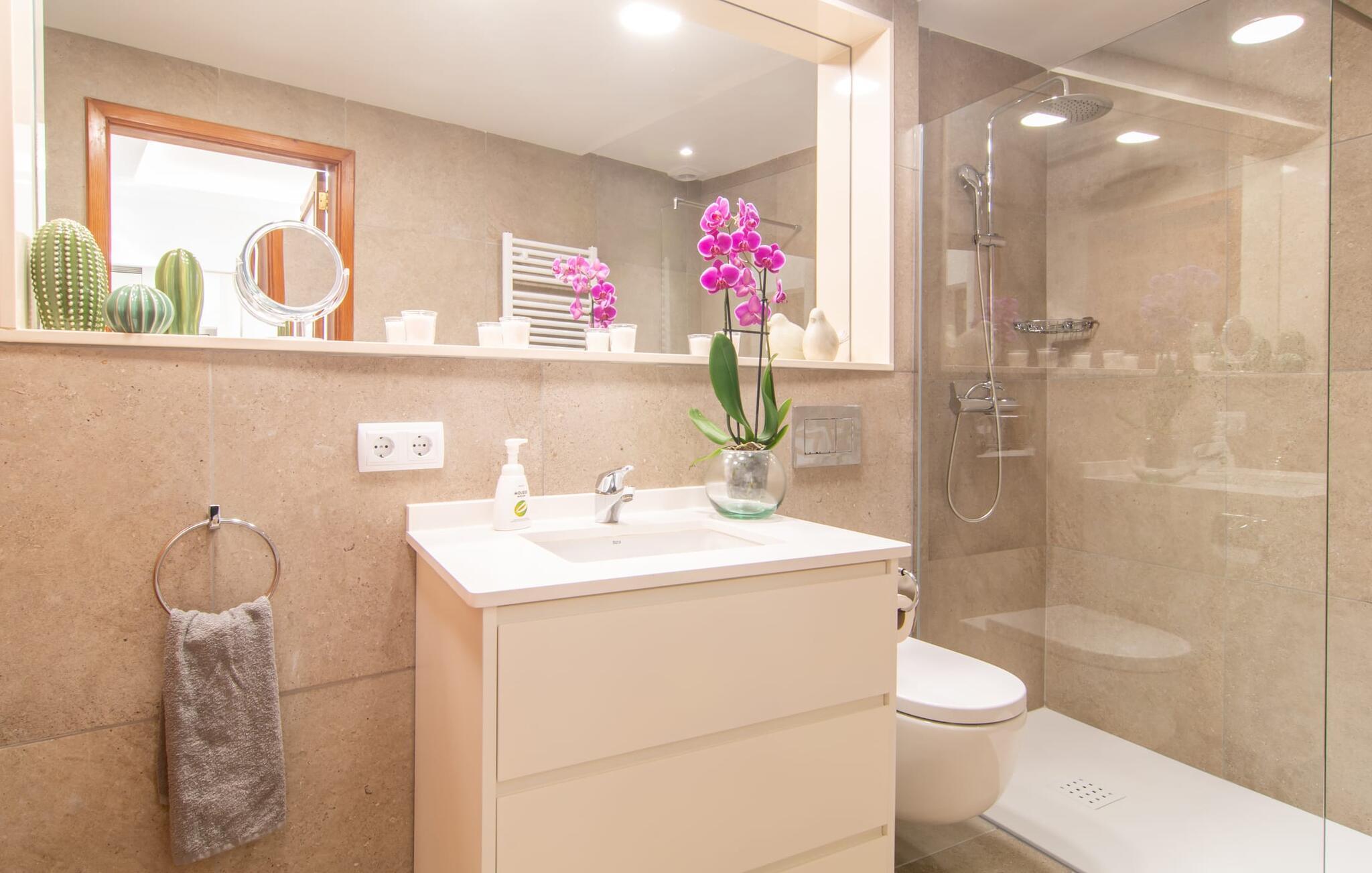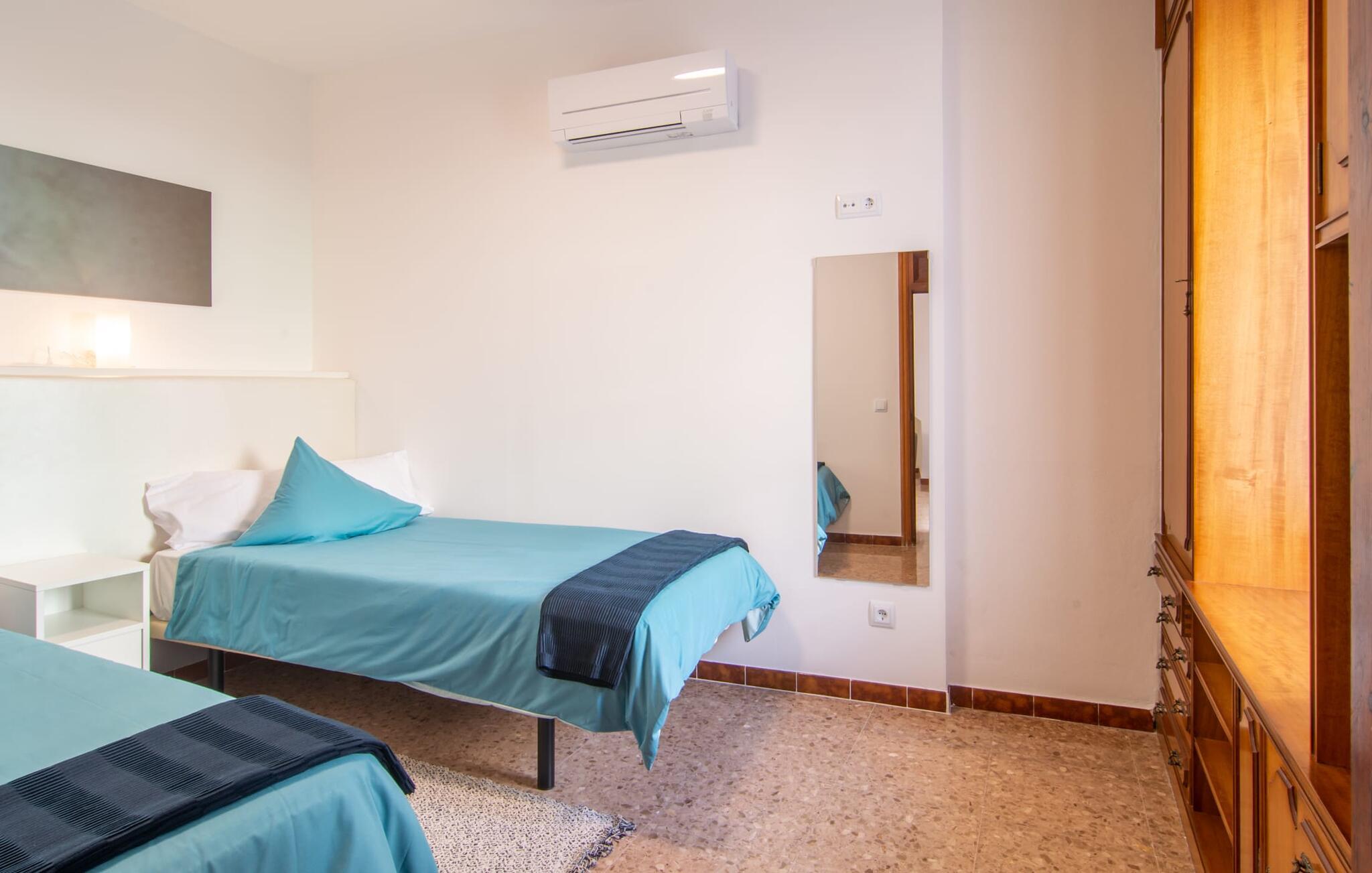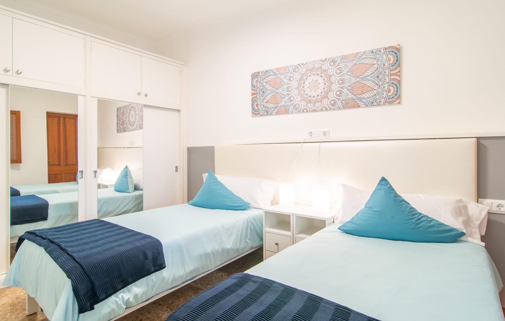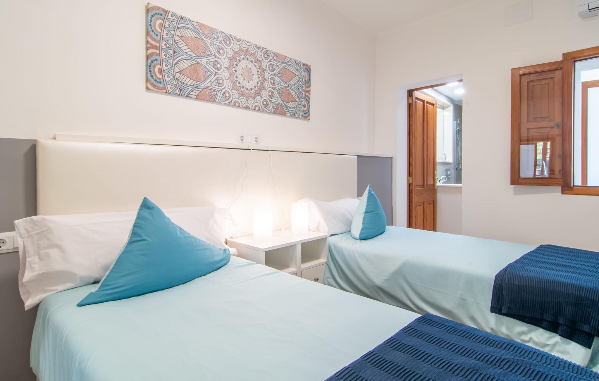 Rækkehuset "Sa Llimonera" ligger midt i den rolige landsby Son Carrió og byder på forfriskning og afslapning - og ikke kun på grund af sit navn, som betyder "citrontræ": Den lille hyggelige terrasse i den bagerste gårdhave sikrer en behageligt ophold med en smuk udsigt statelige, skyggefulde træ. Her kan I nyde den afsondrede fred og ro om morgenen og forberede jer til en begivenhedsrig dag med et glas friskpresset juice. Hvis I rejser med børn, er den nærliggende legeplads med bordtennisbord en anden attraktion i dette hus. Interiøret i det lille hus imponerer med sin klare, lyse rumindretning: Det fremragende udstyrede køkken og den tilstødende spisestue med et indendørs springvand som en rustik, dekorativ tilføjelse fungerer som centrum for jeres kulinariske opdagelsesrejser. Det moderne glasbord giver plads nok til alle gæster. Og hvis I har besøgende i villaen, er der masser af ekstra stole til rådighed. De lyse farver og det smarte lyskoncept skaber en ryddig stemning, som også kan mærkes i stuen med en behagelig sofa og fladskærms-tv. Selvom pejsen ikke kan bruges i øjeblikket, bidrager den alligevel til boligens hyggefaktor. Ud over et badeværelse, der er tilgængeligt for alle, har et af de tre soveværelser den særlige luksus ved sit eget badeværelse. To af værelserne er hver udstyret med to enkeltsenge, mens det tredje lidt mindre værelse tilbyder den rejsende en god nats søvn. I et andet rum lige ved indgangen til huset finder I et klædeskab og to lænestole, så huset giver plads nok til at trække sig tilbage, selv når det er fuldt besat. Den østlige del af Mallorca er en særlig fryd for øjet: Stort set uudviklet kan I skue ud i det fjerne, mens den perfekte strandoplevelse altid kun er et stenkast væk takket være de varierede kystsektioner. Uanset om I tager til Costa de los Pinos, 12 km væk, for at nyde en dag på stranden ved siden af fyrretræer, fordybe jer i Portocristos maritime flair eller besøge en af de rustikke taverner i Son Severa - der er utallige muligheder i denne særligt attraktive region. Turistinfrastrukturen er særligt veludviklet i Cala Ratjada og Cala Millor. Her kan I forvente en række aften- og nataktiviteter, der er uden sidestykke. Den nyromanske kirke Sant Miquel i jeres feriested Son Carrió er også et besøg værd. Huset ligger direkte på en gade, der kan høres, men stedet er lille og roligt. Hvis I leder efter et insider-tip uden for alfarvej, kan I tage til bugten Cala Petita, 7 km væk. Fire berømte golfbaner, herunder Pula Golf Course, ligger blot et par minutters kørsel derfra. Rækkehuset "Sa Llimonera" introducerer jer til glæderne ved det mallorcanske landsbyliv: Son Carrió har kun 1.500 indbyggere. Portocristo er omgivet af uberørt natur, ideel til vandreture og ridning, kun 5,5 km væk. Her kan I slentre langs strandpromenaden eller prøve forskellige former for vandsport. Cala Millor, 7 km væk, er kendt for sit natteliv, mens romantikere vil få noget for pengene i kunstnerbyen Artà (17 km).