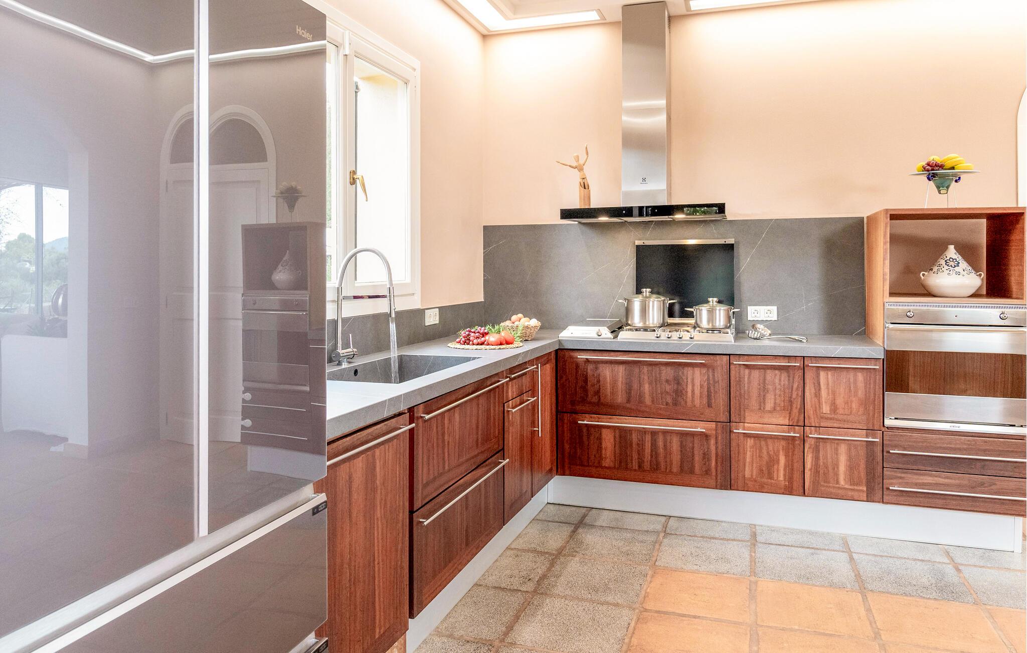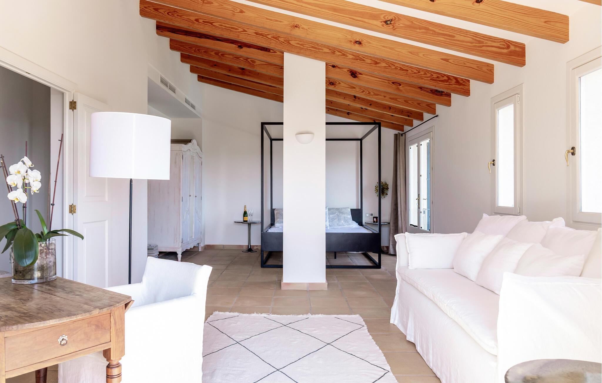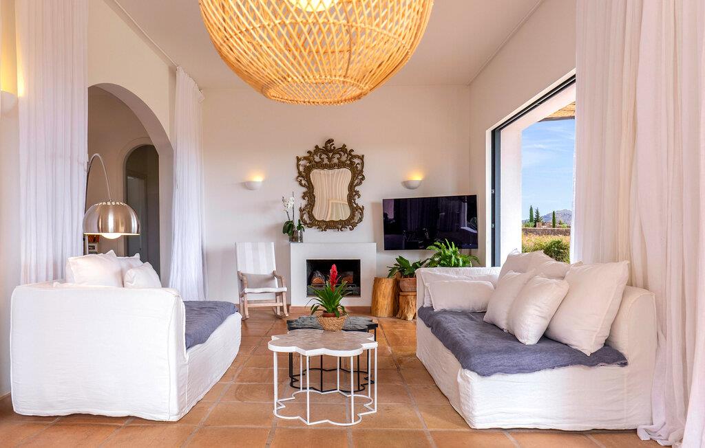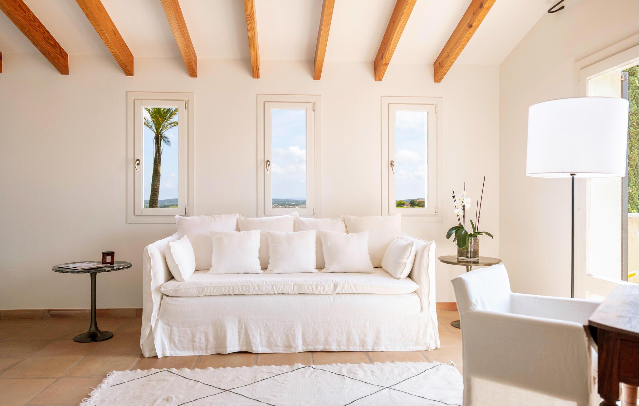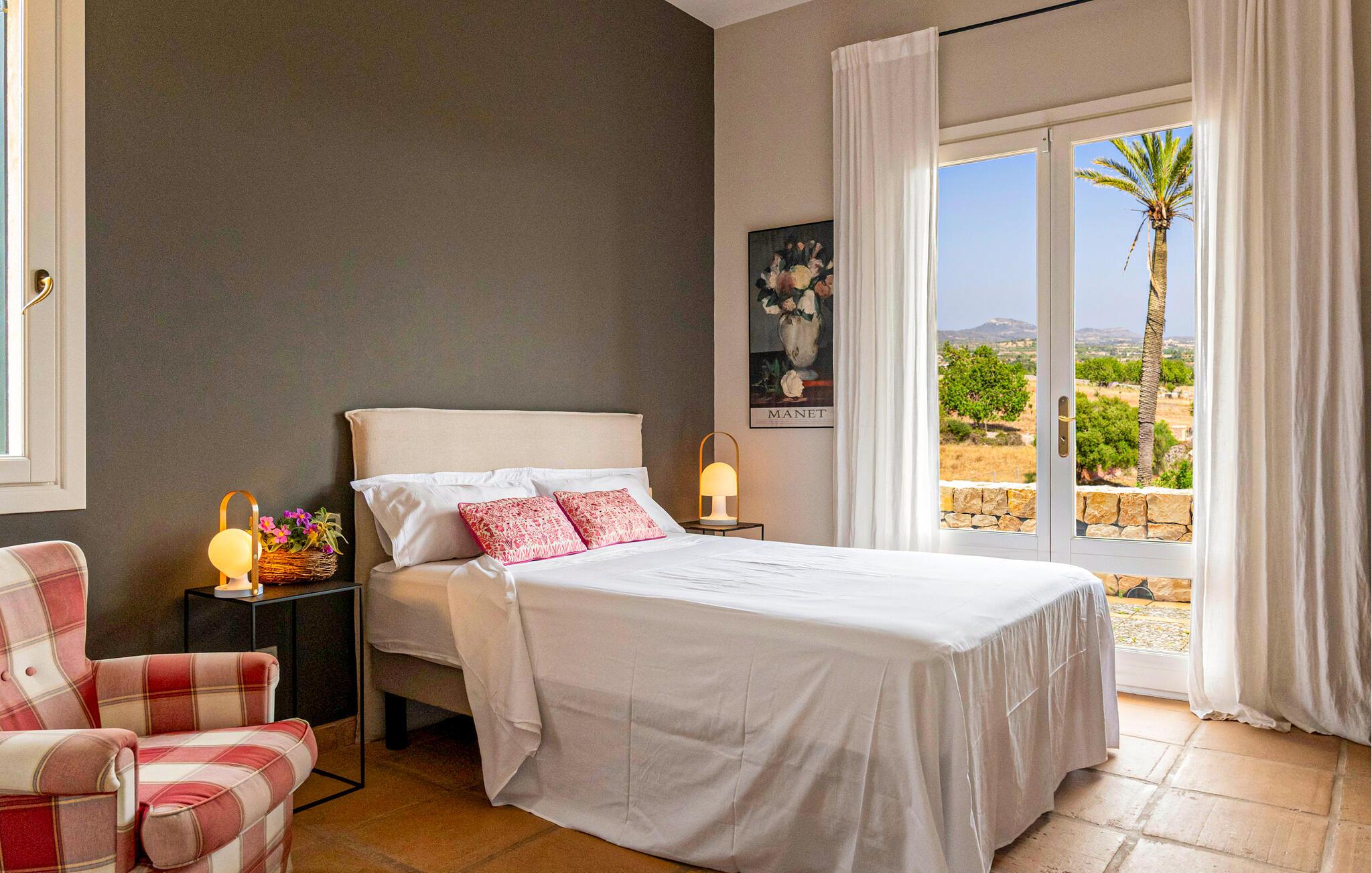 Beliggende på en lille bakke, der strækker sig fra Llevant-bjergene, sikrer dette maleriske hjem fred og ro. Ejendommen er indrettet med frodige, farverige planter og træer, der er typiske for Mallorca, hvilket skaber en afslappet og idyllisk atmosfære. Udendørsområdet har talrige haveterrasser og inviterer jer til at slappe af. Disse smukt dekorerede områder giver skygge på varme sommerdage, mens I kan se børnene lege på græsplænen. Indenfor byder den to-etagers villa, som blev renoveret i 2019, jer velkommen med en lys, æstetisk tiltalende atmosfære. Det åbne design skaber et harmonisk flow mellem indendørs og udendørs rum. Der er endda en diskret pejs til at give hyggelig varme i de køligere måneder. Husets hjerte er opholds- og spiseafdelingen, som indbyder til at slappe af eller nyde en film. Det fuldt udstyrede køkken er ideelt til at tilberede måltider og prøve en klassisk spansk opskrift. Med tre soveværelser med dobbeltsenge, hver med sit eget elegante badeværelse, kan I nyde privatlivets fred og komfort. Hvert værelse er smukt indrettet, så hver gæst vil finde deres perfekte sted at slappe af. Denne skønne villa med havudsigt ligger helt ugeneret i kommunen Sant Llorenc på den nordøstlige del af Mallorca. Ejendommens høje beliggenhed byder på en fantastisk land- og havudsigt fra husets terrasser. De nærmeste strande ligger ikke mere end 15 km væk. Nyd jeres daglige shopping i landsbyen Sant Llorenc, omkring tre kilometer væk, hvor I vil finde supermarkeder, bagerier og restauranter. For større shoppingture, tag til Cala Millor, som ligger ti minutter væk i bil.