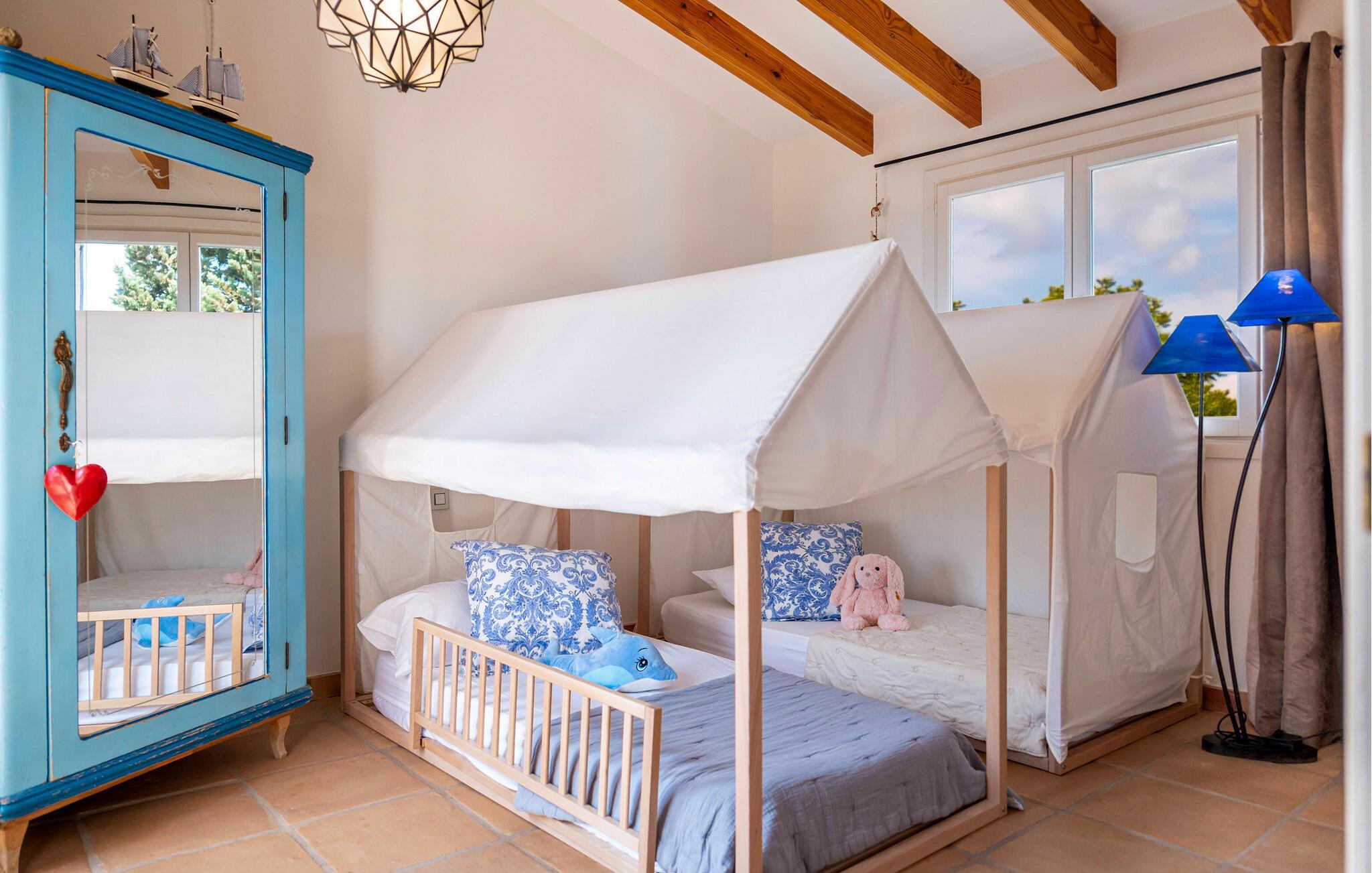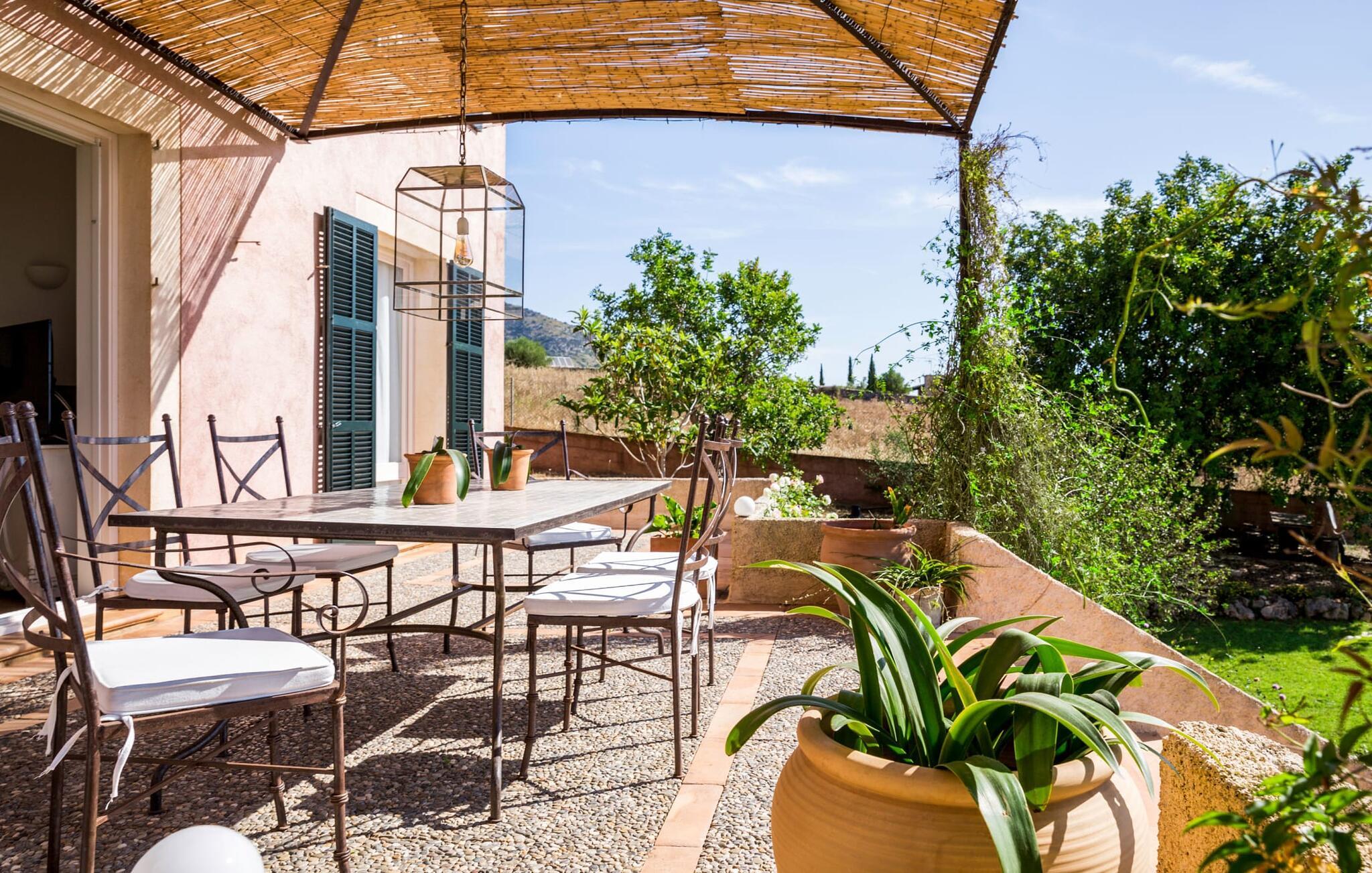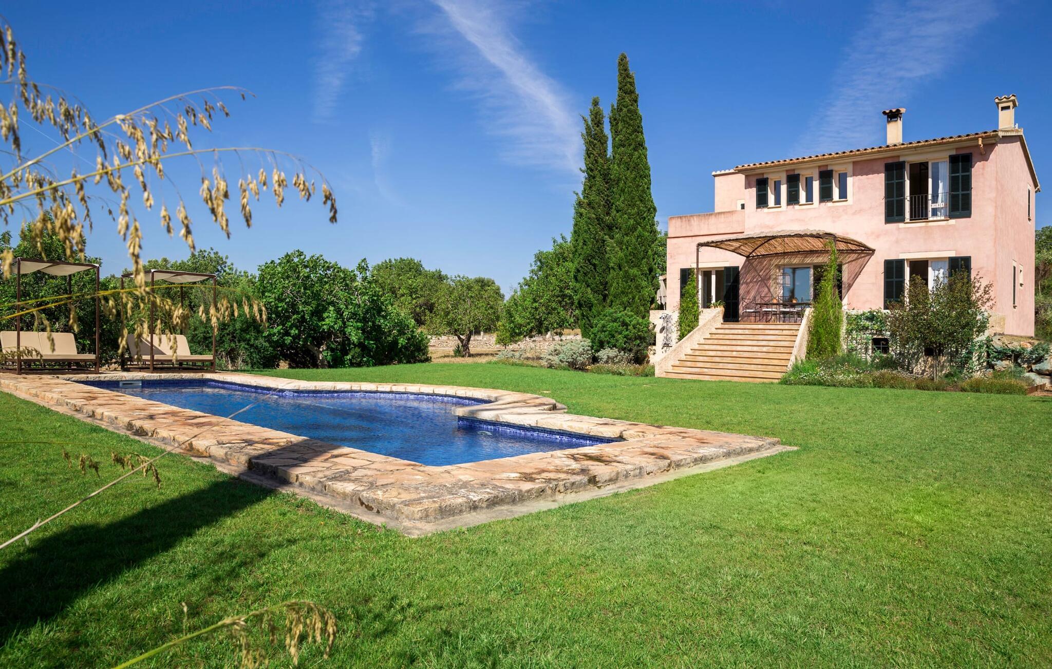 Beliggende på en lille bakke, der strækker sig fra Llevant-bjergene, sikrer dette maleriske hjem fred og ro. Ejendommen er indrettet med frodige, farverige planter og træer, der er typiske for Mallorca, hvilket skaber en afslappet og idyllisk atmosfære. Dette er et Fincallorca feriehus. Udendørsområdet har talrige haveterrasser og inviterer dig til at slappe af. Disse smukt dekorerede områder giver skygge på varme sommerdage, mens du kan se børnene lege på græsplænen. Indenfor byder den to-etagers villa, som blev renoveret i 2019, dig velkommen med en lys, æstetisk tiltalende atmosfære. Det åbne design skaber et harmonisk flow mellem indendørs og udendørs rum. Der er endda en diskret pejs til at give hyggelig varme i de køligere måneder. Husets hjerte er opholds- og spiseafdelingen, som indbyder til at slappe af eller nyde en film. Det fuldt udstyrede køkken er ideelt til at tilberede måltider og prøve en klassisk spansk opskrift. Med tre soveværelser med dobbeltsenge, hver med sit eget elegante badeværelse, kan du nyde privatlivets fred og komfort. Hvert værelse er smukt indrettet, så hver gæst vil finde deres perfekte sted at slappe af. Denne skønne villa med havudsigt ligger helt ugeneret i kommunen Sant Llorenc på den nordøstlige del af Mallorca. Ejendommens høje beliggenhed byder på en fantastisk land- og havudsigt fra husets terrasser. De nærmeste strande ligger ikke mere end 15 km væk. Nyd din daglige shopping i landsbyen Sant Llorenc, omkring tre kilometer væk, hvor du vil finde supermarkeder, bagerier og restauranter. For større shoppingture, tag til Cala Millor, som ligger ti minutter væk i bil.