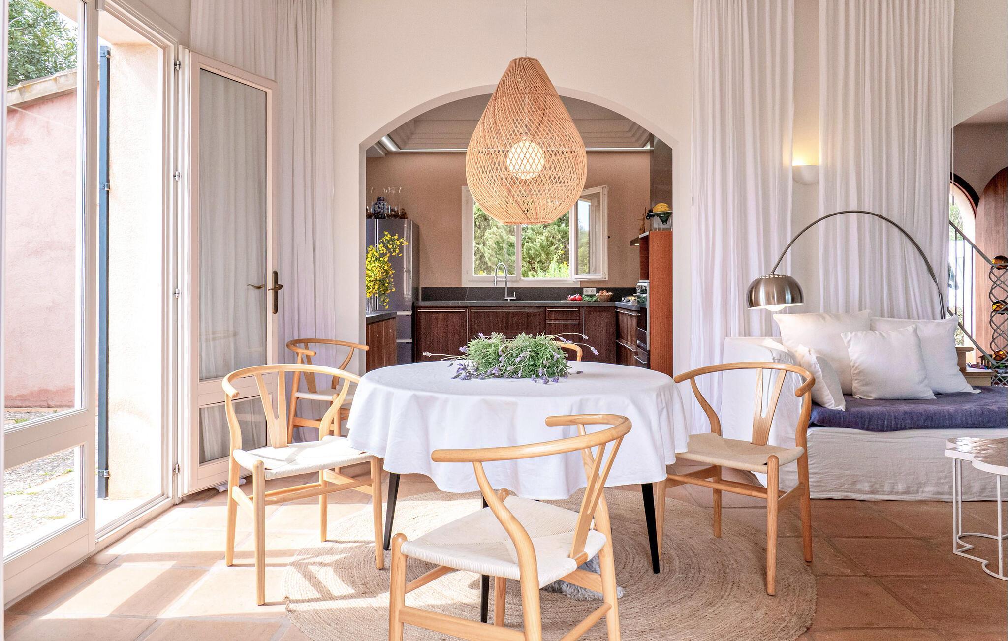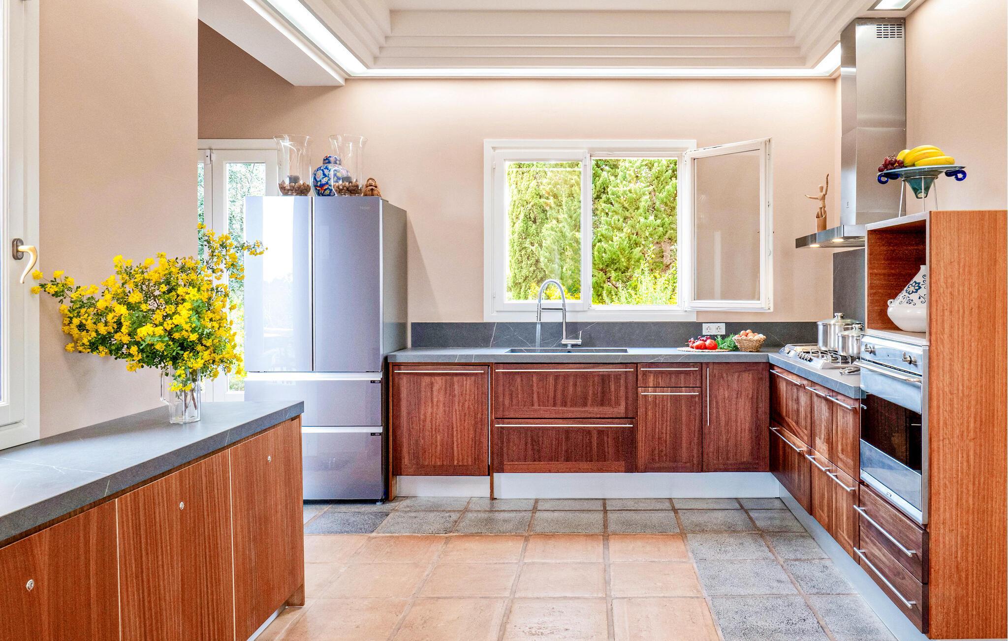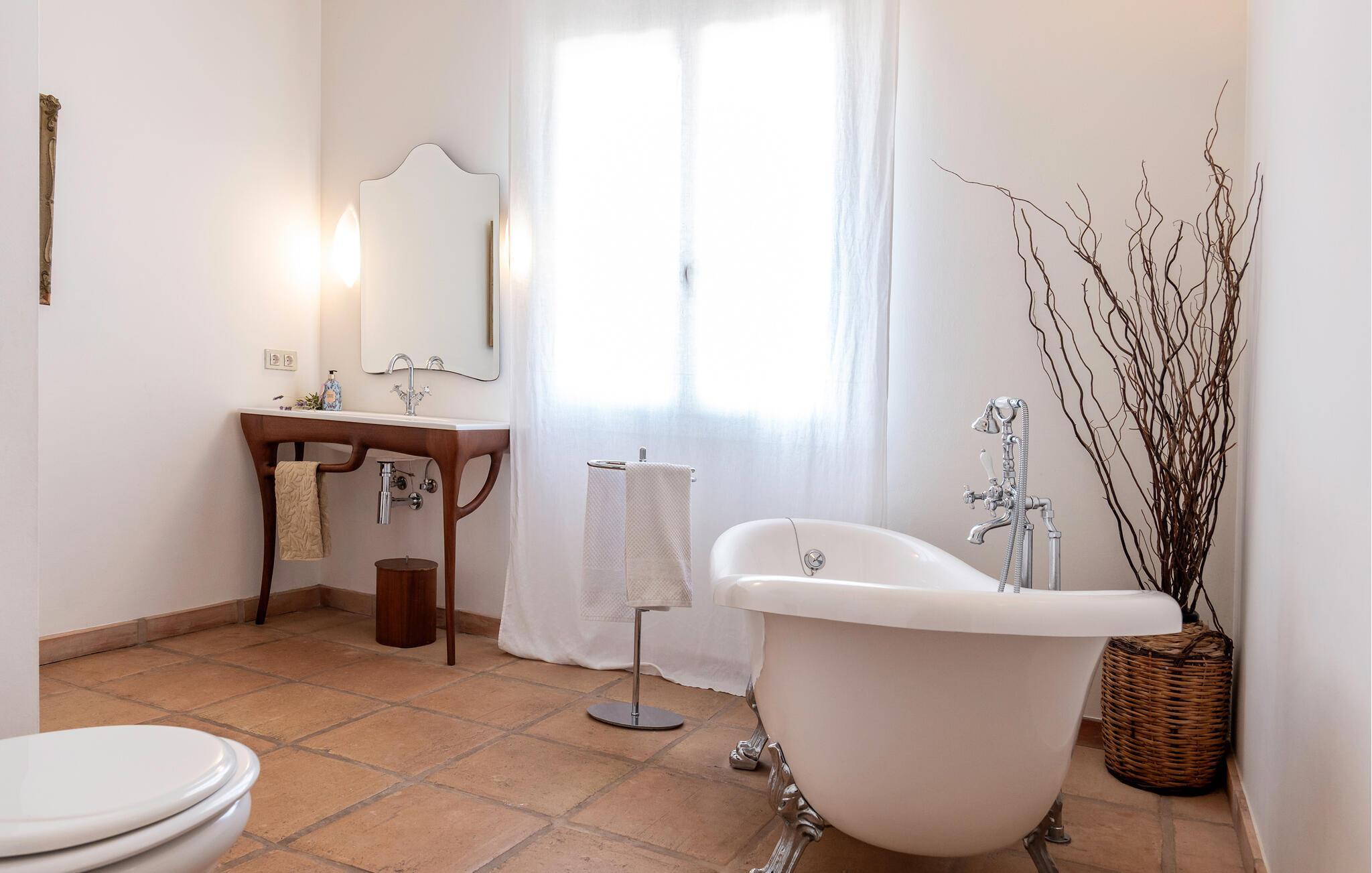 Beliggende på en lille bakke, der strækker sig fra Llevant-bjergene, sikrer dette maleriske hjem fred og ro. Ejendommen er indrettet med frodige, farverige planter og træer, der er typiske for Mallorca, hvilket skaber en afslappet og idyllisk atmosfære. Dette er et Fincallorca feriehus. Udendørsområdet har talrige haveterrasser og inviterer dig til at slappe af. Disse smukt dekorerede områder giver skygge på varme sommerdage, mens du kan se børnene lege på græsplænen. Indenfor byder den to-etagers villa, som blev renoveret i 2019, dig velkommen med en lys, æstetisk tiltalende atmosfære. Det åbne design skaber et harmonisk flow mellem indendørs og udendørs rum. Der er endda en diskret pejs til at give hyggelig varme i de køligere måneder. Husets hjerte er opholds- og spiseafdelingen, som indbyder til at slappe af eller nyde en film. Det fuldt udstyrede køkken er ideelt til at tilberede måltider og prøve en klassisk spansk opskrift. Med tre soveværelser med dobbeltsenge, hver med sit eget elegante badeværelse, kan du nyde privatlivets fred og komfort. Hvert værelse er smukt indrettet, så hver gæst vil finde deres perfekte sted at slappe af. Denne skønne villa med havudsigt ligger helt ugeneret i kommunen Sant Llorenc på den nordøstlige del af Mallorca. Ejendommens høje beliggenhed byder på en fantastisk land- og havudsigt fra husets terrasser. De nærmeste strande ligger ikke mere end 15 km væk. Nyd din daglige shopping i landsbyen Sant Llorenc, omkring tre kilometer væk, hvor du vil finde supermarkeder, bagerier og restauranter. For større shoppingture, tag til Cala Millor, som ligger ti minutter væk i bil.