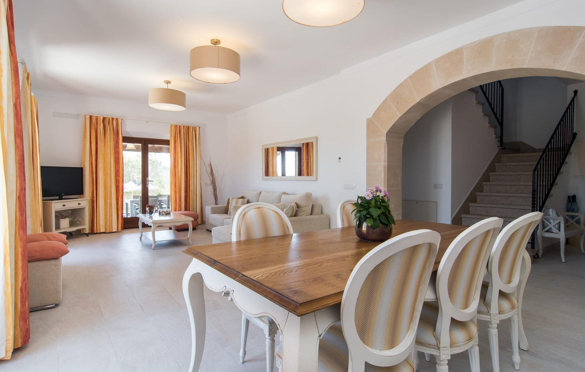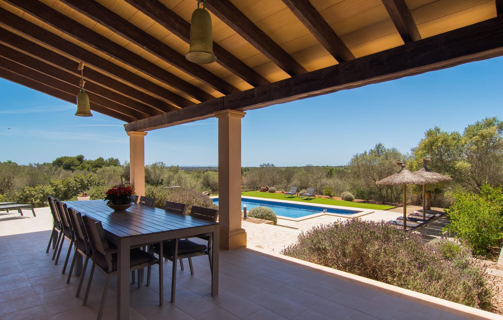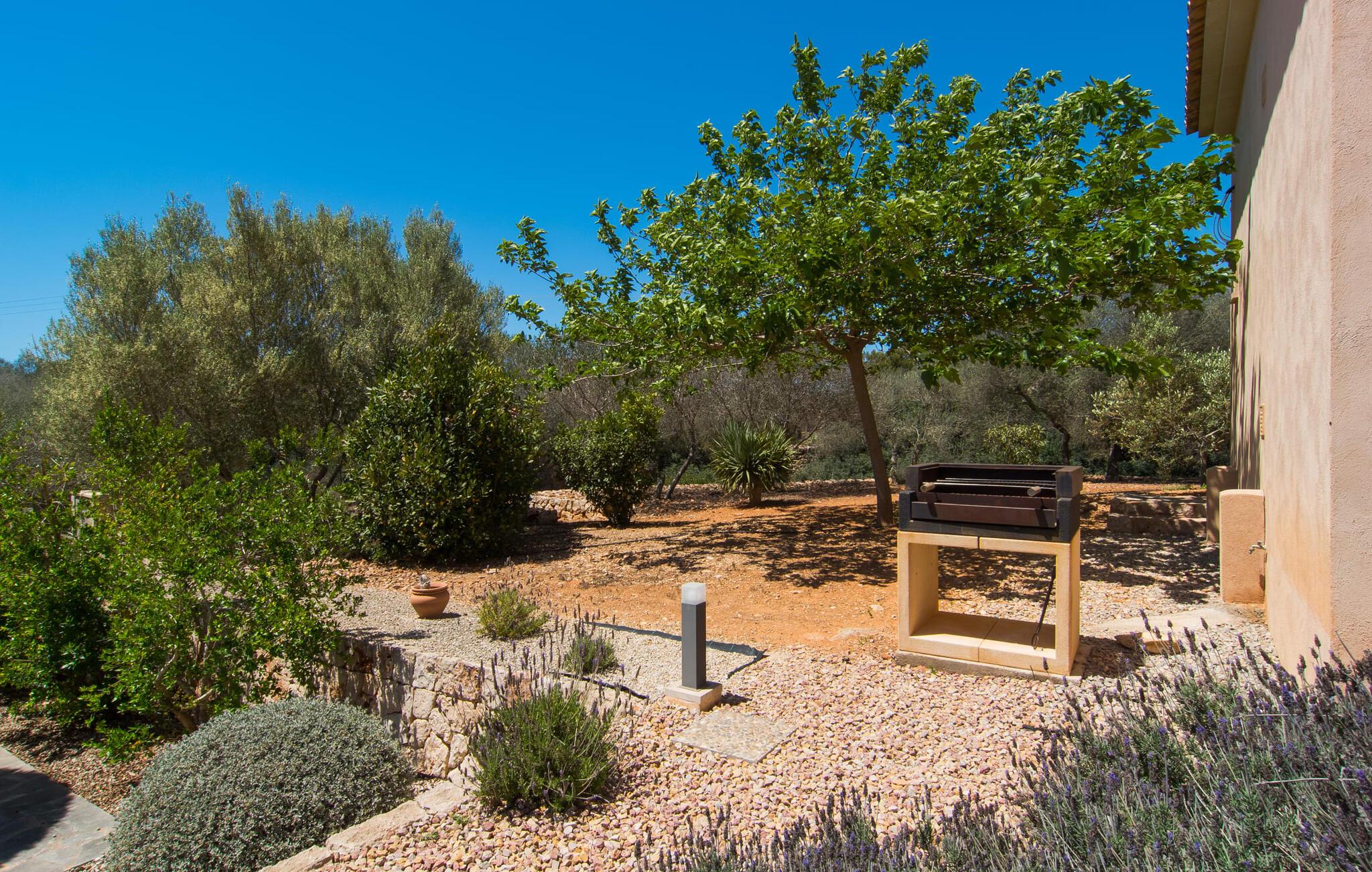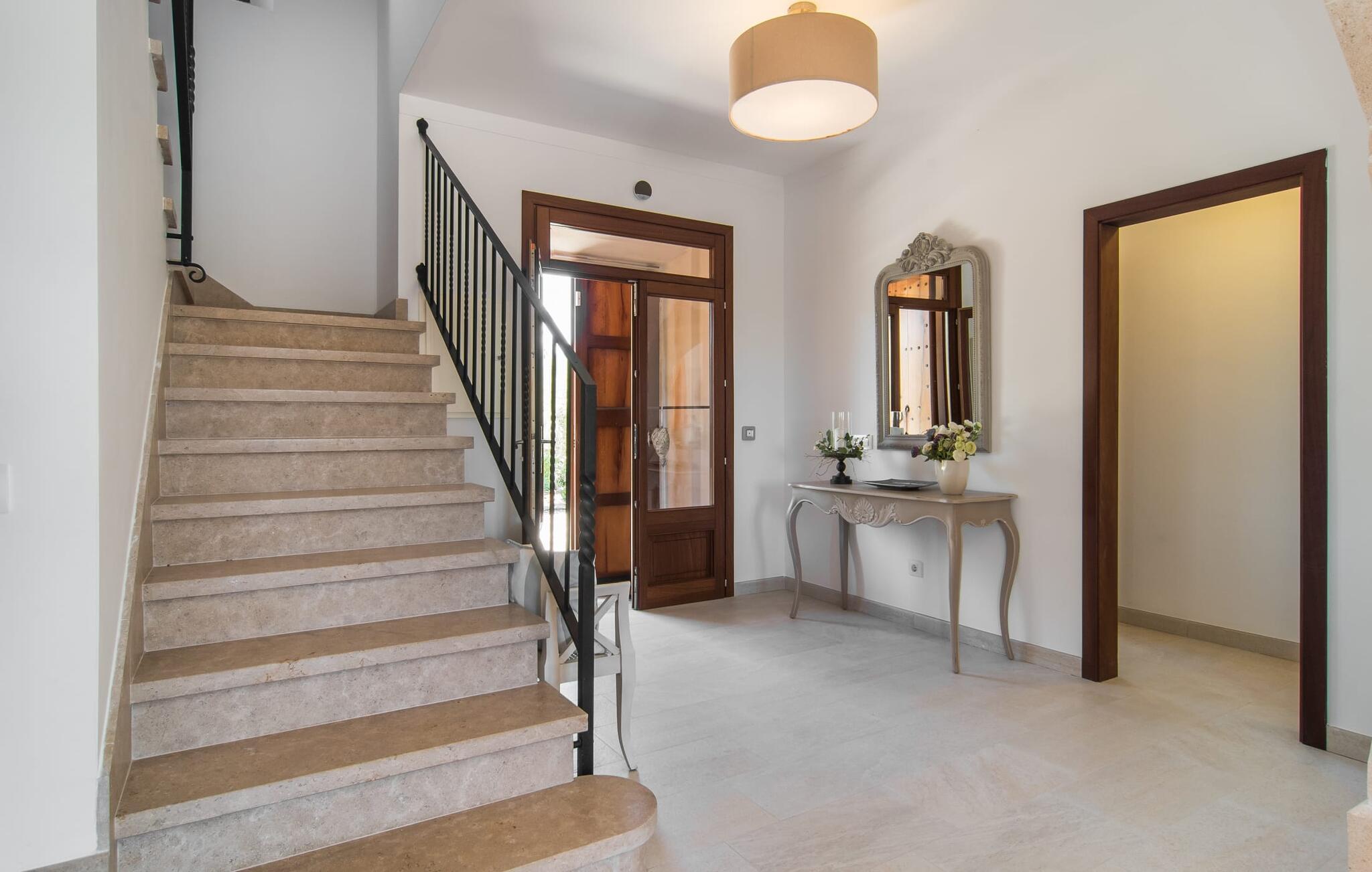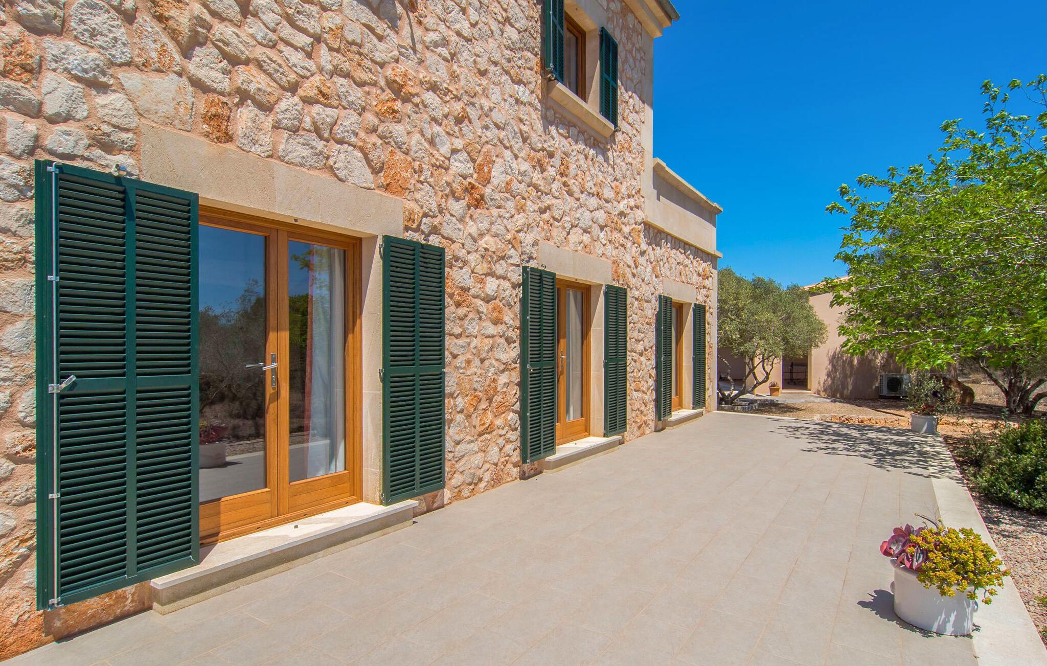 "Sa Pleta Petita" er et smukt vedligeholdt landsted i den sydlige del af Mallorca, der tilbyder plads nok og privatliv til op til otte gæster. Stuehuset i natursten ligger på en rummelig 14.000 m² stor grund og er omgivet af oliventræer og middelhavsflora, ideel til afslappede gåture. Den overdækkede terrasse har et langt spisebord til udendørs spisning, mens forskellige solbeskinnede områder, herunder en tagterrasse med liggestole, er ideelle til at slappe af. Nyd en forfriskende svømmetur i den store rektangulære pool eller deltag i venskabelige spil i det overdækkede bordtennisområde. Interiøret kombinerer elegance med bondehuscharme, der viser lys, naturlige farver og fine trædetaljer. I stueetagen er der en rummelig stue og spisestue i åbent plan, et smart køkken med udgang til terrassen og et soveværelse med dobbeltseng med et moderne badeværelse. Ovenpå er der tre ekstra soveværelser, herunder et med eget badeværelse, samt to separate badeværelser, hvilket sikrer komfort for alle gæster. Ses Selines ligger kun omkring 1,4 km væk med udlejningsbil. Og forskellige strande som den smukke naturlige strand Can Curt eller Platja des Port, den lille bystrand Colonia de Sant Jordi, er mindre end 5 km væk fra jeres feriehus. Aircondition i soveværelserne er inkluderet i prisen, men brugen er begrænset til mellem kl. 21.00 og 09.00. Gebyret afregnes herefter kontant på stedet.