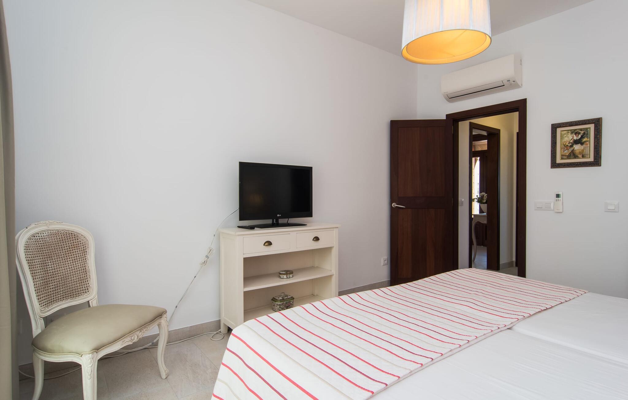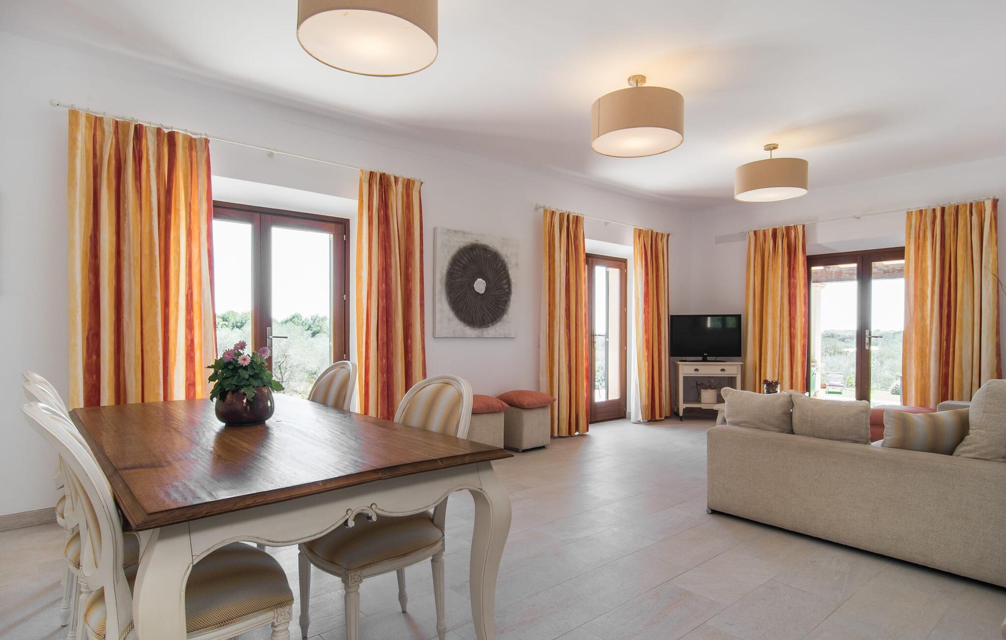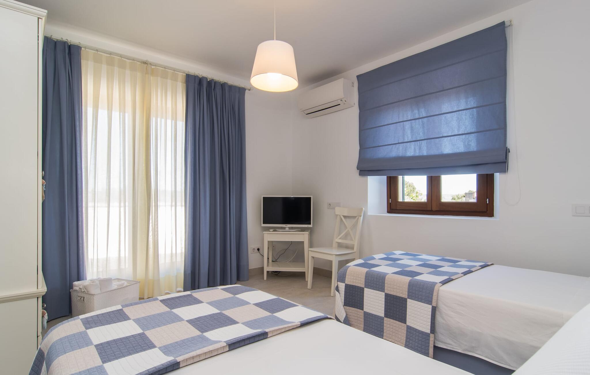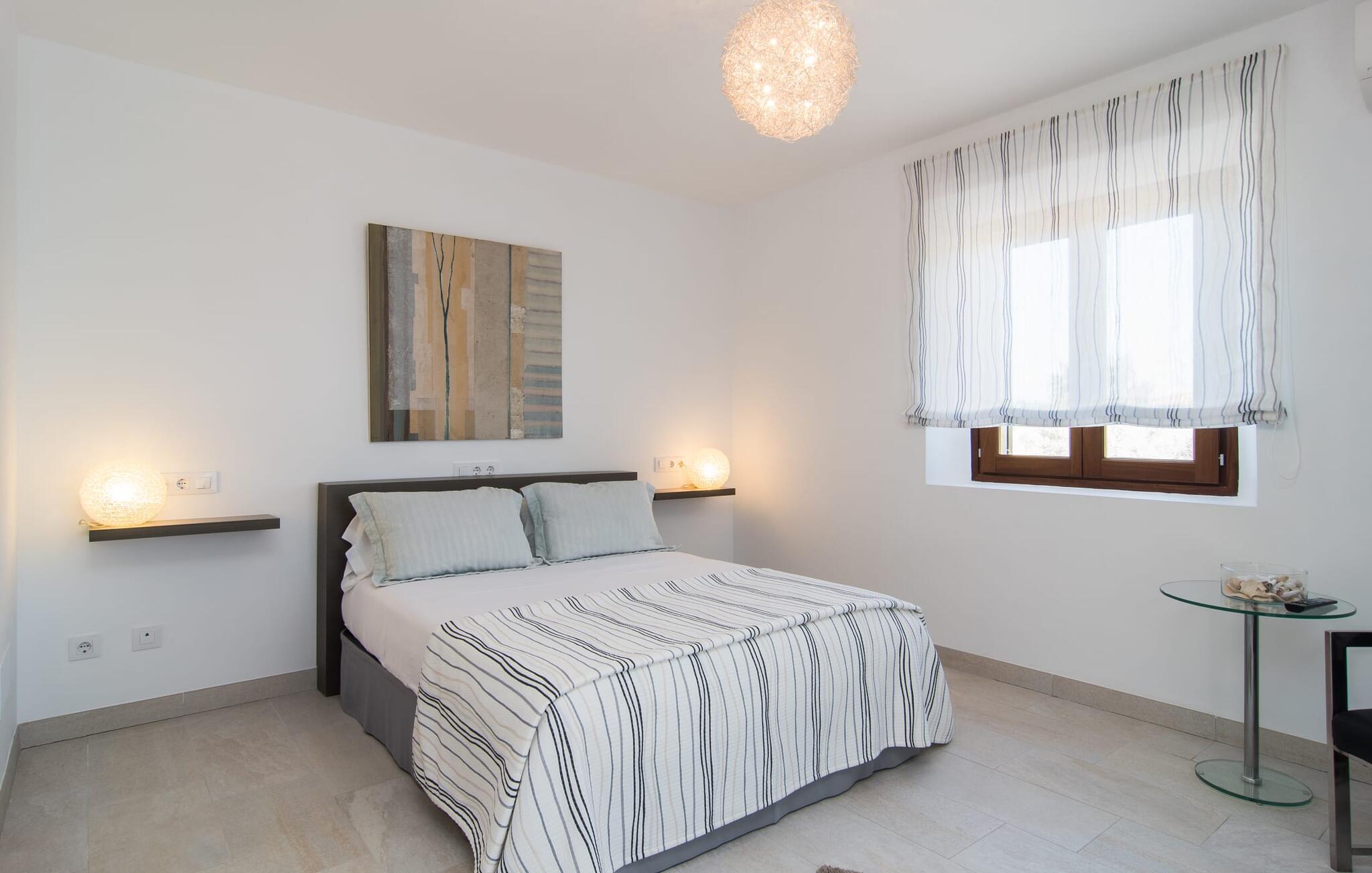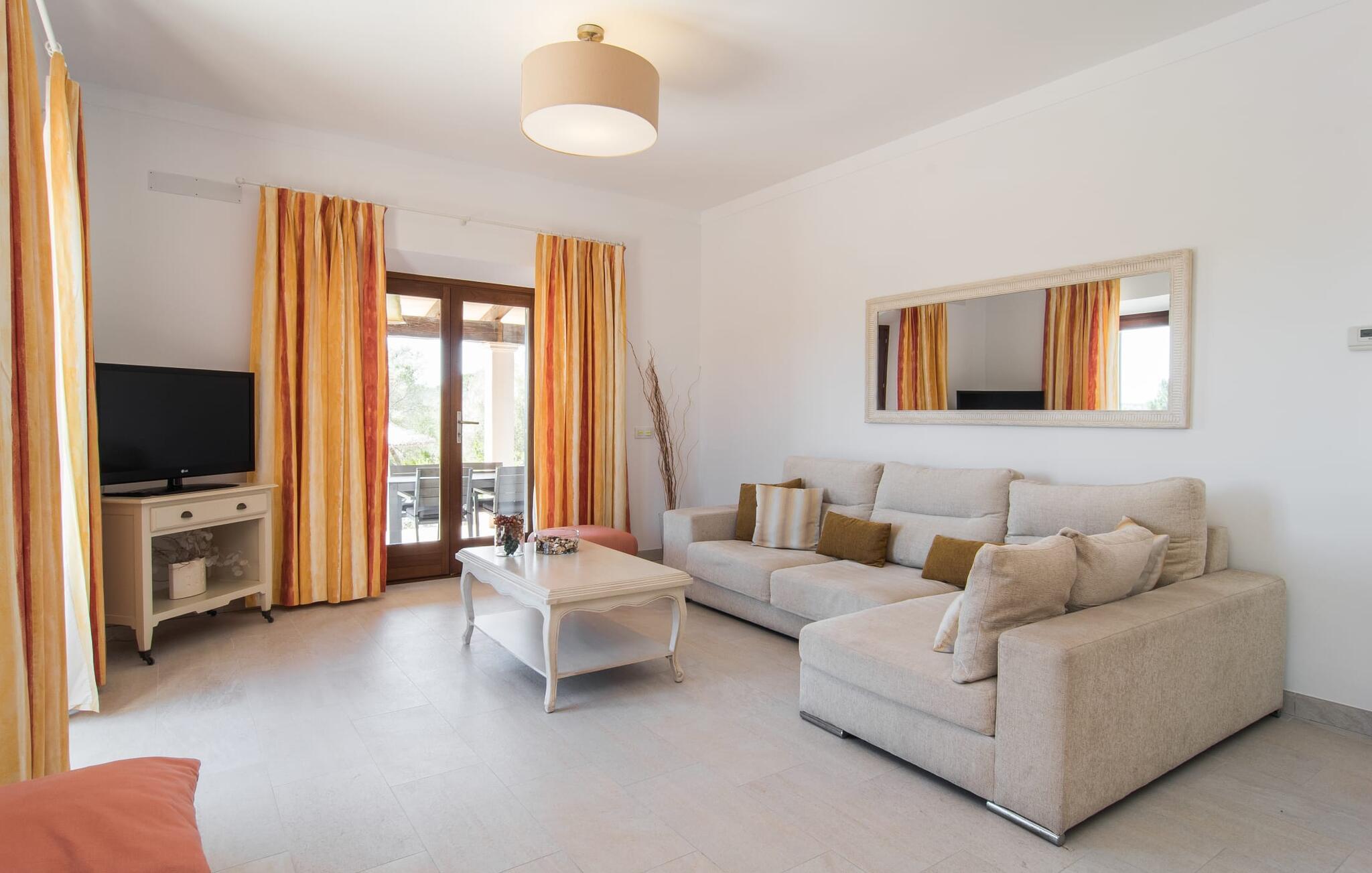 "Sa Pleta Petita" er et smukt vedligeholdt landsted i den sydlige del af Mallorca, der tilbyder plads nok og privatliv til op til otte gæster. Stuehuset i natursten ligger på en rummelig 14.000 m² stor grund og er omgivet af oliventræer og middelhavsflora, ideel til afslappede gåture. Den overdækkede terrasse har et langt spisebord til udendørs spisning, mens forskellige solbeskinnede områder, herunder en tagterrasse med liggestole, er ideelle til at slappe af. Nyd en forfriskende svømmetur i den store rektangulære pool eller deltag i venskabelige spil i det overdækkede bordtennisområde. Interiøret kombinerer elegance med bondehuscharme, der viser lys, naturlige farver og fine trædetaljer. I stueetagen er der en rummelig stue og spisestue i åbent plan, et smart køkken med udgang til terrassen og et soveværelse med dobbeltseng med et moderne badeværelse. Ovenpå er der tre ekstra soveværelser, herunder et med eget badeværelse, samt to separate badeværelser, hvilket sikrer komfort for alle gæster. Ses Selines ligger kun omkring 1,4 km væk med udlejningsbil. Og forskellige strande som den smukke naturlige strand Can Curt eller Platja des Port, den lille bystrand Colonia de Sant Jordi, er mindre end 5 km væk fra jeres feriehus. Aircondition i soveværelserne er inkluderet i prisen, men brugen er begrænset til mellem kl. 21.00 og 09.00. Gebyret afregnes herefter kontant på stedet.
