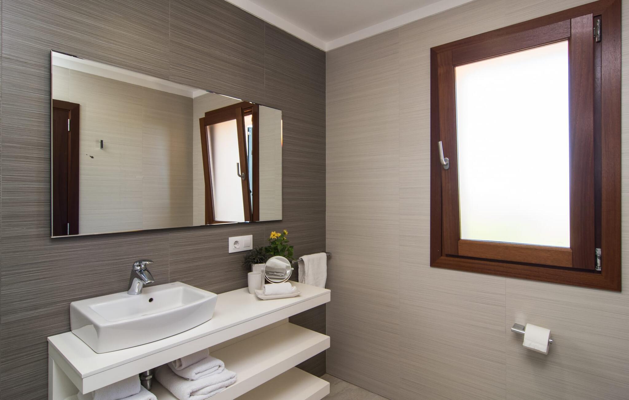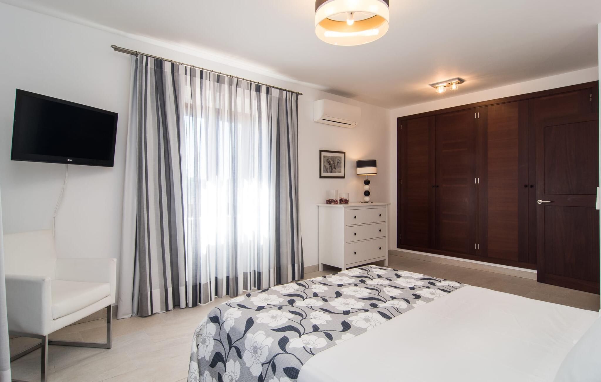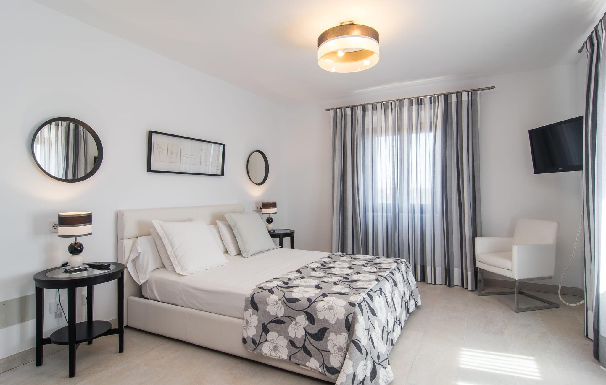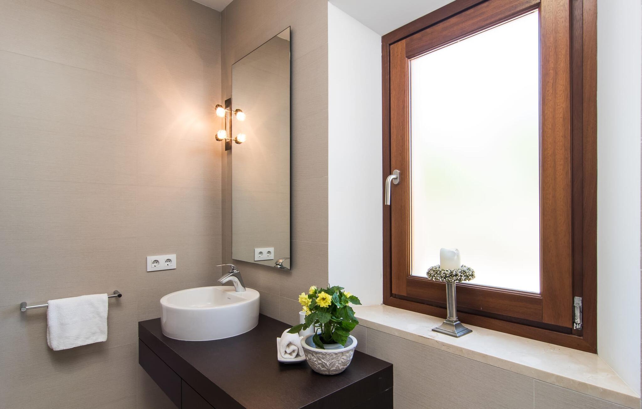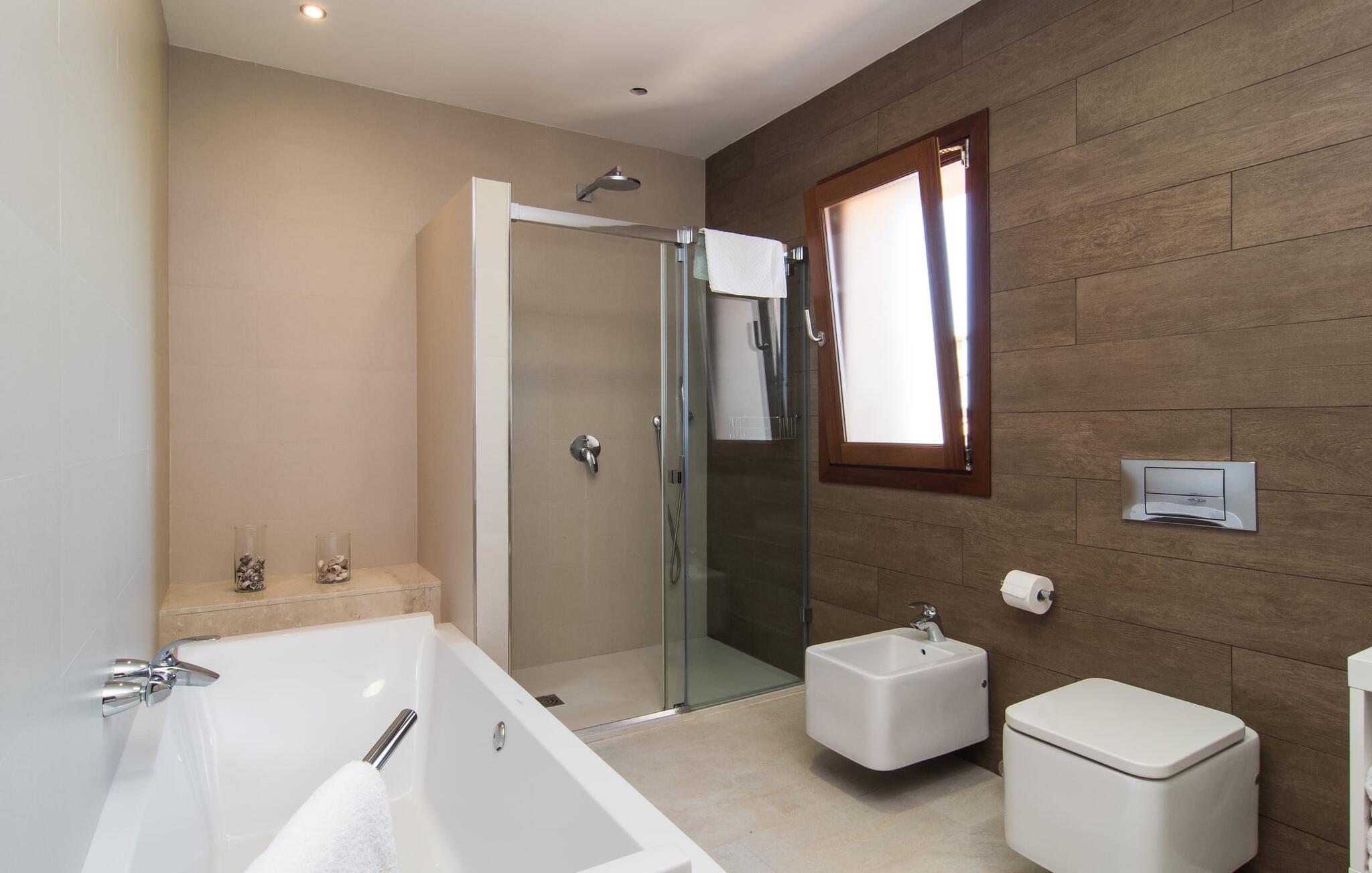 "Sa Pleta Petita" er et smukt vedligeholdt landsted i den sydlige del af Mallorca, der tilbyder plads nok og privatliv til op til otte gæster. Stuehuset i natursten ligger på en rummelig 14.000 m² stor grund og er omgivet af oliventræer og middelhavsflora, ideel til afslappede gåture. Den overdækkede terrasse har et langt spisebord til udendørs spisning, mens forskellige solbeskinnede områder, herunder en tagterrasse med liggestole, er ideelle til at slappe af. Nyd en forfriskende svømmetur i den store rektangulære pool eller deltag i venskabelige spil i det overdækkede bordtennisområde. Interiøret kombinerer elegance med bondehuscharme, der viser lys, naturlige farver og fine trædetaljer. I stueetagen er der en rummelig stue og spisestue i åbent plan, et smart køkken med udgang til terrassen og et soveværelse med dobbeltseng med et moderne badeværelse. Ovenpå er der tre ekstra soveværelser, herunder et med eget badeværelse, samt to separate badeværelser, hvilket sikrer komfort for alle gæster. Ses Selines ligger kun omkring 1,4 km væk med udlejningsbil. Og forskellige strande som den smukke naturlige strand Can Curt eller Platja des Port, den lille bystrand Colonia de Sant Jordi, er mindre end 5 km væk fra jeres feriehus. Aircondition i soveværelserne er inkluderet i prisen, men brugen er begrænset til mellem kl. 21.00 og 09.00. Gebyret afregnes herefter kontant på stedet.