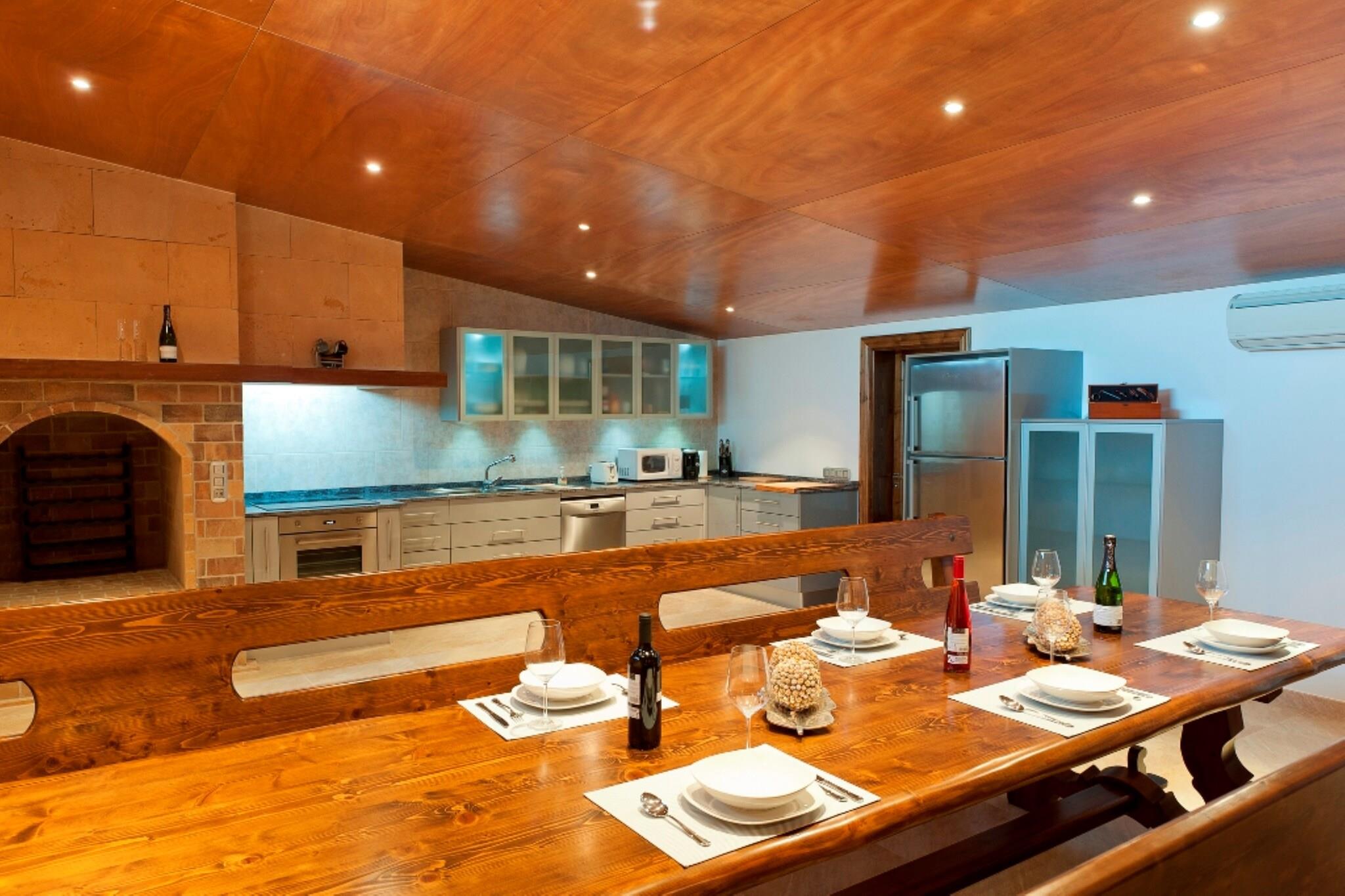 De buitenkant is erg mooi: ga naar buiten en barbecue, zwem in het zwembad, ontspan gewoon in de tuin. De veranda is ingericht met een tafel en 6 stoelen voor koele diners op zomeravonden. Het terras bij het zwembad is uitgerust met 4 ligstoelen en er is ook een pergola die voor schaduw zorgt. Ook zijn er twee fauteuils en een bank om na een lekker bad even iets te drinken. Het zwembad is privé en meet 8 x 4 meter. De villa heeft een warme sfeer en heeft rustieke details die het verschil maken. Het is een uitstekende keuze voor mensen die op zoek zijn naar ontspanning. In de woonkamer kunt u heerlijk uitrusten, een goed boek lezen liggend op de comfortabele bank, surfen op het internet (WIFI), tv kijken of een film kijken met de dvd-speler. Het aangrenzende eetgedeelte heeft een grote tafel en twee banken waar maximaal 14 personen aan kunnen eten, terwijl de keuken, die zich ook in dezelfde ruimte bevindt, alles heeft wat u nodig heeft om tijdens uw maaltijden te koken. Op de patio is ruimte om minimaal twee auto's te parkeren, maar deze is niet overdekt. Huisdieren zijn niet toegestaan. Het grote huis, op de begane grond, heeft 3 slaapkamers en 2 badkamers. Het is ideaal voor families of vriendengroepen, aangezien er ruimte is voor maximaal 6 personen. De 3 slaapkamers hebben een tweepersoonsbed. Er is een eigen badkamer en een gedeelde badkamer. Het beschikt over airconditioning in de woonkamer en de hoofdslaapkamer. Het huis ligt op slechts 2,2 km van Sa Pobla, waar u alles kunt vinden wat u nodig heeft tijdens uw verblijf: supermarkt, medisch centrum, apotheek, bars, restaurants, etc. De stad Pollença ligt ook vlakbij. Het is een prachtige stad die een bezoek waard is, u zult genieten van de geplaveide straatjes en alle kleine winkeltjes in de omgeving, u kunt naar de Calvari gaan, een oude kerk in het bovenste deel van de stad, vanwaar u kunt genieten van een spectaculair uitzicht. In slechts 20 minuten rijdt u naar Ses Casetes des Capellans en Ca'n Picafort. Breng een dag door op het fijne zandstrand en geniet van een cocktail terwijl u de zonsondergang bewondert. In de omgeving zijn er goede restaurants waar u paella kunt eten en die een fantastisch uitzicht hebben. De promenade van Ca'n Picafort is zeer levendig en contrasteert met de rust van Playas de Muro. We raden u ook aan om het gebied van Alcúdia te bezoeken, waar baaien met kristalhelder water zijn. Voor eventuele extra kosten kunt u contact opnemen met de adverteerder. Wij accepteren geen huisdieren. Het vieren van evenementen is niet toegestaan. Er is buiten parkeergelegenheid voor 2 auto's. Afstanden Strand: 12 km - Alcúdia Luchthaven: 56 km - Palma Golfbaan: 8 km - pollença Stad: 1,5 km - sa pobla Treinstation: 2 km - sa pobla Bushalte: 2 km - sa pobla Veerboot: 12 km - Alcúdia Ziekenhuis: 14 km - INCA Toeristenvergunning: ETV/8931 Op de Balearen geldt een toeristenbelasting, Ecotasa genaamd, die door de gast moet worden betaald. Het bedrag varieert tussen EURO 0,55 / per nacht per persoon in het laagseizoen en EURO 2,2 / per nacht per persoon in het hoogseizoen. Vanaf de negende dag wordt het met de helft verminderd. Personen onder de 16 jaar uitgesloten.