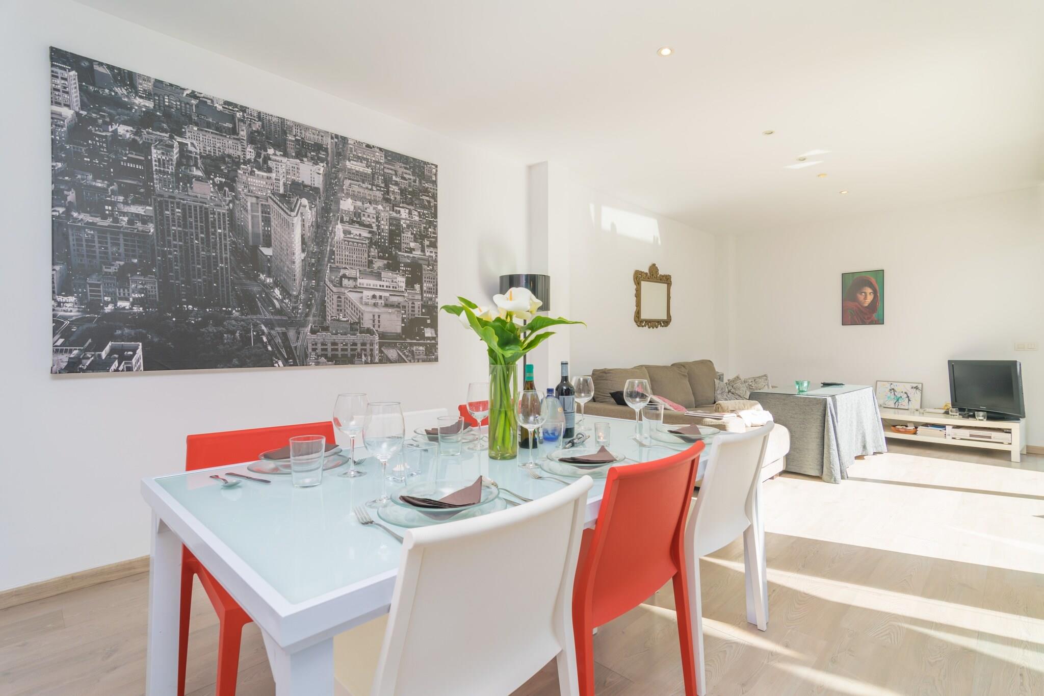 Afslappende udendørs terrasser Start din dag på hovedterrassen med en solid morgenmad eller nyd solen på en af ??de to liggestole, før du udforsker øen. Aftener er ideelle til udendørs spisning eller til at nyde et glas vin i den kølige sommerluft. Den anden øverste terrasse, der er tilgængelig fra et soveværelse, giver et roligt tilflugtssted for at slappe af med fredelig udsigt, hvilket skaber et privat rum til at slappe af og nyde omgivelserne. Rummeligt og komfortabelt interiør Indvendigt byder rækkehuset på generøse og indbydende rum. Stueetagen har en åben planløsning med TV, spiseplads og fuldt udstyret køkken med keramisk kogeplade, ovn og en lille ø med taburetter. Et vaskerum med vaskemaskine, tørretumbler, strygejern og strygebræt tilføjer bekvemmelighed. Ovenpå fører en anden stue til tre soveværelser: to dobbeltværelser med aircondition og opbevaring, et med en-suite badeværelse og et enkelt soveværelse. Et ekstra badeværelse med badekar fuldender den øverste etage, mens en høj stol og barneseng er til rådighed for familier. Central Sa Pobla Placering Ejendommen ligger kun få skridt fra Sa Poblas centrum og er omgivet af barer, restauranter og et livligt søndagsmarked med friske lokale råvarer. Nordlige strande som Son Serra de Marina, Playas de Muro og Can Picafort er omkring 15 minutter væk. Golfentusiaster kan nå Golf Pollença på 10 km. Der er en parkeringsplads i garagen. Kæledyr er ikke tilladt, arrangementer er forbudt, og valgfri aircondition er tilgængelig.