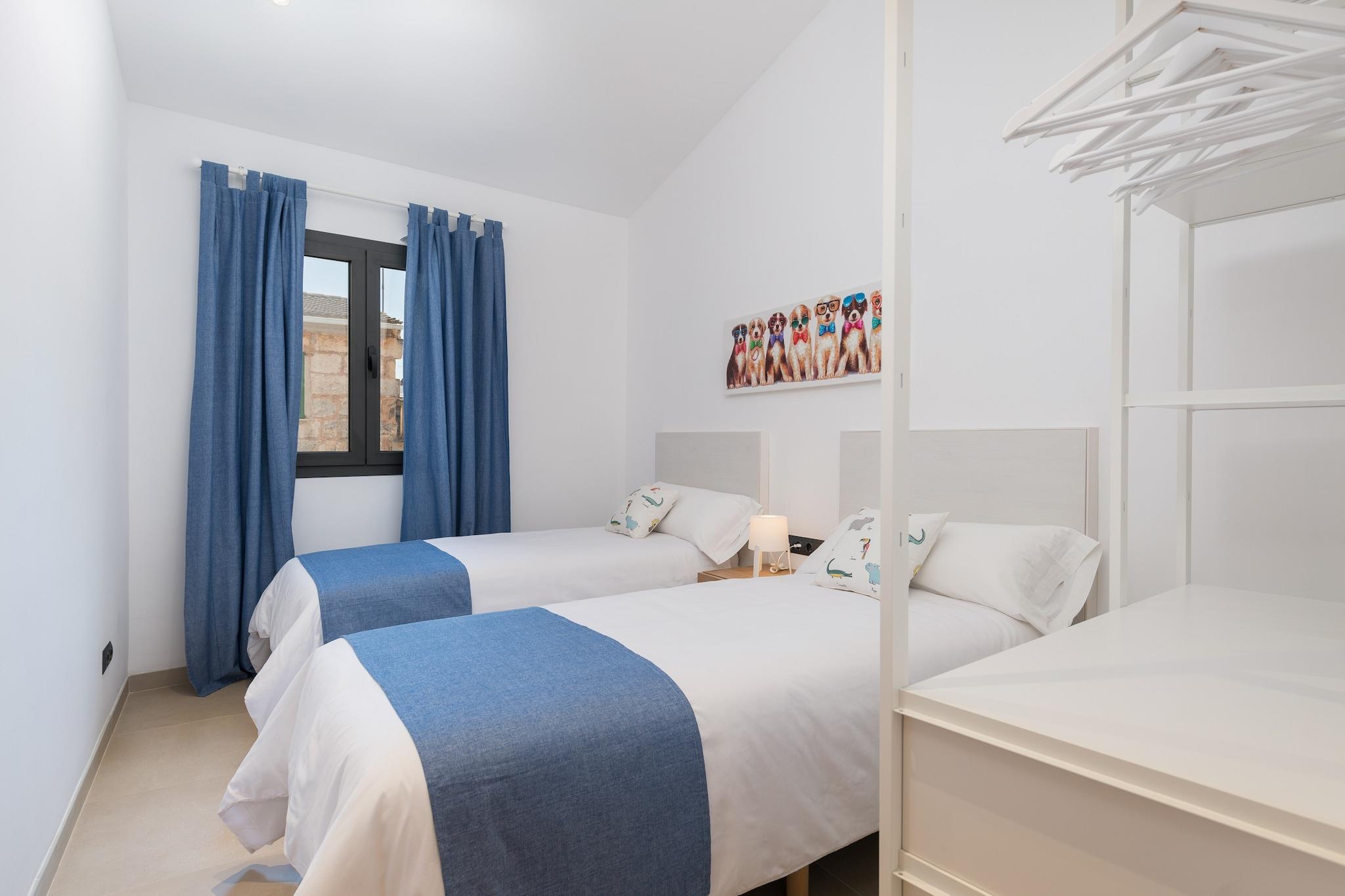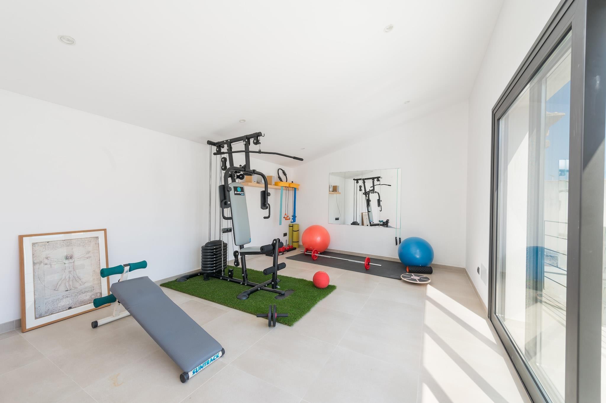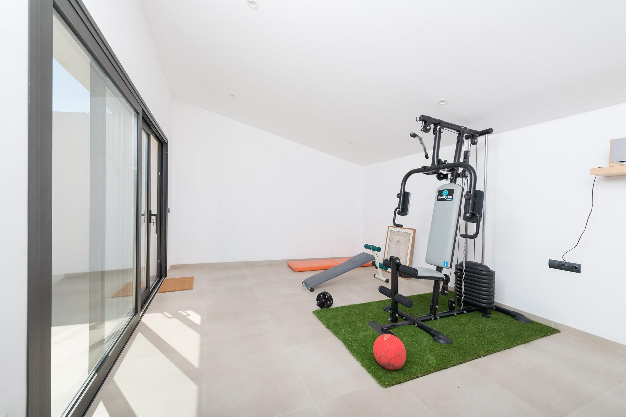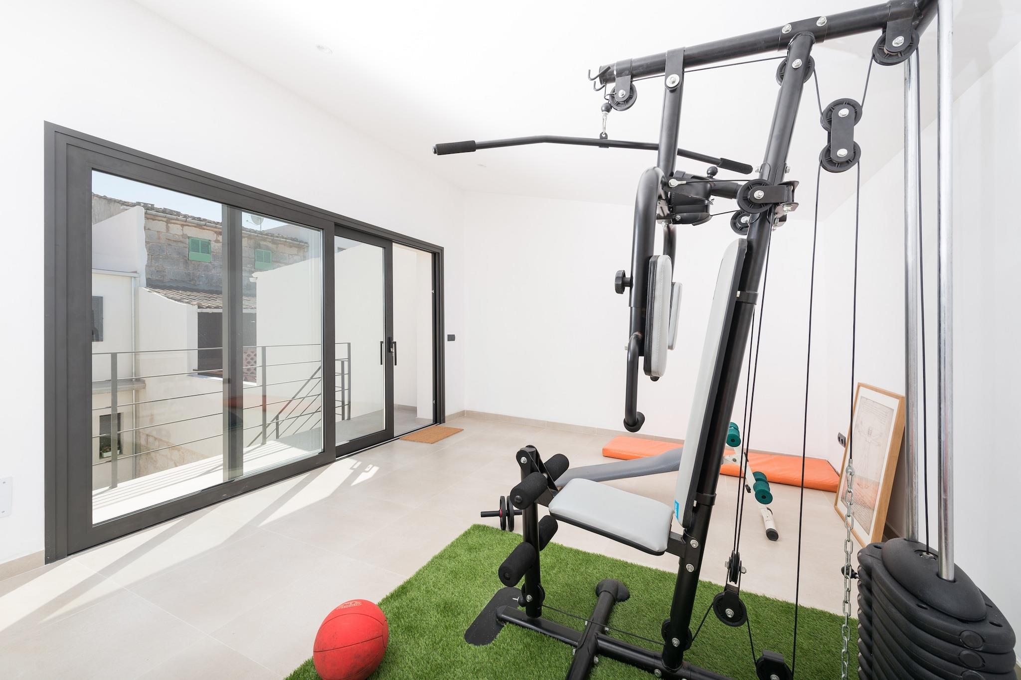Charmerende udendørs tilflugtssted Start din morgen på villaens terrasse med en lækker morgenmad eller slap af med en grill om aftenen. Klorpoolen, der måler 5 x 2,5 meter, byder på en privat oase til svømning eller solbadning på en af ??de fire liggestole. En udendørs bruser er ideel til at køle af efter træning i det udendørs fitnesscenter. Det omkringliggende område af villaen er smukt vedligeholdt, hvilket skaber en fredelig, indbydende atmosfære til afslapning og nydelse. Rummeligt moderne interiør Indvendigt kombinerer opholds-, spise- og køkkenområdet i åbent plan komfort og funktionalitet. Rummet har aircondition, pejs og keramisk kogeplade, så du kan lave mad, mens du socialiserer eller slapper af på sofaen. Ovenpå tilbyder tre soveværelser afslappende søvn med aircondition. Det store soveværelse indeholder en dobbeltseng, en-suite bruser, walk-in closet og plads til en barneseng eller høj stol. De to andre soveværelser har to enkeltsenge og opbevaring, understøttet af to ekstra brusebadeværelser. Central Sa Pobla Placering Villaen ligger i gåafstand fra Sa Poblas bytorv, fuld af barer, restauranter og butikker. Besøg det traditionelle søndagsmarked for frisk frugt og grøntsager, eller tag til Can Picafort-stranden, kun 12,3 km væk, for hvidt sand og klart vand. Golfentusiaster kan nå Golf Pollença på under 10 km. Offentlig transport er let tilgængelig med et busstoppested 650 meter væk og togstationen 1 km væk.