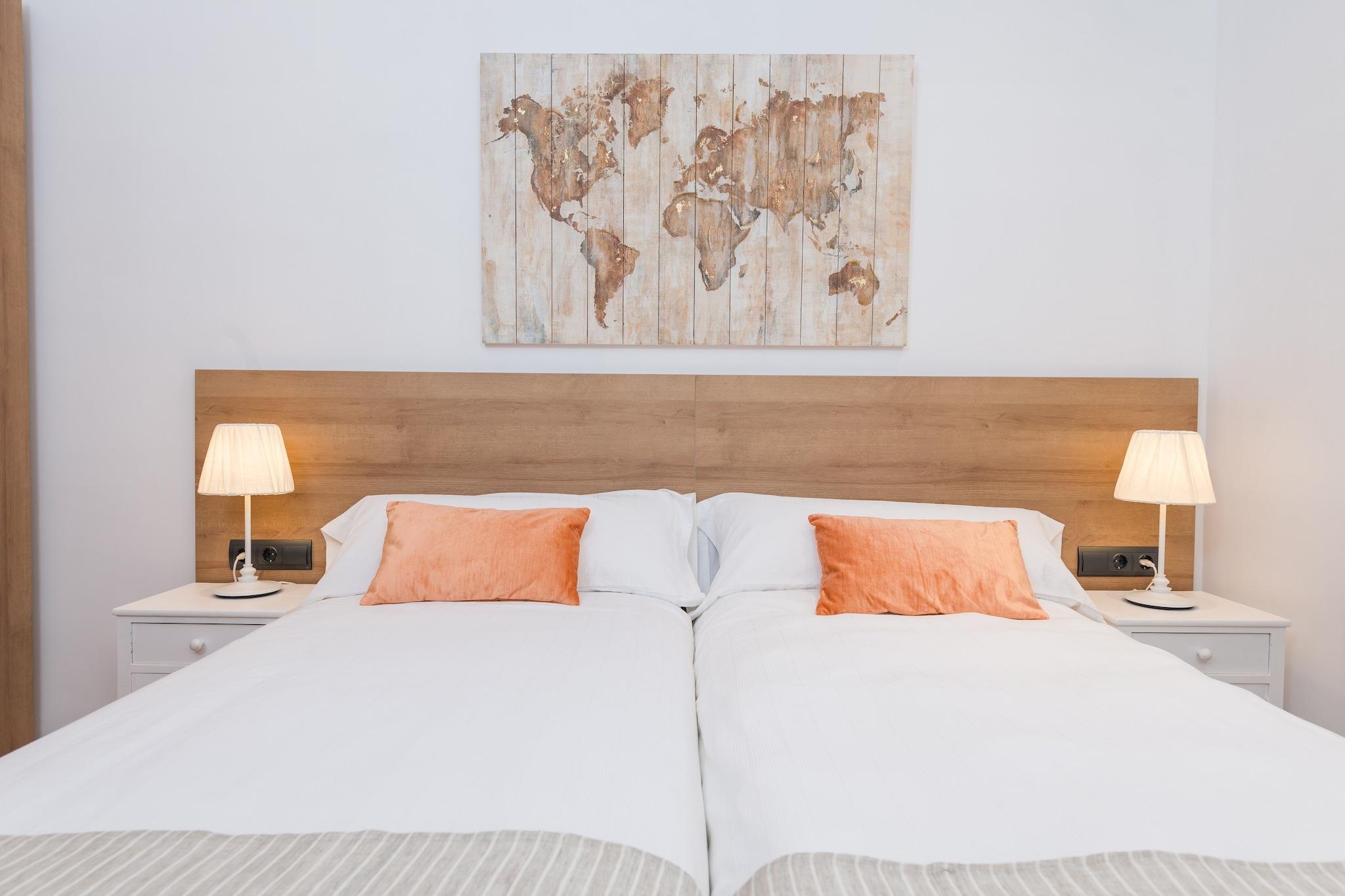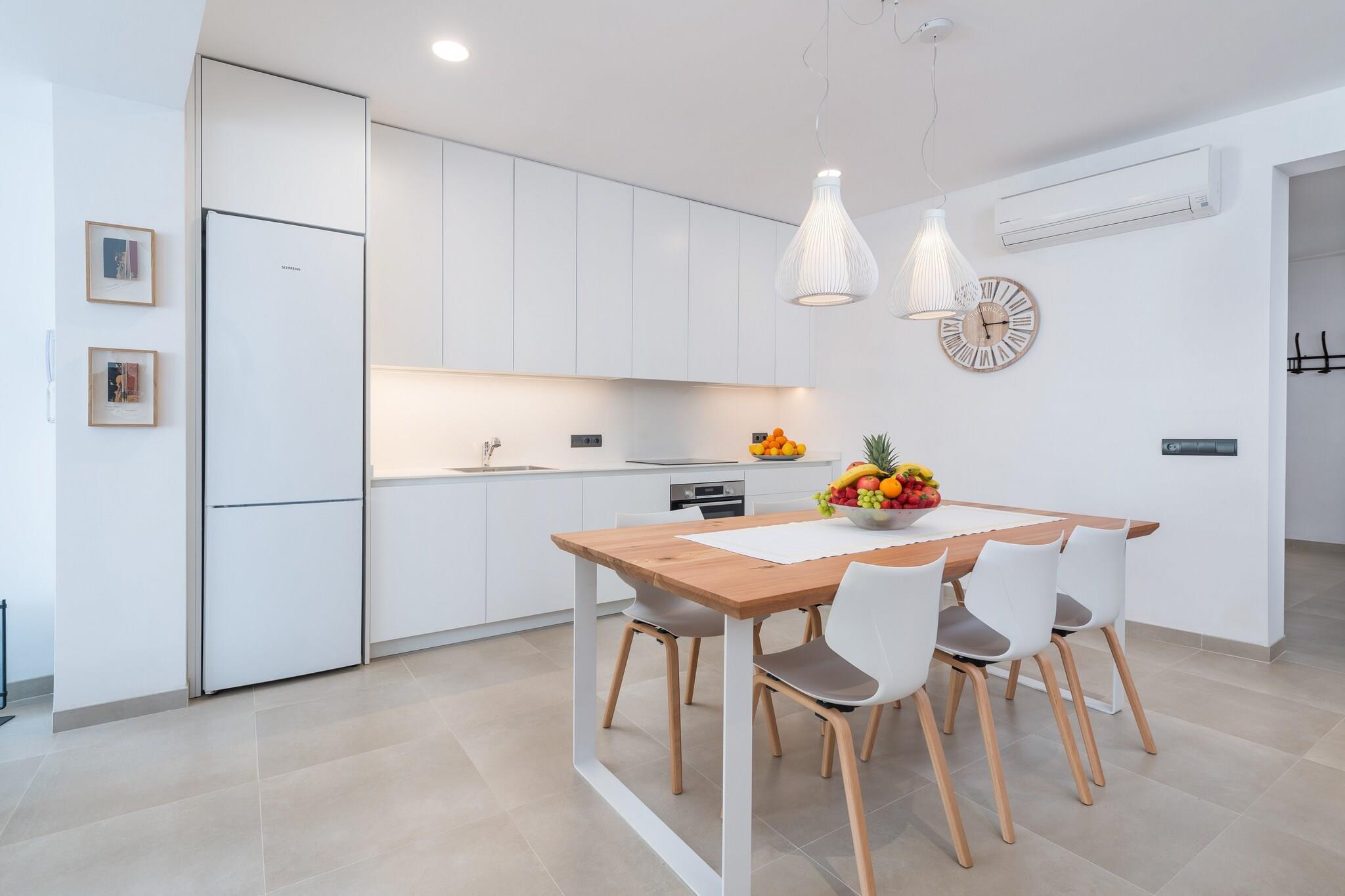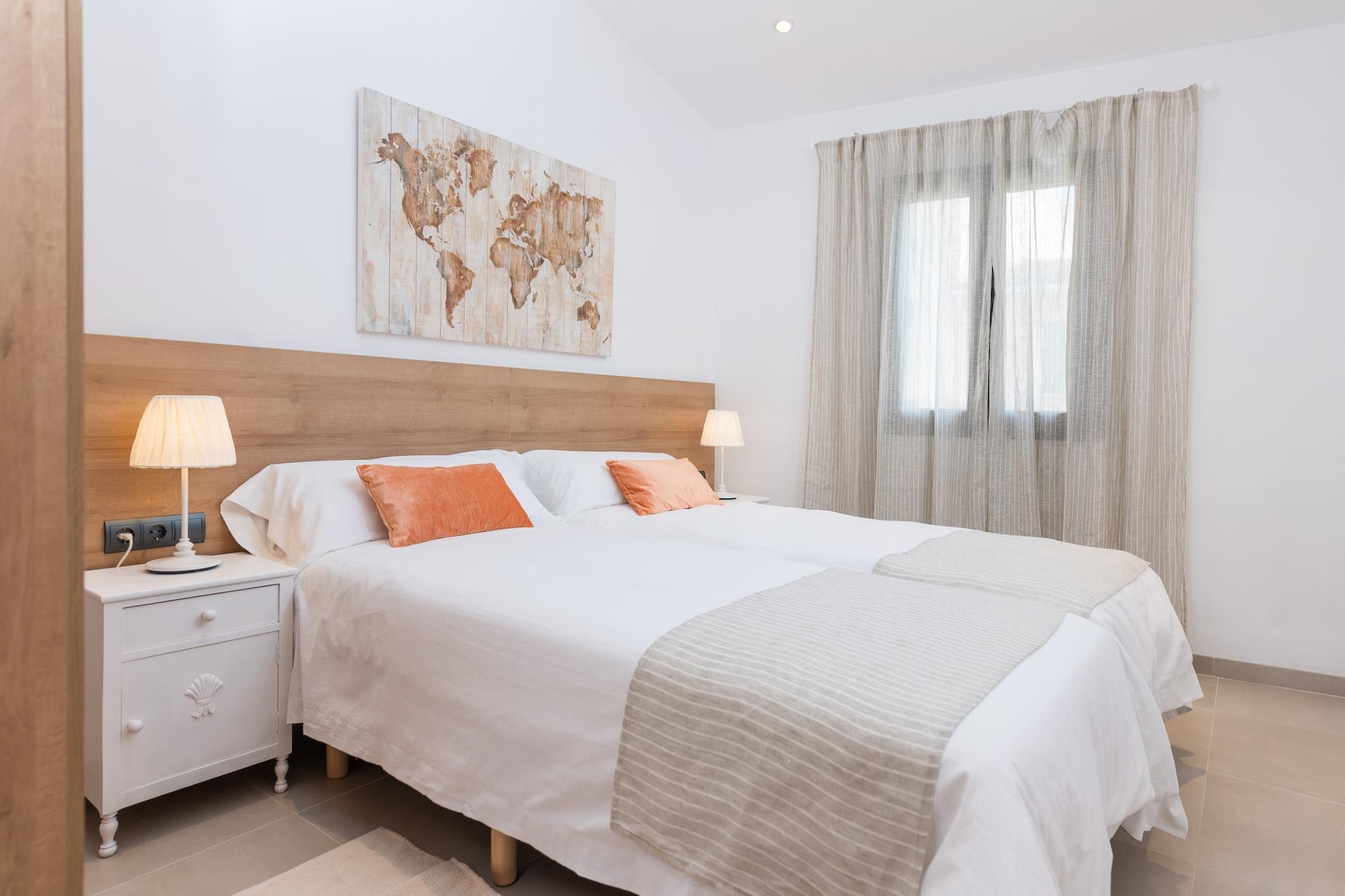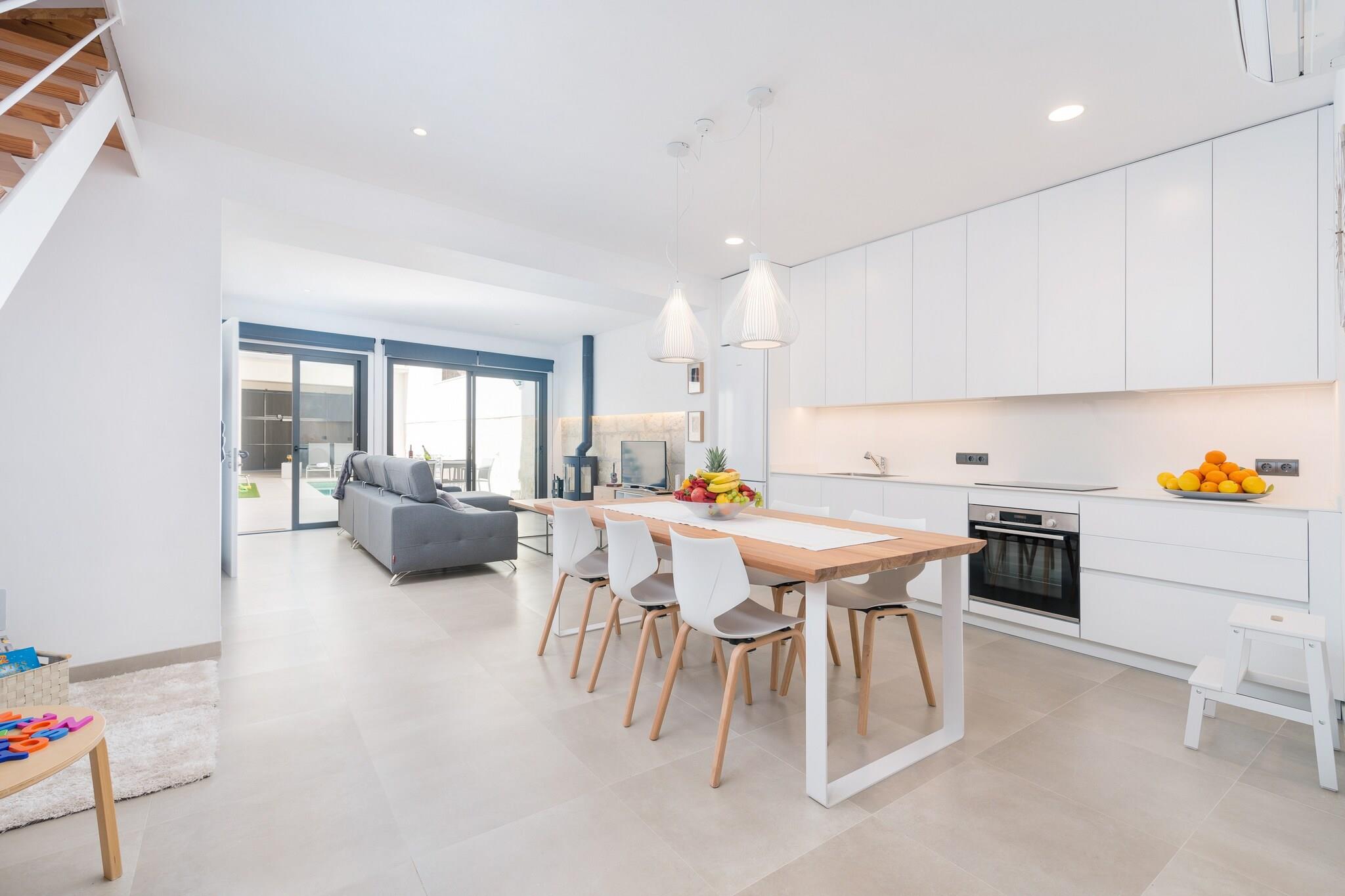 Charmerende udendørs tilflugtssted Start din morgen på villaens terrasse med en lækker morgenmad eller slap af med en grill om aftenen. Klorpoolen, der måler 5 x 2,5 meter, byder på en privat oase til svømning eller solbadning på en af ??de fire liggestole. En udendørs bruser er ideel til at køle af efter træning i det udendørs fitnesscenter. Det omkringliggende område af villaen er smukt vedligeholdt, hvilket skaber en fredelig, indbydende atmosfære til afslapning og nydelse. Rummeligt moderne interiør Indvendigt kombinerer opholds-, spise- og køkkenområdet i åbent plan komfort og funktionalitet. Rummet har aircondition, pejs og keramisk kogeplade, så du kan lave mad, mens du socialiserer eller slapper af på sofaen. Ovenpå tilbyder tre soveværelser afslappende søvn med aircondition. Det store soveværelse indeholder en dobbeltseng, en-suite bruser, walk-in closet og plads til en barneseng eller høj stol. De to andre soveværelser har to enkeltsenge og opbevaring, understøttet af to ekstra brusebadeværelser. Central Sa Pobla Placering Villaen ligger i gåafstand fra Sa Poblas bytorv, fuld af barer, restauranter og butikker. Besøg det traditionelle søndagsmarked for frisk frugt og grøntsager, eller tag til Can Picafort-stranden, kun 12,3 km væk, for hvidt sand og klart vand. Golfentusiaster kan nå Golf Pollença på under 10 km. Offentlig transport er let tilgængelig med et busstoppested 650 meter væk og togstationen 1 km væk.
