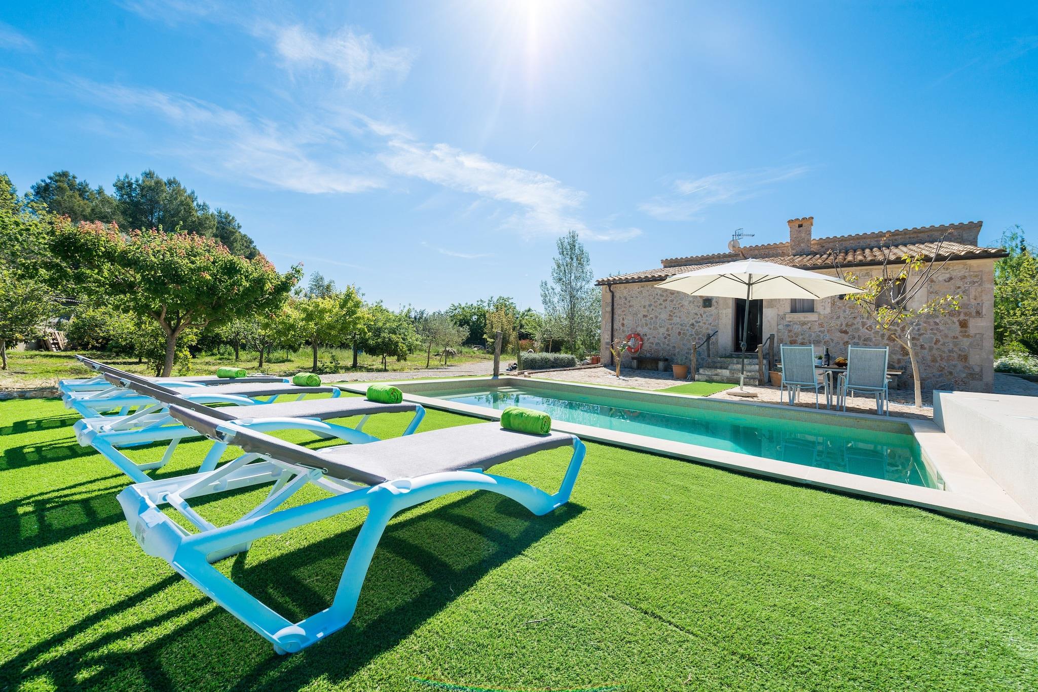 Træd ind i fincaens fredfyldte ydre, hvor den private saltvandspool (7 x 3 meter, 0,5-1,3 m dyb) inviterer dig til at svømme, solbade på en af ??de fire liggestole eller forfriske dig under den udendørs bruser. Den omkringliggende have er en levende blanding af blomster, planter og træer med en fantastisk udsigt over bjergene, perfekt til en kort spadseretur eller blot at nyde roen i landskabet. Ejendommen er indhegnet, hvilket giver privatlivets fred, samtidig med at der bevares forbindelse til de nærliggende naboer. Indenfor byder et-etagers hus på rummelige, lyse værelser indrettet i autentisk mallorcansk rustik stil. Den åbne stue/spisestue med satellit-tv er ideel til måltider, samtaler eller afslapning sammen. Køkkenet er udstyret med en industriel gaskomfur, ovn og et spisebord til afslappede måltider. To soveværelser med aircondition åbner direkte ud til haven - det ene med to enkeltsenge og et klædeskab, det andet med en dobbeltseng, påklædningsværelse og en-suite bruser. Et andet badeværelse med badekar betjener resten af ??huset, og et vaskerum har en vaskemaskine, tørretumbler, strygejern og strygebræt. Beliggende kun 5 km fra Sa Pobla, kan du nemt udforske barer, restauranter, butikker og søndagsgademarkedet. Den nærmeste strand, Puerto de Alcudia (14,5 km), byder på blødt sand, klart vand og strandbarer. Golfspillere vil nyde Golf Alcanada (17,8 km) med en spektakulær havudsigt. Offentlig transport, færgeadgang og vigtige tjenester er i nærheden, hvilket gør denne finca til et roligt tilflugtssted på landet uden at give afkald på tilgængeligheden.