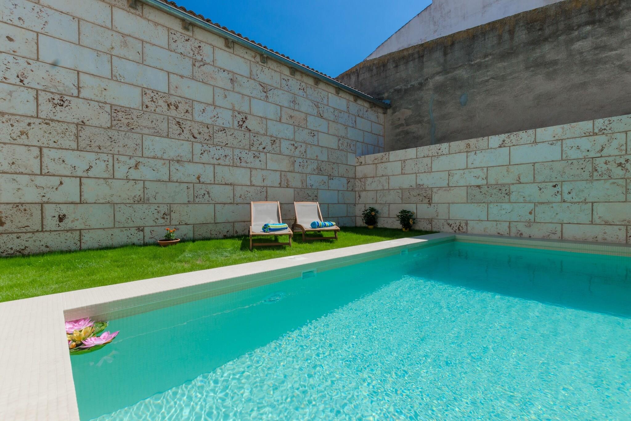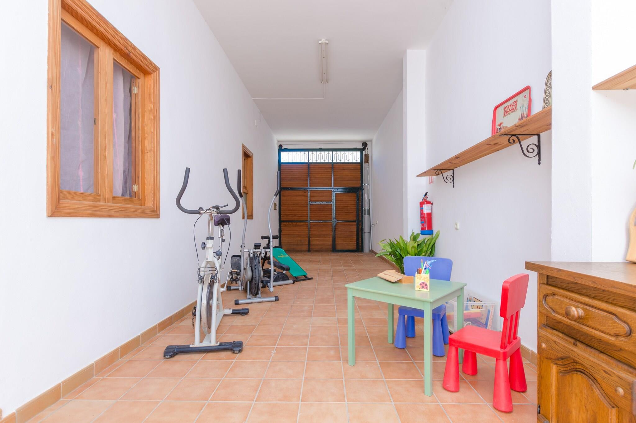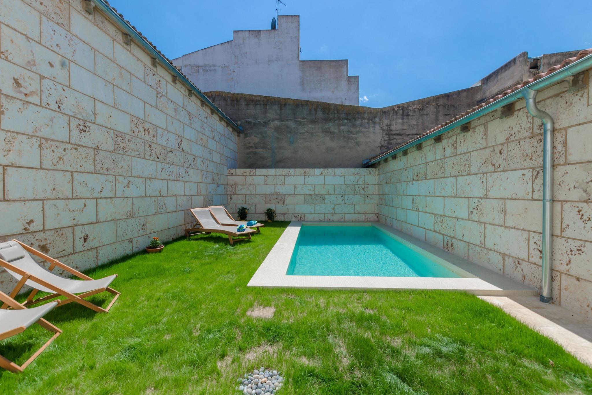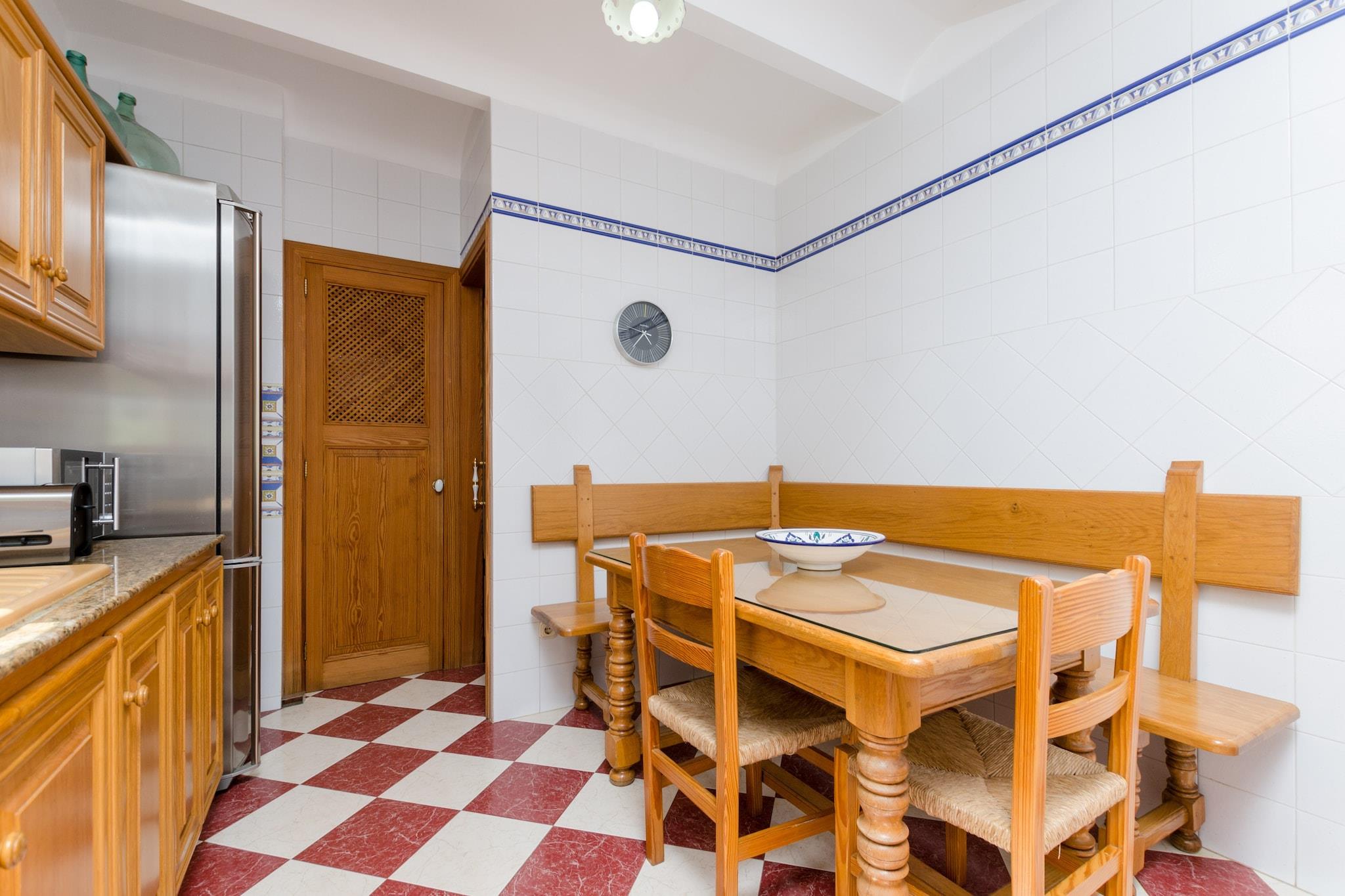 Privat udendørs tilflugtssted Slap af i din egen private oase med en glitrende klorpool (6,3 m x 2,7 m, dybde 1,35-1,7 m) omgivet af en frodig græsplæne og komfortable liggestole. Terrassen er perfekt til langsomme morgener eller solbeskinnede eftermiddage, mens den udendørs bruser og badeværelset ved poolen tilføjer ekstra bekvemmelighed. En skyggefuld terrasse indbyder til afslappede grillaftener, aftensamtaler eller blot en stille stund med en bog, hvilket gør udendørsrummene lige så indbydende som interiøret. Rummelig og komfortabel stue Træd indenfor til et varmt mallorcansk hjem, hvor tradition møder praktisk. Stuen med satellit-tv og aircondition flyder gennem en bred bue ind i spisepladsen og et generøst køkken udstyret med en gaskomfur i industriel stil, rigelig bordplads og siddepladser til familiens måltider. Med tre soveværelser med aircondition - to dobbeltværelser og et med to enkeltsenge - plus en barneseng og høj stol efter anmodning, passer villaen både par og familier. To badeværelser, vaskefaciliteter og centralvarme sikrer komfort og lethed året rundt. Autentisk landsbyatmosfære Beliggende i hjertet af Sa Pobla, ligger dette hjem kun få skridt fra livlige pladser, lokale butikker og caféer, der serverer traditionelle tapas. Søndage bringer det ugentlige marked, fyldt med friske råvarer og håndværksvarer. Playa de Muros gyldne sand er kun 11 km væk, mens golfspillere kan tage til Alcanada Golf inden for 20 km. Med en togstation i nærheden og Alcúdias havn kun en kort køretur, er det nemt at udforske øen.