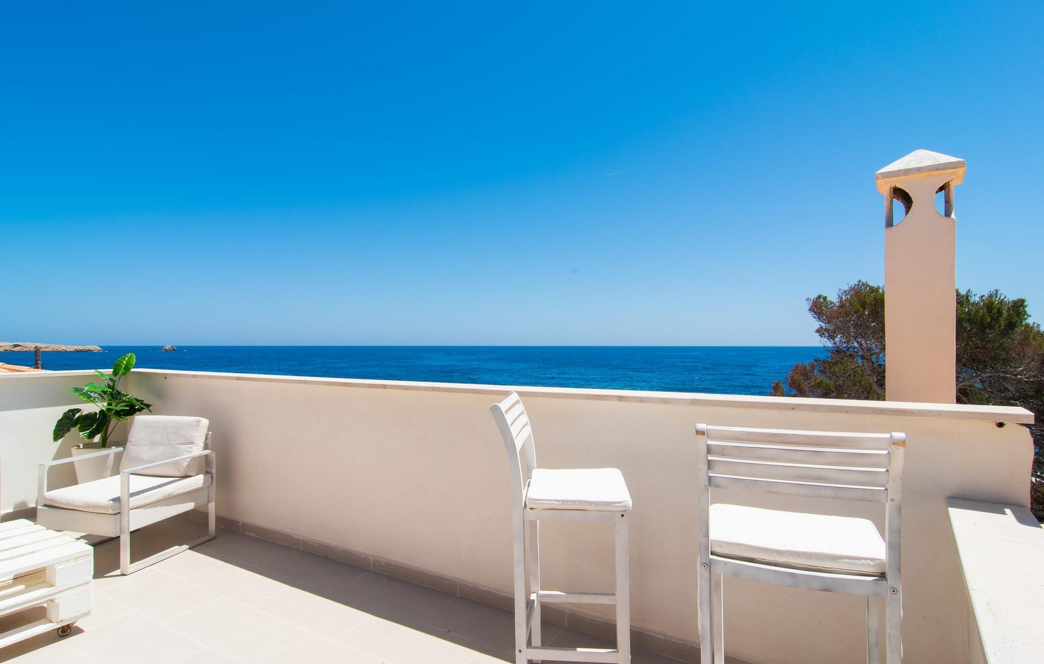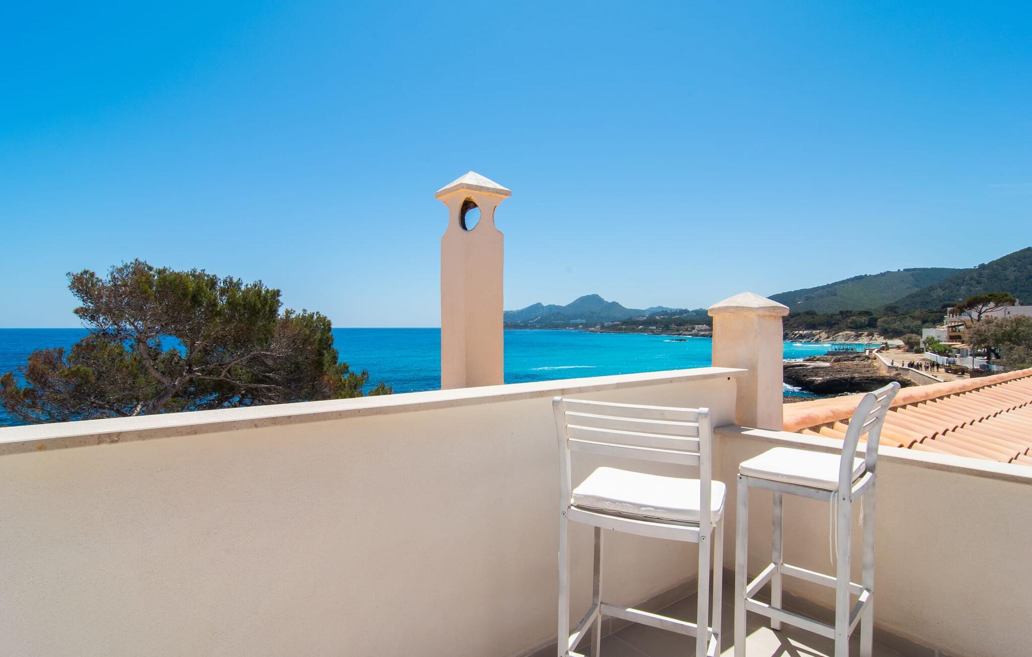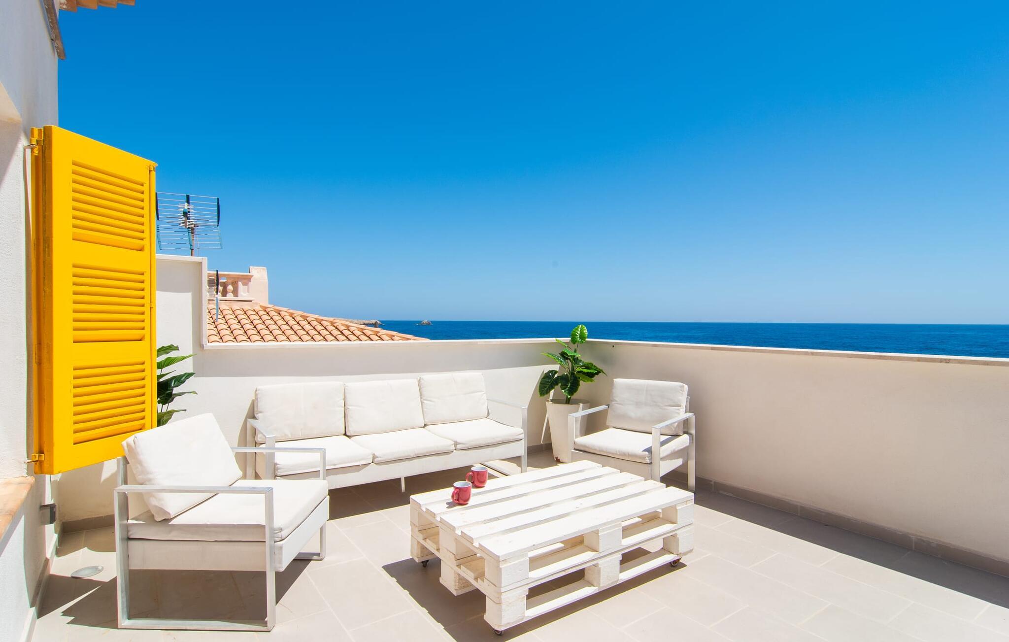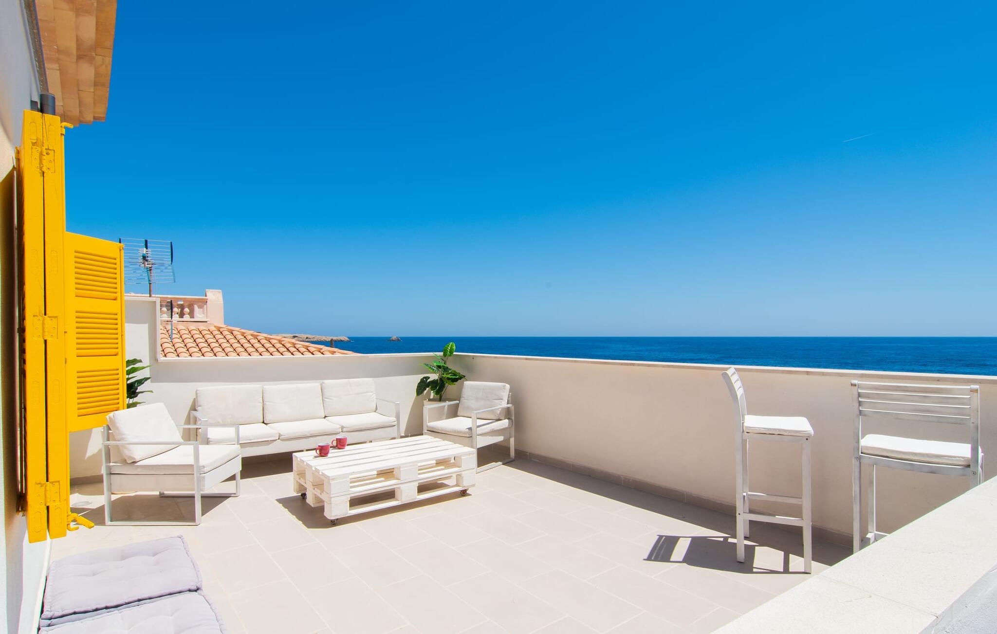 Den charmerende finca "Sa Punta Dúplex" er perfekt placeret på strandpromenaden i Cala Ratjada, med sin lyse hvide facade og solgule skodder, der fremkalder den enkle charme af et traditionelt fiskerhus. Nyd to terrasser og en balkon med en fantastisk udsigt over den forrevne kystlinje, kun adskilt af promenaden. For strandelskere ligger villaen kun få skridt fra Playa Na Ferradura, en stille bugt perfekt til en morgensvømning. Start jeres dag med en kop kaffe med udsigt over den hesteskoformede bugt Cala Ratjada eller nyd morgenmaden på den private overdækkede terrasse. Om aftenen er tagterrassen med fortelt og bar-agtig atmosfære ideel til en afslappet BBQ og sundowner. Interiøret i "Sa Punta Dúplex" er spredt over to niveauer. Den hyggelige stue med åben pejs er perfekt til køligere aftener og åbner ud til en lille altan med udsigt over promenaden. Spisestuen og et veludstyret køkken er også på denne etage. Hovedbadeværelset er placeret ved siden af køkkenet og er let tilgængeligt fra alle terrasser. På øverste etage byder det store soveværelse med eget brusebad på et roligt tilflugtssted. Denne villa er perfekt til en eller to familier eller venner, der leder efter en ferie ved havet med nem adgang til byen. Fra de smukke terrasser i det centralt beliggende rækkehus, "Sa Punta Dúplex", kan I nyde udsigten over havet og nærheden til talrige restauranter, barer og indkøbsmuligheder i Cala Ratjada. Lige foran huset ligger Playa Na Ferradura, et lille badeområde omkranset af klipper. Andre strande som bystranden Platja de Son Moll eller den fyrretræsklædte Cala Agulla er ca. 3 km væk.