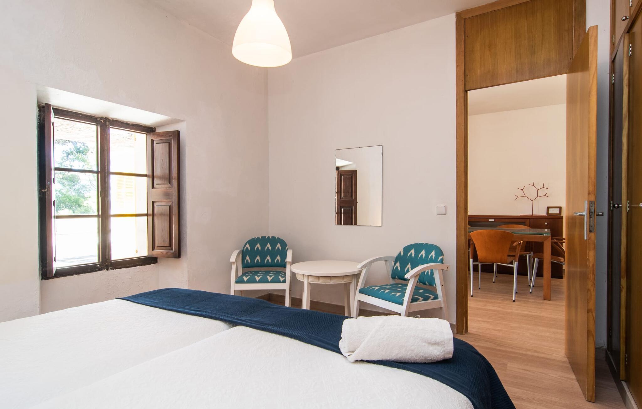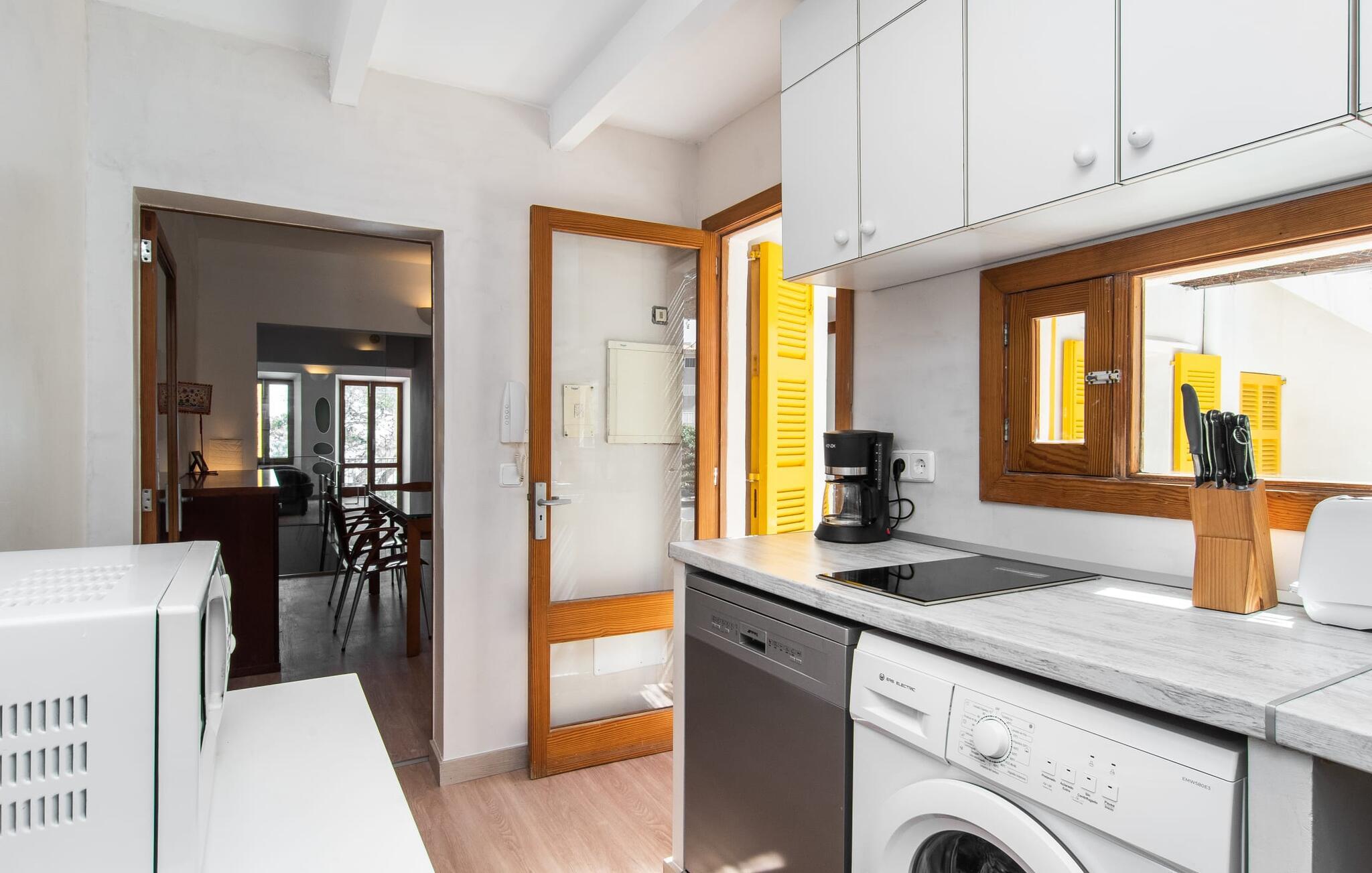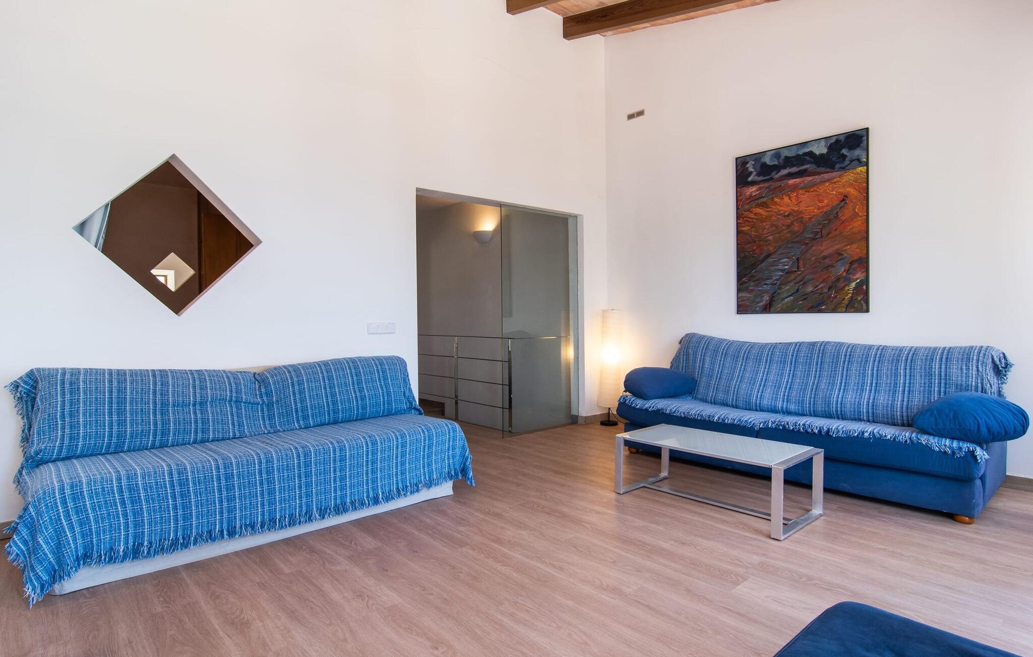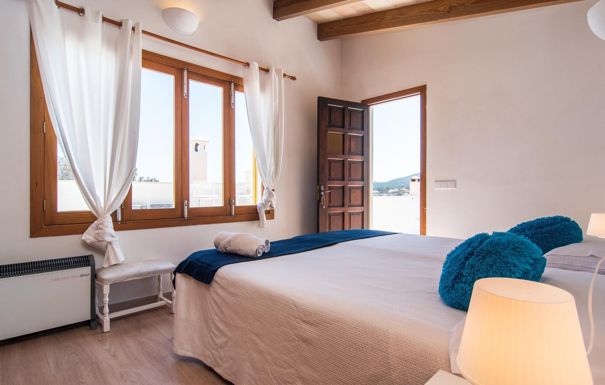 Den charmerende finca "Sa Punta Dúplex" er perfekt placeret på strandpromenaden i Cala Ratjada, med sin lyse hvide facade og solgule skodder, der fremkalder den enkle charme af et traditionelt fiskerhus. Nyd to terrasser og en balkon med en fantastisk udsigt over den forrevne kystlinje, kun adskilt af promenaden. For strandelskere ligger villaen kun få skridt fra Playa Na Ferradura, en stille bugt perfekt til en morgensvømning. Start jeres dag med en kop kaffe med udsigt over den hesteskoformede bugt Cala Ratjada eller nyd morgenmaden på den private overdækkede terrasse. Om aftenen er tagterrassen med fortelt og bar-agtig atmosfære ideel til en afslappet BBQ og sundowner. Interiøret i "Sa Punta Dúplex" er spredt over to niveauer. Den hyggelige stue med åben pejs er perfekt til køligere aftener og åbner ud til en lille altan med udsigt over promenaden. Spisestuen og et veludstyret køkken er også på denne etage. Hovedbadeværelset er placeret ved siden af køkkenet og er let tilgængeligt fra alle terrasser. På øverste etage byder det store soveværelse med eget brusebad på et roligt tilflugtssted. Denne villa er perfekt til en eller to familier eller venner, der leder efter en ferie ved havet med nem adgang til byen. Fra de smukke terrasser i det centralt beliggende rækkehus, "Sa Punta Dúplex", kan I nyde udsigten over havet og nærheden til talrige restauranter, barer og indkøbsmuligheder i Cala Ratjada. Lige foran huset ligger Playa Na Ferradura, et lille badeområde omkranset af klipper. Andre strande som bystranden Platja de Son Moll eller den fyrretræsklædte Cala Agulla er ca. 3 km væk.