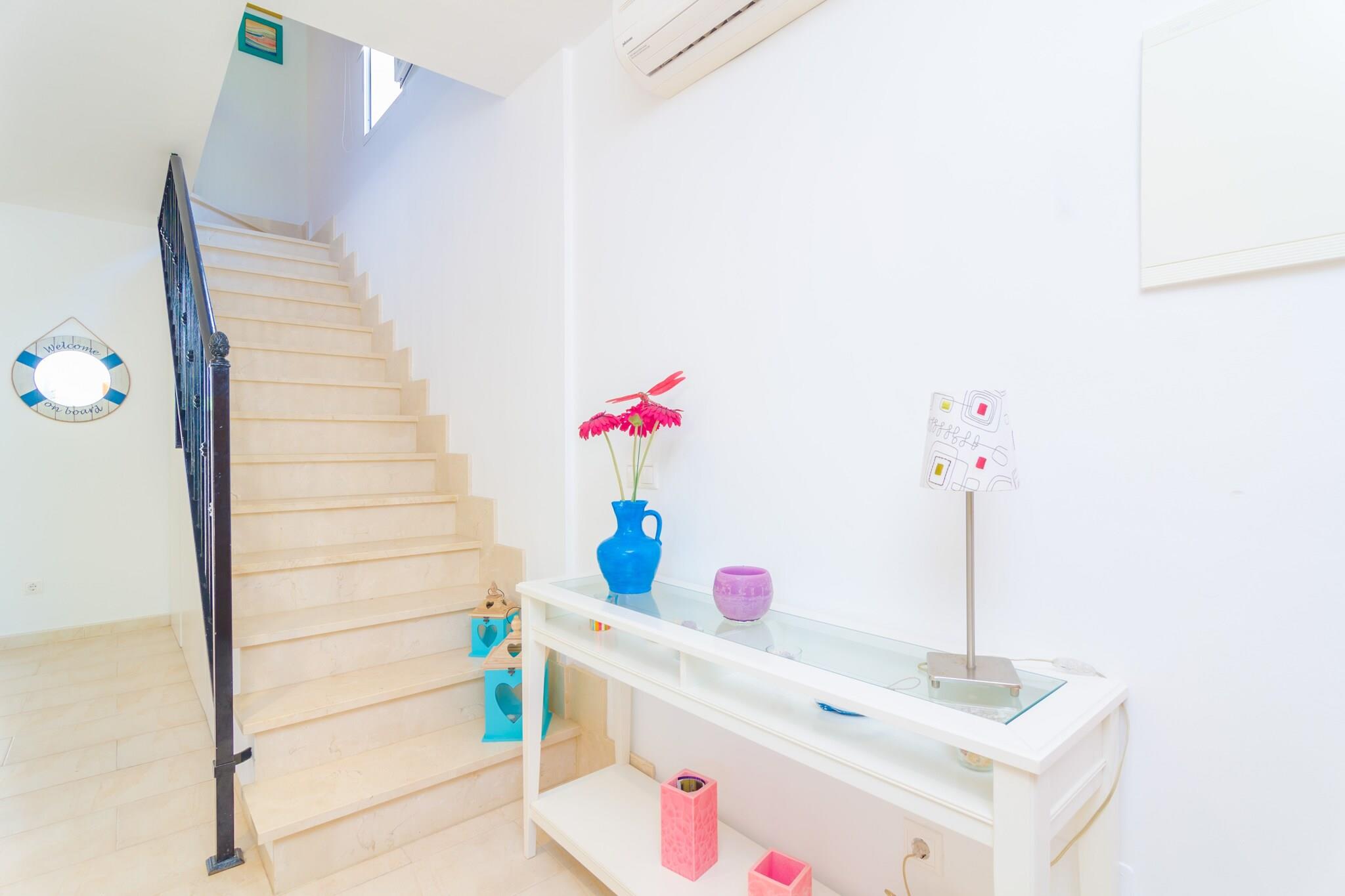 De udendørs rum omkring huset inviterer til at tilbringe tid udendørs og nyde det gode mallorcanske vejr. Du kan spise morgenmad eller en drink på verandaen ved stuen, eller bare slappe af med at læse en god bog, mens du nyder den forfriskende brise fra havet. På bagsiden af huset, ved køkkenet, en udendørs spiseplads, hvor du kan spise frokost eller middag udenfor og nyde fabelagtige grillaftener under forteltets beskyttelse. På første sal finder du det ideelle sted at solbade eller beundre stjernerne om natten. Ejendommen er indhegnet og der er naboer omkring. Huset på 120 m2 i to etager har en behagelig, forfriskende og middelhavsstil, som vil få dig til at føle dig hjemme. I stueetagen finder du stue og spisestue, hvor du kan se tv eller bare slappe af i sofaen, mens du forfriskende med aircondition. Så den smukke og middelhavs spiseplads med plads til 4 personer. Køkkenet er uafhængigt og fuldt udstyret med keramisk kogeplade og opvaskemaskine samt et bord til 4 personer. Fra køkkenet er der udgang til husets bagterrasse. Det har også et vaskerum med vaskemaskine, tørretumbler, strygejern og strygebræt. Et brusebadeværelse fuldender denne etage. Ovenpå finder du de tre soveværelser. Dette hus ligger i Sa Ràpita, i 3. linje fra havet og meget tæt på stranden, kun 1,5 km væk. Udover stranden i landsbyen kan du også besøge den fantastiske og paradisiske strand Es Trenc, et vidunderligt turkis vand og hvid sandstrand, hvor du virkelig vil nyde en stranddag i et jomfruligt miljø. Som reaktion på Coronavirus (COVID-19) er yderligere sikkerheds- og sanitetsforanstaltninger i kraft på denne ejendom. Turistlicens: ETV/12643