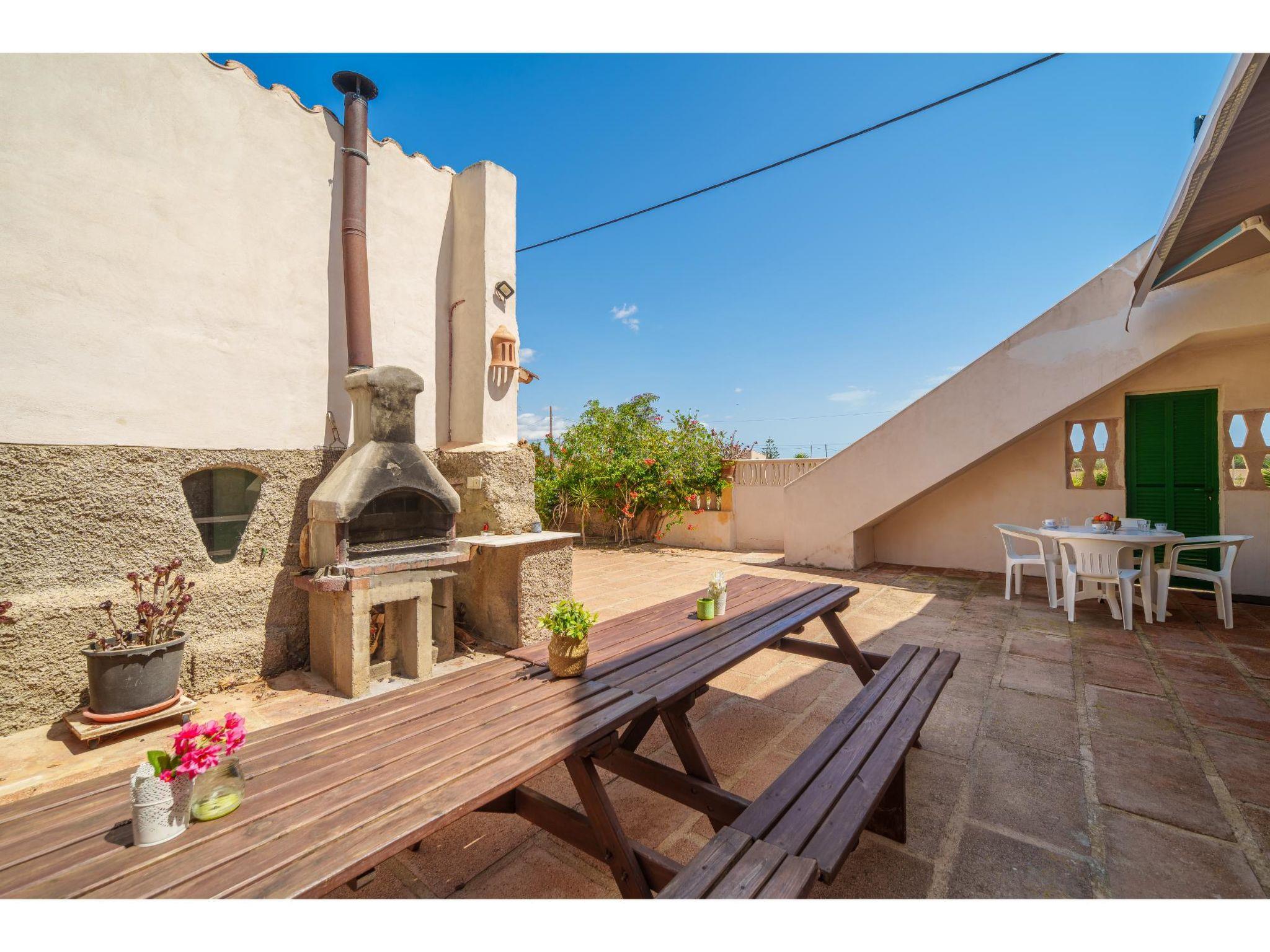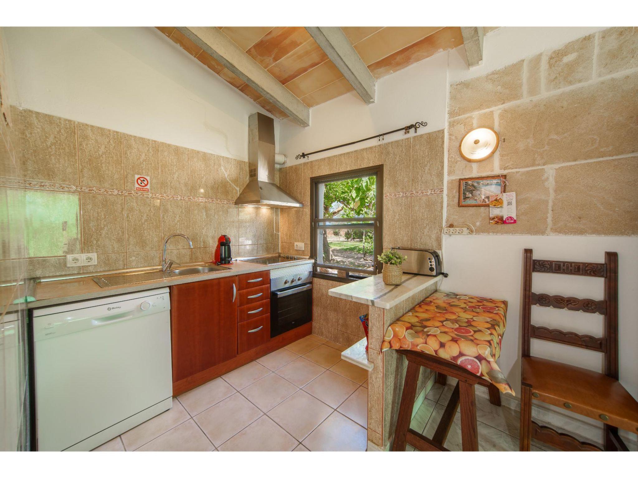 "Cas Forner", 5-room house 160 m2. Object suitable for 8 adults. Living/dining room with open-hearth fireplace (only for decoration), shower/WC, air conditioning and forced-air heating. Exit to the terrace. 2 double bedrooms, each room with 2 beds (90 cm, length 200 cm), air conditioning and forced-air heating. 2 double bedrooms, each room with 1 french bed (1 x 150 cm, length 200 cm), shower/WC, air conditioning and forced-air heating. Exit to the terrace. Kitchen (4 ceramic glass hob hotplates, microwave, electric coffee machine) with bathroom. Exit to the patio. Bath/WC. Natural stone floors. Patio. Terrace furniture, barbecue, deck chairs, covered balcony, sitting area. View of the countryside. Facilities: washing machine, iron, children's high chair, baby cot for up to 2 year olds, hair dryer. Internet (WiFi, free). Parking at the house. Please note: suitable for families one double bedroom is outside the apartment. No internal connecting door between the separated properties. VT/1865 // Reg. Nr.: ESFCTU0000070230001456985000000000000000000VT/1865