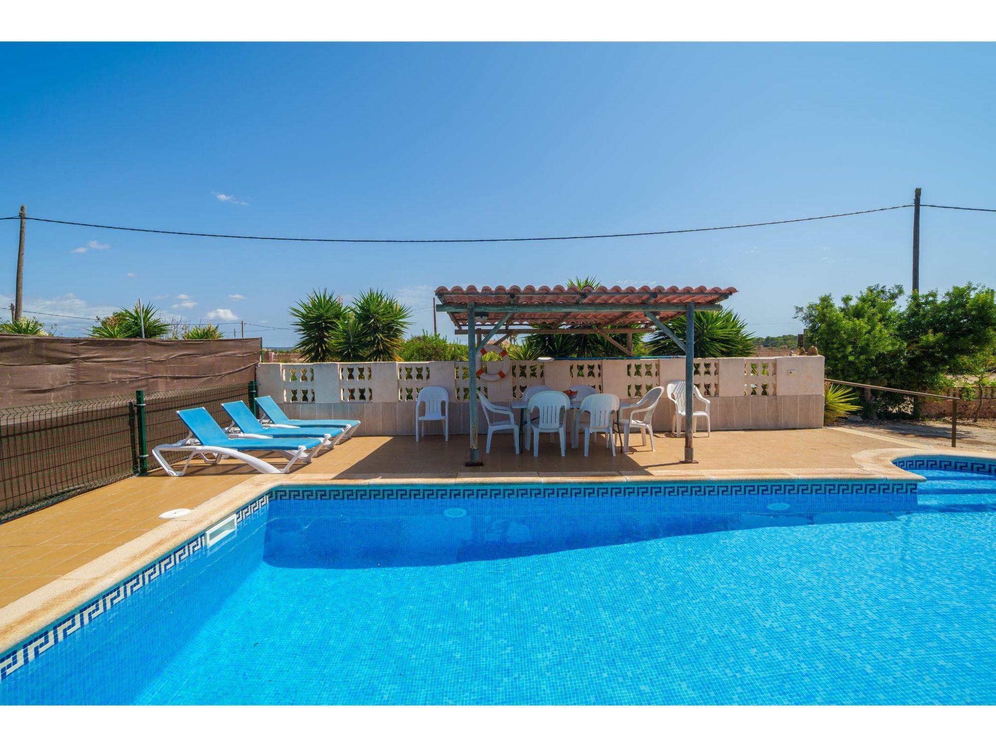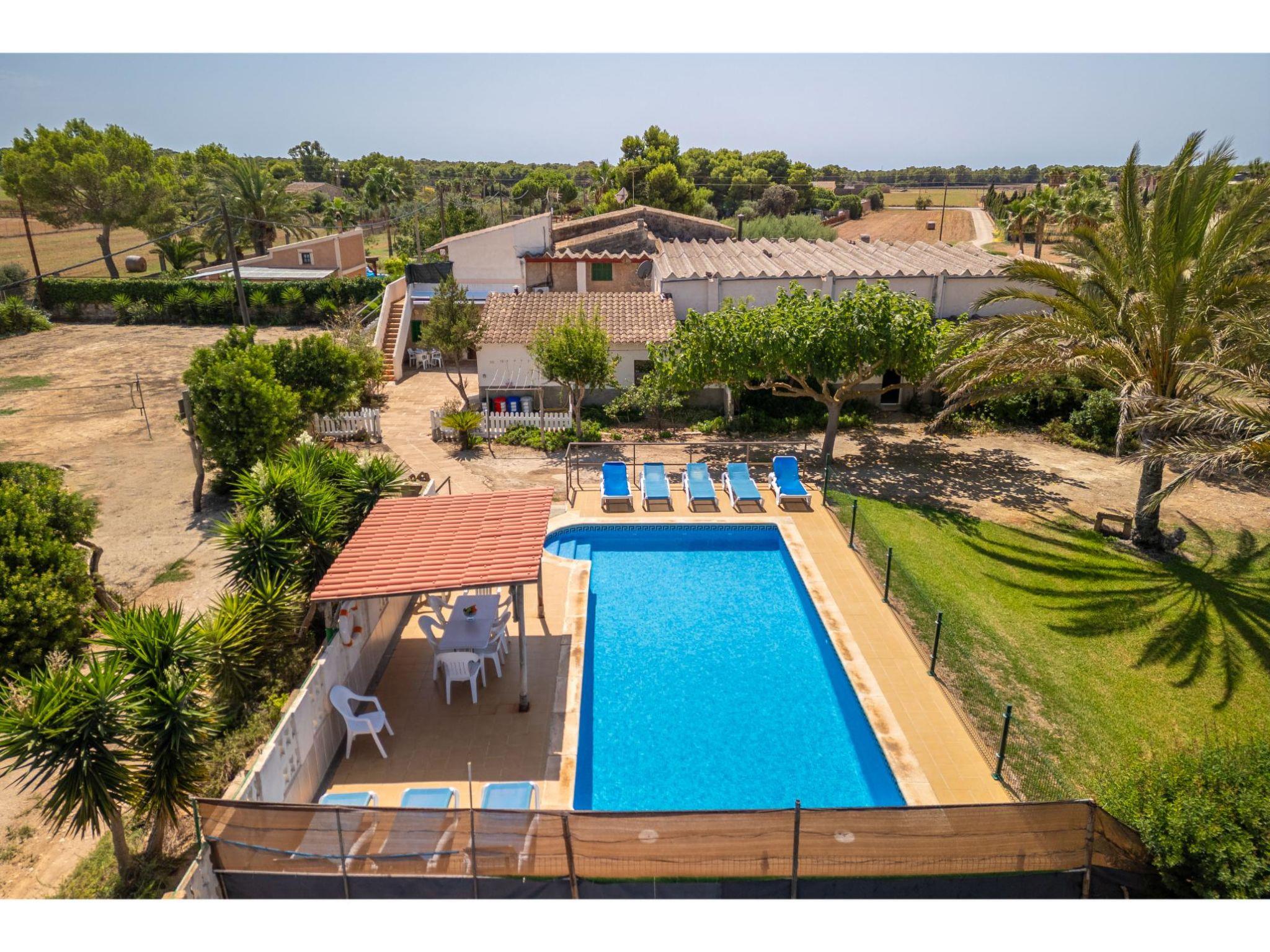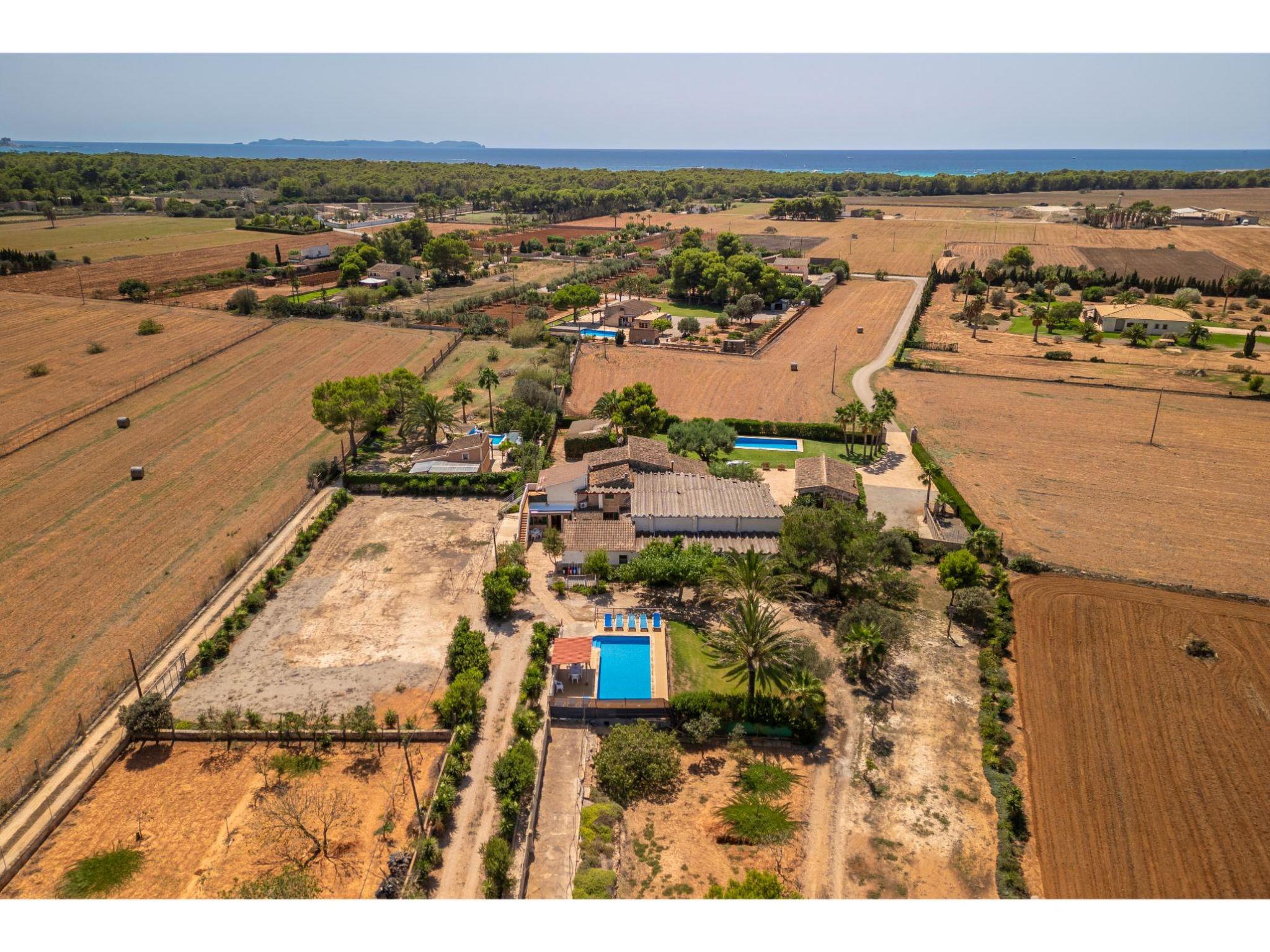 Sa Ràpita 12 km from Campos: Large, rustic, simple house "Cas Forner", surrounded by trees. Property composed of main house and outbuilding, 200 m from the edge of the forest, 1 km from the sea, 1.5 km from the beach, in the countryside. Private: property, garden, swimming pool angular (3 x 6 m, depth 150 cm, seasonal availability: 01.Mar. - 31.Oct.). Table tennis, volleyball, patio, pergola, garden furniture, barbecue, pool maintenance by the owner/gardener. In the house: WiFi, air conditioning, washing machine. Parking at the house. Shop 1.5 km, grocery 1.5 km, supermarket 1.5 km, shopping centre 12 km, restaurant 1.5 km, bar 1.5 km, bakery 1.5 km, café 1.5 km, pedestrian zone 400 m, bus stop "Sa Ràpita" 2.5 km, railway station "Manacor" 40 km, sandy beach "Ses Covetes" 1.5 km. Sports harbour 1 km, marina 1 km, golf course (18 hole) 20 km, sailing school 1.5 km, cycle lane 400 m. Nearby attractions: Ses Covetes 1.5 km, Sa ràpita 1 km, Campos 12 km, La cueva azul 2 km, Isla de Cabrera 2 km, El mercado 1.5 km. Please note: car recommended. Baby equipment. Object suitable for 8 adults. The owner does not accept any youth groups. Loading and unloading of baggage is possible at the holiday house. The owner lives on the same property. Motorway 20 km from the property. Airfield 40 km from the property.