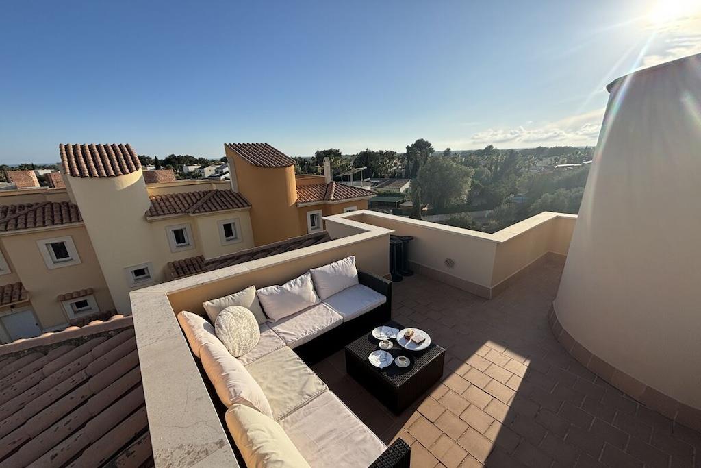 Can Suerte – på Mallorca, "Lykkens Hjem" Find din perfekte ferie i denne moderne penthouselejlighed i middelhavsstil, der ligger i El Paraiso-komplekset. Vores kærligt renoverede ferielejlighed, "Can Suerte", er på 85 kvadratmeter og har to soveværelser, hver med indbygget garderobe, to badeværelser (et lille badeværelse med bruser og et ensuite badeværelse med badekar) samt et fuldt udstyret åbent køkken med fantastiske nye SMEG-apparater og en Nespresso-kaffemaskine. Den smagfuldt møblerede opholdsstue med tv og adgang til balkonen inviterer dig til at slappe af og koble fra. Sengene er også blevet fornyet med madrasser af høj kvalitet. Om sommeren kan lejligheden køles ned til den ønskede temperatur ved hjælp af aircondition. I vintermånederne har lejligheden infrarøde varmepaneler, der giver behagelig varme (opvarmning kan også opnås via aircondition). En vindeltrappe fører til lejlighedens midtpunkt. Den 30 kvm store terrasse på vestsiden er møbleret med et spisebord og seks stole, samt en ny Napoleon-gasgrill og et gaskomfur. Nyd din grillaften med en storslået udsigt over det omkringliggende grønt og beundre solnedgangen! På den anden side af terrassen ligger loungen, hvor du kan nyde solnedgangen med et glas vin og en smuk panoramaudsigt, der strækker sig til Es Trenc og øen Cabrera. Ligstole er også tilgængelige. En smuk, rummelig fælles pool, inklusive en børnepool, er tilgængelig til fælles brug! På restauranten Xivi, der ligger lige ved siden af komplekset, kan du nyde lækre måltider til frokost og aftensmad eller blot tage en drink. En rabat på 5% ved tidlig booking er tilgængelig for bookinger foretaget mindst tre måneder i forvejen. Hvis du er interesseret i en langtidsleje, bedes du kontakte os, så giver vi dig gerne et personligt tilbud!