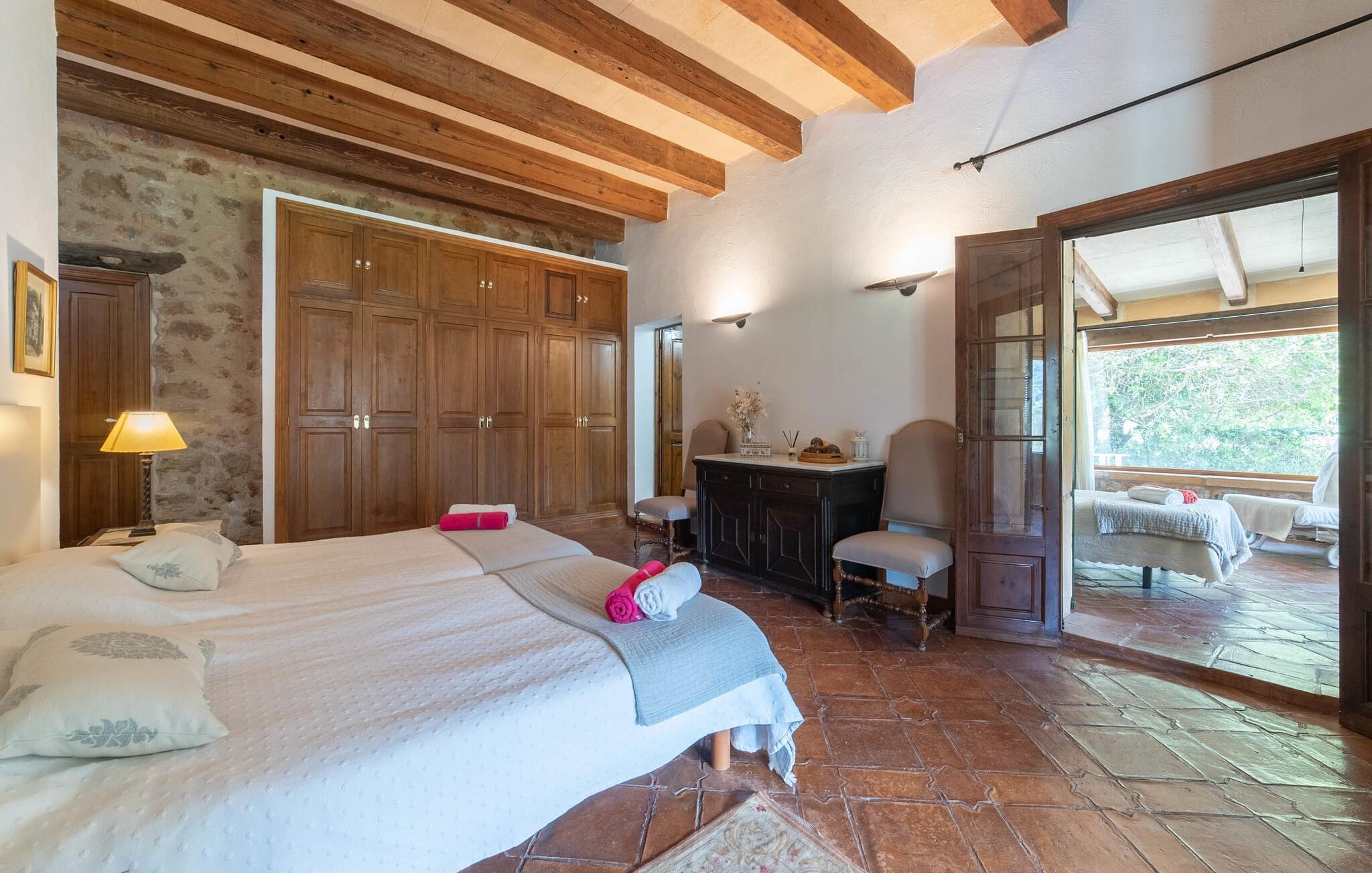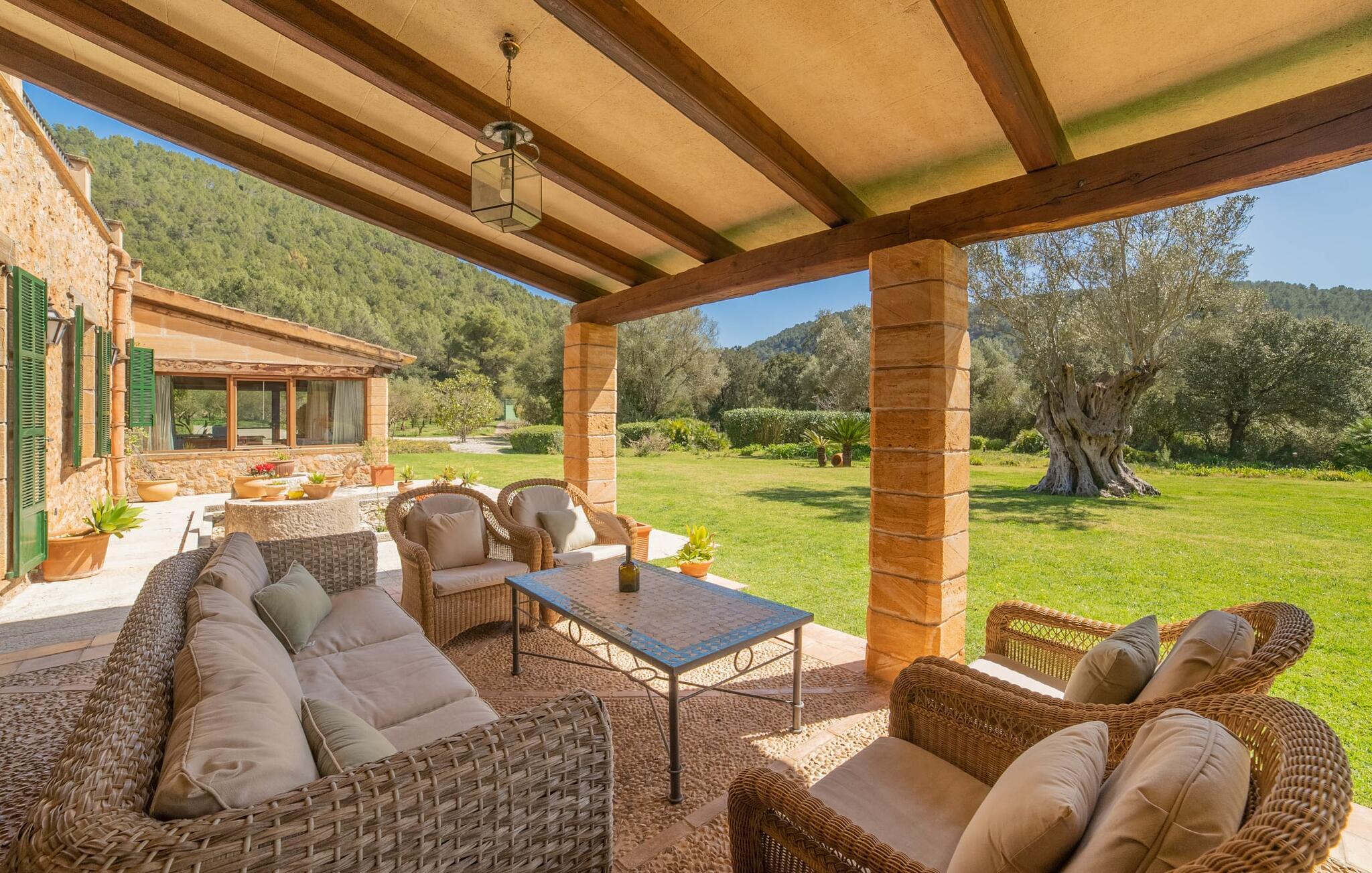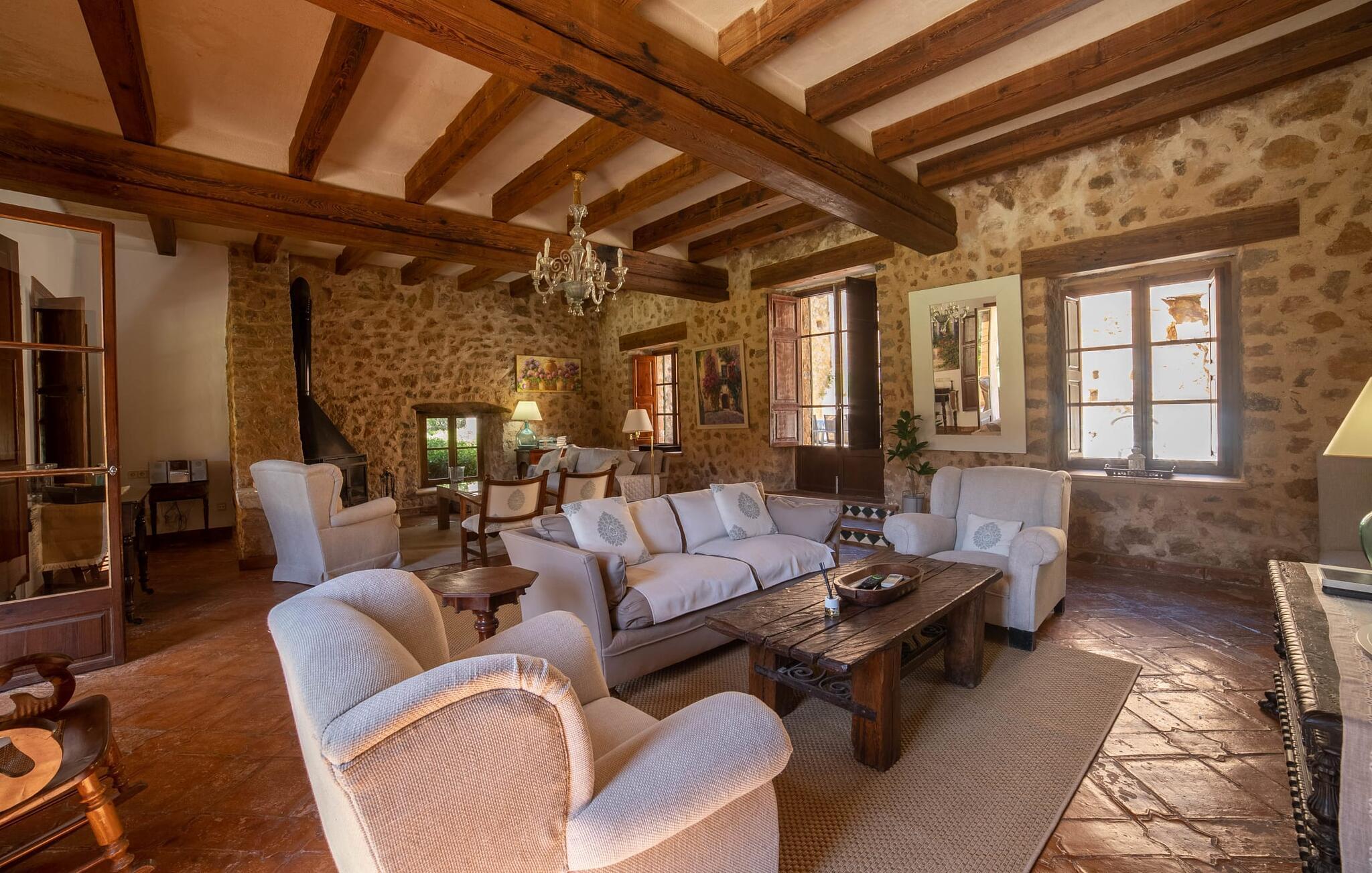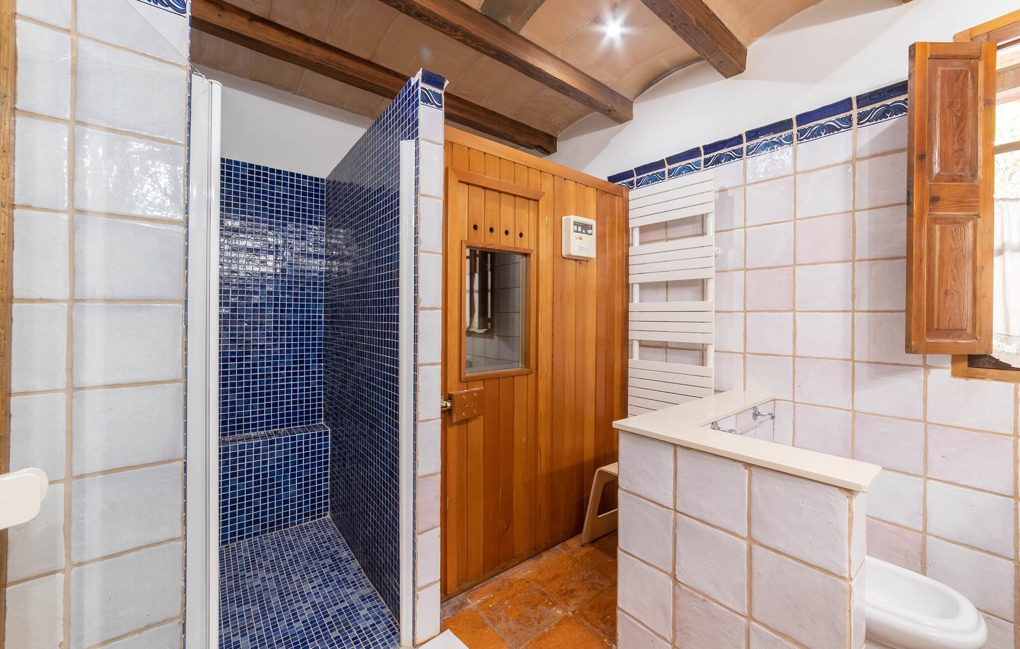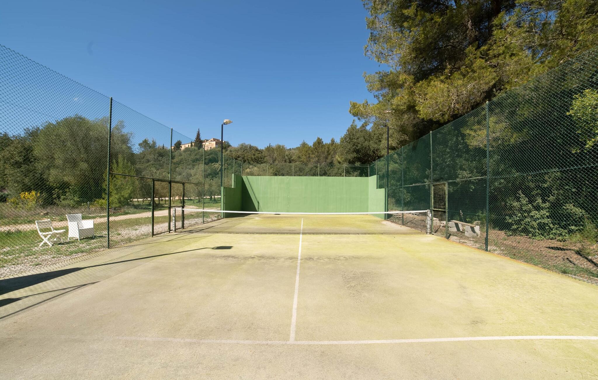 Oplev fuldstændig privatliv og betagende udsigt over bjergene i denne smukt designede bondegård på Mallorca. Omgivet af frodig middelhavsvegetation og modne træer er den indbydende atmosfære ideel for alle aldre. Ejendommen har stilfulde terrasseområder, både åbne og overdækkede, perfekt til afslapning udenfor. Nyd en dukkert i den lavvandede pool eller spil sport på stedets paddle-tennisbane, et unikt tilbud. Liggestole på poolterrassen er et behageligt sted at slappe af under middelhavssolen. Ejendommen var oprindeligt en olivenfarm og vedligeholdes stadig af personale til olivenproduktion og anlægsinspektioner. Det rummelige hus, udstyret med aircondition og gulvvarme, byder på masser af plads til individuel nydelse. Traditionelle terracotta-fliser, synlige bjælkelofter og naturstenselementer understreger den hyggelige atmosfære. Stuen med pejs og fjernsyn samt fuldt udstyret køkken med spiseplads er perfekte til sammenkomster. Stuehuset har seks soveværelser - fire dobbeltværelser og to singler - samt fire badeværelser og et gæstetoilet for at sikre privatlivets fred for alle gæster. En separat boligenhed består af et af soveværelserne med dobbeltsenge, et badeværelse og en lille stue med integreret køkken. En udendørs sauna giver wellness og giver jeres ferieoplevelse et afslappende præg. Dette eksklusive bondehus i natursten ligger i smukke landlige omgivelser midt i Tramuntana-bjergene. Esporles med butikker, flere restauranter og barer kan nås på 5 minutter i bil, den nærmeste strand på cirka 20 minutter.