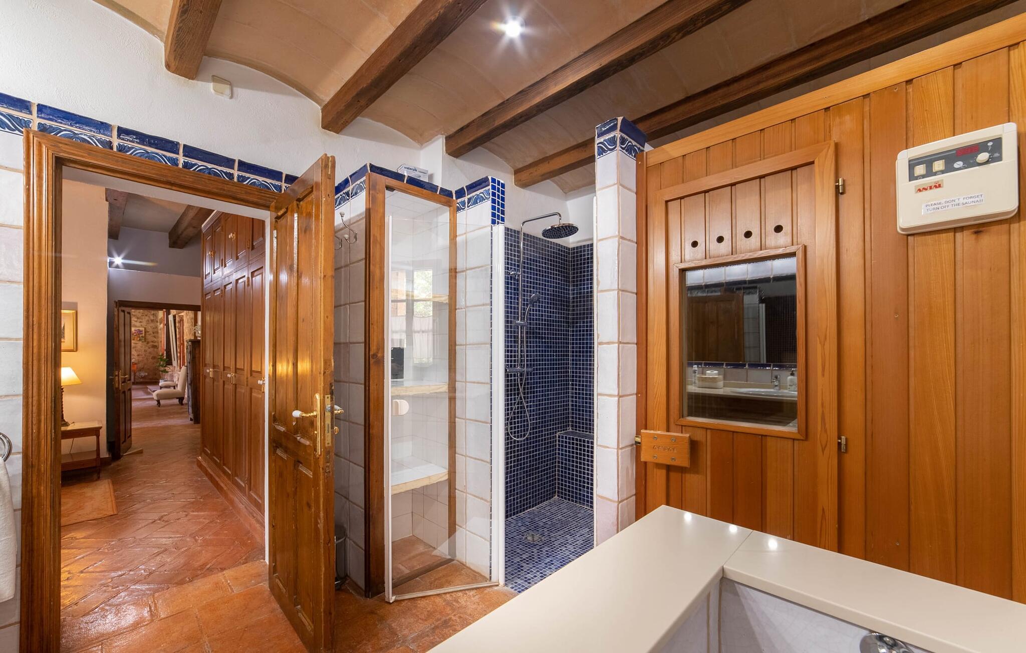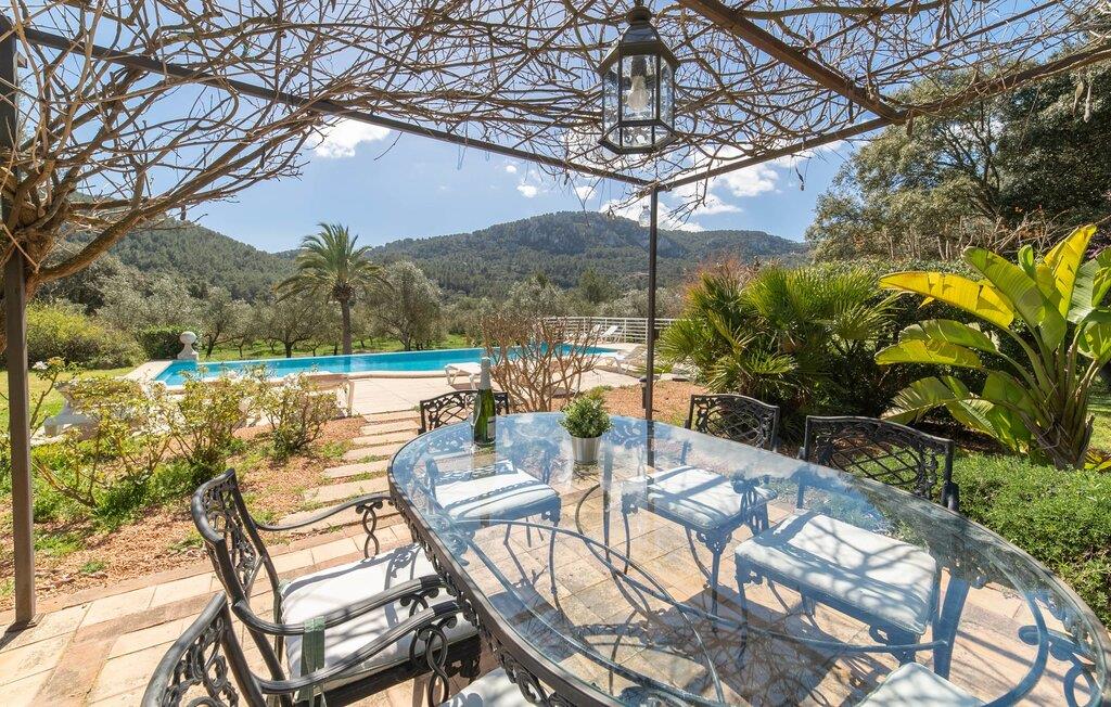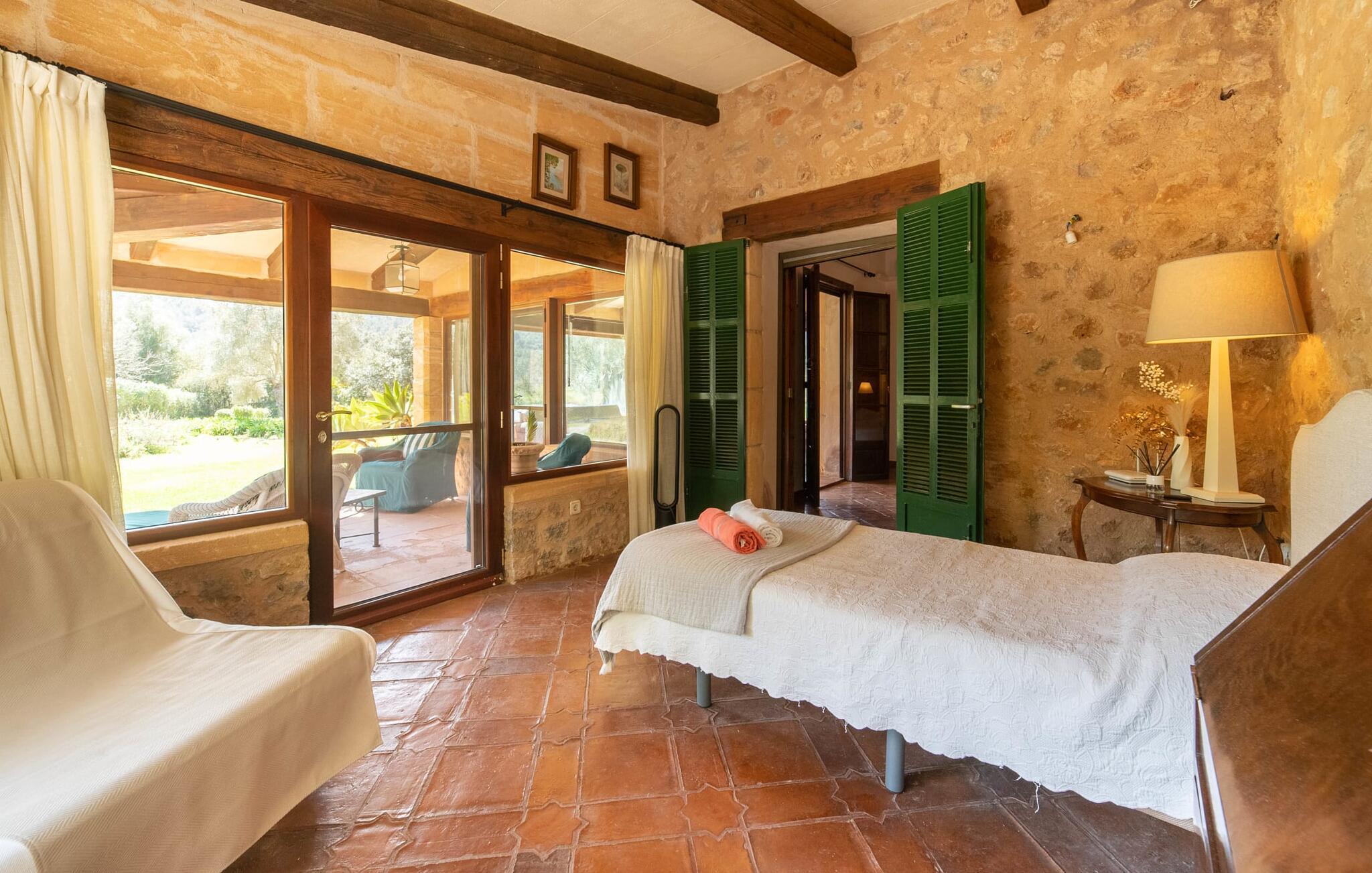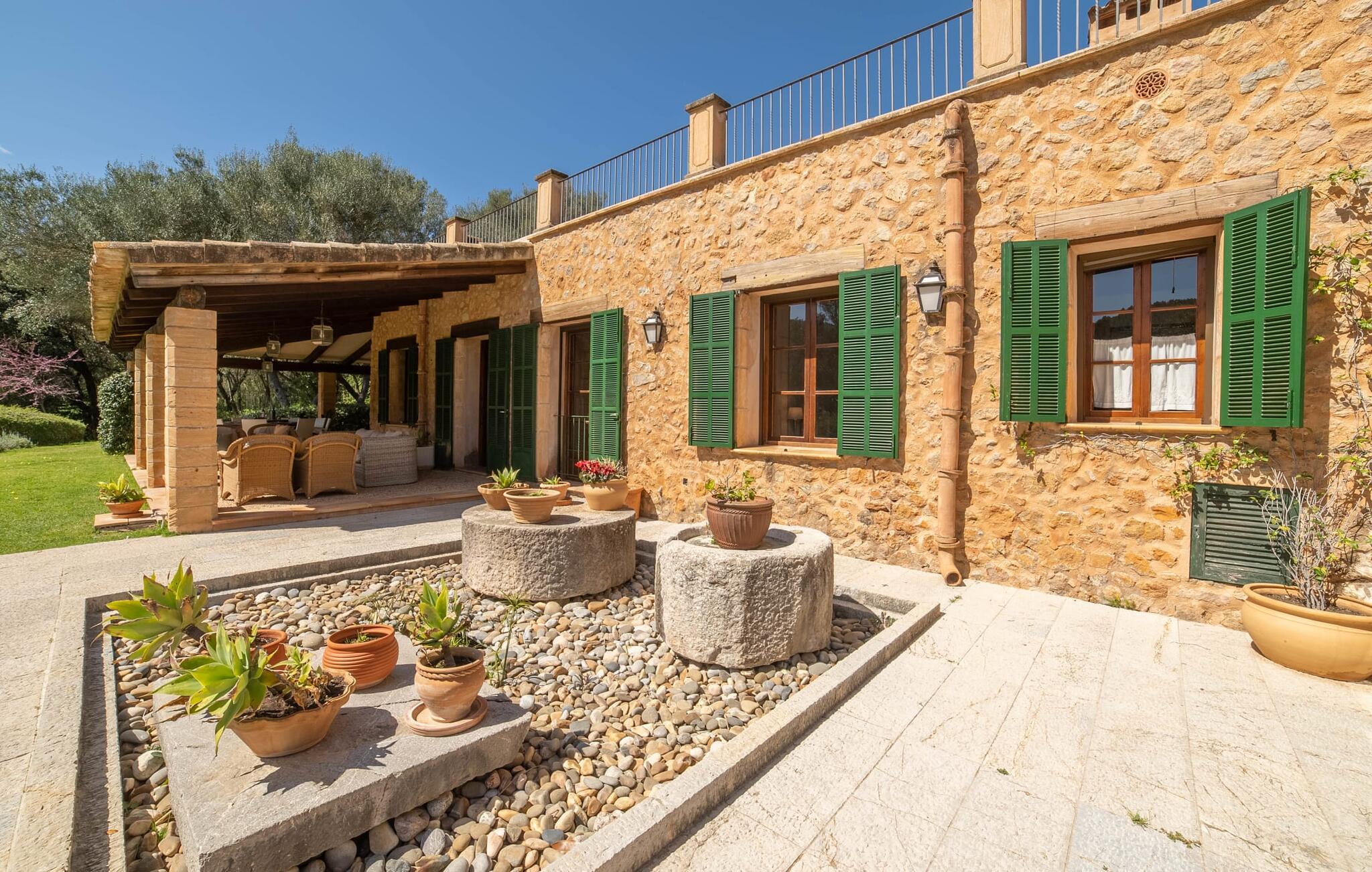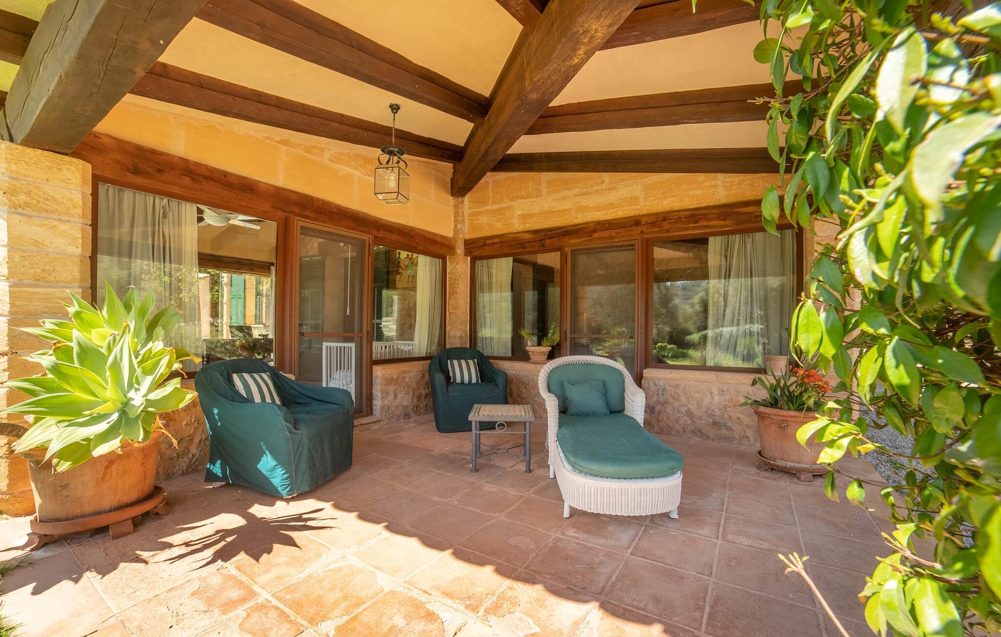 Oplev fuldstændig privatliv og betagende udsigt over bjergene i denne smukt designede bondegård på Mallorca. Omgivet af frodig middelhavsvegetation og modne træer er den indbydende atmosfære ideel for alle aldre. Ejendommen har stilfulde terrasseområder, både åbne og overdækkede, perfekt til afslapning udenfor. Nyd en dukkert i den lavvandede pool eller spil sport på stedets paddle-tennisbane, et unikt tilbud. Liggestole på poolterrassen er et behageligt sted at slappe af under middelhavssolen. Ejendommen var oprindeligt en olivenfarm og vedligeholdes stadig af personale til olivenproduktion og anlægsinspektioner. Det rummelige hus, udstyret med aircondition og gulvvarme, byder på masser af plads til individuel nydelse. Traditionelle terracotta-fliser, synlige bjælkelofter og naturstenselementer understreger den hyggelige atmosfære. Stuen med pejs og fjernsyn samt fuldt udstyret køkken med spiseplads er perfekte til sammenkomster. Stuehuset har seks soveværelser - fire dobbeltværelser og to singler - samt fire badeværelser og et gæstetoilet for at sikre privatlivets fred for alle gæster. En separat boligenhed består af et af soveværelserne med dobbeltsenge, et badeværelse og en lille stue med integreret køkken. En udendørs sauna giver wellness og giver jeres ferieoplevelse et afslappende præg. Dette eksklusive bondehus i natursten ligger i smukke landlige omgivelser midt i Tramuntana-bjergene. Esporles med butikker, flere restauranter og barer kan nås på 5 minutter i bil, den nærmeste strand på cirka 20 minutter.