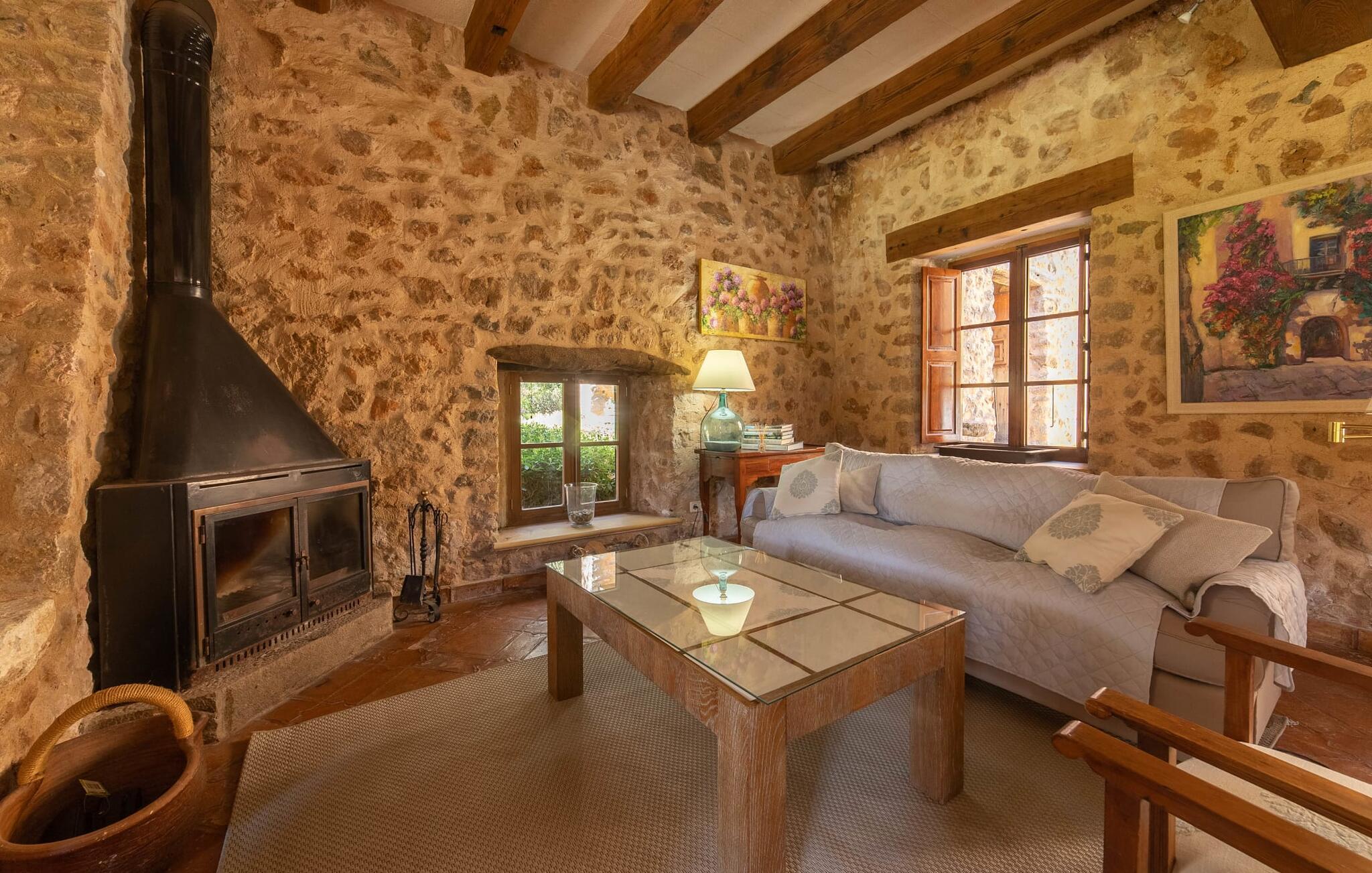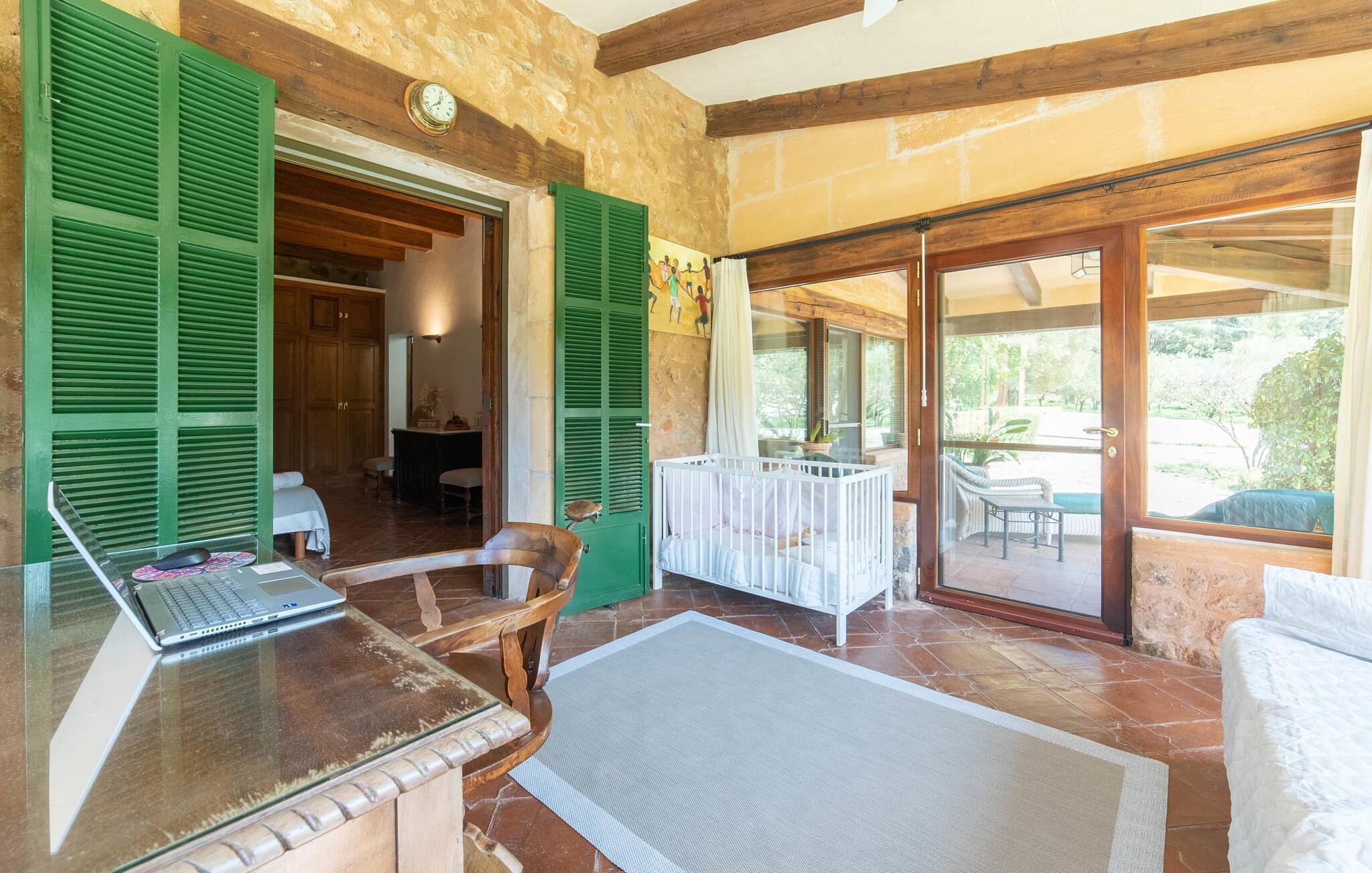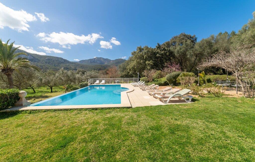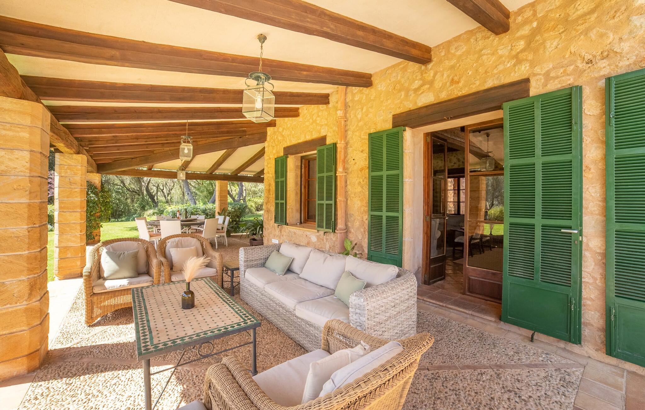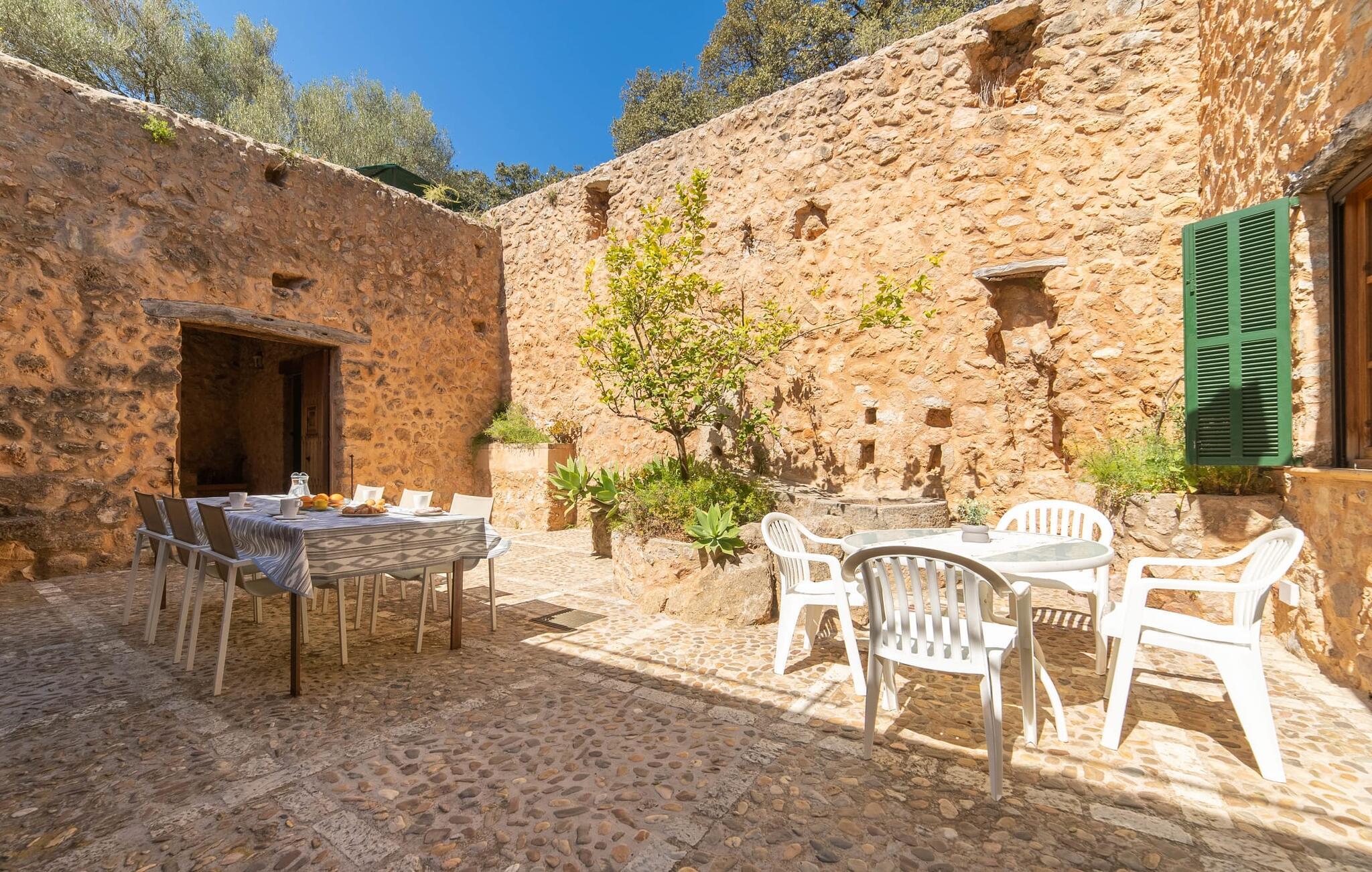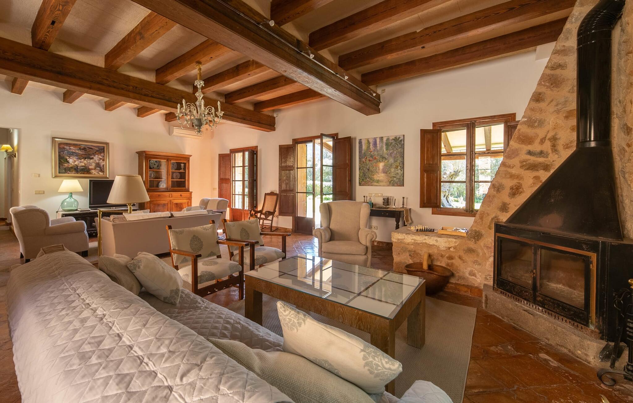 Oplev fuldstændig privatliv og betagende udsigt over bjergene i denne smukt designede bondegård på Mallorca. Omgivet af frodig middelhavsvegetation og modne træer er den indbydende atmosfære ideel for alle aldre. Ejendommen har stilfulde terrasseområder, både åbne og overdækkede, perfekt til afslapning udenfor. Nyd en dukkert i den lavvandede pool eller spil sport på stedets paddle-tennisbane, et unikt tilbud. Liggestole på poolterrassen er et behageligt sted at slappe af under middelhavssolen. Ejendommen var oprindeligt en olivenfarm og vedligeholdes stadig af personale til olivenproduktion og anlægsinspektioner. Det rummelige hus, udstyret med aircondition og gulvvarme, byder på masser af plads til individuel nydelse. Traditionelle terracotta-fliser, synlige bjælkelofter og naturstenselementer understreger den hyggelige atmosfære. Stuen med pejs og fjernsyn samt fuldt udstyret køkken med spiseplads er perfekte til sammenkomster. Stuehuset har seks soveværelser - fire dobbeltværelser og to singler - samt fire badeværelser og et gæstetoilet for at sikre privatlivets fred for alle gæster. En separat boligenhed består af et af soveværelserne med dobbeltsenge, et badeværelse og en lille stue med integreret køkken. En udendørs sauna giver wellness og giver jeres ferieoplevelse et afslappende præg. Dette eksklusive bondehus i natursten ligger i smukke landlige omgivelser midt i Tramuntana-bjergene. Esporles med butikker, flere restauranter og barer kan nås på 5 minutter i bil, den nærmeste strand på cirka 20 minutter.