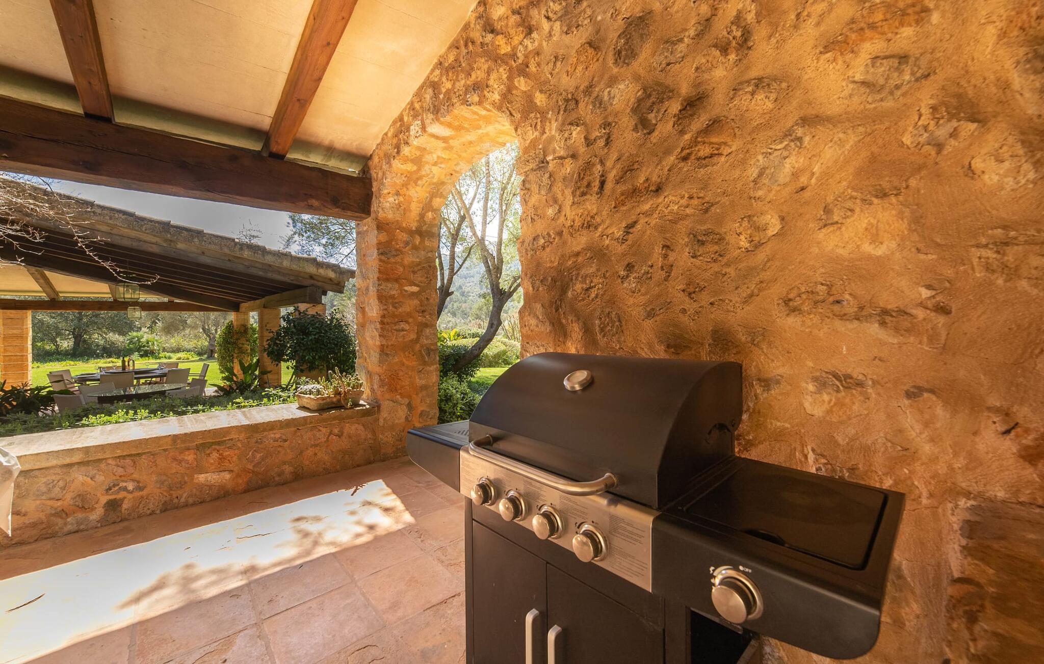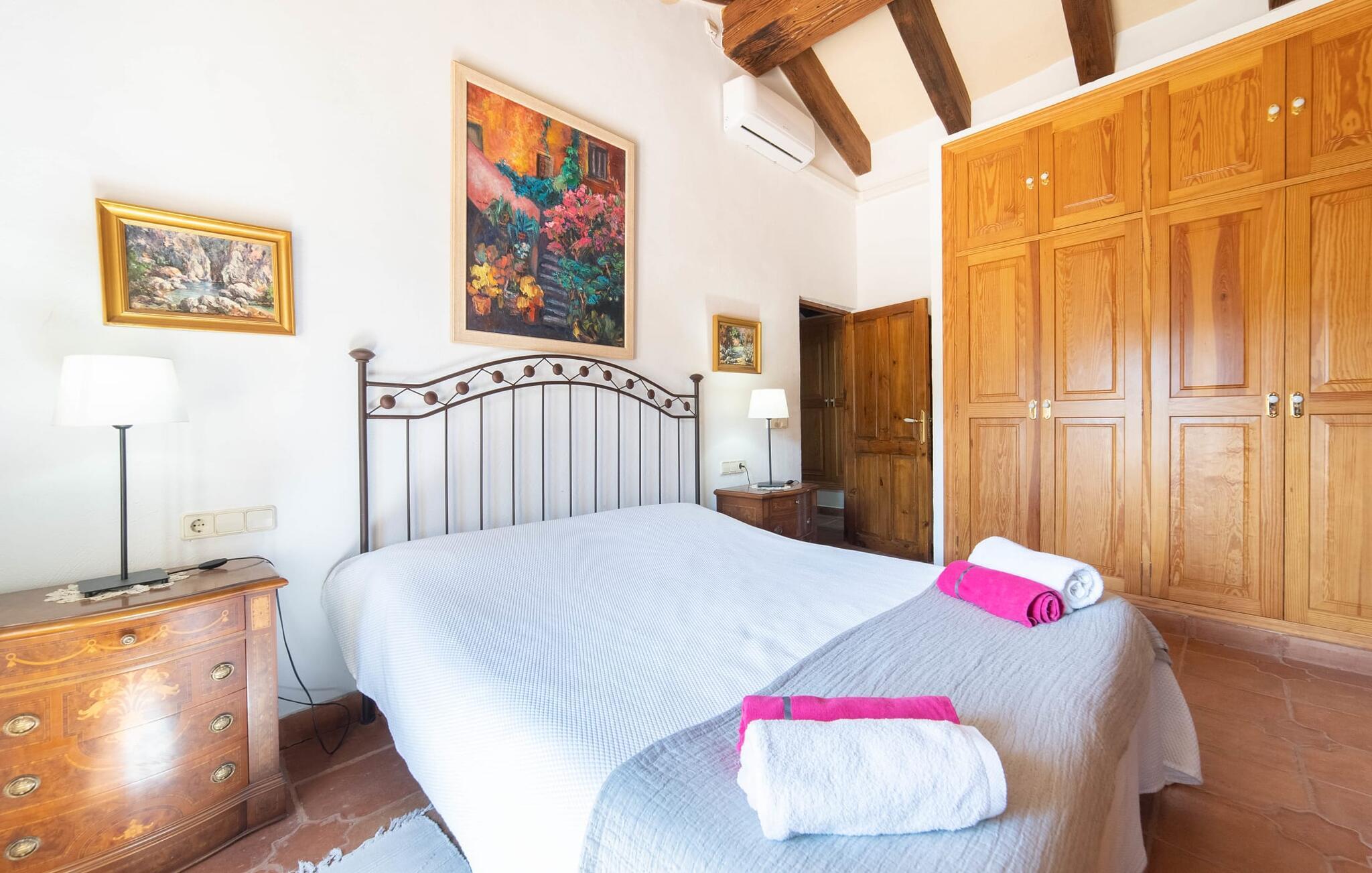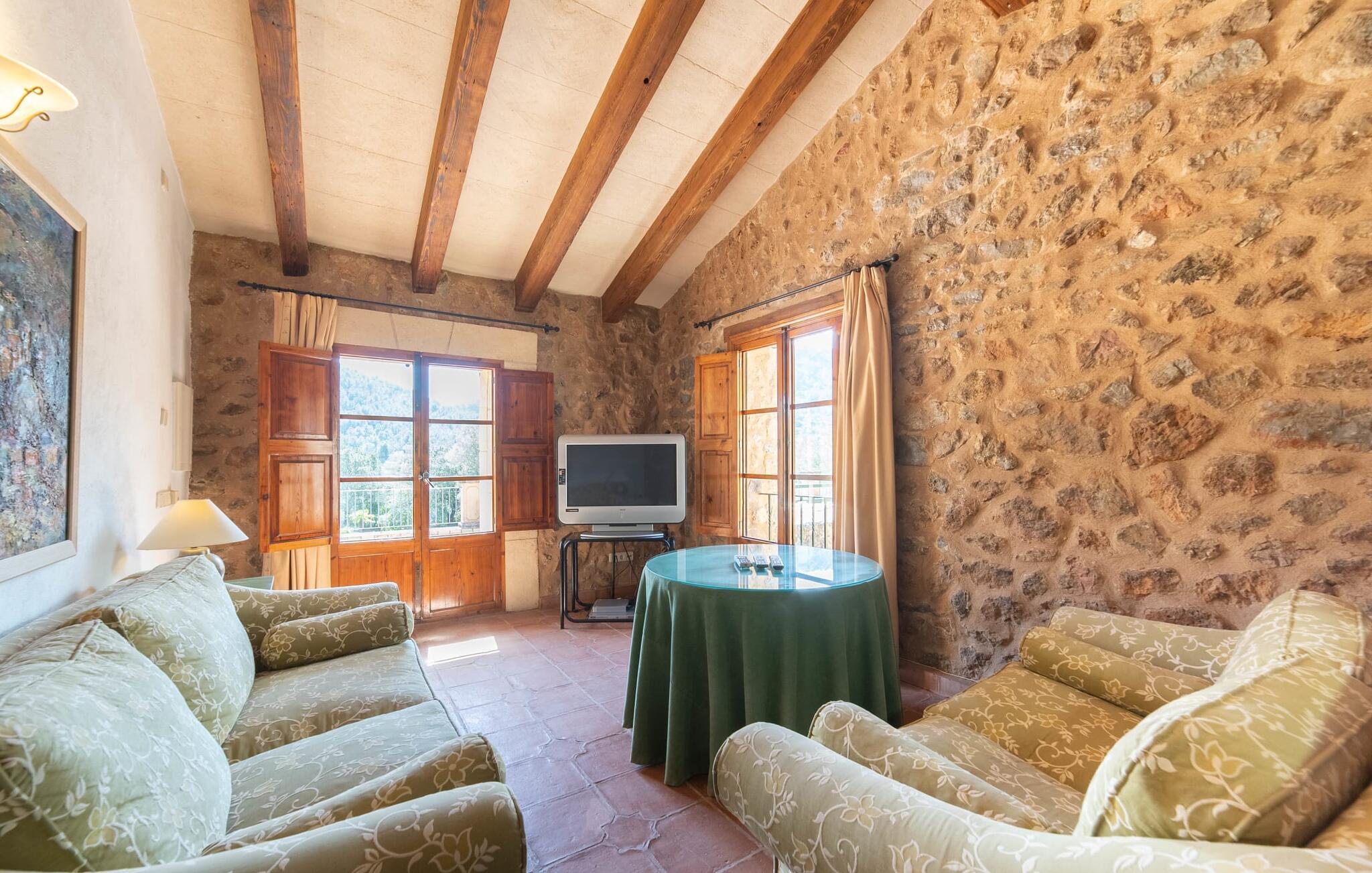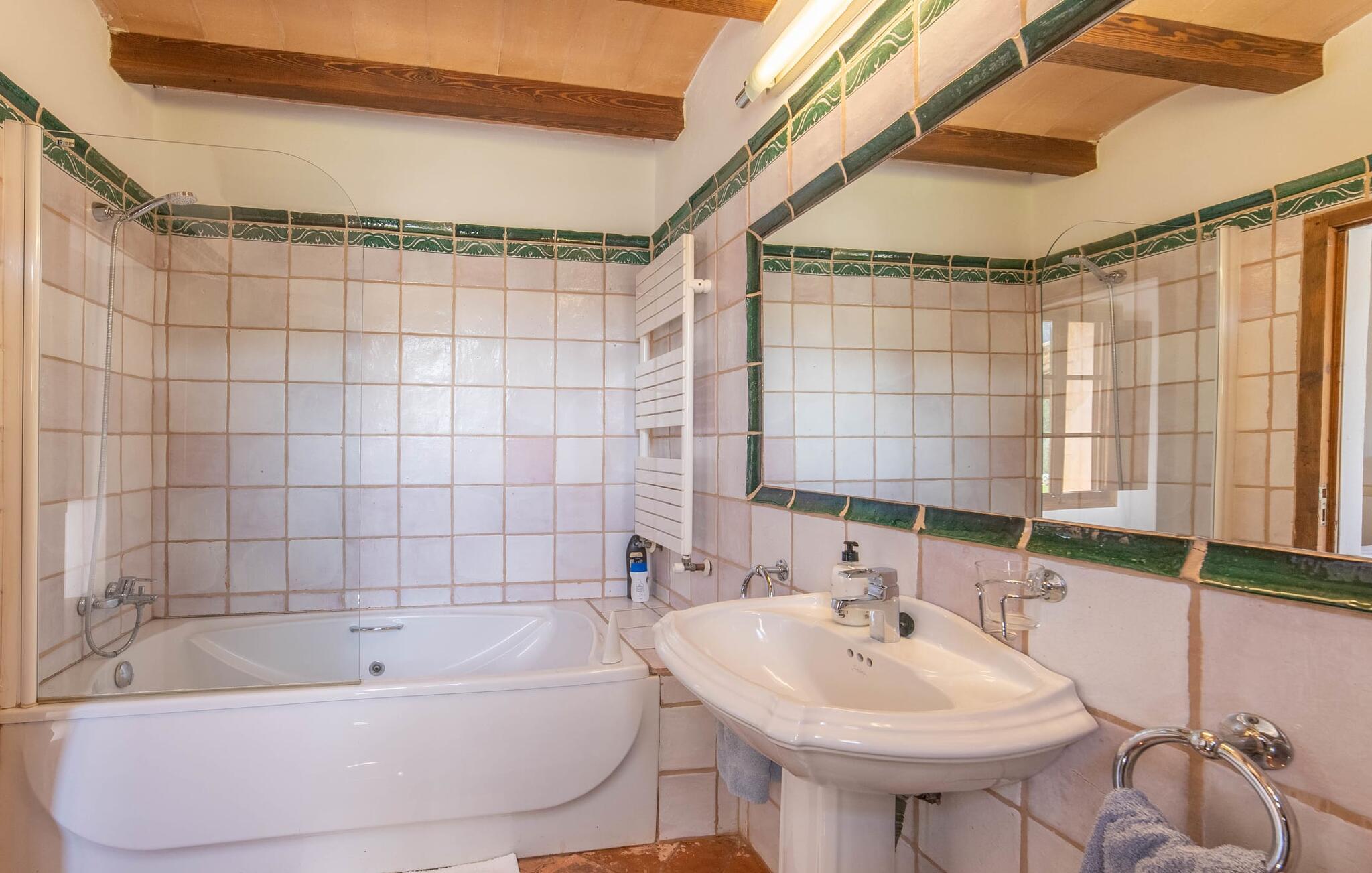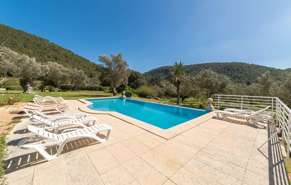 Oplev fuldstændig privatliv og betagende udsigt over bjergene i denne smukt designede bondegård på Mallorca. Omgivet af frodig middelhavsvegetation og modne træer er den indbydende atmosfære ideel for alle aldre. Ejendommen har stilfulde terrasseområder, både åbne og overdækkede, perfekt til afslapning udenfor. Nyd en dukkert i den lavvandede pool eller spil sport på stedets paddle-tennisbane, et unikt tilbud. Liggestole på poolterrassen er et behageligt sted at slappe af under middelhavssolen. Ejendommen var oprindeligt en olivenfarm og vedligeholdes stadig af personale til olivenproduktion og anlægsinspektioner. Det rummelige hus, udstyret med aircondition og gulvvarme, byder på masser af plads til individuel nydelse. Traditionelle terracotta-fliser, synlige bjælkelofter og naturstenselementer understreger den hyggelige atmosfære. Stuen med pejs og fjernsyn samt fuldt udstyret køkken med spiseplads er perfekte til sammenkomster. Stuehuset har seks soveværelser - fire dobbeltværelser og to singler - samt fire badeværelser og et gæstetoilet for at sikre privatlivets fred for alle gæster. En separat boligenhed består af et af soveværelserne med dobbeltsenge, et badeværelse og en lille stue med integreret køkken. En udendørs sauna giver wellness og giver jeres ferieoplevelse et afslappende præg. Dette eksklusive bondehus i natursten ligger i smukke landlige omgivelser midt i Tramuntana-bjergene. Esporles med butikker, flere restauranter og barer kan nås på 5 minutter i bil, den nærmeste strand på cirka 20 minutter.