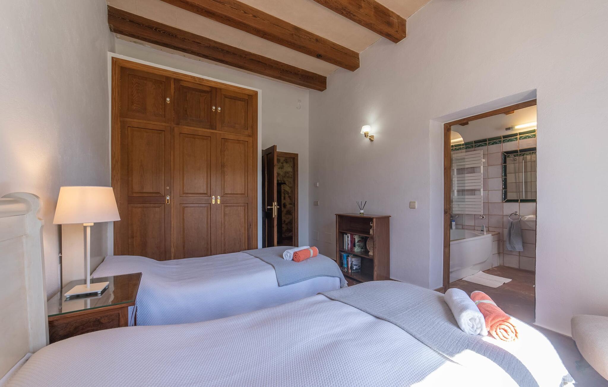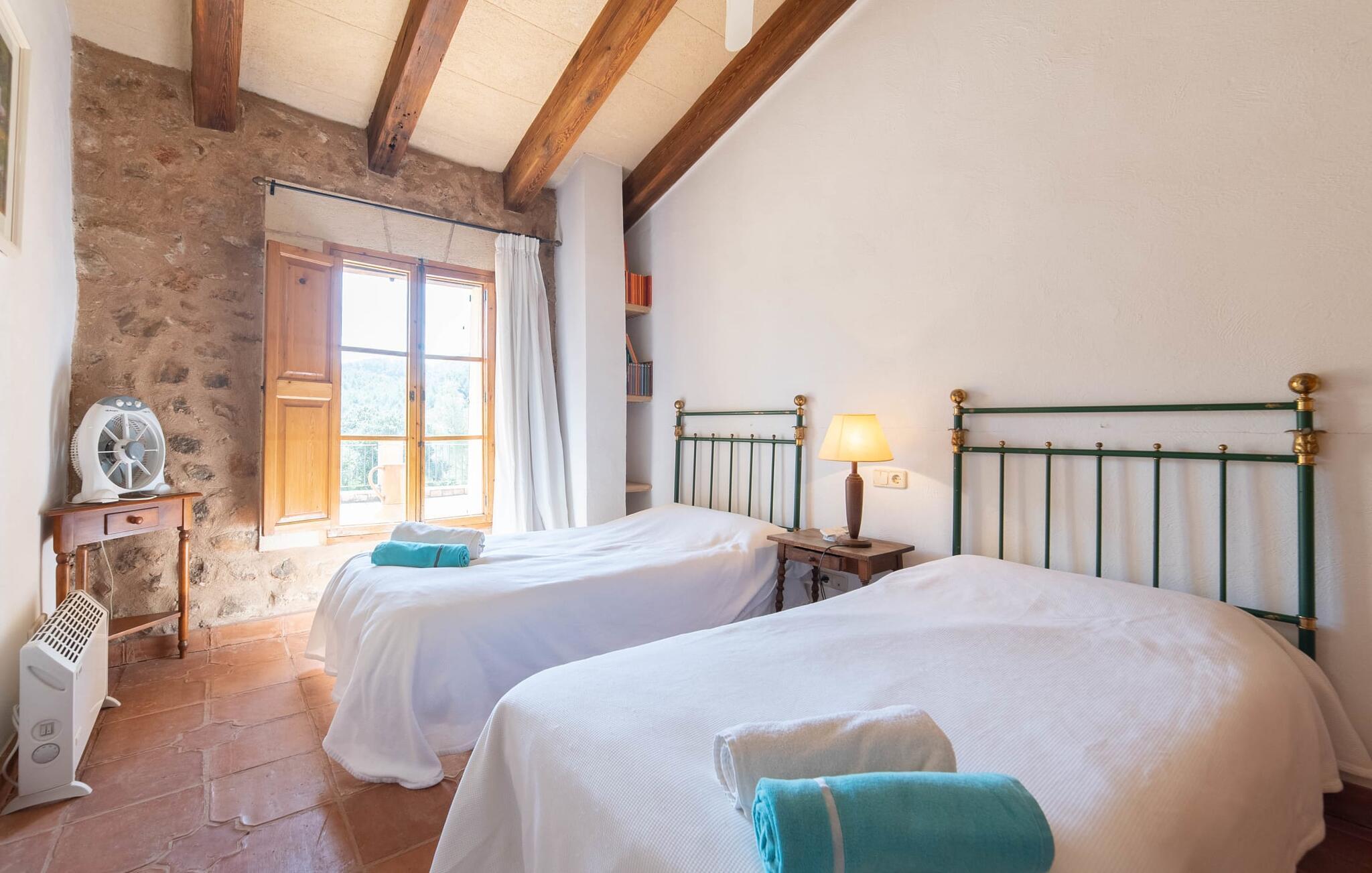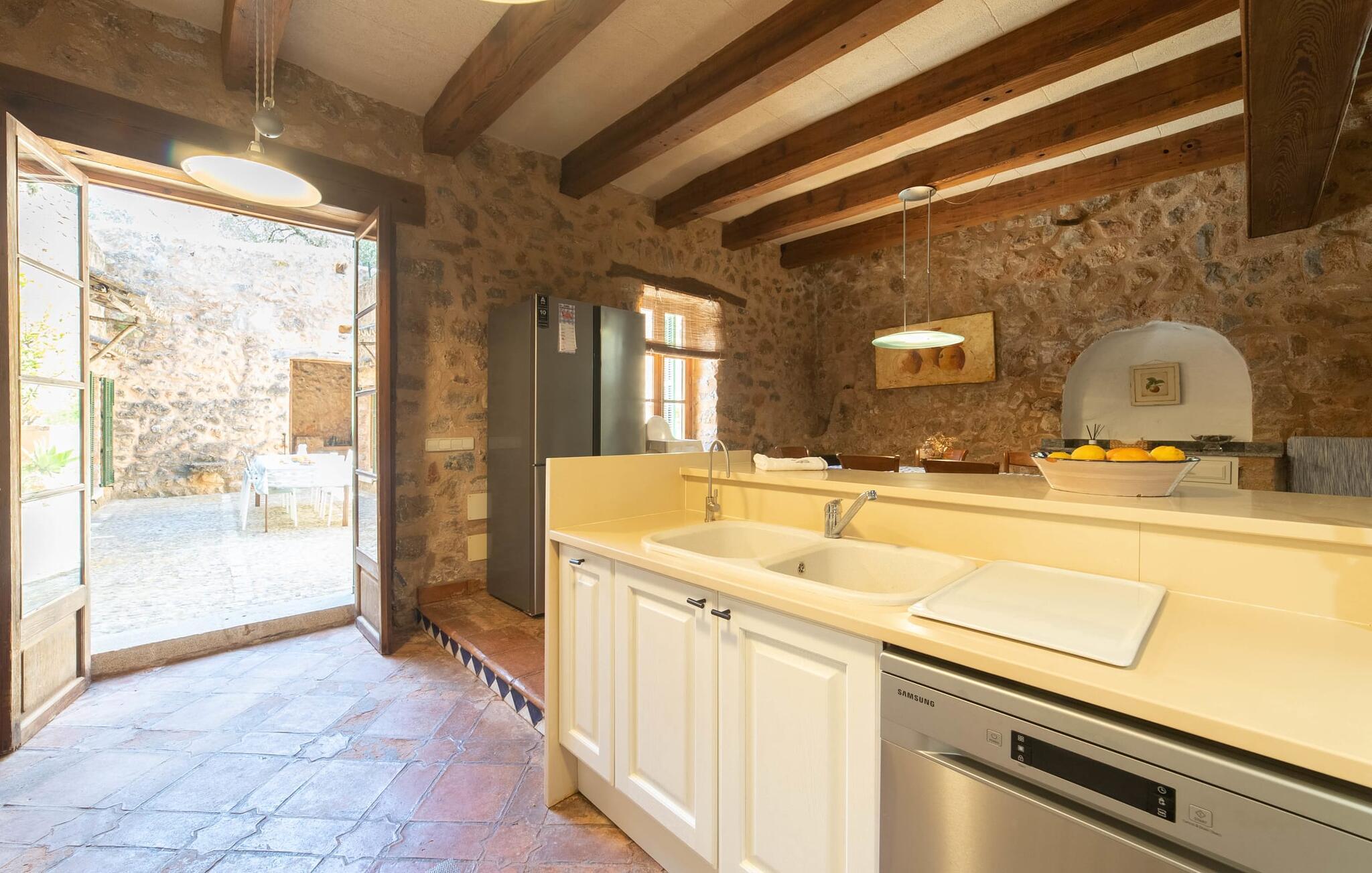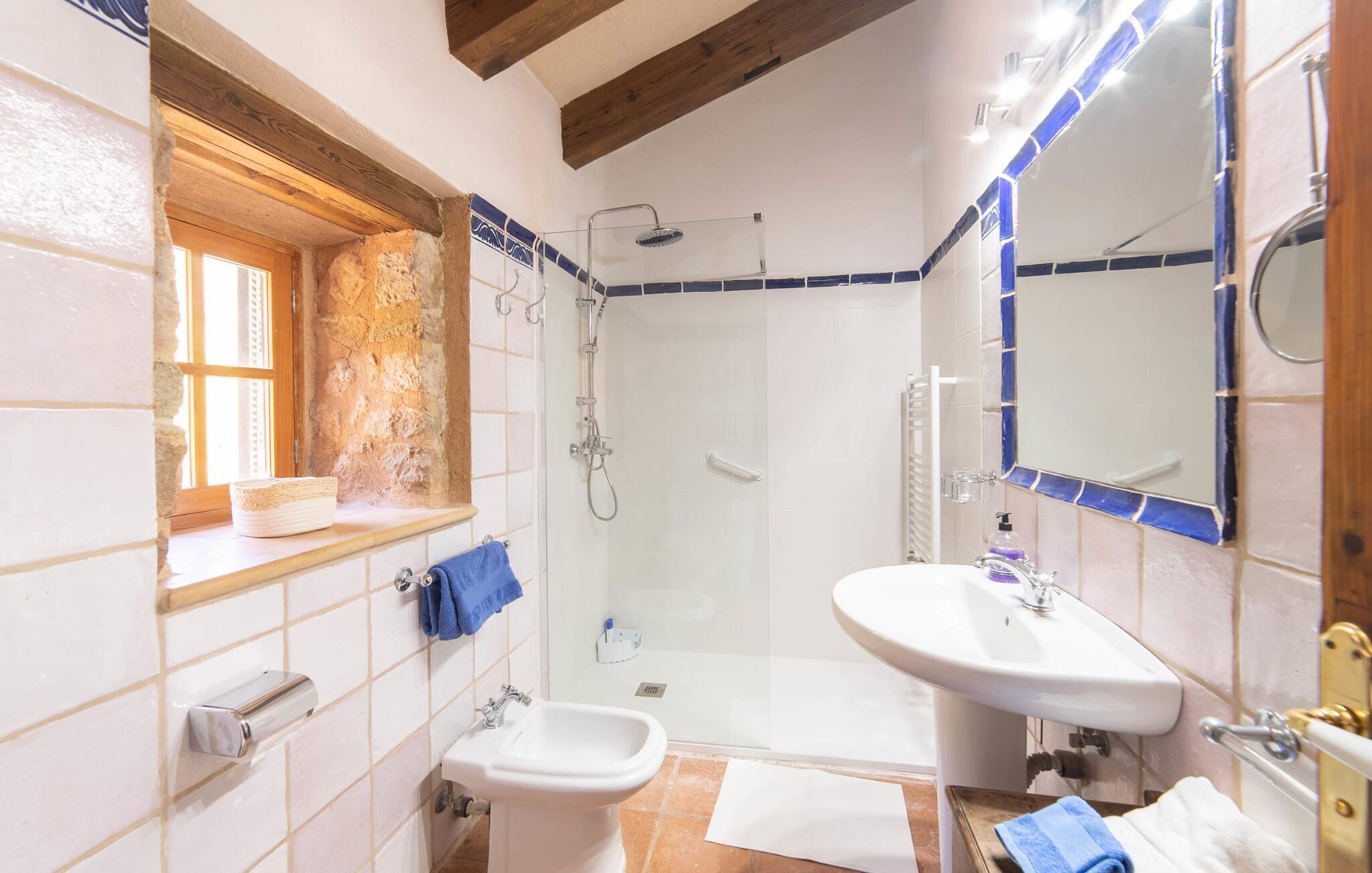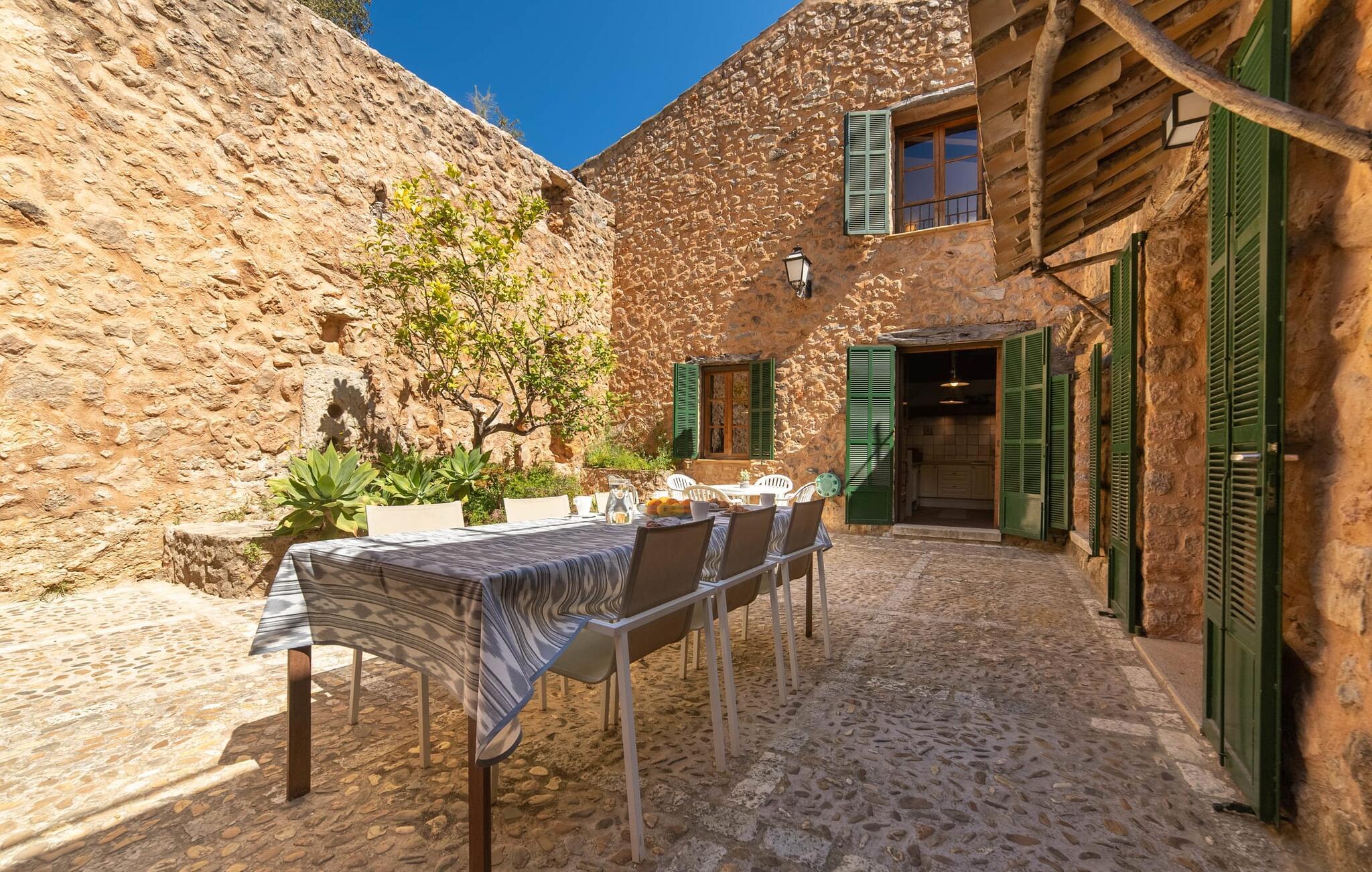 Oplev fuldstændig privatliv og betagende udsigt over bjergene i denne smukt designede bondegård på Mallorca. Omgivet af frodig middelhavsvegetation og modne træer er den indbydende atmosfære ideel for alle aldre. Ejendommen har stilfulde terrasseområder, både åbne og overdækkede, perfekt til afslapning udenfor. Nyd en dukkert i den lavvandede pool eller spil sport på stedets paddle-tennisbane, et unikt tilbud. Liggestole på poolterrassen er et behageligt sted at slappe af under middelhavssolen. Ejendommen var oprindeligt en olivenfarm og vedligeholdes stadig af personale til olivenproduktion og anlægsinspektioner. Det rummelige hus, udstyret med aircondition og gulvvarme, byder på masser af plads til individuel nydelse. Traditionelle terracotta-fliser, synlige bjælkelofter og naturstenselementer understreger den hyggelige atmosfære. Stuen med pejs og fjernsyn samt fuldt udstyret køkken med spiseplads er perfekte til sammenkomster. Stuehuset har seks soveværelser - fire dobbeltværelser og to singler - samt fire badeværelser og et gæstetoilet for at sikre privatlivets fred for alle gæster. En separat boligenhed består af et af soveværelserne med dobbeltsenge, et badeværelse og en lille stue med integreret køkken. En udendørs sauna giver wellness og giver jeres ferieoplevelse et afslappende præg. Dette eksklusive bondehus i natursten ligger i smukke landlige omgivelser midt i Tramuntana-bjergene. Esporles med butikker, flere restauranter og barer kan nås på 5 minutter i bil, den nærmeste strand på cirka 20 minutter.