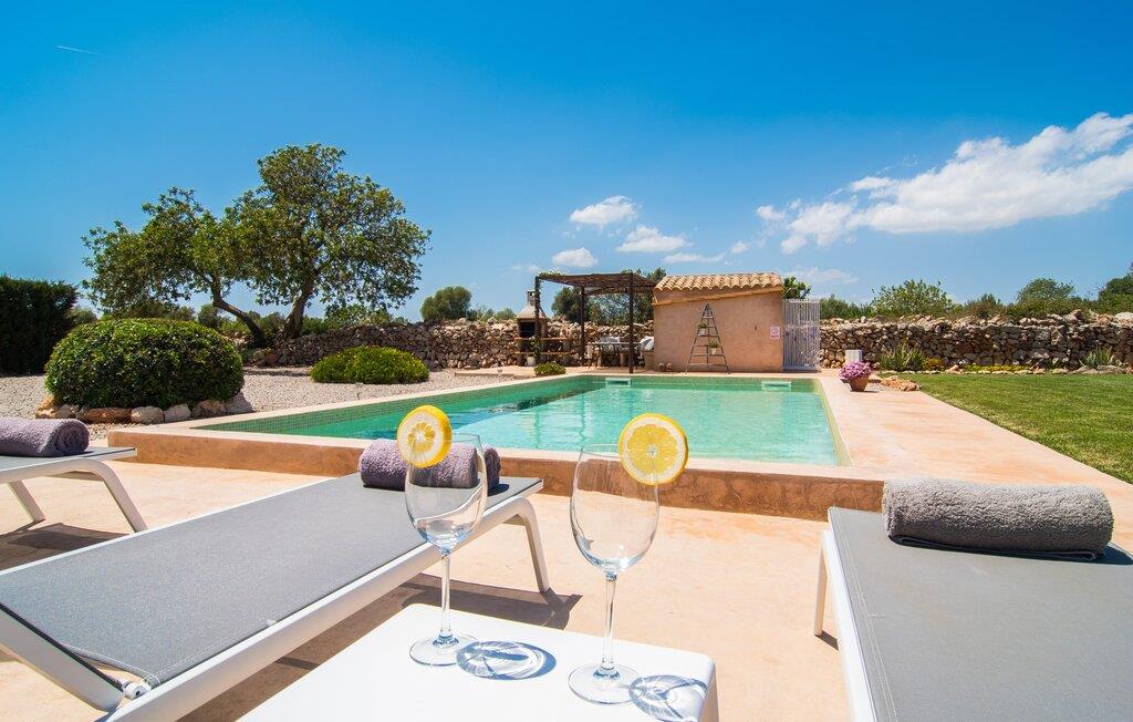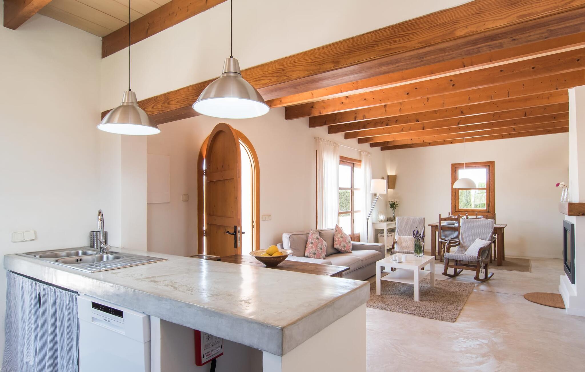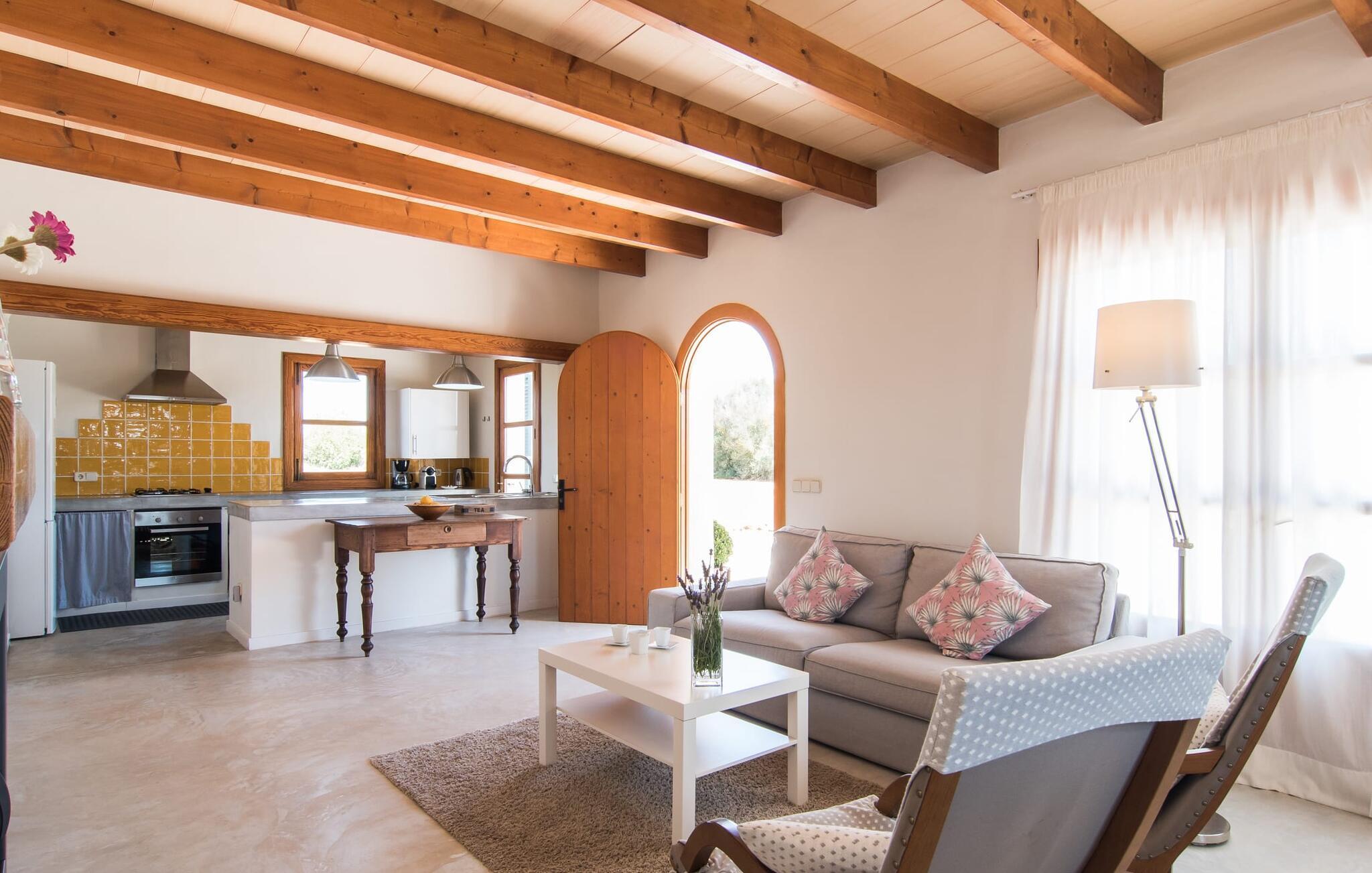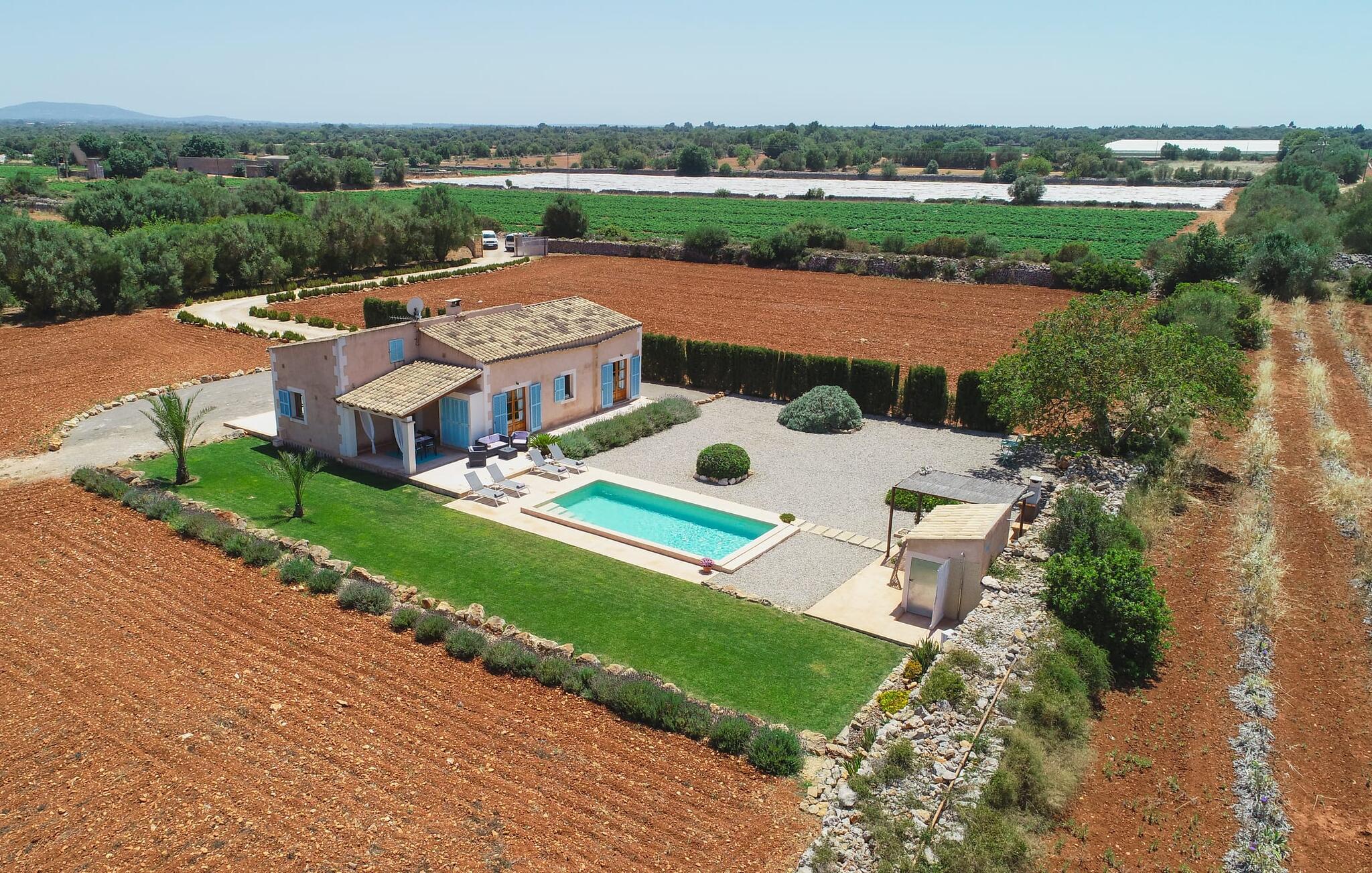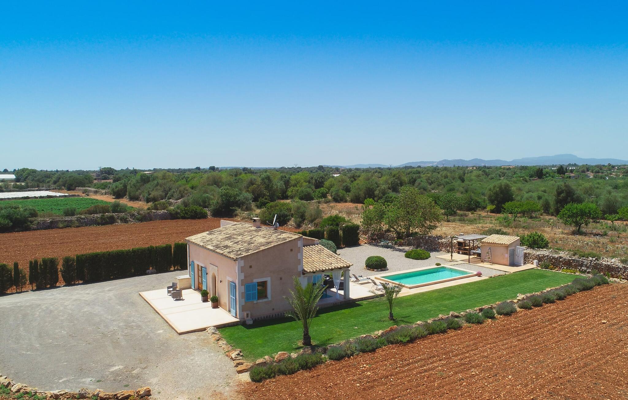 Den smukke feriefinca "Sa Tanca Gran" byder på plads til op til fire gæster. Det er omgivet af marker i det landlige lavland i det smukke sydlige Mallorca. Her er I helt for jer selv og alligevel er indkøbsmuligheder og smukke strande ikke langt væk. Det pæne, minimalistiske design af udendørsområdet inviterer jer til at blive hængende i timevis under middelhavssolen. Den vidunderlige pool er udstyret med liggestole og parasoller. Lige ved siden af huset er der en hyggelig, overdækket terrasse, hvor I kan nyde jeres måltider i skyggen. På den modsatte side af poolen er der en muret grill og endnu en solbeskyttet udendørs spiseplads under en pergola. Afhængigt af vindretningen kan der høres kørestøj i det fjerne fra landstedet, men det betyder også, at kystdestinationer som Cala D'Or eller Portocolom er let tilgængelige. Sommerhuset i stueetagen byder velkommen med en lys, smagfuldt indrettet opholdsstue. Rustikke elementer blev kombineret med moderne komfort. Det fuldt udstyrede køkken er integreret i en charmerende stue og spisestue i åbent plan med pejs. De to dobbeltværelser er udstyret med overskabe og kan nemt mørklægges med rulleskodder. Både soveværelserne og det primære opholdsrum er udstyret med aircondition. Et moderne badeværelse med bruser fuldender rummet. Feriehuset har stabilt internet og er også velegnet til hjemmearbejde. Ferieboligen ligger på det sydlige Mallorca, 6,5 km nordvest for Felanitx. Her finder I flere supermarkeder og indkøbsmuligheder. De nærmeste sandstrande Cala Murada, Cala Tropicana og Cala Marçal ligger omkring 25 minutter væk i bil. Aircondition er inkluderet i prisen i stuen fra 12:00 til 22:00 og i soveværelserne fra 22:00 til 06:00. Brug uden for disse tider vil blive faktureret kontant på stedet.
