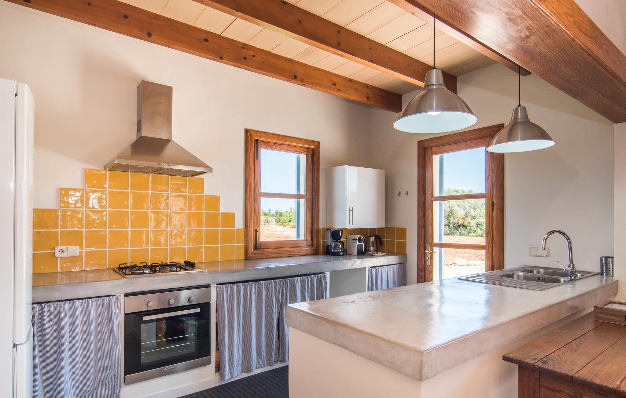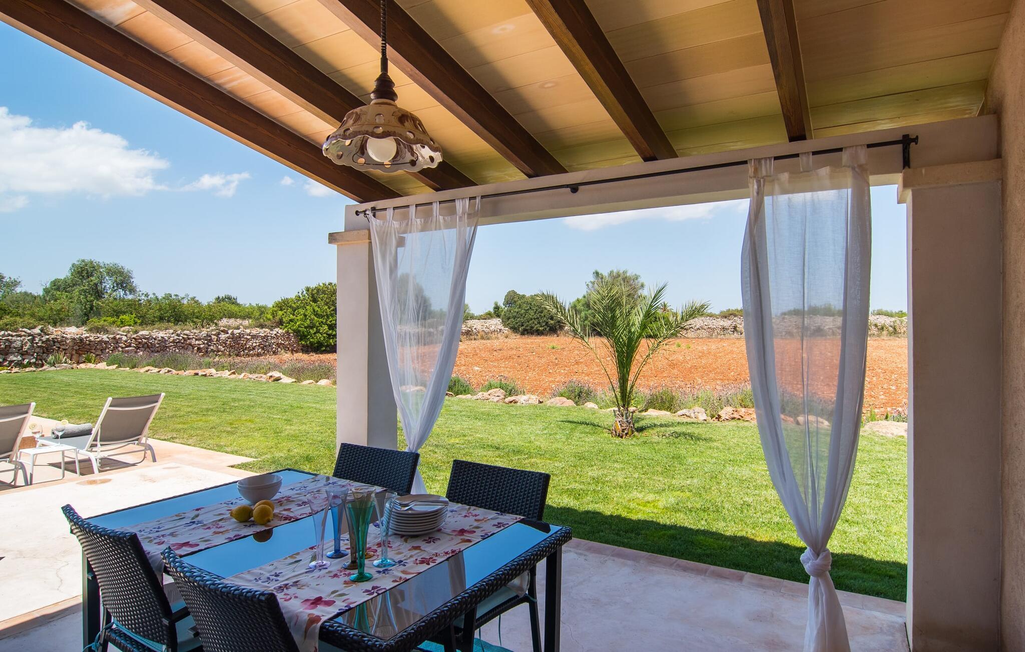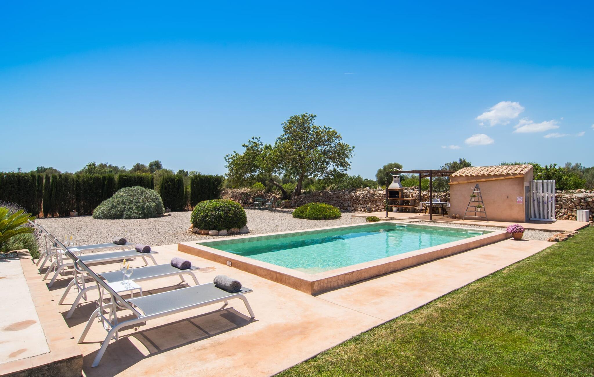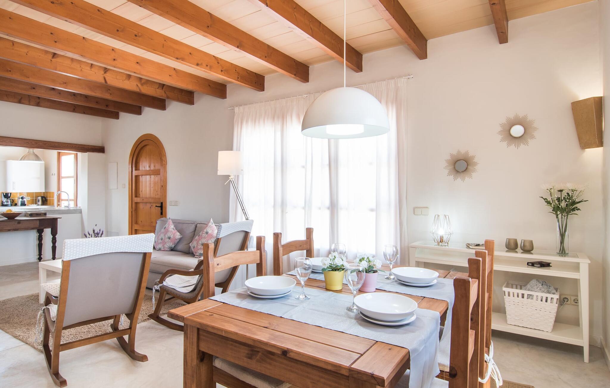 Den smukke feriefinca "Sa Tanca Gran" byder på plads til op til fire gæster. Det er omgivet af marker i det landlige lavland i det smukke sydlige Mallorca. Her er I helt for jer selv og alligevel er indkøbsmuligheder og smukke strande ikke langt væk. Det pæne, minimalistiske design af udendørsområdet inviterer jer til at blive hængende i timevis under middelhavssolen. Den vidunderlige pool er udstyret med liggestole og parasoller. Lige ved siden af huset er der en hyggelig, overdækket terrasse, hvor I kan nyde jeres måltider i skyggen. På den modsatte side af poolen er der en muret grill og endnu en solbeskyttet udendørs spiseplads under en pergola. Afhængigt af vindretningen kan der høres kørestøj i det fjerne fra landstedet, men det betyder også, at kystdestinationer som Cala D'Or eller Portocolom er let tilgængelige. Sommerhuset i stueetagen byder velkommen med en lys, smagfuldt indrettet opholdsstue. Rustikke elementer blev kombineret med moderne komfort. Det fuldt udstyrede køkken er integreret i en charmerende stue og spisestue i åbent plan med pejs. De to dobbeltværelser er udstyret med overskabe og kan nemt mørklægges med rulleskodder. Både soveværelserne og det primære opholdsrum er udstyret med aircondition. Et moderne badeværelse med bruser fuldender rummet. Feriehuset har stabilt internet og er også velegnet til hjemmearbejde. Ferieboligen ligger på det sydlige Mallorca, 6,5 km nordvest for Felanitx. Her finder I flere supermarkeder og indkøbsmuligheder. De nærmeste sandstrande Cala Murada, Cala Tropicana og Cala Marçal ligger omkring 25 minutter væk i bil. Aircondition er inkluderet i prisen i stuen fra 12:00 til 22:00 og i soveværelserne fra 22:00 til 06:00. Brug uden for disse tider vil blive faktureret kontant på stedet.