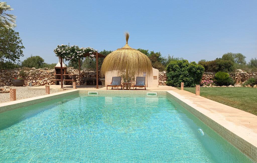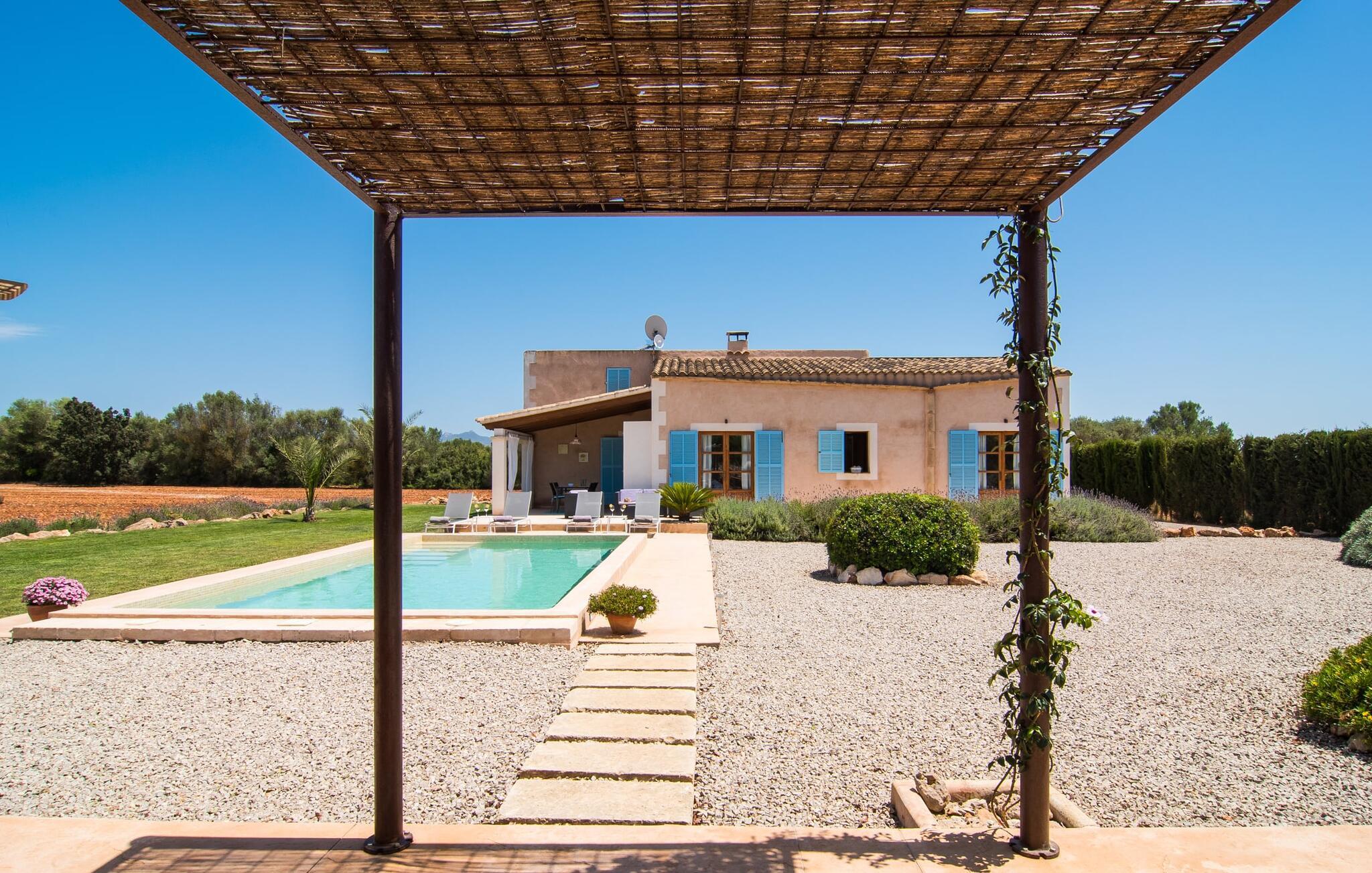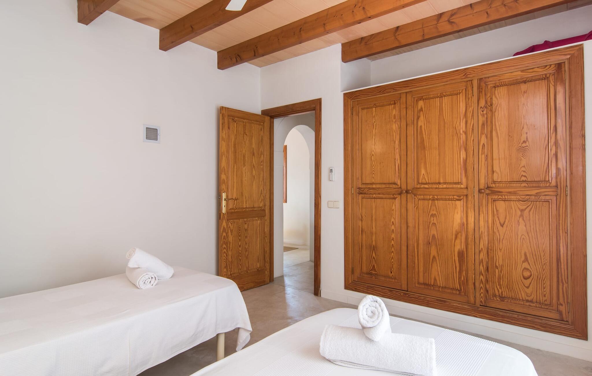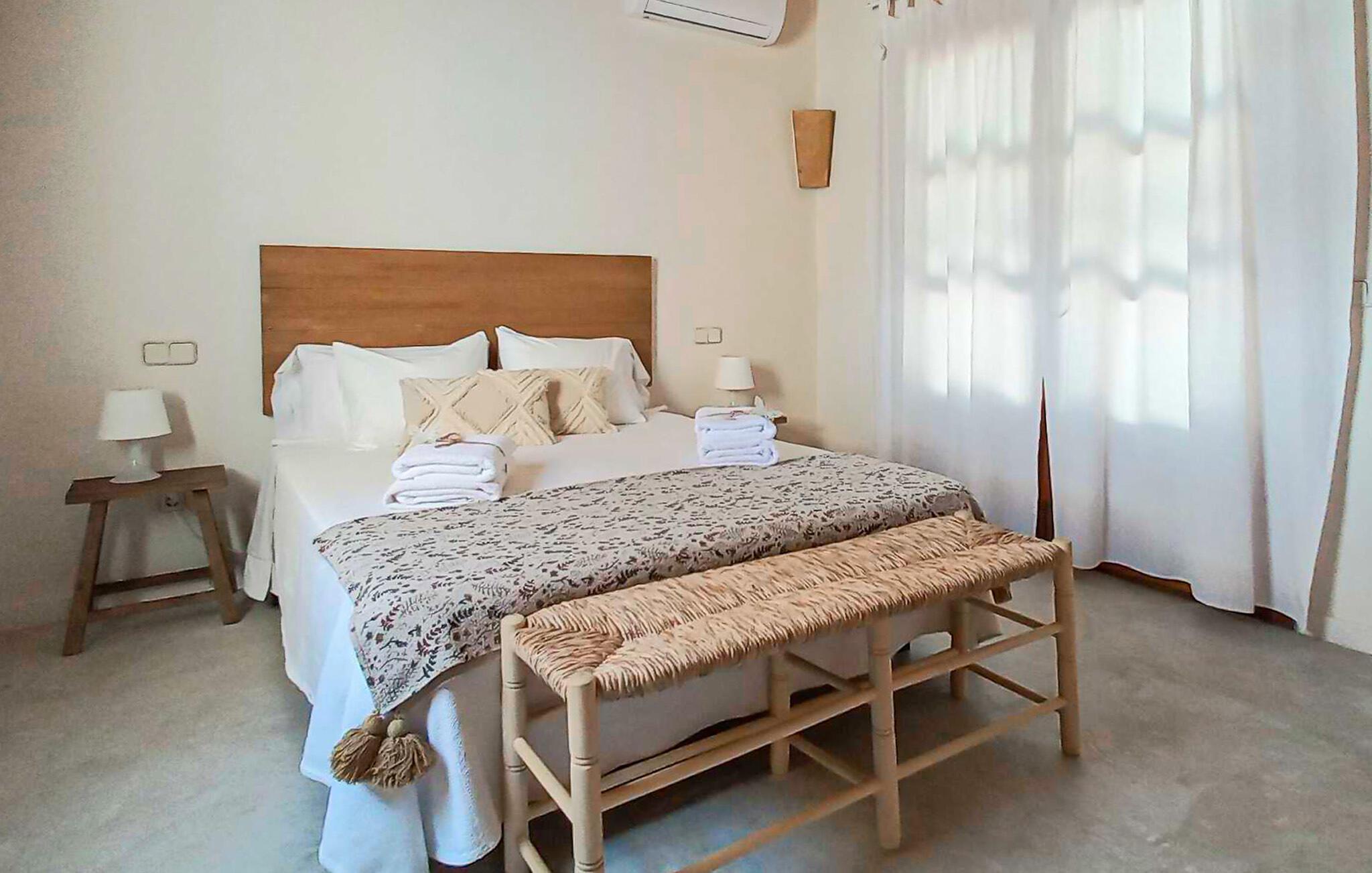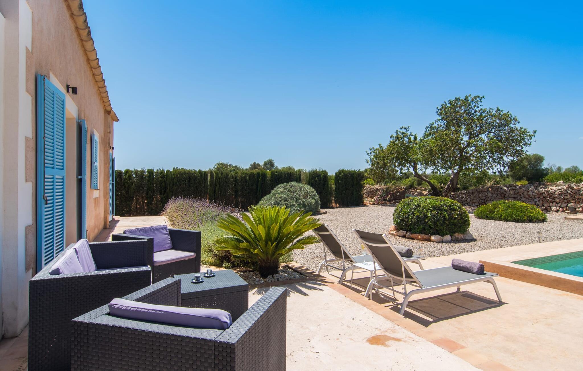 Den smukke feriefinca "Sa Tanca Gran" byder på plads til op til fire gæster. Det er omgivet af marker i det landlige lavland i det smukke sydlige Mallorca. Her er I helt for jer selv og alligevel er indkøbsmuligheder og smukke strande ikke langt væk. Det pæne, minimalistiske design af udendørsområdet inviterer jer til at blive hængende i timevis under middelhavssolen. Den vidunderlige pool er udstyret med liggestole og parasoller. Lige ved siden af huset er der en hyggelig, overdækket terrasse, hvor I kan nyde jeres måltider i skyggen. På den modsatte side af poolen er der en muret grill og endnu en solbeskyttet udendørs spiseplads under en pergola. Afhængigt af vindretningen kan der høres kørestøj i det fjerne fra landstedet, men det betyder også, at kystdestinationer som Cala D'Or eller Portocolom er let tilgængelige. Sommerhuset i stueetagen byder velkommen med en lys, smagfuldt indrettet opholdsstue. Rustikke elementer blev kombineret med moderne komfort. Det fuldt udstyrede køkken er integreret i en charmerende stue og spisestue i åbent plan med pejs. De to dobbeltværelser er udstyret med overskabe og kan nemt mørklægges med rulleskodder. Både soveværelserne og det primære opholdsrum er udstyret med aircondition. Et moderne badeværelse med bruser fuldender rummet. Feriehuset har stabilt internet og er også velegnet til hjemmearbejde. Ferieboligen ligger på det sydlige Mallorca, 6,5 km nordvest for Felanitx. Her finder I flere supermarkeder og indkøbsmuligheder. De nærmeste sandstrande Cala Murada, Cala Tropicana og Cala Marçal ligger omkring 25 minutter væk i bil. Aircondition er inkluderet i prisen i stuen fra 12:00 til 22:00 og i soveværelserne fra 22:00 til 06:00. Brug uden for disse tider vil blive faktureret kontant på stedet.