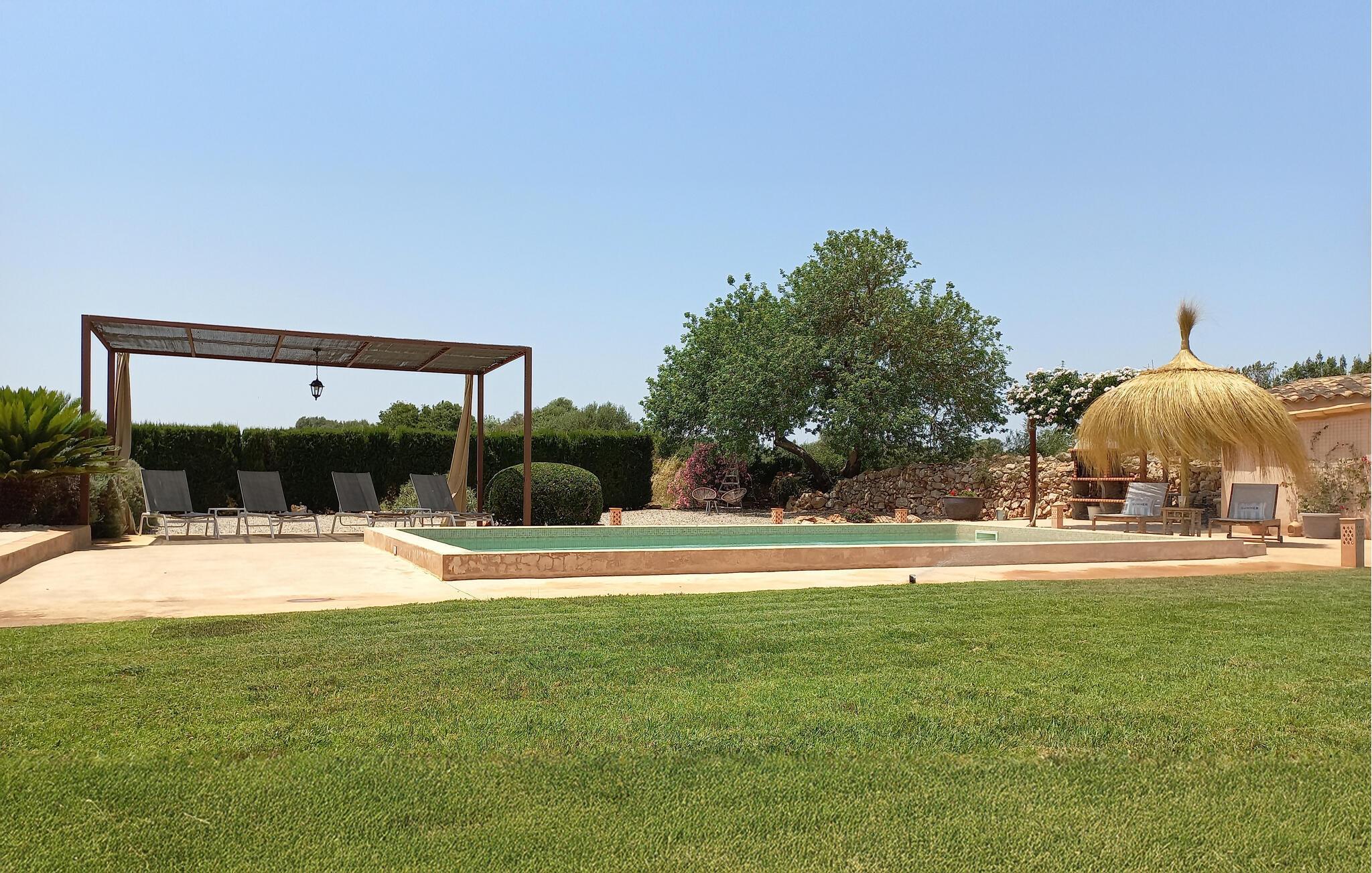 Den smukke feriefinca "Sa Tanca Gran" byder på plads til op til fire gæster. Det er omgivet af marker i det landlige lavland i det smukke sydlige Mallorca. Her er du helt for dig selv og alligevel er indkøbsmuligheder og smukke strande ikke langt væk. Det pæne, minimalistiske design af udendørsområdet inviterer dig til at blive hængende i timevis under middelhavssolen. Den vidunderlige pool er udstyret med liggestole og parasoller. Lige ved siden af huset er der en hyggelig, overdækket terrasse, hvor I kan nyde jeres måltider i skyggen. På den modsatte side af poolen er der en muret grill og endnu en solbeskyttet udendørs spiseplads under en pergola. Afhængigt af vindretningen kan der høres kørestøj i det fjerne fra landstedet, men det betyder også, at kystdestinationer som Cala D'Or eller Portocolom er let tilgængelige. Sommerhuset i stueetagen byder velkommen med en lys, smagfuldt indrettet opholdsstue. Rustikke elementer blev kombineret med moderne komfort. Det fuldt udstyrede køkken er integreret i en charmerende stue og spisestue i åbent plan med pejs. De to dobbeltværelser er udstyret med overskabe og kan nemt mørklægges med rulleskodder. Både soveværelserne og det primære opholdsrum er udstyret med aircondition. Et moderne badeværelse med bruser fuldender rummet. Feriehuset har stabilt internet og er også velegnet til hjemmearbejde. Ferieboligen ligger på det sydlige Mallorca, 6,5 km nordvest for Felanitx. Her finder du flere supermarkeder og indkøbsmuligheder. De nærmeste sandstrande Cala Murada, Cala Tropicana og Cala Marçal ligger omkring 25 minutter væk i bil. Aircondition er inkluderet i prisen i stuen fra 12:00 til 22:00 og i soveværelserne fra 22:00 til 06:00. Brug uden for disse tider vil blive faktureret kontant på stedet. Dette er et Fincallorca feriehus.