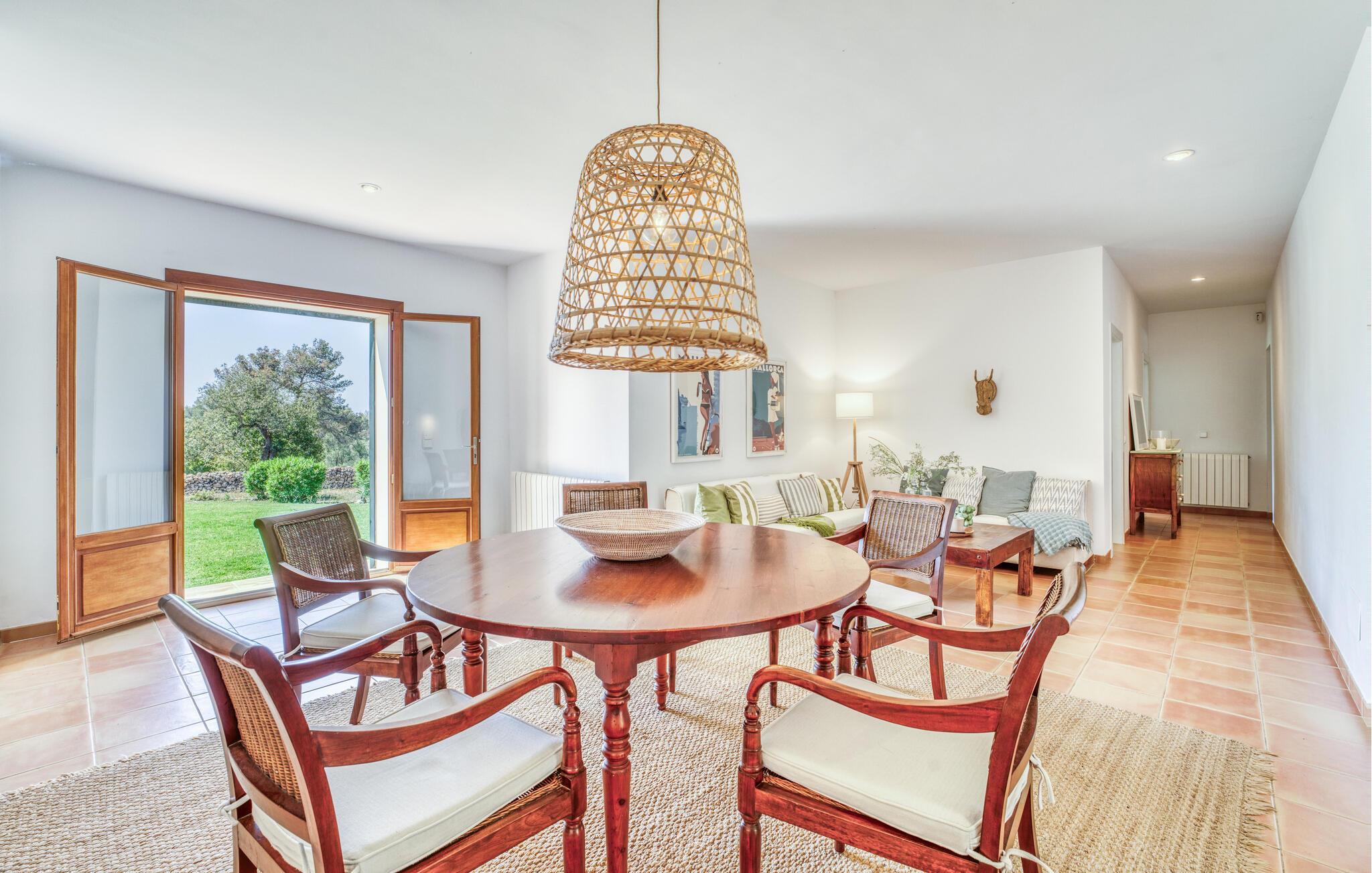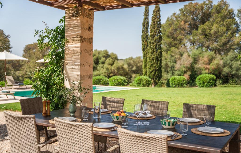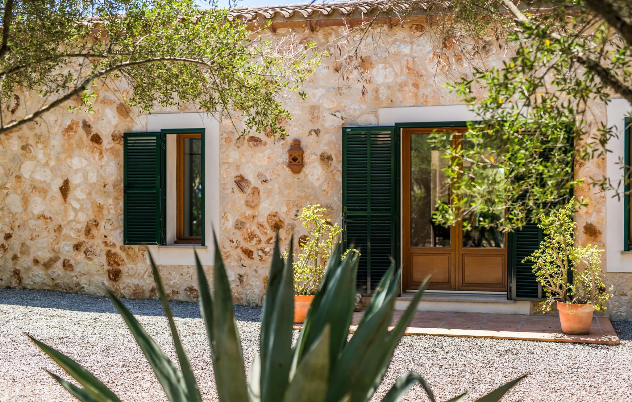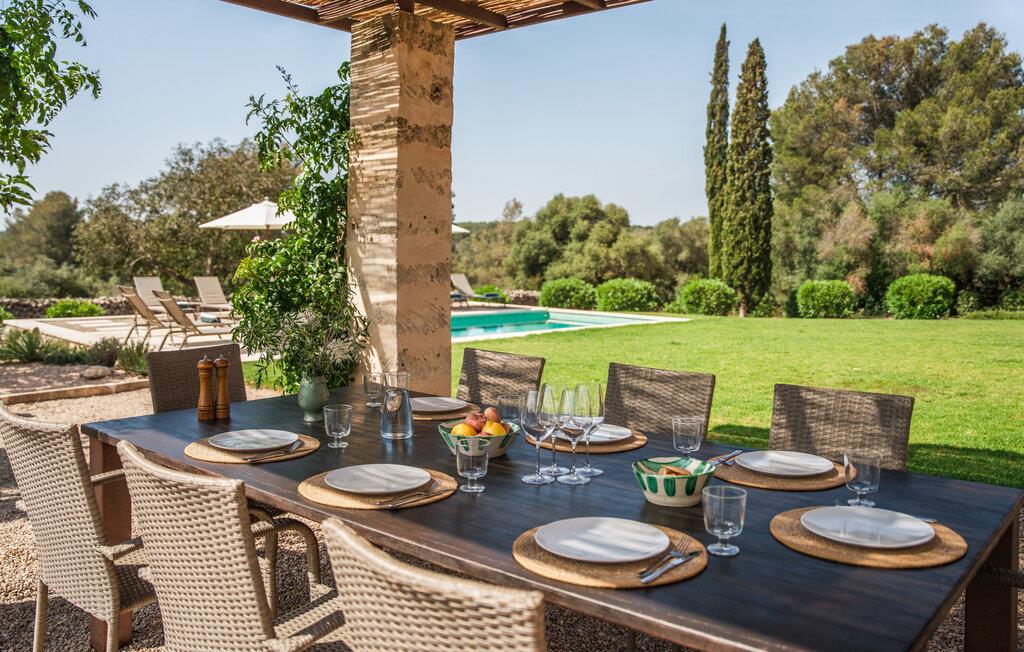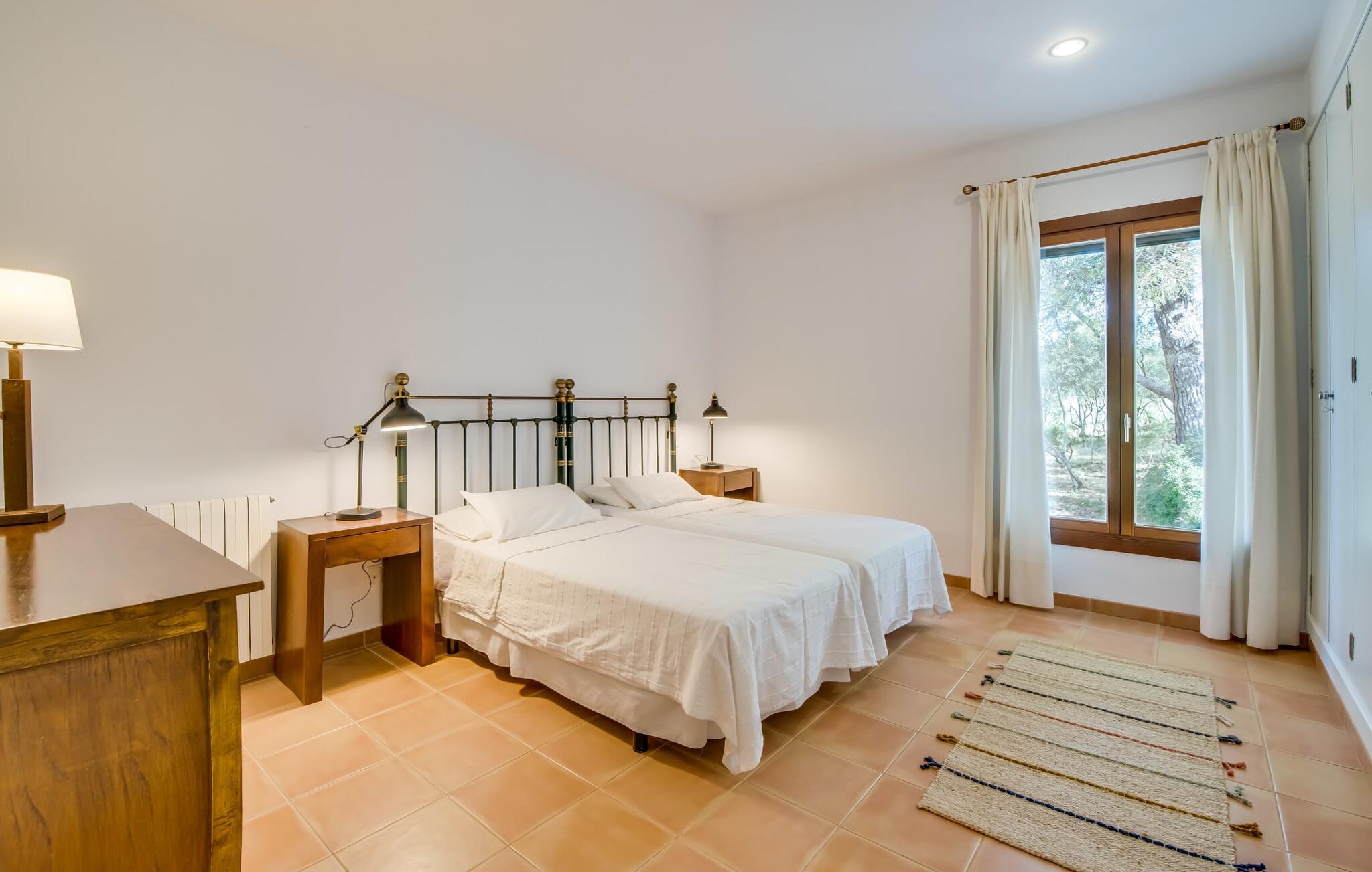 Villaen “Sa Tanca” ligger meget stille og idyllisk i den smukke østlige del af Mallorca, hvor de blidt stigende bakker i Serra Levanten præger et typisk middelhavslandskab, enestående smukt kystlandskab. Her kan I nyde jeres privatliv uden at føle jer begrænset af mure eller hegn. Den lange pool er omgivet af græsplæner, hvor I kan slappe af i solen, og børnene kan løbe rundt og lege. Høje hække giver ekstra komfort og ser attraktive ud på samme tid. Der er en særlig smuk sydvendt siddeplads foran huset. Herfra har I en fantastisk udsigt over haven og kan også fuldt ud nyde Middelhavslyset. Om morgenen eller sent om aftenen – det er et smukt sted med en faktor. I kan slappe af ved det runde spisebord eller nyde et måltid sammen. Om aftenen kan I fejre solide grillfester og tilberede og nyde friske regionale specialiteter på grillen. Poolen er let tilgængelig via en stige. For at beskytte jer, hvis UV-strålingen bliver for stærk, er der to parasoller til rådighed. Uanset tidspunktet på dagen er der altid en luftig, naturlig skygge på ejendommen for at nyde de smukke omgivelser. Der er en parkeringsplads til jeres bil foran huset. I husets lysfyldte interiør kan I forvente et boligareal på 302 m². Lyse vægge harmonerer med terracotta fliserne samt trævinduer og møbler med deres smukke, farverige stoffer. Udvalgte billeder på væggene forskønner rummene. Denne dygtige sammensætning skaber en særlig smagfuld og hyggelig stemning, hvor I hurtigt føler jer hjemme. En stor kombineret stue/spisestue med lille bibliotek og pejs opfylder alle jeres indendørs afslapningsbehov. Et andet indbydende sted at sidde og nyde er en slags vinterhave, som helt kan åbnes til en overdækket terrasse i de varmere måneder og er udstyret med en ekstra sofa og spisebord. Det rummelige, moderne køkken er fuldt udstyret og byder på alt det nødvendige til jeres ferie. Faciliteterne omfatter en opvaskemaskine, en kedel, en italiensk kaffemaskine og en filterkaffemaskine. Fire slående renoverede og klimatiserede soveværelser, hver med sit eget badeværelse, fuldender de afslappende funktioner i dette feriehus. Badeværelserne er lyse og venlige. For nemheds skyld er strygejern og hårtørrer tilgængelige. Fra villaen "Sa Tanca" er der mindre end 4 km til den nærmeste kystby Portocristo, med sin egen fejende havn og strandbugter, over hvilken der er en smuk promenade med butikker, caféer, barer og restauranter. Der er også et ugentligt marked, der er værd at se, og flere store, velassorterede supermarkeder til jeres daglige behov. En udflugt, som I bestemt bør tage på i Portocristo, er de såkaldte Caves of Drac, en unik drypstensgrotte med Europas største underjordiske sø. Ud over denne lille by er der også adskillige fantastiske strande inden for rækkevidde. De er alle fine hvide sandstrande, og de fleste har lavvandet adgang til havet. Villaen tilbyder et ideelt udgangspunkt for en varieret badeferie. Den smukt beliggende villa "Sa Tanca" ligger mindre end 4 km fra porten til den maleriske havneby Portocristo. Talrige strande, de såkaldte "Calas de Mallorca", er meget nemme at nå. Portocristo ligger kun omkring 5 minutter væk i bil, og her finder I alt, hvad I behøver for at shoppe og tilbringe en aften. Bemærk venligst, at denne ejendom ikke accepterer ungdomsgrupper eller polterabender. En ungdomsgruppe på denne ejendom består af personer under 30 år. Book ikke denne ejendom, hvis I er en ungdomsgruppe eller en polterabendgruppe, da jeres reservation vil blive afvist, når den er booket, hvilket også kan være tilfældet ved ankomst til ejendommen eller under jeres ophold, og I vil ikke modtage en refusion.