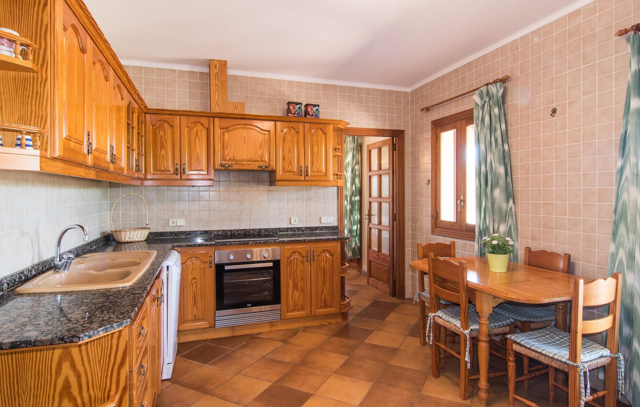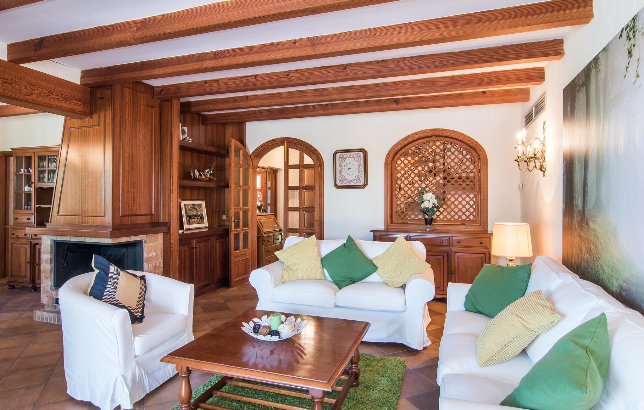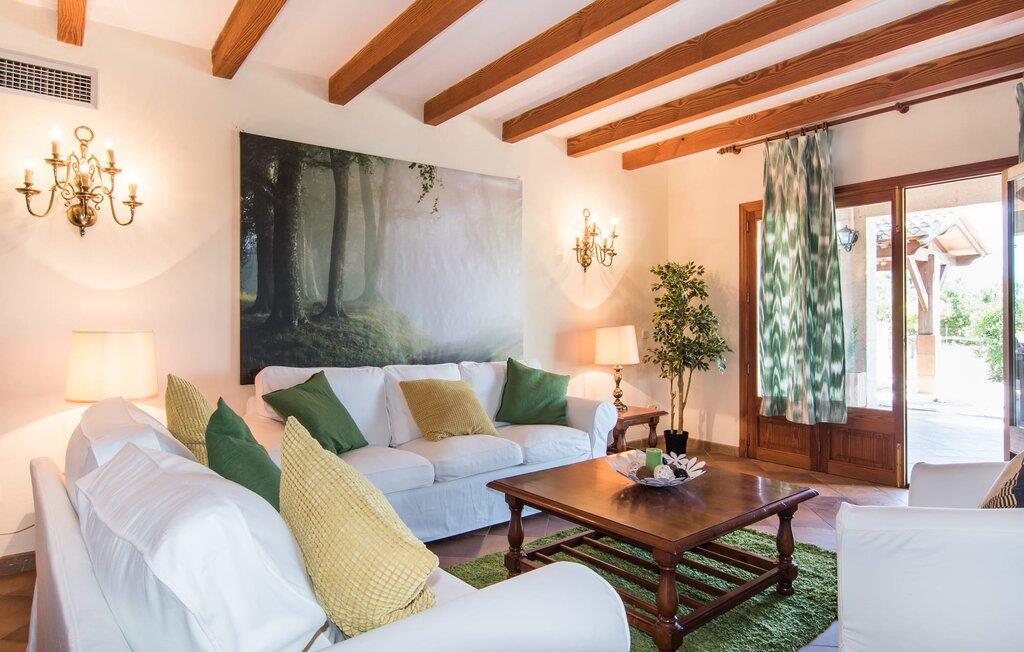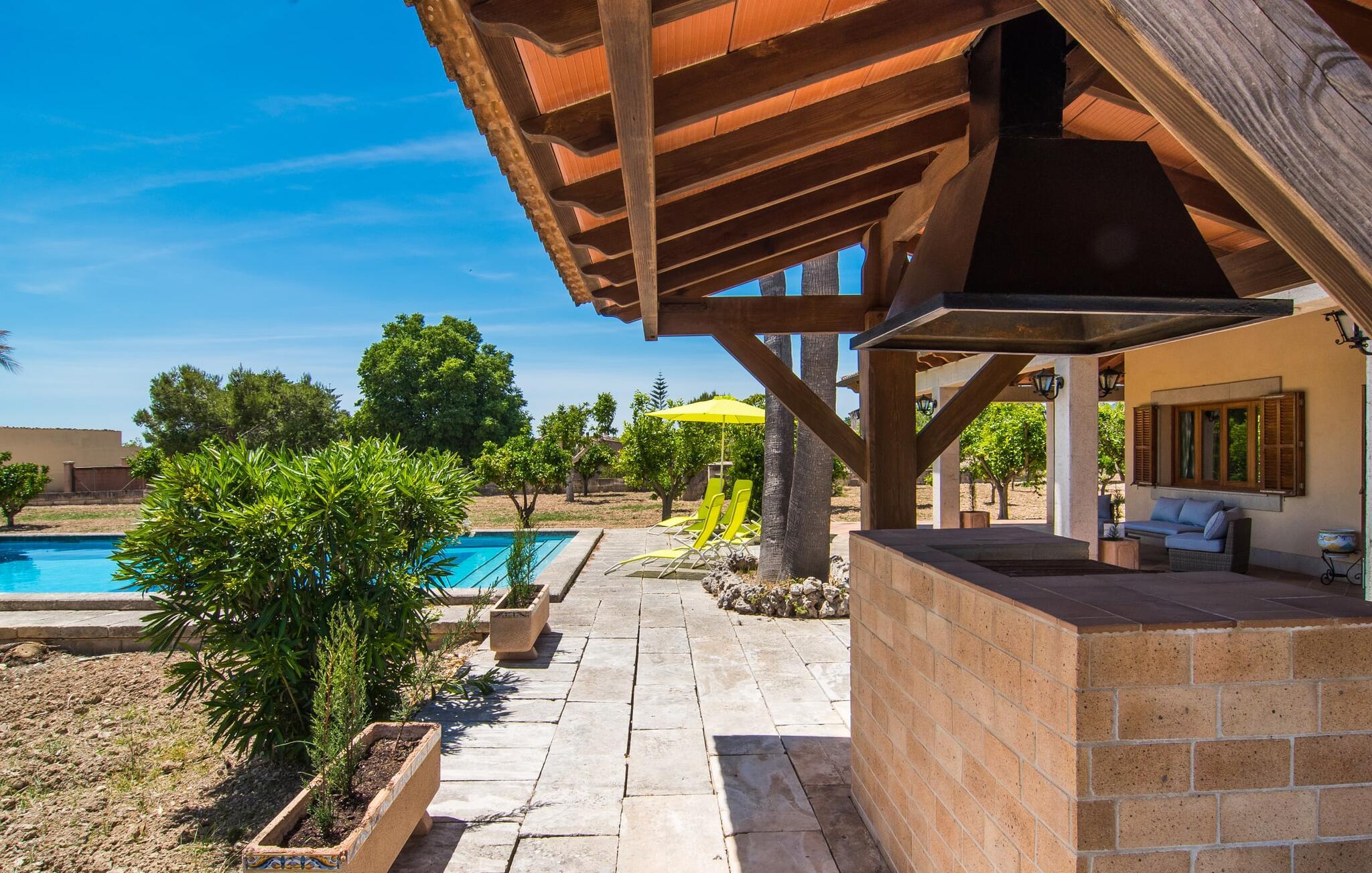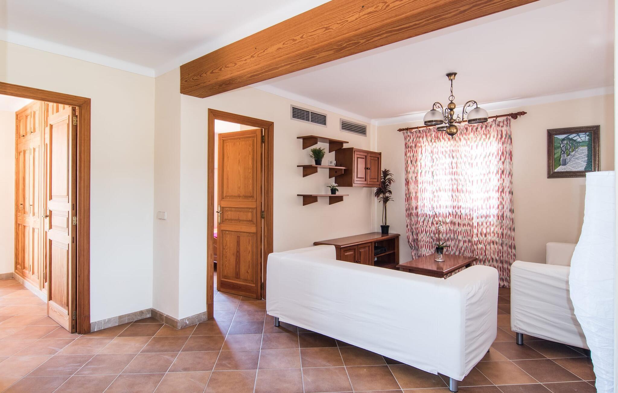 Ferie har en anden tidsramme - det langsommere tempo og den tid, I bruger med familie og venner, hjælper jer med at komme væk fra hverdagens stress. I en landdistrikt, der stort set er uberørt af turisme, kan åbne spørgsmål nogle gange løses blot ved at diskutere dem i en afslappet atmosfære med venner eller familie. Villa “Sa Terra Grosa” er en ejendom, der er det perfekte udgangspunkt for en afslappende ferie af denne type og har endnu mere at byde på takket være sin beliggenhed midt i et smukt landskab med bølgende bakker. Den elfenbensfarvede villa ligger i udkanten af Binissalem og er omgivet af en frugthave og enorme palmer. I vil elske at bruge jeres tid på de rummelige overdækkede terrasser og den solbeskinnede tagterrasse. Landhuset byder på hyggelig privat plads på en ugeneret ejendom og man kan hoppe i poolen næsten direkte fra verandaen og nyde det kølige vand - helt i naturen, hvis man vil. Bagefter kan I solbade på de stilfulde liggestole (eller i skyggen af parasollen om nødvendigt). Hvis en daglig grillaften er en del af en vellykket ferie, vil I blive glad for den indbyggede, overdækkede grill. Det er bekvemt placeret lige i den ene ende af et spisebordssæt i syntetisk rattan af høj kvalitet, hvor I kan servere mad. Når det bliver lidt køligere eller det er tid til at gå i seng, så forlad dette helt afslappende område og træk jer tilbage til jeres indbydende feriehus. Interiøret i den rustikke bygning har gennemgået et ansigtsløft, der kombinerer de traditionelle egenskaber ved mallorcinsk design med en moderne landlig stil – og det er rimeligt at sige, at denne kombination er en succes. Alene den store stue med sin harmoniske farvepalet, højkvalitets træmøbler, mørke keramiske fliser, vægge i lyse, subtile farver og nogle dekorative detaljer i en hjemlig mosgrøn, som afspejles i tekstilerne, gør indtryk. Farvevalget udtrykker nærheden og tilknytningen til naturen – og elsker I pejse, passer den åbne pejs midt i rummet perfekt ind i billedet. Det tilstødende, rustikke landstedskøkken imponerer med autentisk bondehuscharme og har samtidig alle de tekniske faciliteter til en ubekymret ferie med selvforplejning. Værelsesindretningen er også ideel til to familier med i alt op til otte personer. På hver etage er der to dobbeltværelser med aircondition og et badeværelse med badekar. Børnene har deres eget område i de to værelser med enkeltsenge; De to queen-size senge er ideelle som et hyggeligt soveværelse. Da der også er en lille opholdsstue med to sofaer på øverste etage, er det næsten, som om I har to separate overnatningssteder - skønt til en ferie i flere generationer. Ikke at forglemme: Takket være centralvarmen og den hyggelige knitrende pejs mister "Sa Terra Grosa" intet af sin særlige charme, selv i de køligere måneder af året. Hvis I elsker vin og gerne vil tage på en rejse gennem Mallorcas ønologis verden under jeres ferie, er I kommet til det rigtige sted i den smukke villa "Sa Terra Grosa". Binissalem ligger i det frugtbare hjerte af øen, Plà de Mallorca. Det er kendetegnet ved produktion af appelsiner, mandler og vin ved foden af de majestætiske Tramuntana-bjerge. Så det er ikke underligt, at I kan smage direkte i producenternes bodegaer og vinkældre året rundt. Villaen ligger lige uden for landsbyen i et tyndt befolket område. På grund af nærheden til vejen, som man kun kan høre, når vinden er rigtig, kan man sagtens følge den mallorcanske vinrute. Om aftenen, når I vender tilbage fra dagsture, kan I nyde den fulde smag af den medbragte Crianza, mens I sidder i den yderst komfortable lounge og har udsigt over det afslappende landskab. Vi hilser denne vidunderlige finca fra bunden af vores hjerter. Den nænsomt renoverede villa "Sa Terra Grosa" er omgivet af en stor frugthave. Ejendommen er beliggende nord for Binissalem, en rolig lille by i centrum af øen. I kan også gå ind til byen, hvor et farverigt ugentligt marked finder sted om fredagen på kirkepladsen. På grund af sin centrale beliggenhed midt på øen er hovedstaden Palma og dens strande, herunder Passeig del Molinar og Ciutat Jardí, nemme at nå.
