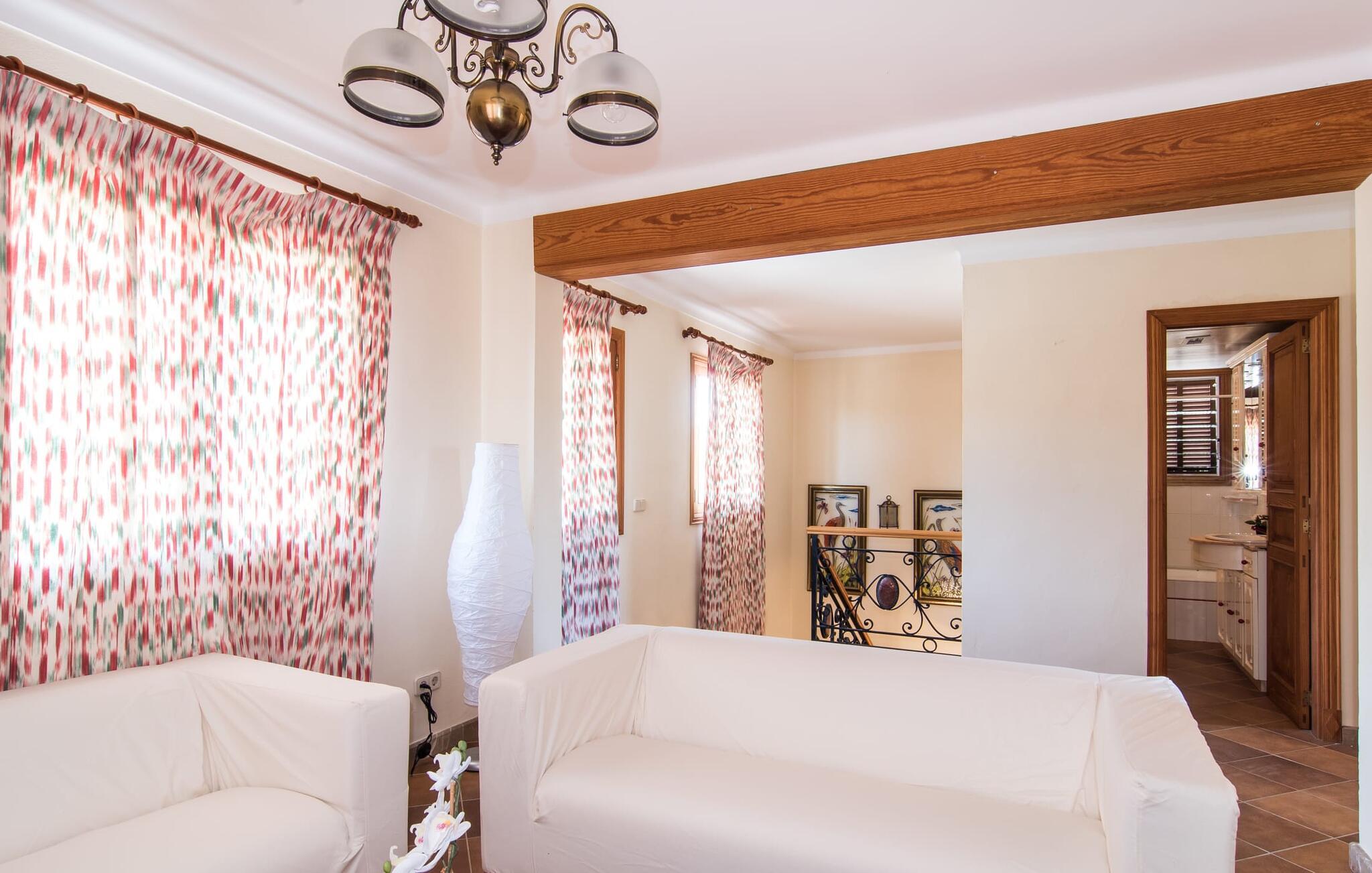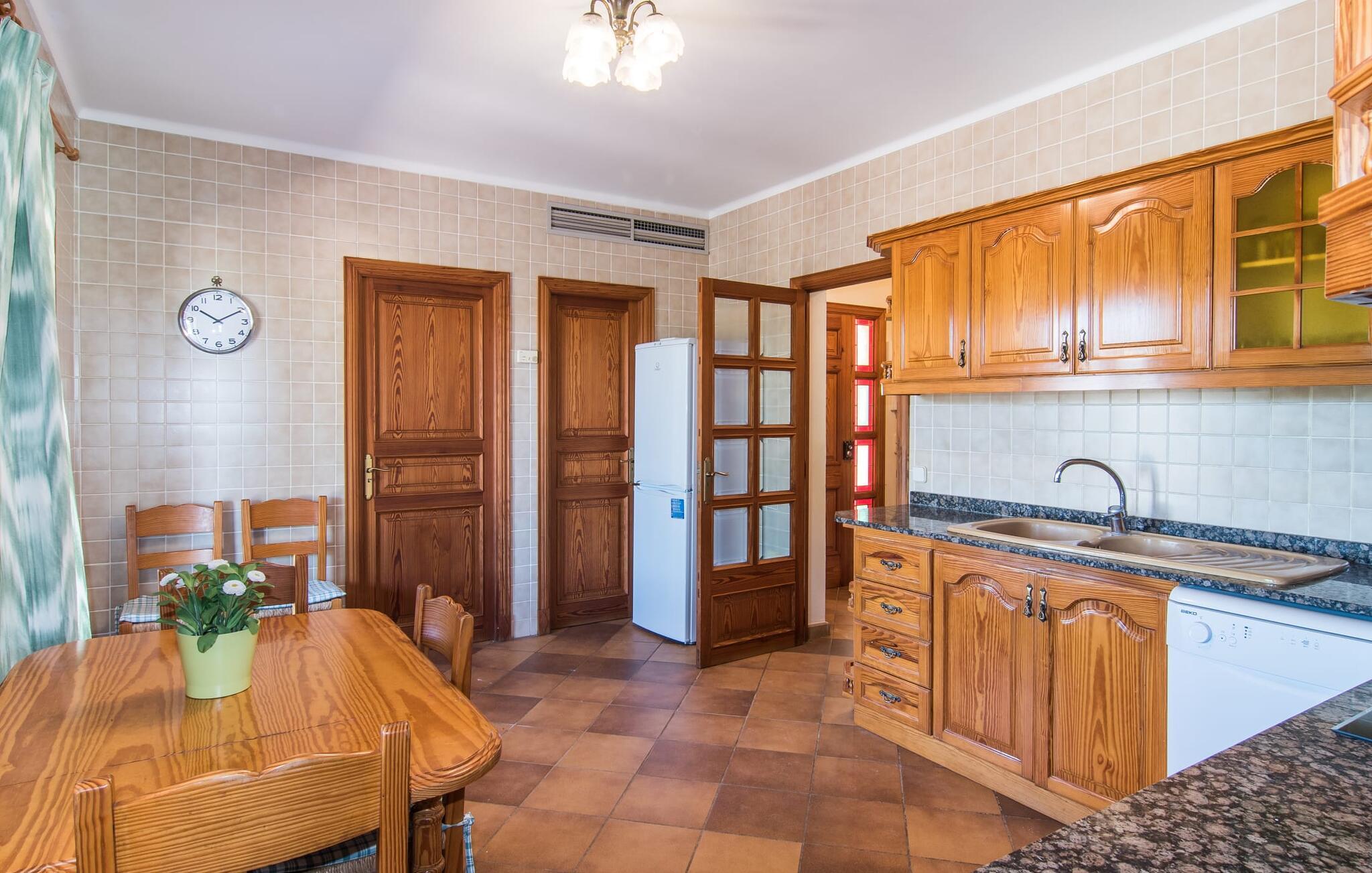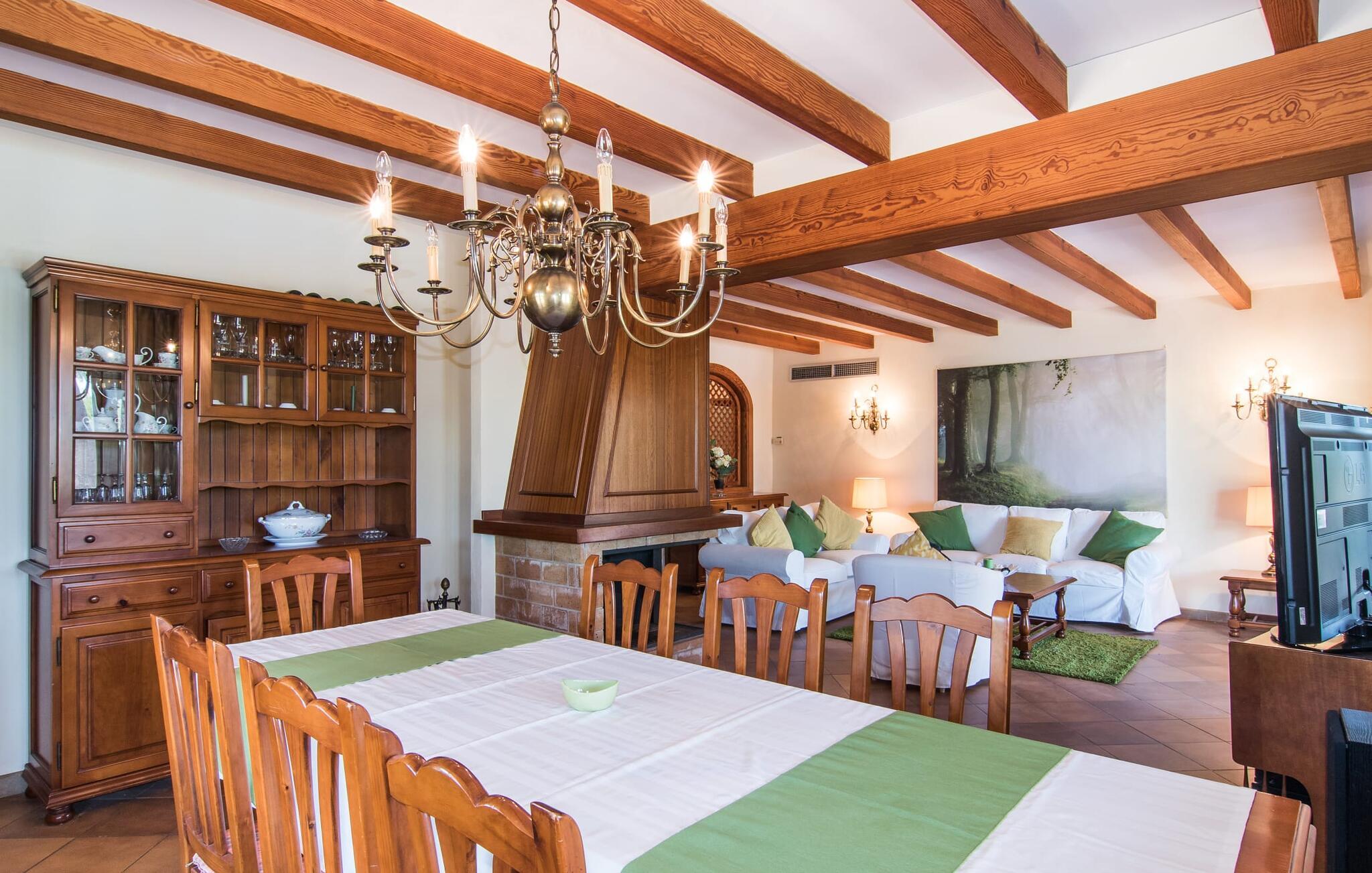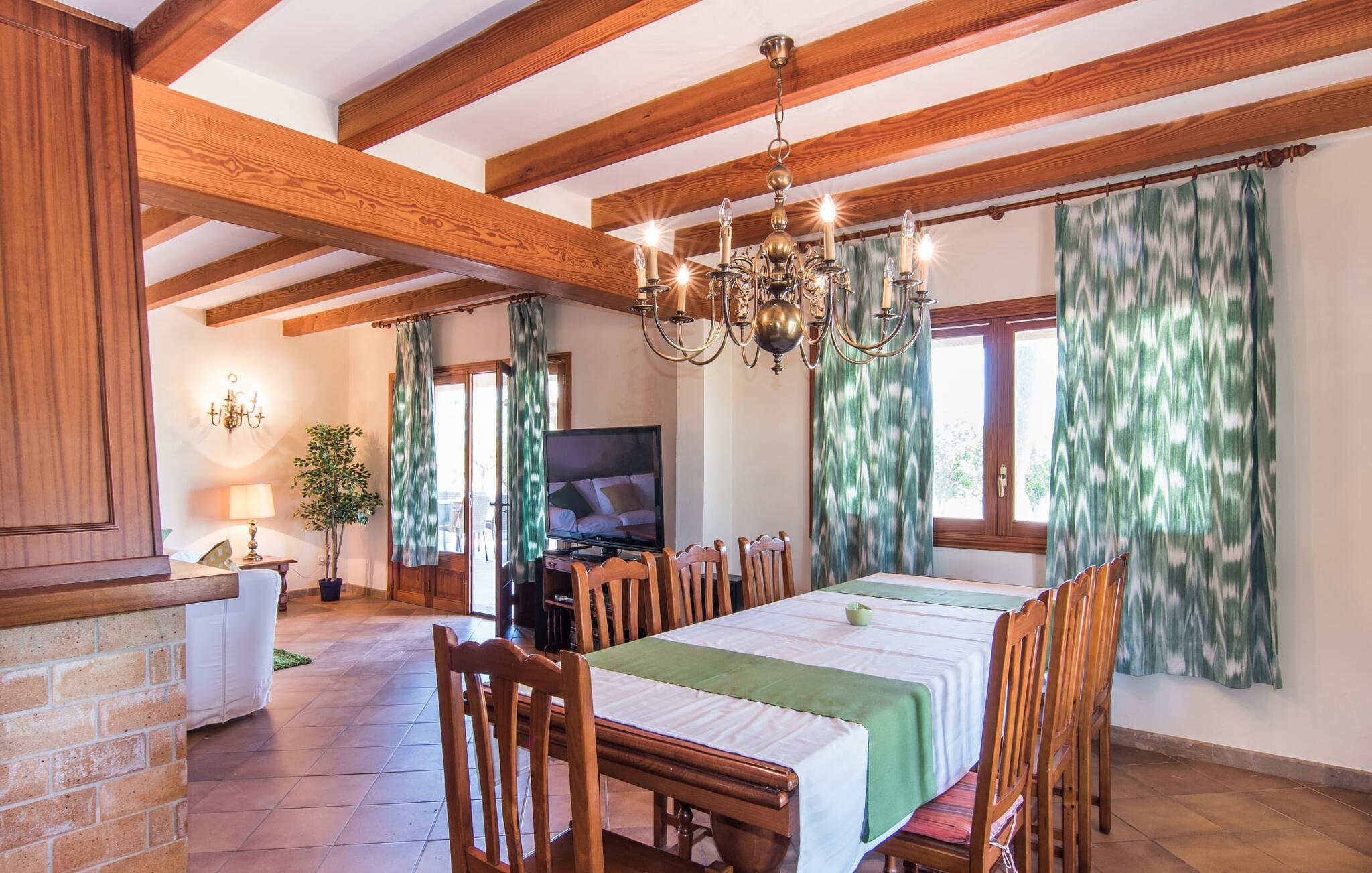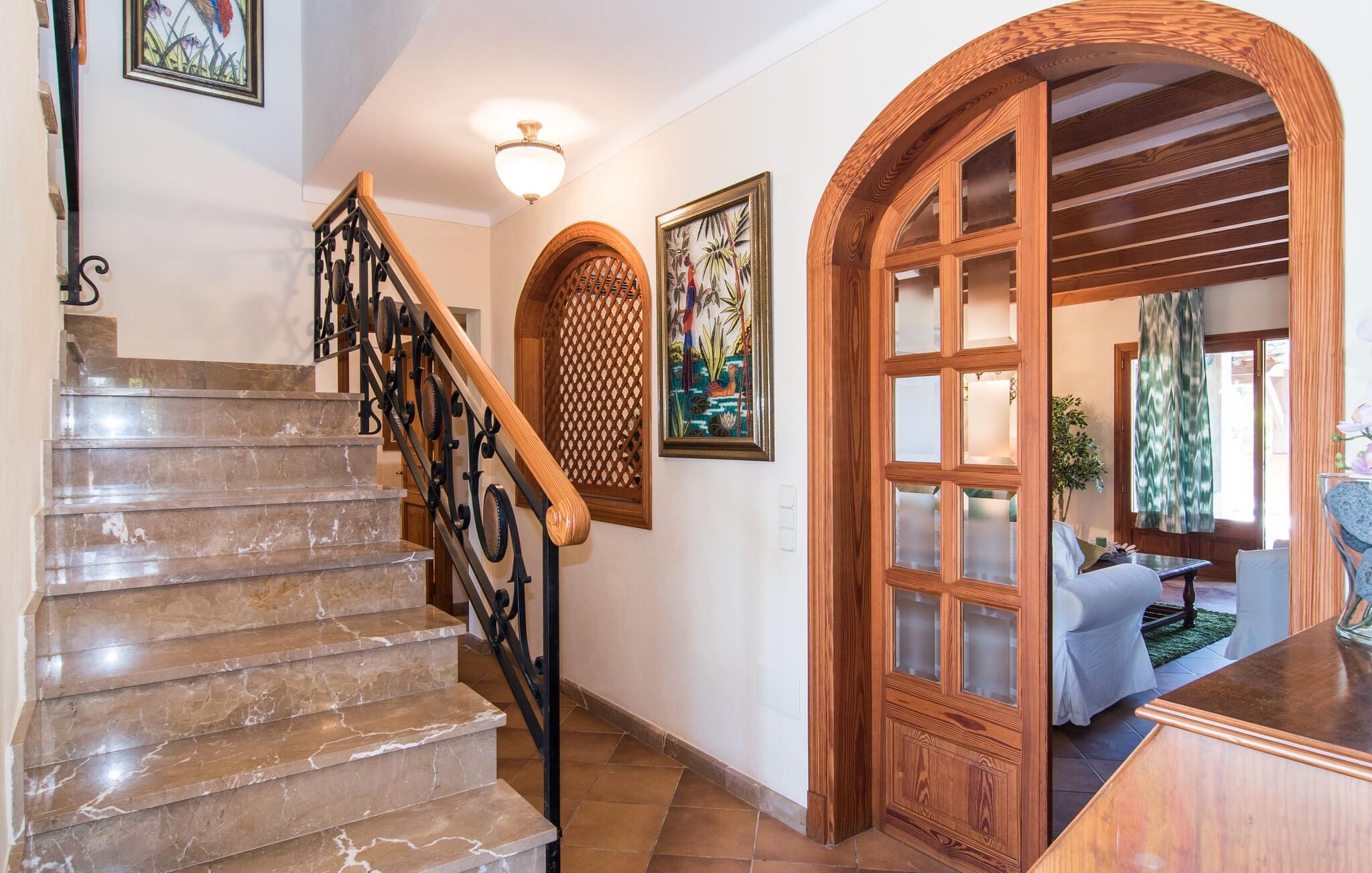 Ferie har en anden tidsramme - det langsommere tempo og den tid, I bruger med familie og venner, hjælper jer med at komme væk fra hverdagens stress. I en landdistrikt, der stort set er uberørt af turisme, kan åbne spørgsmål nogle gange løses blot ved at diskutere dem i en afslappet atmosfære med venner eller familie. Villa “Sa Terra Grosa” er en ejendom, der er det perfekte udgangspunkt for en afslappende ferie af denne type og har endnu mere at byde på takket være sin beliggenhed midt i et smukt landskab med bølgende bakker. Den elfenbensfarvede villa ligger i udkanten af Binissalem og er omgivet af en frugthave og enorme palmer. I vil elske at bruge jeres tid på de rummelige overdækkede terrasser og den solbeskinnede tagterrasse. Landhuset byder på hyggelig privat plads på en ugeneret ejendom og man kan hoppe i poolen næsten direkte fra verandaen og nyde det kølige vand - helt i naturen, hvis man vil. Bagefter kan I solbade på de stilfulde liggestole (eller i skyggen af parasollen om nødvendigt). Hvis en daglig grillaften er en del af en vellykket ferie, vil I blive glad for den indbyggede, overdækkede grill. Det er bekvemt placeret lige i den ene ende af et spisebordssæt i syntetisk rattan af høj kvalitet, hvor I kan servere mad. Når det bliver lidt køligere eller det er tid til at gå i seng, så forlad dette helt afslappende område og træk jer tilbage til jeres indbydende feriehus. Interiøret i den rustikke bygning har gennemgået et ansigtsløft, der kombinerer de traditionelle egenskaber ved mallorcinsk design med en moderne landlig stil – og det er rimeligt at sige, at denne kombination er en succes. Alene den store stue med sin harmoniske farvepalet, højkvalitets træmøbler, mørke keramiske fliser, vægge i lyse, subtile farver og nogle dekorative detaljer i en hjemlig mosgrøn, som afspejles i tekstilerne, gør indtryk. Farvevalget udtrykker nærheden og tilknytningen til naturen – og elsker I pejse, passer den åbne pejs midt i rummet perfekt ind i billedet. Det tilstødende, rustikke landstedskøkken imponerer med autentisk bondehuscharme og har samtidig alle de tekniske faciliteter til en ubekymret ferie med selvforplejning. Værelsesindretningen er også ideel til to familier med i alt op til otte personer. På hver etage er der to dobbeltværelser med aircondition og et badeværelse med badekar. Børnene har deres eget område i de to værelser med enkeltsenge; De to queen-size senge er ideelle som et hyggeligt soveværelse. Da der også er en lille opholdsstue med to sofaer på øverste etage, er det næsten, som om I har to separate overnatningssteder - skønt til en ferie i flere generationer. Ikke at forglemme: Takket være centralvarmen og den hyggelige knitrende pejs mister "Sa Terra Grosa" intet af sin særlige charme, selv i de køligere måneder af året. Hvis I elsker vin og gerne vil tage på en rejse gennem Mallorcas ønologis verden under jeres ferie, er I kommet til det rigtige sted i den smukke villa "Sa Terra Grosa". Binissalem ligger i det frugtbare hjerte af øen, Plà de Mallorca. Det er kendetegnet ved produktion af appelsiner, mandler og vin ved foden af de majestætiske Tramuntana-bjerge. Så det er ikke underligt, at I kan smage direkte i producenternes bodegaer og vinkældre året rundt. Villaen ligger lige uden for landsbyen i et tyndt befolket område. På grund af nærheden til vejen, som man kun kan høre, når vinden er rigtig, kan man sagtens følge den mallorcanske vinrute. Om aftenen, når I vender tilbage fra dagsture, kan I nyde den fulde smag af den medbragte Crianza, mens I sidder i den yderst komfortable lounge og har udsigt over det afslappende landskab. Vi hilser denne vidunderlige finca fra bunden af vores hjerter. Den nænsomt renoverede villa "Sa Terra Grosa" er omgivet af en stor frugthave. Ejendommen er beliggende nord for Binissalem, en rolig lille by i centrum af øen. I kan også gå ind til byen, hvor et farverigt ugentligt marked finder sted om fredagen på kirkepladsen. På grund af sin centrale beliggenhed midt på øen er hovedstaden Palma og dens strande, herunder Passeig del Molinar og Ciutat Jardí, nemme at nå.
