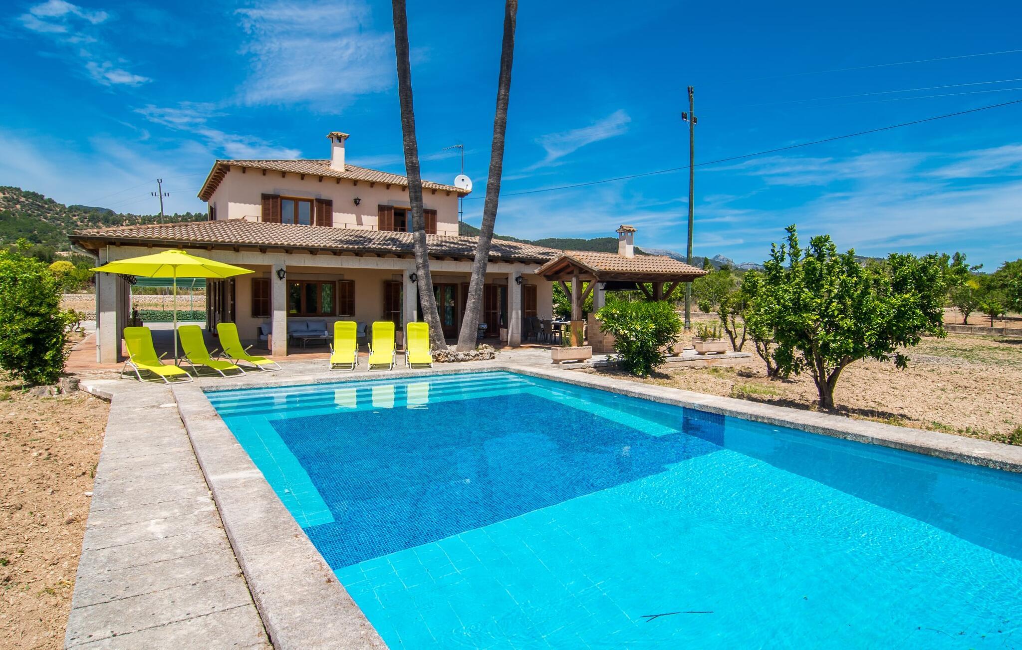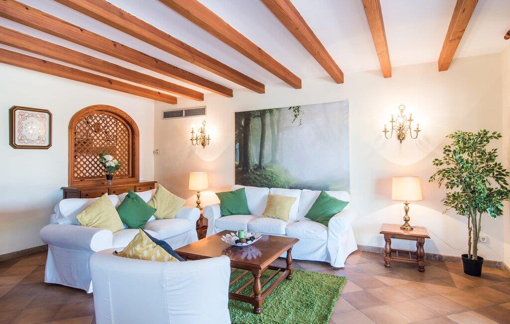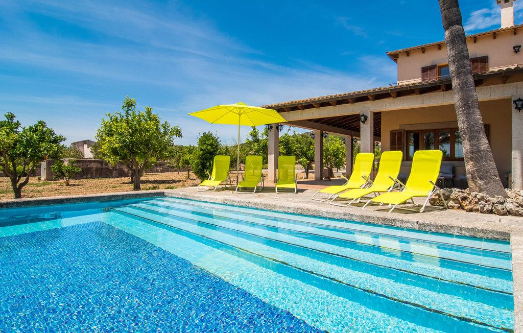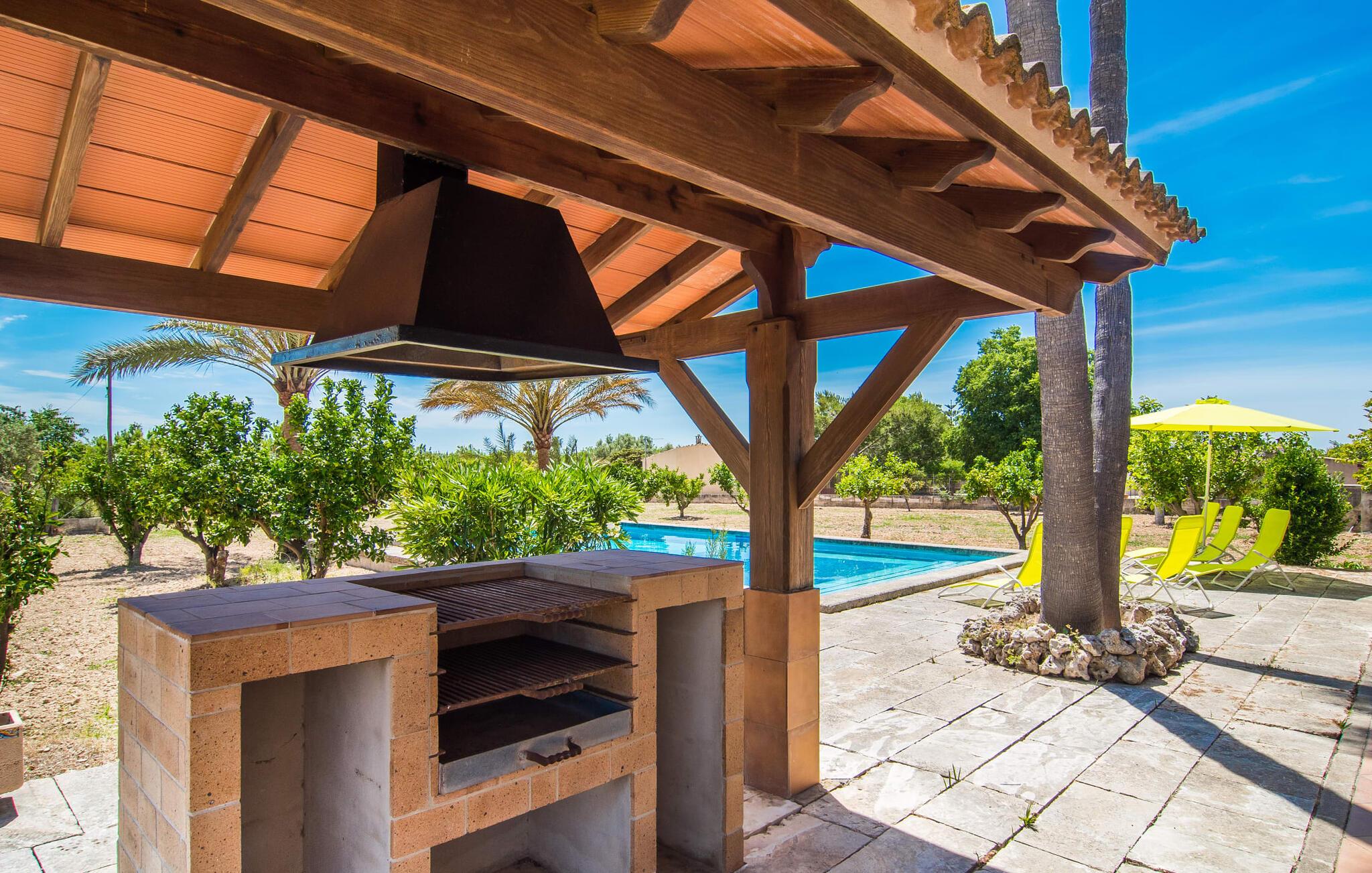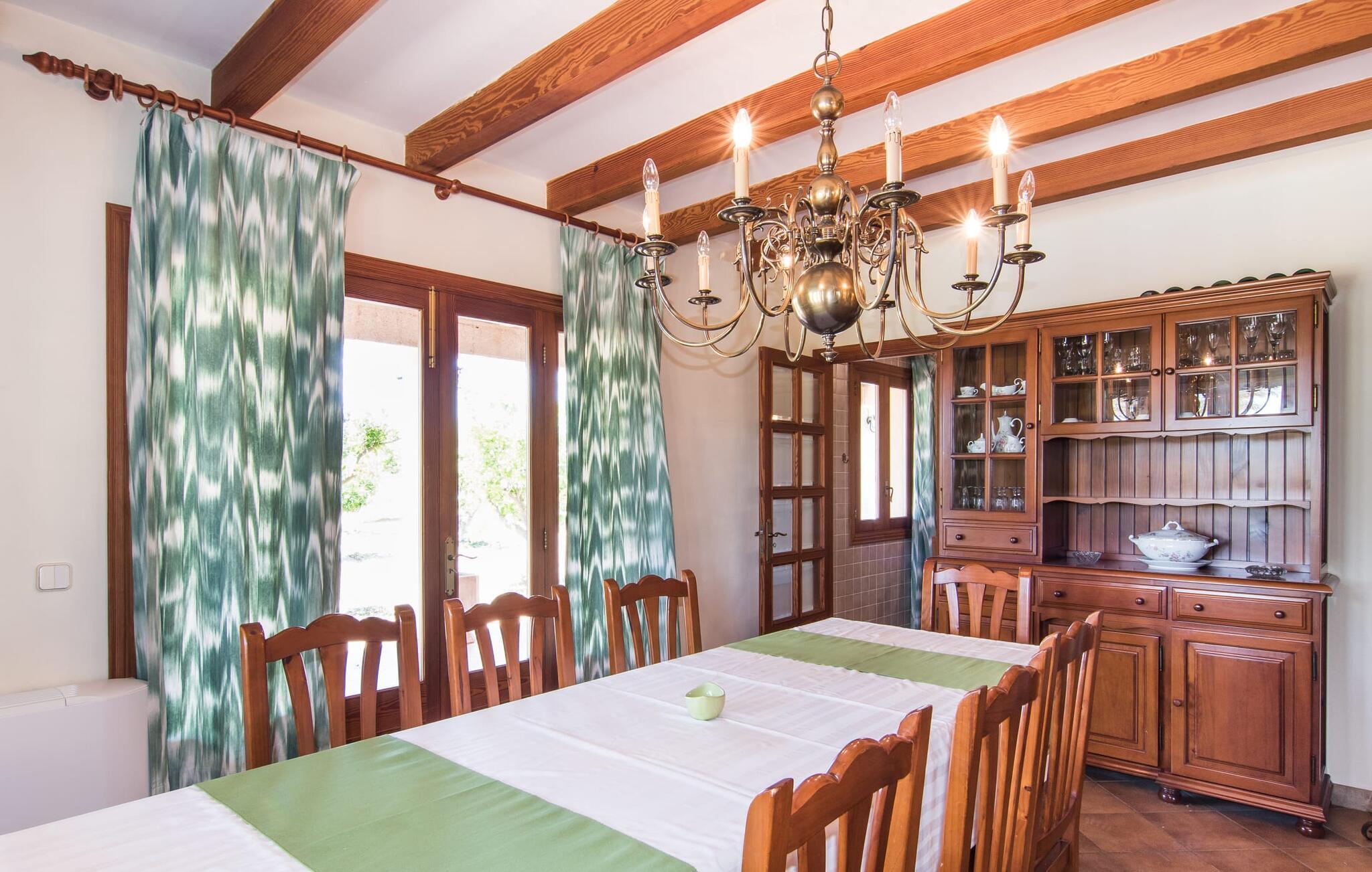 Ferie har en anden tidsramme - det langsommere tempo og den tid, I bruger med familie og venner, hjælper jer med at komme væk fra hverdagens stress. I en landdistrikt, der stort set er uberørt af turisme, kan åbne spørgsmål nogle gange løses blot ved at diskutere dem i en afslappet atmosfære med venner eller familie. Villa “Sa Terra Grosa” er en ejendom, der er det perfekte udgangspunkt for en afslappende ferie af denne type og har endnu mere at byde på takket være sin beliggenhed midt i et smukt landskab med bølgende bakker. Den elfenbensfarvede villa ligger i udkanten af Binissalem og er omgivet af en frugthave og enorme palmer. I vil elske at bruge jeres tid på de rummelige overdækkede terrasser og den solbeskinnede tagterrasse. Landhuset byder på hyggelig privat plads på en ugeneret ejendom og man kan hoppe i poolen næsten direkte fra verandaen og nyde det kølige vand - helt i naturen, hvis man vil. Bagefter kan I solbade på de stilfulde liggestole (eller i skyggen af parasollen om nødvendigt). Hvis en daglig grillaften er en del af en vellykket ferie, vil I blive glad for den indbyggede, overdækkede grill. Det er bekvemt placeret lige i den ene ende af et spisebordssæt i syntetisk rattan af høj kvalitet, hvor I kan servere mad. Når det bliver lidt køligere eller det er tid til at gå i seng, så forlad dette helt afslappende område og træk jer tilbage til jeres indbydende feriehus. Interiøret i den rustikke bygning har gennemgået et ansigtsløft, der kombinerer de traditionelle egenskaber ved mallorcinsk design med en moderne landlig stil – og det er rimeligt at sige, at denne kombination er en succes. Alene den store stue med sin harmoniske farvepalet, højkvalitets træmøbler, mørke keramiske fliser, vægge i lyse, subtile farver og nogle dekorative detaljer i en hjemlig mosgrøn, som afspejles i tekstilerne, gør indtryk. Farvevalget udtrykker nærheden og tilknytningen til naturen – og elsker I pejse, passer den åbne pejs midt i rummet perfekt ind i billedet. Det tilstødende, rustikke landstedskøkken imponerer med autentisk bondehuscharme og har samtidig alle de tekniske faciliteter til en ubekymret ferie med selvforplejning. Værelsesindretningen er også ideel til to familier med i alt op til otte personer. På hver etage er der to dobbeltværelser med aircondition og et badeværelse med badekar. Børnene har deres eget område i de to værelser med enkeltsenge; De to queen-size senge er ideelle som et hyggeligt soveværelse. Da der også er en lille opholdsstue med to sofaer på øverste etage, er det næsten, som om I har to separate overnatningssteder - skønt til en ferie i flere generationer. Ikke at forglemme: Takket være centralvarmen og den hyggelige knitrende pejs mister "Sa Terra Grosa" intet af sin særlige charme, selv i de køligere måneder af året. Hvis I elsker vin og gerne vil tage på en rejse gennem Mallorcas ønologis verden under jeres ferie, er I kommet til det rigtige sted i den smukke villa "Sa Terra Grosa". Binissalem ligger i det frugtbare hjerte af øen, Plà de Mallorca. Det er kendetegnet ved produktion af appelsiner, mandler og vin ved foden af de majestætiske Tramuntana-bjerge. Så det er ikke underligt, at I kan smage direkte i producenternes bodegaer og vinkældre året rundt. Villaen ligger lige uden for landsbyen i et tyndt befolket område. På grund af nærheden til vejen, som man kun kan høre, når vinden er rigtig, kan man sagtens følge den mallorcanske vinrute. Om aftenen, når I vender tilbage fra dagsture, kan I nyde den fulde smag af den medbragte Crianza, mens I sidder i den yderst komfortable lounge og har udsigt over det afslappende landskab. Vi hilser denne vidunderlige finca fra bunden af vores hjerter. Den nænsomt renoverede villa "Sa Terra Grosa" er omgivet af en stor frugthave. Ejendommen er beliggende nord for Binissalem, en rolig lille by i centrum af øen. I kan også gå ind til byen, hvor et farverigt ugentligt marked finder sted om fredagen på kirkepladsen. På grund af sin centrale beliggenhed midt på øen er hovedstaden Palma og dens strande, herunder Passeig del Molinar og Ciutat Jardí, nemme at nå.