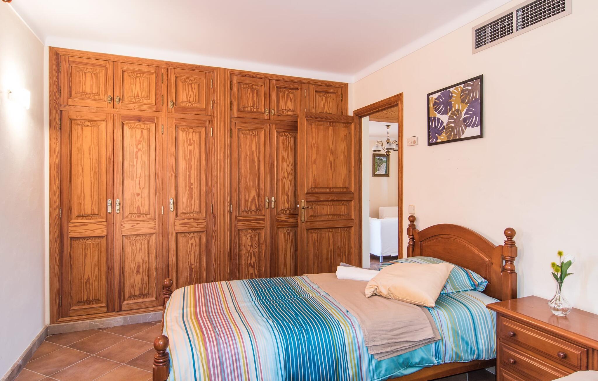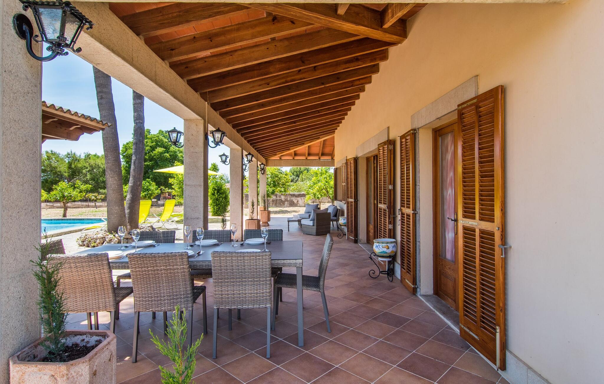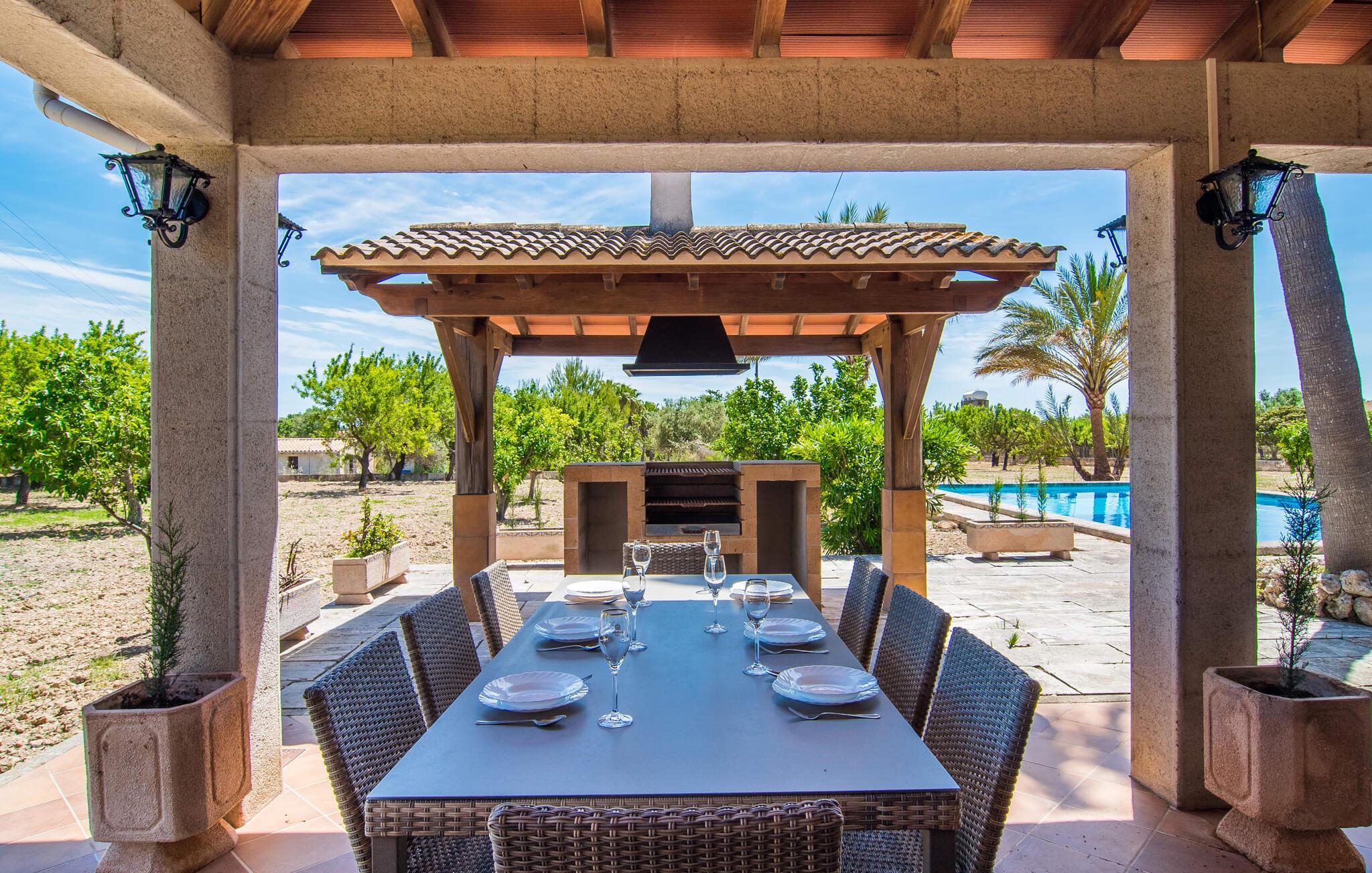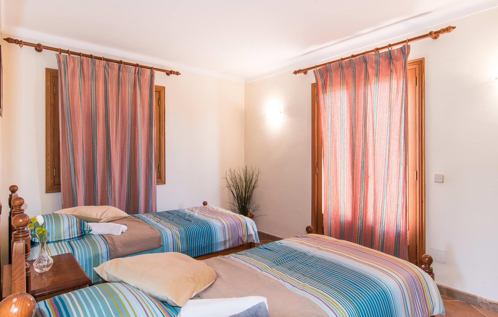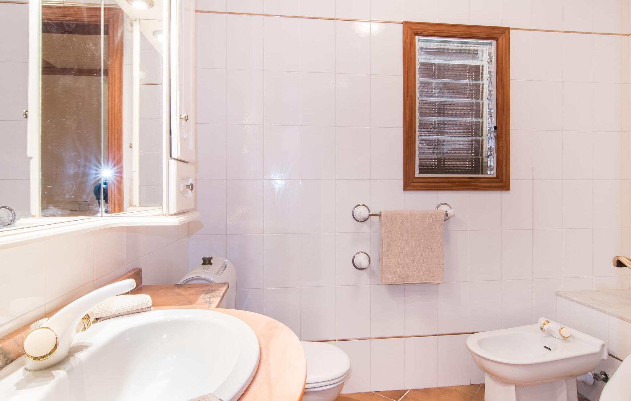 Ferie har en anden tidsramme - det langsommere tempo og den tid, I bruger med familie og venner, hjælper jer med at komme væk fra hverdagens stress. I en landdistrikt, der stort set er uberørt af turisme, kan åbne spørgsmål nogle gange løses blot ved at diskutere dem i en afslappet atmosfære med venner eller familie. Villa “Sa Terra Grosa” er en ejendom, der er det perfekte udgangspunkt for en afslappende ferie af denne type og har endnu mere at byde på takket være sin beliggenhed midt i et smukt landskab med bølgende bakker. Den elfenbensfarvede villa ligger i udkanten af Binissalem og er omgivet af en frugthave og enorme palmer. I vil elske at bruge jeres tid på de rummelige overdækkede terrasser og den solbeskinnede tagterrasse. Landhuset byder på hyggelig privat plads på en ugeneret ejendom og man kan hoppe i poolen næsten direkte fra verandaen og nyde det kølige vand - helt i naturen, hvis man vil. Bagefter kan I solbade på de stilfulde liggestole (eller i skyggen af parasollen om nødvendigt). Hvis en daglig grillaften er en del af en vellykket ferie, vil I blive glad for den indbyggede, overdækkede grill. Det er bekvemt placeret lige i den ene ende af et spisebordssæt i syntetisk rattan af høj kvalitet, hvor I kan servere mad. Når det bliver lidt køligere eller det er tid til at gå i seng, så forlad dette helt afslappende område og træk jer tilbage til jeres indbydende feriehus. Interiøret i den rustikke bygning har gennemgået et ansigtsløft, der kombinerer de traditionelle egenskaber ved mallorcinsk design med en moderne landlig stil – og det er rimeligt at sige, at denne kombination er en succes. Alene den store stue med sin harmoniske farvepalet, højkvalitets træmøbler, mørke keramiske fliser, vægge i lyse, subtile farver og nogle dekorative detaljer i en hjemlig mosgrøn, som afspejles i tekstilerne, gør indtryk. Farvevalget udtrykker nærheden og tilknytningen til naturen – og elsker I pejse, passer den åbne pejs midt i rummet perfekt ind i billedet. Det tilstødende, rustikke landstedskøkken imponerer med autentisk bondehuscharme og har samtidig alle de tekniske faciliteter til en ubekymret ferie med selvforplejning. Værelsesindretningen er også ideel til to familier med i alt op til otte personer. På hver etage er der to dobbeltværelser med aircondition og et badeværelse med badekar. Børnene har deres eget område i de to værelser med enkeltsenge; De to queen-size senge er ideelle som et hyggeligt soveværelse. Da der også er en lille opholdsstue med to sofaer på øverste etage, er det næsten, som om I har to separate overnatningssteder - skønt til en ferie i flere generationer. Ikke at forglemme: Takket være centralvarmen og den hyggelige knitrende pejs mister "Sa Terra Grosa" intet af sin særlige charme, selv i de køligere måneder af året. Hvis I elsker vin og gerne vil tage på en rejse gennem Mallorcas ønologis verden under jeres ferie, er I kommet til det rigtige sted i den smukke villa "Sa Terra Grosa". Binissalem ligger i det frugtbare hjerte af øen, Plà de Mallorca. Det er kendetegnet ved produktion af appelsiner, mandler og vin ved foden af de majestætiske Tramuntana-bjerge. Så det er ikke underligt, at I kan smage direkte i producenternes bodegaer og vinkældre året rundt. Villaen ligger lige uden for landsbyen i et tyndt befolket område. På grund af nærheden til vejen, som man kun kan høre, når vinden er rigtig, kan man sagtens følge den mallorcanske vinrute. Om aftenen, når I vender tilbage fra dagsture, kan I nyde den fulde smag af den medbragte Crianza, mens I sidder i den yderst komfortable lounge og har udsigt over det afslappende landskab. Vi hilser denne vidunderlige finca fra bunden af vores hjerter. Den nænsomt renoverede villa "Sa Terra Grosa" er omgivet af en stor frugthave. Ejendommen er beliggende nord for Binissalem, en rolig lille by i centrum af øen. I kan også gå ind til byen, hvor et farverigt ugentligt marked finder sted om fredagen på kirkepladsen. På grund af sin centrale beliggenhed midt på øen er hovedstaden Palma og dens strande, herunder Passeig del Molinar og Ciutat Jardí, nemme at nå.