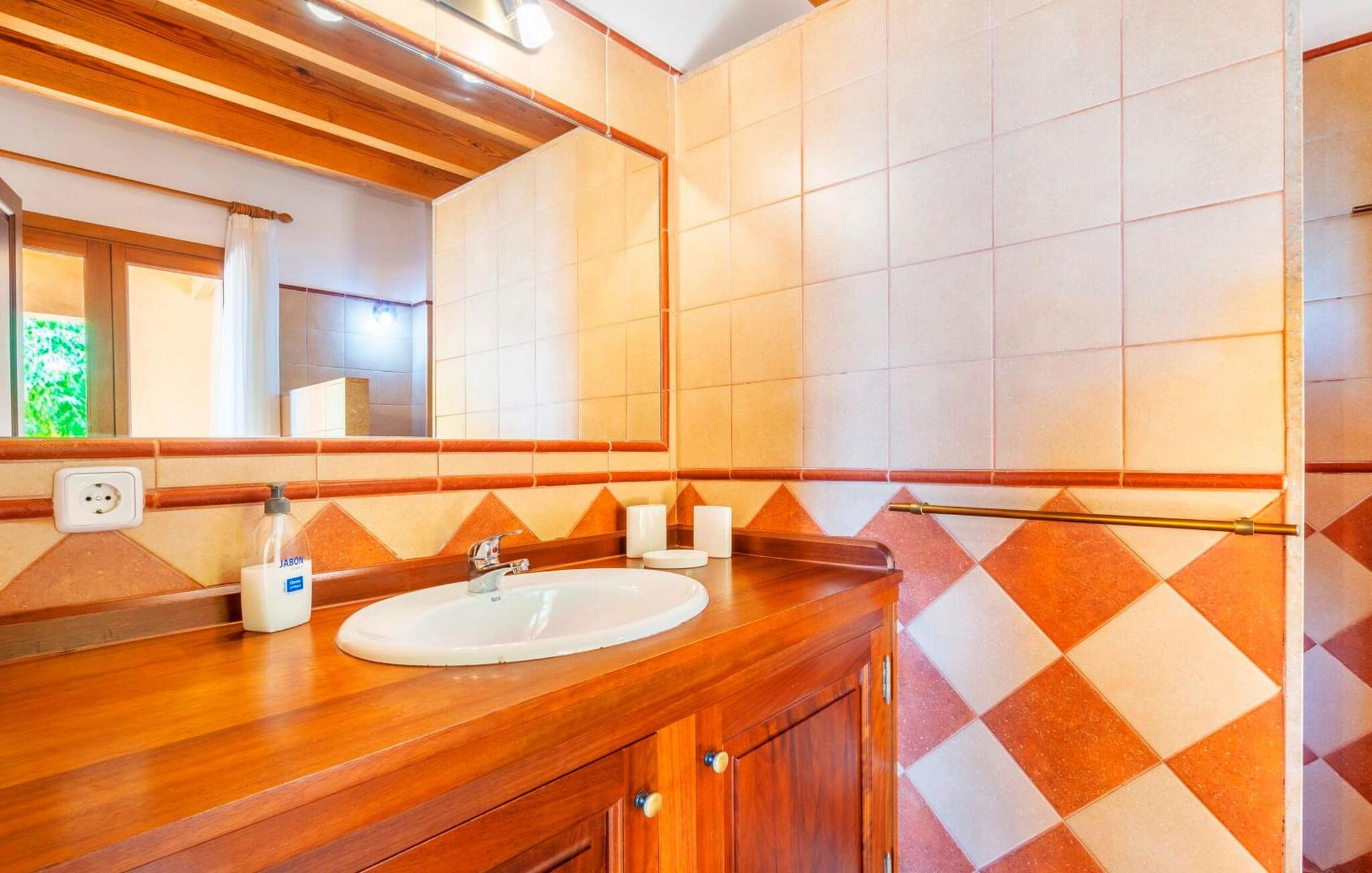 Den to-etagers stenvilla "Sa Torre Nova" er omgivet af en smuk have og ligger nær den lille by Son Carrió på det østlige Mallorca. Med havet synligt i horisonten, tilbyder dette afsondrede sted en idyllisk ramme for udendørsliv. Dette er et Fincallorca feriehus. Villaen har en problemfri overgang mellem indendørs og udendørs ophold, hvilket giver mulighed for fornøjelige sommermåltider på terrassen, komplet med parasoller til skygge. Efter middagen kan gæsterne slappe af i hyggelige lounger eller nyde en grill ved swimmingpoolen, som har romerske trapper og en fantastisk udsigt over landskabet. Interiøret viser traditionelle mallorcanske elementer, herunder smukke røde skodder på vinduer og døre, håndbrændte vægfliser og charmerende træmøbler. "Sa Torre Nova" kan rumme store familier eller grupper med fem rummelige dobbeltværelser, hvoraf fire har eget badeværelse for ekstra privatliv. Det lyse køkken er fuldt udstyret og støder op til en spiseplads til ti personer. Den hyggelige stue med pejs tilbyder et perfekt tilflugtssted til køligere aftener. Med sit gennemtænkte design og generøse plads er denne villa et ideelt feriehus for venner og familie. Villaen "Sa Torre Nova" har en fantastisk beliggenhed mellem Sa Coma og Son Carrio. De smukke strande på østkysten er mindre end 4 km væk. Store shoppingture kan gennemføres i Sant Llorenc. Strandpromenaden i Portocristo er perfekt til slentreture og byder på masser af gode restauranter. Elektricitet er inkluderet i prisen, hvis den anvendes hensigtsmæssigt. I sjældne tilfælde vil du blive opkrævet gebyret kontant på stedet.