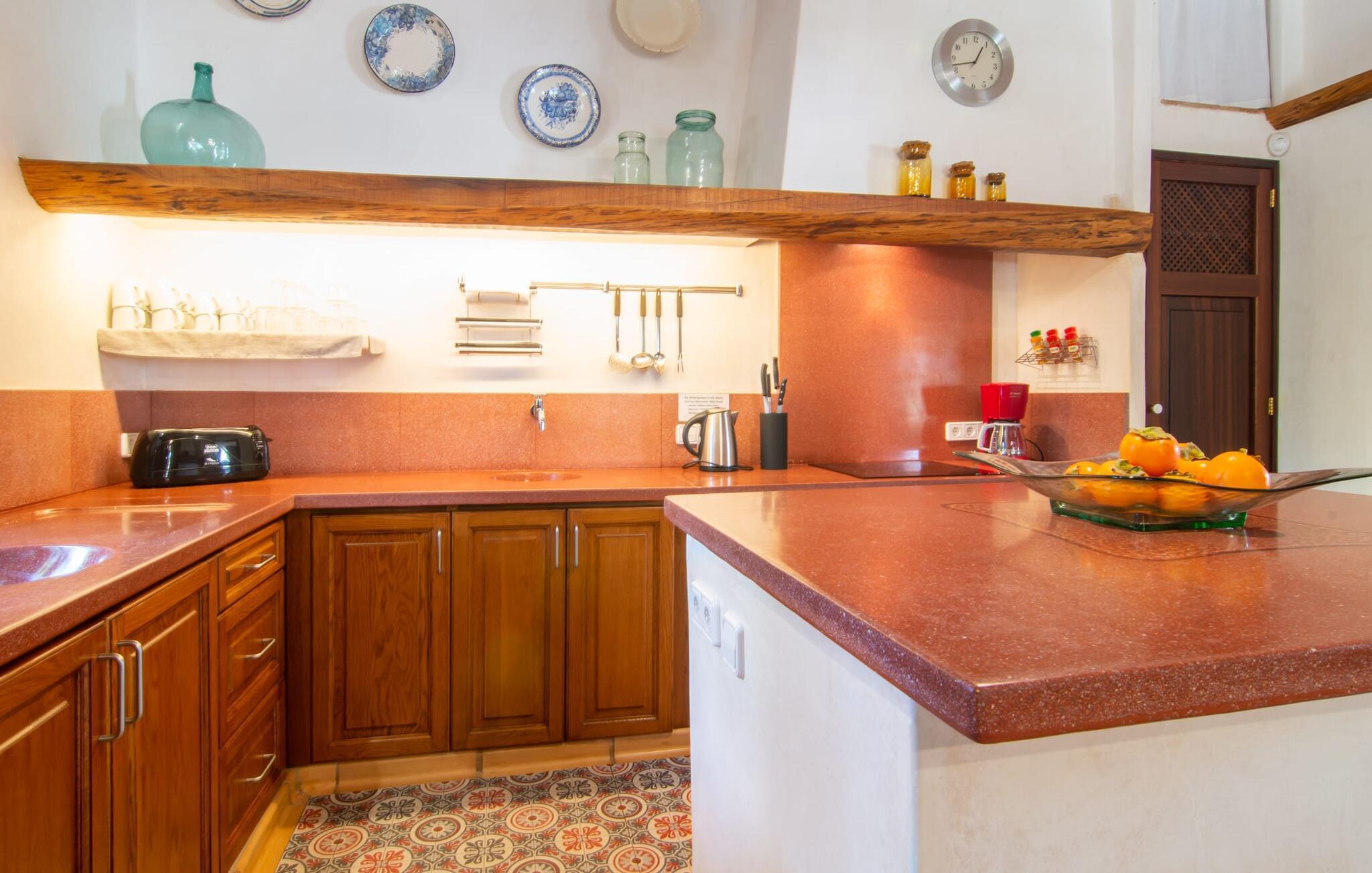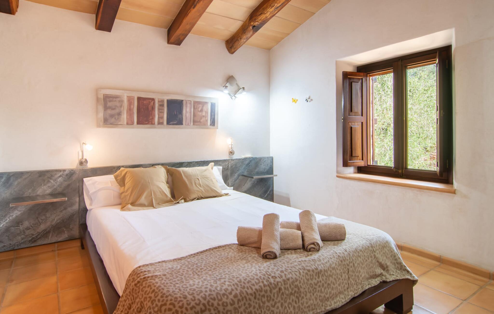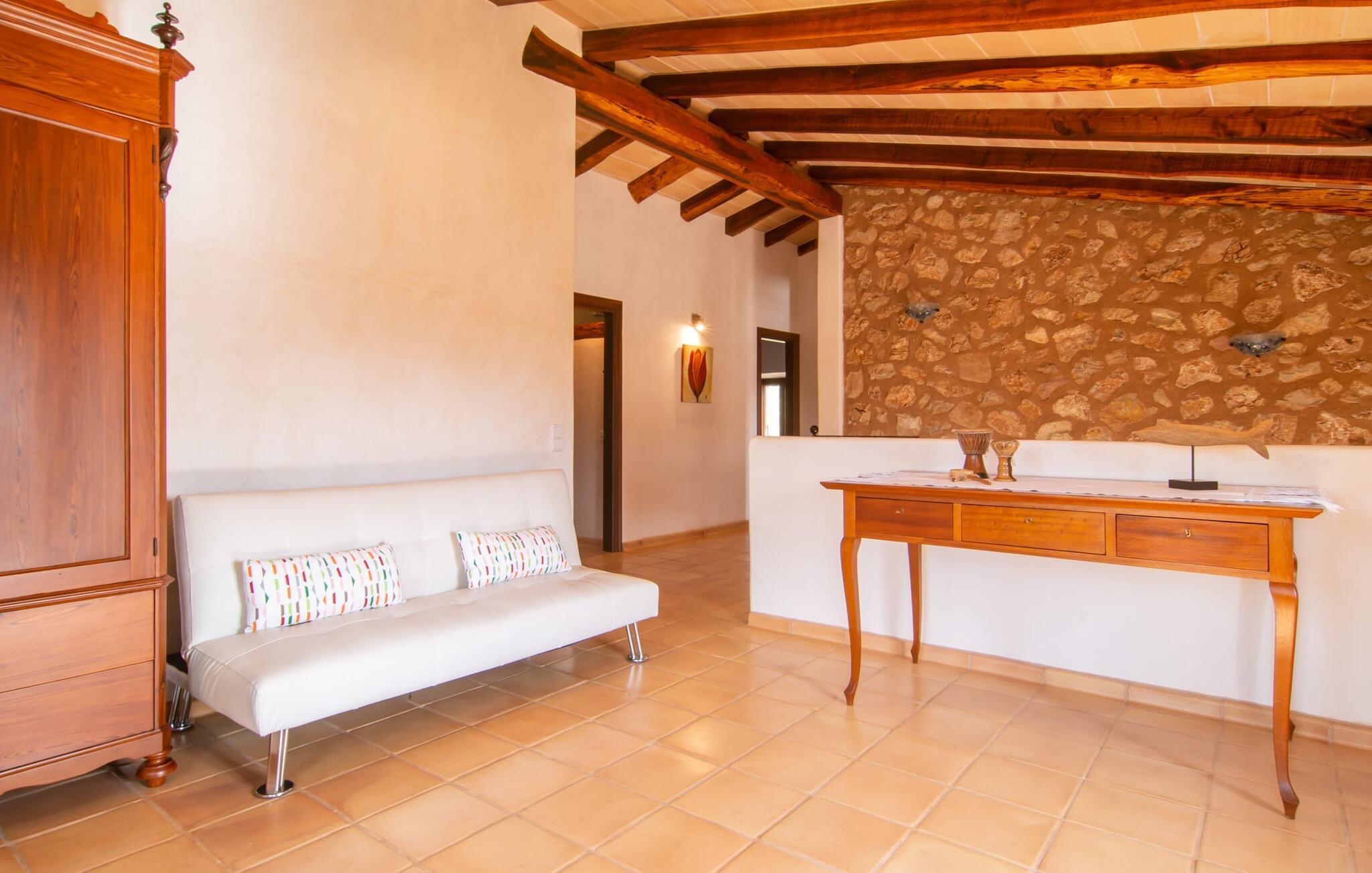 Bemærk - dette er en ejendom for elskere. For elskere af god smag og levende æstetik, der vil bemærke fra første øjeblik, de træder ind i ejendommen, at denne villa opfylder deres behov. Det smukke område er præget af en helt speciel stemning; Den er designet, så den omgiver huset som en meget smuk have med frodige træer og emmer af en hyggelig idyl. Blomster og grønne planter i bede, små vægge, terrassearealer på adskilte plan og individuelle dekorative stykker skaber et indbydende helhedsbillede. Udendørsområdets virkelige blikfang er naturligvis den imponerende pool med en længde på 12 m. Den har trapper for meget behagelig adgang og er stemningsfuldt oplyst om natten. Solterrassen, belagt med natursten, ligger lige ved siden af poolen; De komfortable liggestole inviterer dig til at slappe af af hjertens lyst under middelhavshimlen. De to medfølgende parasoller beskytter dig mod overdreven UV-stråling. Andre indbydende siddemuligheder på den store terrasse omfatter sofaen og det lille bord, som kan rumme middag for op til fire personer. Terrassen, designet med flodsten, byder ikke kun på masser af siddepladser, men også en sensationelt smuk udsigt over poolområdet og videre. Hvis du har lyst, skal du bare slappe af i hængekøjen og lade blikket vandre i det fjerne. Grillen inviterer dig til at nyde solide grillaftener, hvor du kan nyde de udsøgte regionale specialiteter, som du måske har købt på markedet tidligere på dagen. Den skønne altan på øverste etage giver endnu en mulighed for uforstyrret solbadning. Det er simpelthen skønt at sidde her ved solopgang eller solnedgang og nyde den fantastiske udsigt. Fra terrassen i stueplan kommer du ind i huset gennem to dobbeltdøre. Dette er et Fincallorca feriehus. Denne indgang fører til det store køkken-alrum, som byder på et behageligt rum til at blive hængende og tilberede og nyde måltider sammen. Køkkenet er rummeligt nok til også at rumme et stort solidt spisebord, der kan rumme op til otte personer til middag. Det moderne køkken er let at rengøre og fuldt udstyret, inklusive en filterkaffemaskine og elkedel. En stor gang, som kan lukkes med en glasskydedør, fører til den hyggelige stue. Forskellige komfortable sofaer og lænestole giver dig mulighed for at slappe af og måske ikke gøre noget i et stykke tid. De massive synlige bjælker udstråler en hjemlig og rustik atmosfære og inviterer dig til at blive hængende. Rent praktisk kan pejsen også bruges og ses fra spise- og opholdsstue. I den kølige årstid kan du finde dig tilpas ved den knitrende pejs og varme dig op, mens du kigger ind i de dansende flammer. Tre brede trin fører fra opholdsrummet ind i gangen og opgangen, der gør et herskabeligt indtryk med sin naturstensvæg og markante støttepiller. Dobbeltværelserne formidler en elegant charme og imponerer med lyse farver, der er dygtigt kombineret med nogle førsteklasses kontraster. Badeværelserne med dagslys imponerer med deres meget individuelle, funktionelle og moderne design. De smukkeste strande på Mallorca, den berømte Calas de Mallorca, kan også nemt nås fra villaen "Sa Tartova". Nogle af de følgende strande er rigtige insider-tips med uberørt karakter. Efter en vellykket dag fuld af ferieaktiviteter, kan du slappe af i privatlivets fred i din egen villa, måske svømme et par strækninger og afslutte dagen med lyst. Villaen "Sa Tortava" er en særlig slående ferieejendom, der opfylder selv de højeste standarder for komfort og stil. Det har en idyllisk beliggenhed, kun omkring 3 kilometer sydøst for centrum af Manacor. Manacor har en god infrastruktur. En af de bedste strande i nærheden er Cala Mendia, omkring 13 km væk. Køreturen til Palma de Mallorca Lufthavn tager cirka 45 minutter.
