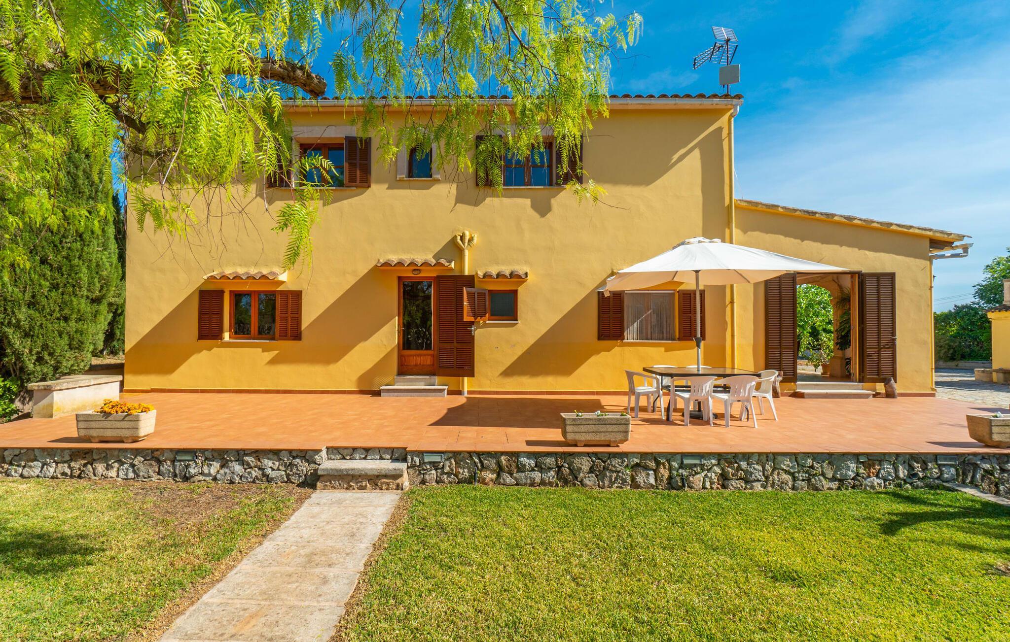 Det charmerende bondehus "Sa Vileta" skinner i solen. Det familievenlige feriehus er omgivet af en oaselignende have. Dette er naturligt dyrket med masser af græsplæner og et imponerende antal frugttræer. Der er også frodige blomstrende planter på de brolagte terrassearealer og omkring det rummelige poolområde. Det er ikke kun swimmingpoolen med rutsjebane, der er et højdepunkt for hele familien. De mange legemuligheder i haven samt bordtennisbordet og basketballkurven er virkelige højdepunkter for jeres børn. I mellemtiden kan voksne slappe af på liggestolene. Om aftenen kan I bruge grillen til en lækker BBQ. De to overdækkede terrasser med deres indbydende kurvebuer inviterer jer til at tilbringe jeres dyrebare ferietid hele dagen lang. Venner er hjerteligt velkomne. Det fantastisk beliggende stuehus afspejler den landlige atmosfære indenfor. Det hyggelige og rustikke feriehus byder på en harmonisk atmosfære. Terracotta og træ kombineres med moderne boligkomfort. Det fuldt udstyrede køkken på landet og den indendørs spisestue inviterer jer til at nyde måltider sammen. Tre badeværelser muliggør familievenlig brug for op til otte personer. Udover opholdsstue med TV er der fire lyse soveværelser med enkelt- eller dobbeltsenge. De lyse værelser tilbyder en smuk udsigt over den beroligende stilhed i den naturlige have. Takket være det varme-kolde klimaanlæg er der altid en behagelig temperatur i stuehuset. Det fremragende tekniske udstyr gør det også muligt at bruge det på hjemmekontoret. Kombiner ferie med arbejde og drag fordel af den kreative atmosfære i "Sa Vileta"-gården. Det familievenlige bondehus "Sa Vileta" er beliggende i en oase-lignende have i landlige omgivelser og alligevel kun få minutter fra den traditionelle landsby Sencelles. I nyder to gange af den behagelige centrale beliggenhed midt på øen: Der er kun 30 minutter i bil til øens hovedstad Palma eller den lange bugt Alcúdia med sine vidunderlige sandstrande.
