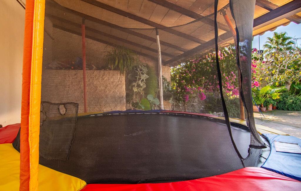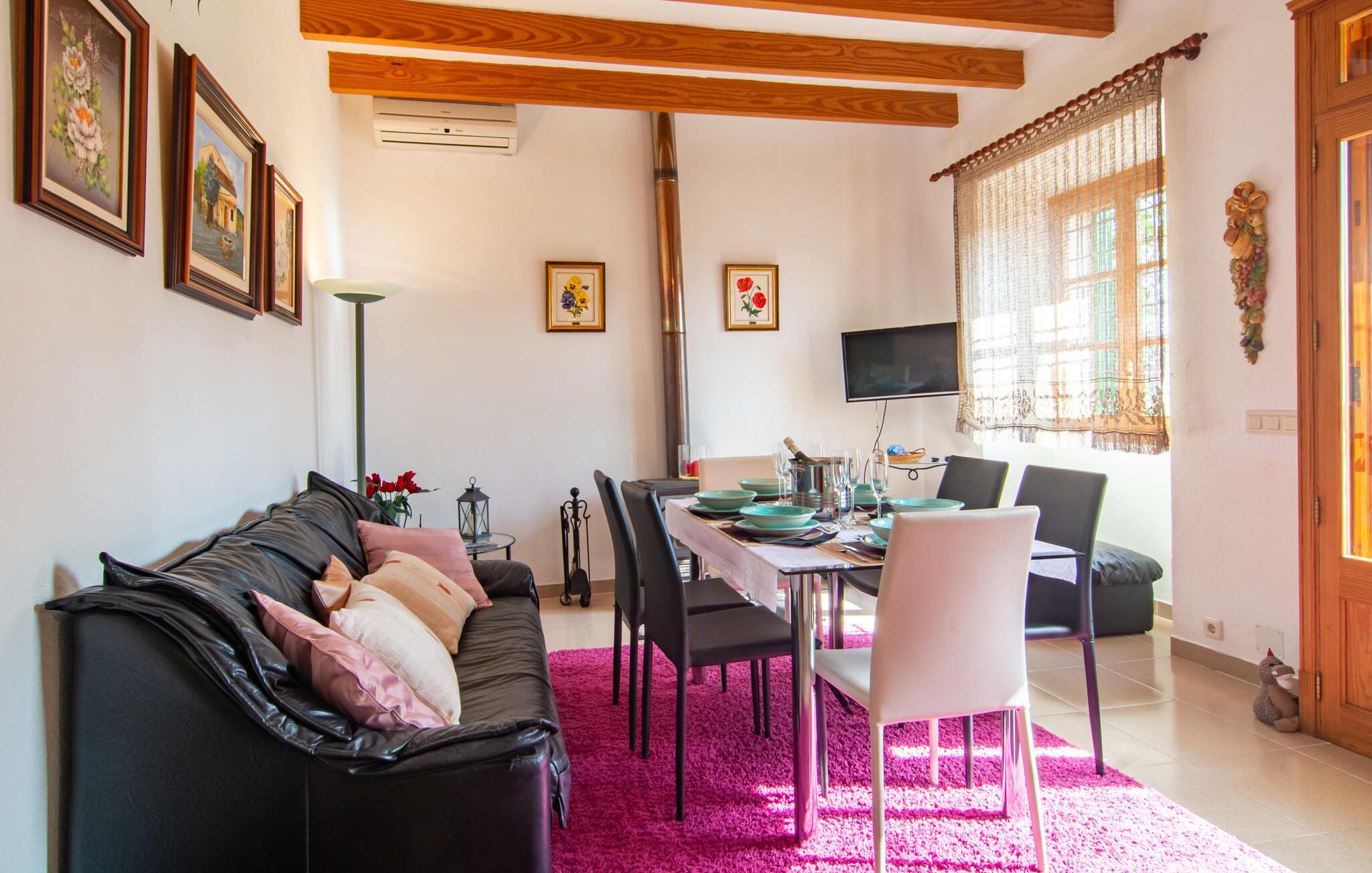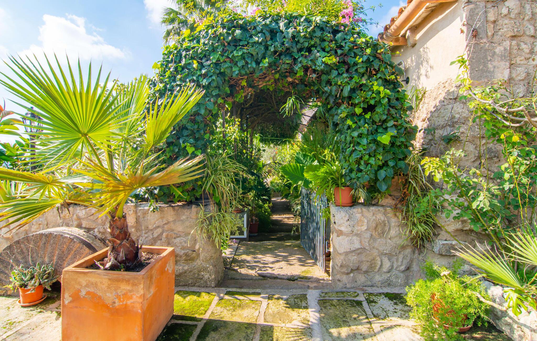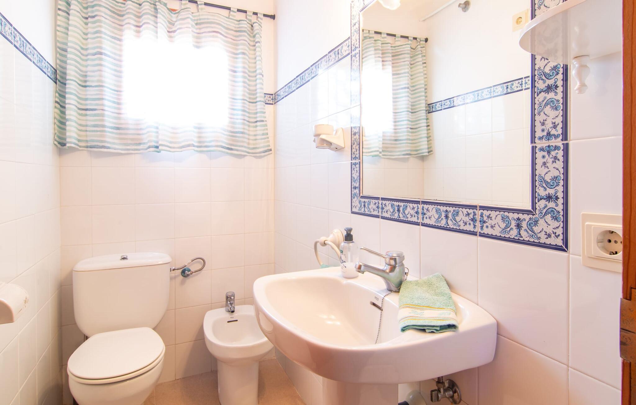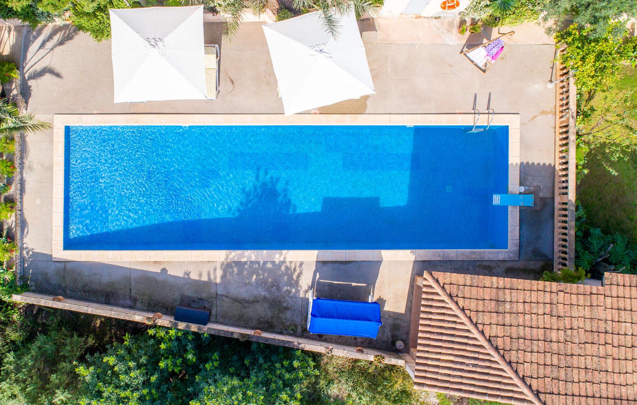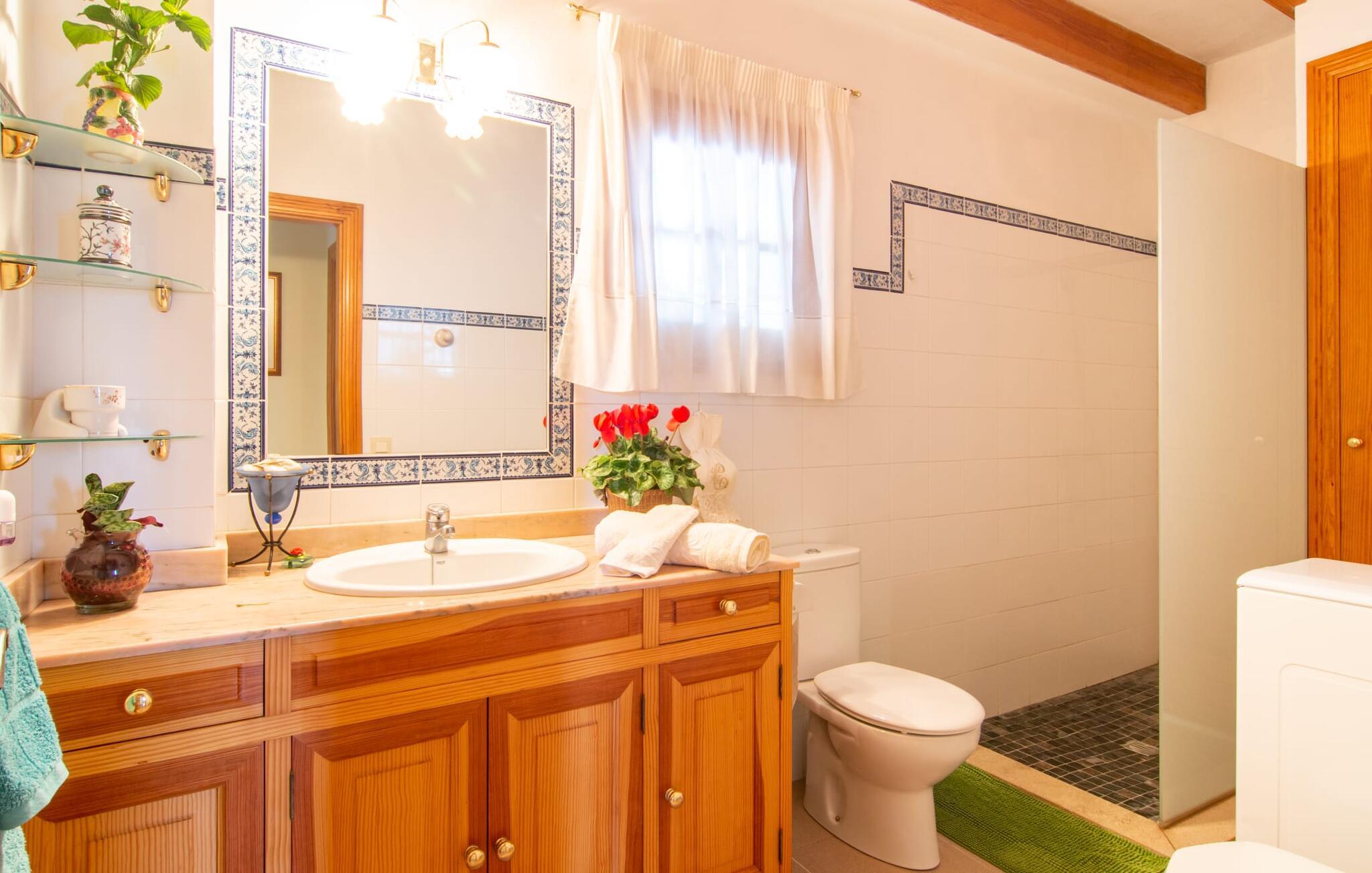Muntert indbydende og usædvanligt hyggeligt - det beskriver villaen "Sabor de Cas Ferrer" meget godt. Takket være de farverige og kærligt udvalgte detaljer kombineret med fortryllende grønt rundt omkring, skinner det lille, blankpudsede hus med en helt speciel glans. Udearealet er perfekt til vandelskere, da den vidunderligt glitrende pool med sin imponerende længde på 16 m ikke kun byder på forfriskende afkøling på varme dage, men også mulighed for at svømme et par længder. For en velfortjent pause efter svømning kan I finde jer tilpas på en liggestol eller den store verandagynge. Og når det er tid til middag, kan I gå direkte til den smukke, overdækkede spiseplads. Nu skal I bare fyre op i grillen og begynde at tilberede jeres kulinariske delikatesser. Et godt glas vin, selskab med jeres kære - det er alt hvad I behøver for en perfekt aften! Det indre af villaen er lige så hyggeligt. Kærligt indrettet og fuld af farverige små detaljer, den fælles opholds- og spisestue med åbent køkken inviterer jer til at blive hængende. Lige meget om I tilbereder et lækkert måltid med jeres familie i det veludstyrede køkken eller døser i sofaen, mens de andre sludrer livligt i den store spiseplads. Takket være de korte afstande kan jeres familie hurtigt samles – præcis som de skal på ferie. Og hvis I har brug for lidt privatliv, kan I trygt trække jer tilbage til et af de smukke soveværelser. Også her skaber lyst træ og en rustik stemning den ultimative behagelig atmosfære. I kan putte jer i puderne, nyde den vidunderlige ro i de landlige omgivelser og slumre til næste morgen. De to badeværelser i rustik, typisk middelhavsstil inviterer jer til at tage et forfriskende brusebad. Villaens smukke, landlige beliggenhed vil helt sikkert appellere til ivrige vandrere og vandrere. Små opdagelsesture eller lange vandreture vil helt sikkert have nogle overraskelser i vente. Efter blot 3 km gåtur når I den lille by Montuiri, som ikke kun byder på en historisk interessant bymidte inklusive et arkæologisk museum, men også udstråler den fortryllende flair af en typisk mallorcinsk by. Men storbyfølelsen tager ikke lang tid at nå frem, for I kan nå øens hovedstad Palma de Mallorca på en halv time via landevejen. Her kan I finde stort set alt hvad hjertet begærer. Måske en tur dertil kan kombineres med et par afslappende timer på stranden? Platja de Palma eller Es Penyo er næsten på vej. Det er værd at pakke badetøjet og en lille picnic og efter en livlig spadseretur gennem byen, slappe af i sandet og lytte til havets brusen. Den fortryllende villa "Sabor de Cas Ferrer" har en fantastisk, idyllisk beliggenhed på en smukt anlagt ejendom i centrum af den baleariske ø. Den nærliggende by Montuiri ligger kun 3,5 km væk. Her finder I en hæveautomat, et ugentligt marked og nogle små butikker. Supermarkedet ligger også kun 4,7 km væk. Til svømmeture skal I kun køre 26 eller 28 km til smukke sandstrande som Platja de Palma eller Es Plenyo.