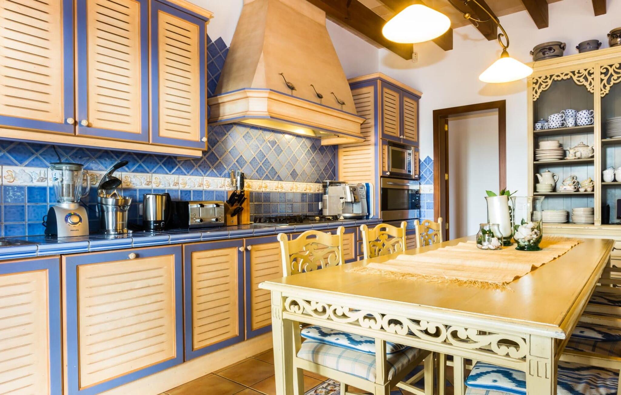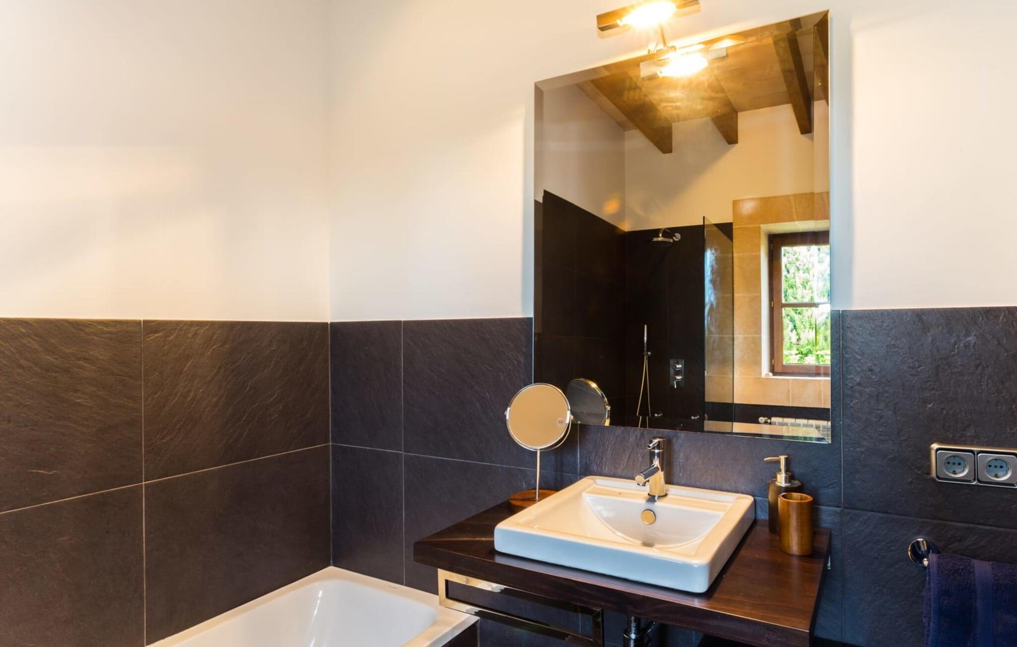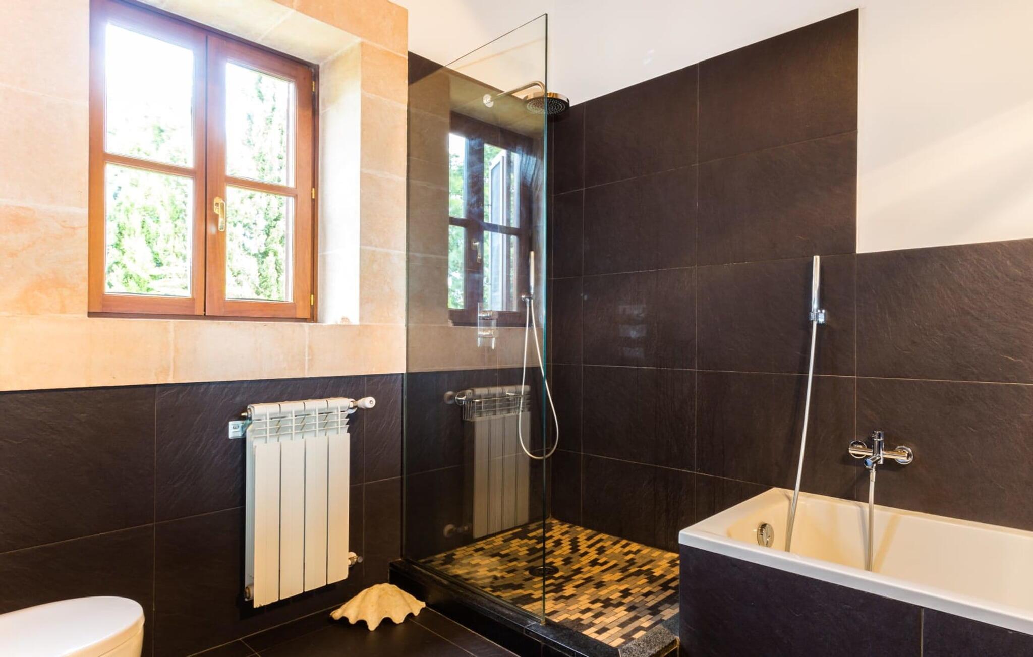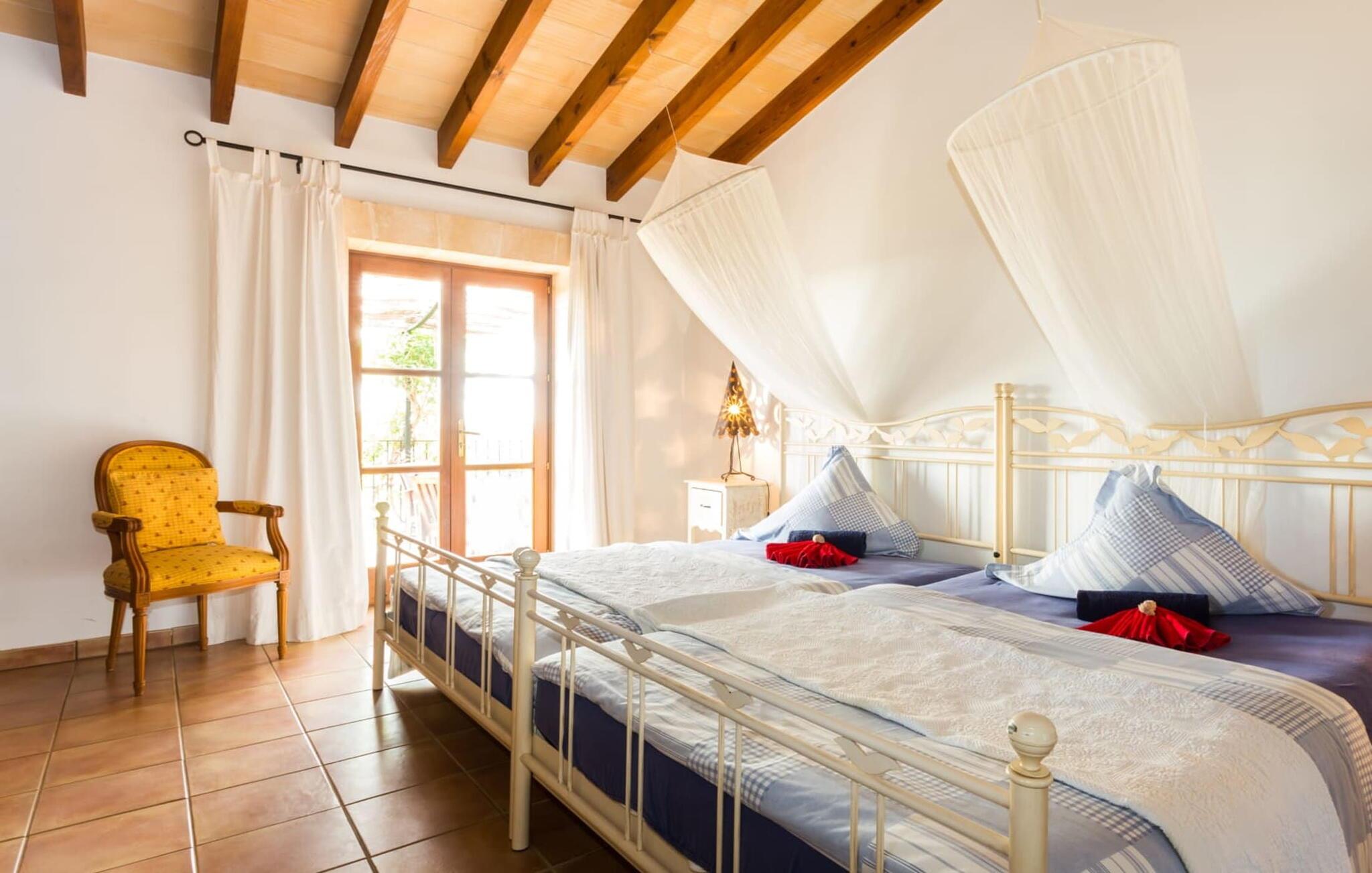 Den betagende finca "Salida del Sol" er designet i stil med en mallorcansk herregård og byder på møbler af høj kvalitet i rolige omgivelser. Ejendommen er omgivet af smukt anlagte middelhavshaver og byder på rolige steder at slappe af, herunder en charmerende trægynge. Poolen, med indgang i græsk stil og mosaikdesign, suppleres af en naturstenterrasse udstyret med komfortable liggestole, panoramaudsigt over havet og delvis skygge. Nyd aftenen og lav en lækker grillmad med udsigt over havet. Indvendigt har villaen et rummeligt interiør med håndlavede fliser og fint teaktræ. Hovedsalen har pejs, selvom centralvarme og aircondition sørger for komfort hele året rundt. Opholdsstuen støder op til et moderne, fuldt udstyret køkken. Villaen består af fire generøse soveværelser, hver med en fantastisk havudsigt og adgang til terrasser. Med fire stilfulde badeværelser, heraf to en-suite, kombinerer ejendommen moderne komfort med fokus på afslapning. "Salida del Sol" byder på fred, smukke omgivelser og et strejf af middelhavskultur. Den yderst eksklusive finca "Salida del Sol" ligger på en blid bjergskråning mellem Son Carrio og kysten og byder på en vidunderlig udsigt over havet. På trods af den meget rolige beliggenhed er de omkringliggende landsbyer med velassorterede butikker og supermarkeder nemme at nå. Oplev søndagsmarkedet i kystbyen Porto Cristo. Sandstrandene på østkysten, herunder nogle fantastiske naturlige strande, er kun en kort køretur væk. Fire kendte golfbaner ligger kun få minutter væk i bil.