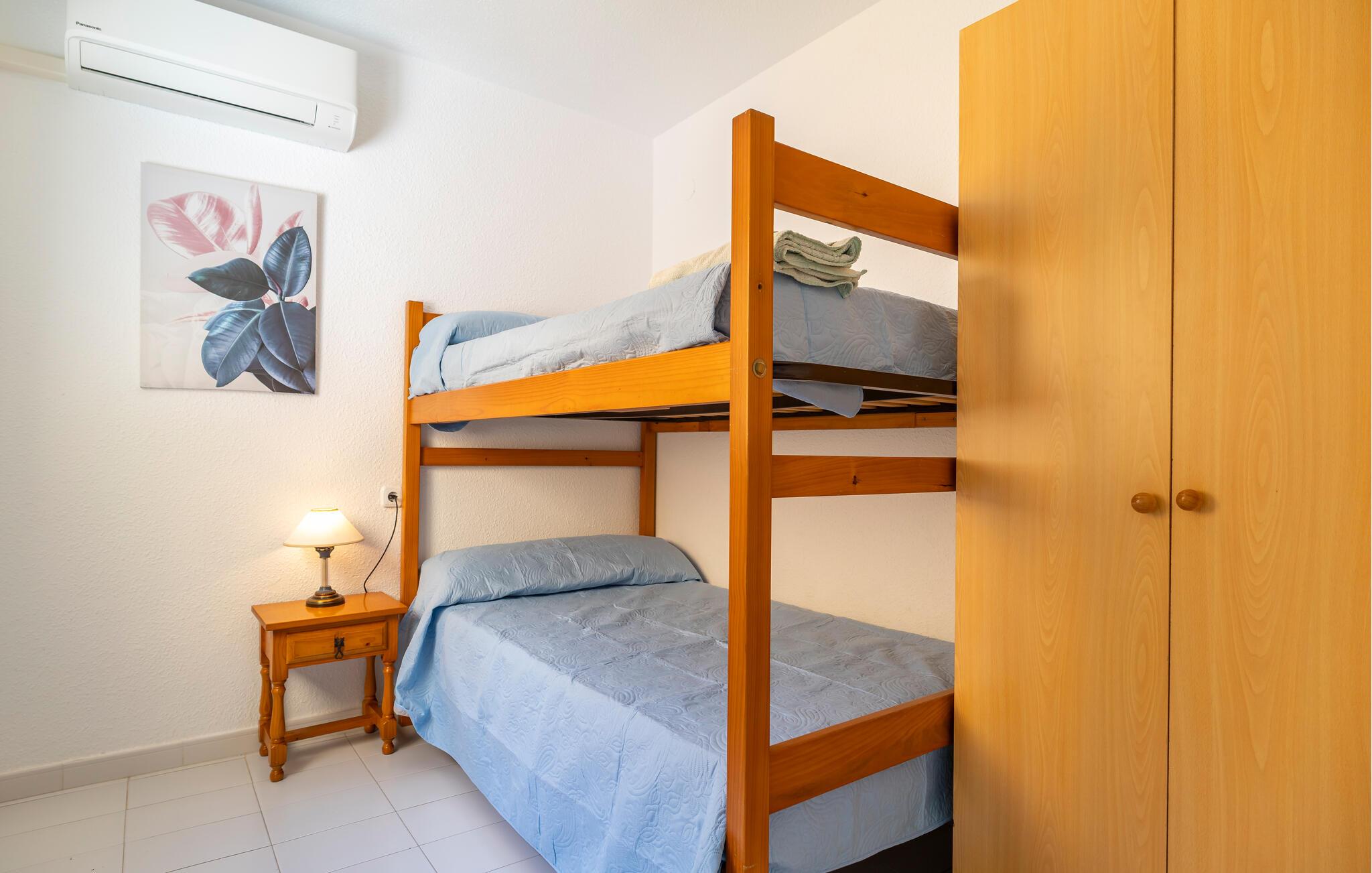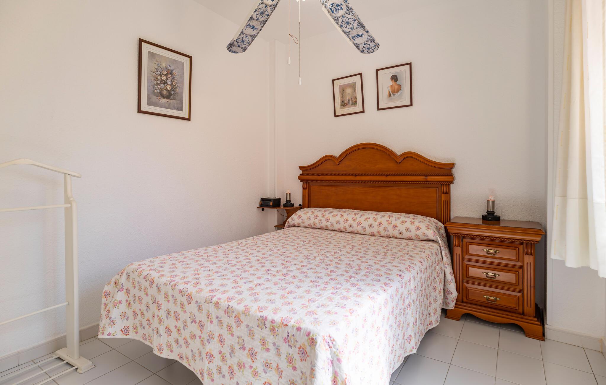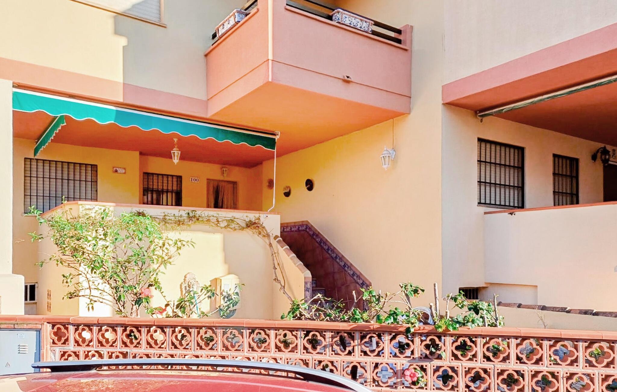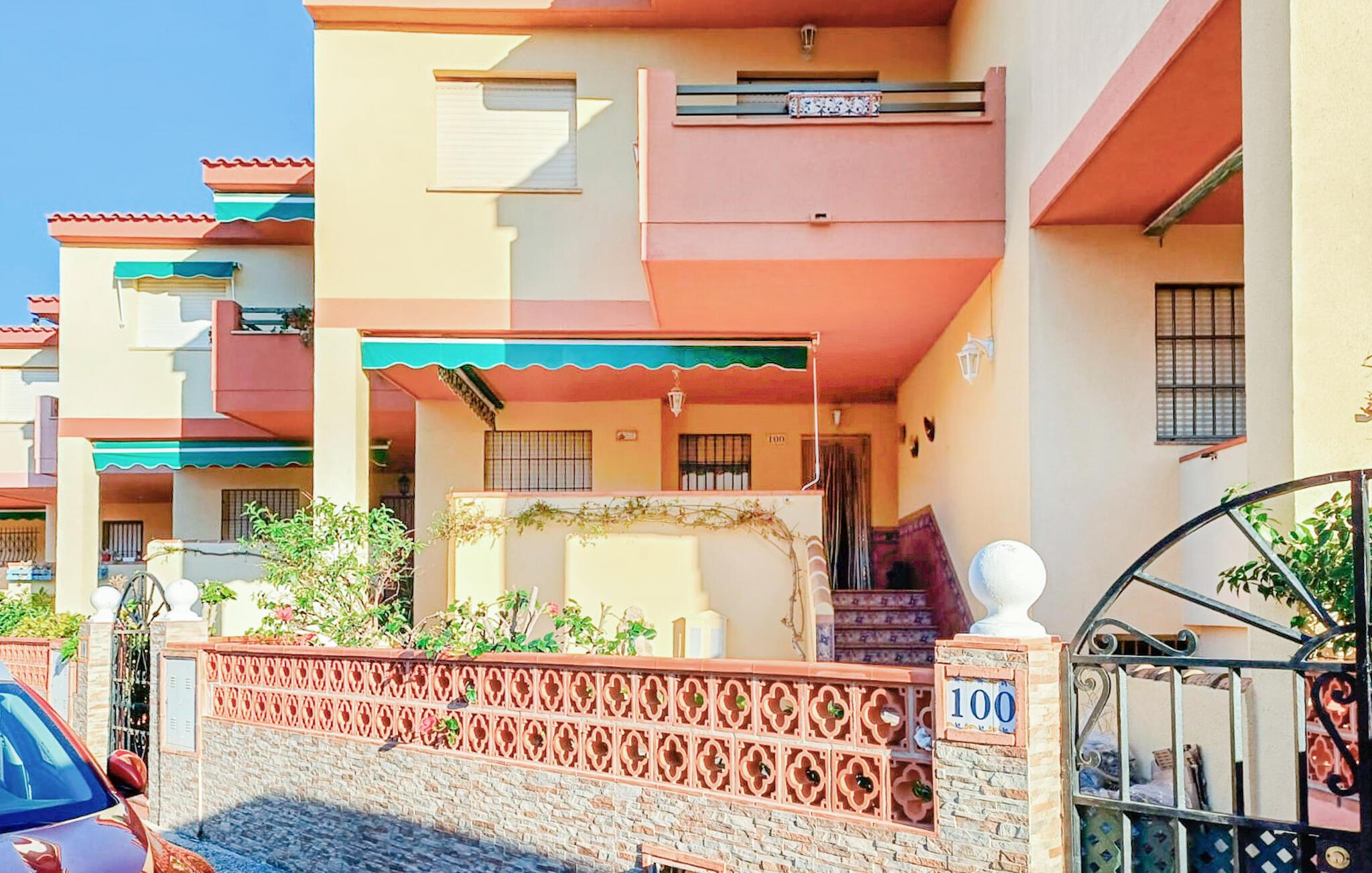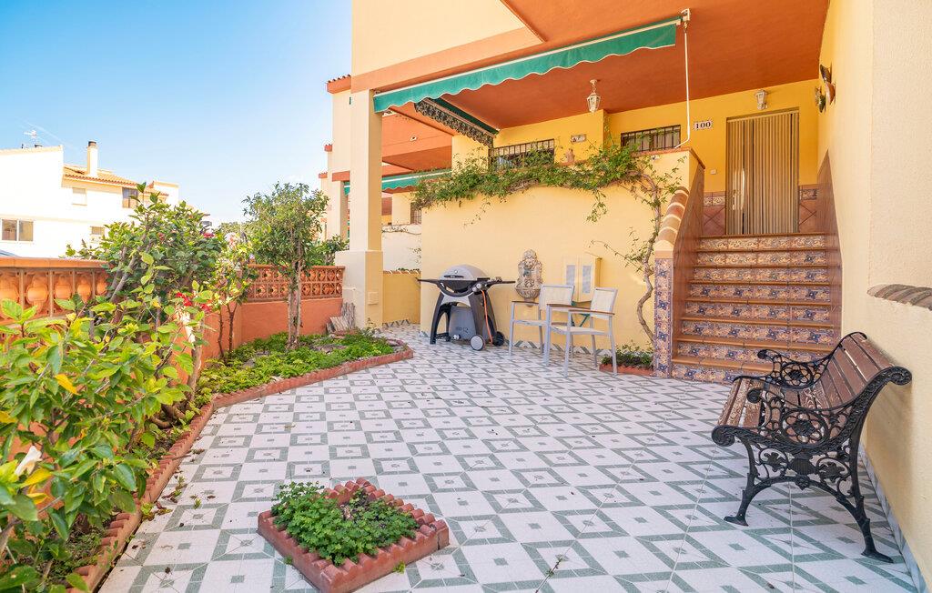 Nyd den andalusiske livsstil i dette klassiske og rummelige rækkehus med vidunderlig havudsigt. De hyggelige møbler skaber en afslappet atmosfære, mens I kan nyde middelhavssolen på den store veranda eller balkon. Den praktiske opholdsstue lægger op til at blive hængende, og det hyggelige køkken byder på alt, hvad I behøver til jeres ferie. En kort gåtur tager jer til stranden, mens den fælles pool tilbyder et forfriskende alternativ til afslappende timer.